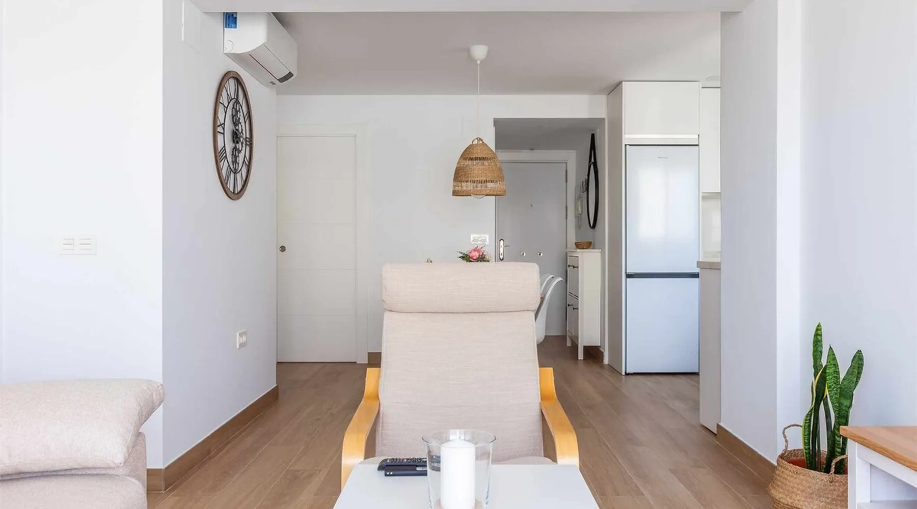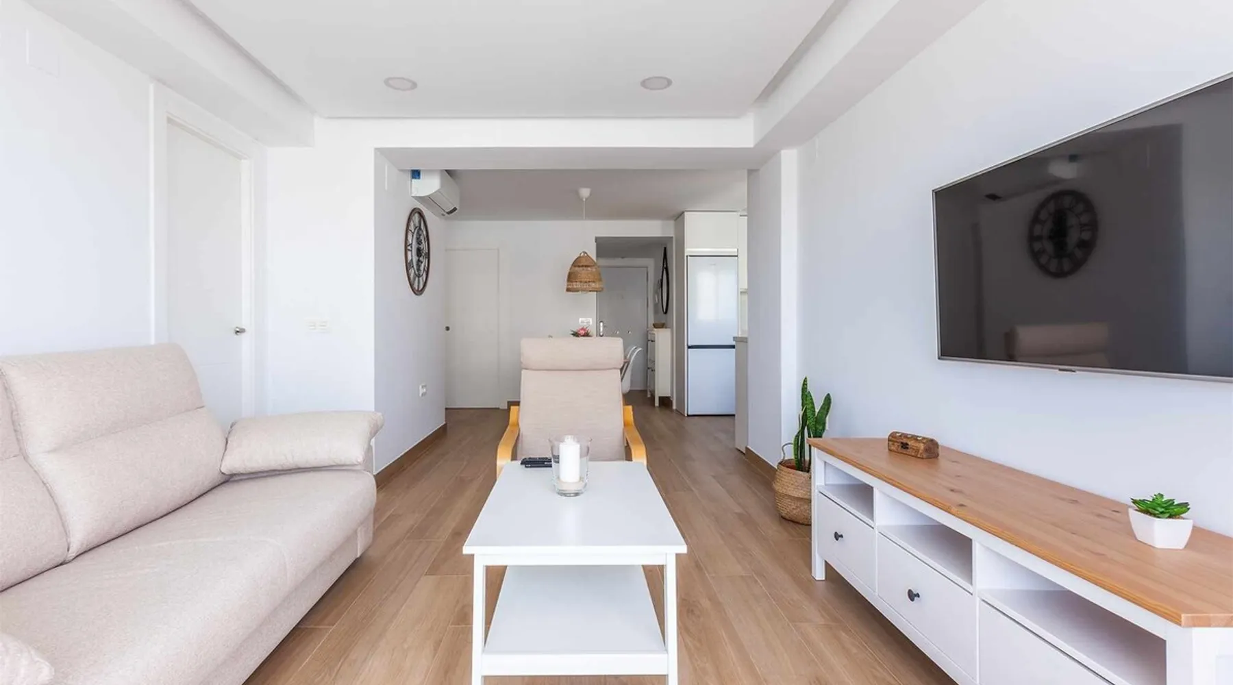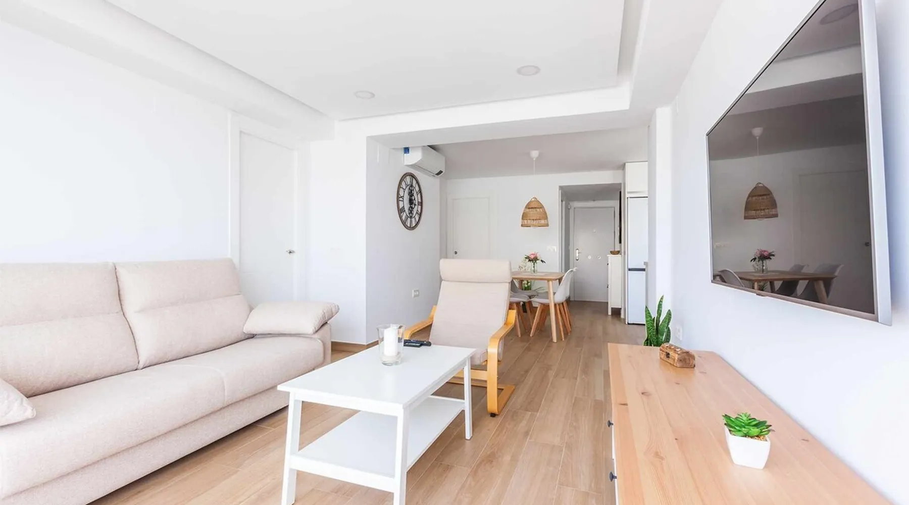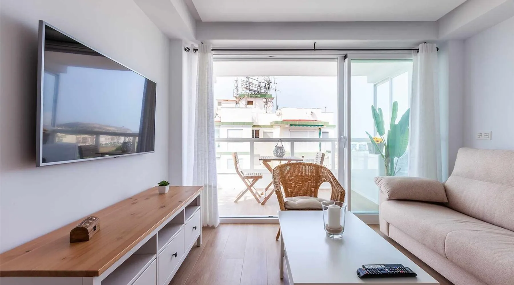 Discover the charm of the Mediterranean from this cozy two-bedroom apartment located just steps from the beach, featuring a seasonal communal pool on Avenida Antonio Toré Toré! Freshly renovated, this apartment offers a renewed experience in the vibrant Torre del Mar. With two bedrooms, one with a double bed and the other with two single beds, you'll enjoy comfort and versatility. The space Discover the charm of the Mediterranean from this cozy two-bedroom apartment located just steps from the beach, featuring a seasonal communal pool on Avenida Antonio Toré Toré! Freshly renovated, this apartment offers a renewed experience in the vibrant Torre del Mar. With two bedrooms, one with a double bed and the other with two single beds, you'll enjoy comfort and versatility. The open-plan kitchen harmoniously integrates with the bright living-dining area, leading to a spacious terrace with breathtaking views. Equipped with air conditioning (hot-cold) in all rooms and the living room, as well as wifi to keep you connected. The west orientation ensures sunny afternoons on the terrace. Located in a residential area with a seasonal communal pool (summer), subject to the community's rules, this place is close to various services and amenities. Pets are not allowed in this accommodation. We also offer airport transportation for an additional fee. Torre del Mar not only offers a charming beach and promenade but also provides easy access to explore the Axarquía. With tourist attractions such as Nerja, Frigiliana, Vélez-Málaga, and Comares, along with its proximity to the capital and Granada, your vacation becomes a perfect blend of sun, beach, culture, and mountain. This fantastic apartment is situated in one of the new areas of Torre del Mar, just a few minutes' walk from the center and close to the beach. Surrounded by diverse services, restaurants, beach bars, and options for daytime and nighttime entertainment, you'll immerse yourself in authentic coastal life. Come and enjoy an unforgettable vacation at A&n Casa del Sol. Due to the drought in the area, the municipality has informed us that the use of the pools cannot be guaranteed, and there will be water cuts starting at 8:00 Pm every day, without a specific time for resumption. Other things to note Included services - Swimming pool: Services available according to season Opening date: 15/06. Closing date: 30/09. - Internet Access Optional services - Cot/Crib: Price: EUR 5.00 per day (maximum: 50 EUR). Available items: 3. - "Full-body massage": Price: EUR 70.00 per booking. - Arrival out of schedule: Price: Included in the booking. - Checking in at the apartment: Price: EUR 10.00 per booking. - breakfast: Price: EUR 4.00 per person and day. - "Couples full-body massage": Price: EUR 120.00 per booking. - Air conditioning: Price: Included in the booking. - Bed linen: Price: Included in the booking. - Heating: Price: Included in the booking. Registration Details Andalucia - Regional registration number VUT/MA/52567