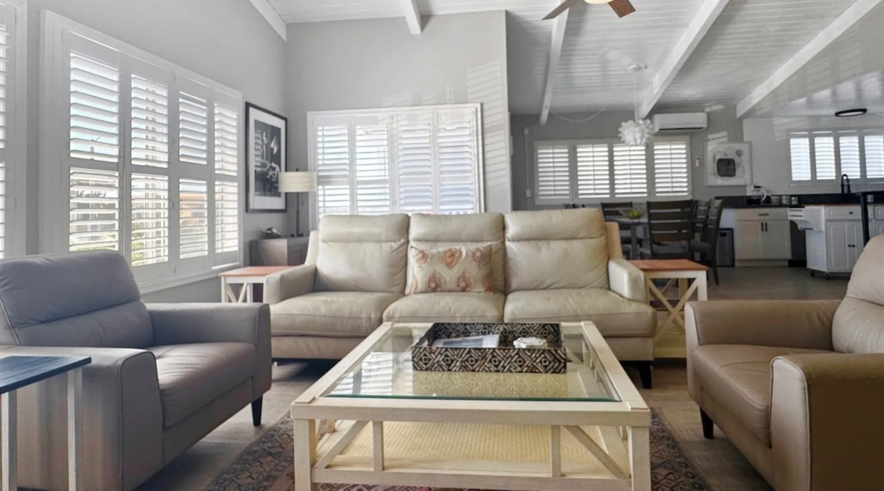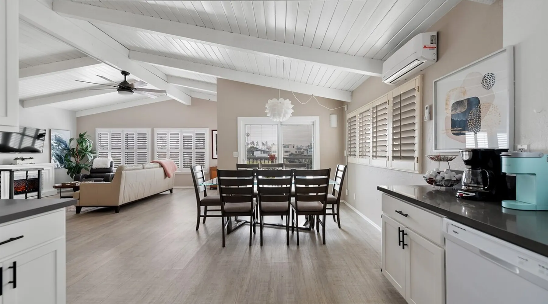 Welcome to Sea Shells by the Sea Shore Vacation Beach Rental, your ideal year-round escape! This nearly beachfront home offers spacious comfort, loaded with amenities—including for your furry friends. Just a short stroll from the sand, you'll find a wagon stocked with chairs and boogie boards ready for beach adventures. Take a quick drive to Ventura Harbor for paddleboard rentals, boat tours, or live music. Whether it’s summer fun or a cozy winter retreat, this home has everything you need! The space • Mini-split A/C and heating in every room • Secure patio with BBQ grill and outdoor dining area • Wagon with beach gear, including boogie boards, chairs, and umbrella • Spacious driveway with parking for up to three cars • Garage parking for one vehicle Bedrooms & Bathrooms: • Ground floor family room with sofa-sleeper and smart TV • Ground floor King bedroom with walk-in closet • King bedroom with closet and ocean view • Twin bedroom with closet, located near a full bathroom • Second-full bathroom with shower-tub combination • Second-floor powder room • Second floor open-concept living and dining area • Balcony with partial ocean view, perfect for unwinding • Newly remodeled kitchen with modern appliances Outdoor Space: • Steps to the sandy beach • Fully stocked garage with beach chairs, towels, umbrella, and boogie boards • Pet-friendly community • Family-friendly neighborhood near a local school (may hear children playing) Extras: • High-speed WiFi and smart TVs in every room • Pack ‘n Play, high chair, and baby monitor upon request • Pet-friendly with dog amenities provided (sorry, no cats) • Free parking for up to three vehicles • Laundry room with washer and dryer Guest access We are a local, family-owned business and take pride in our home. We value your privacy but are always a text away should you need anything. • Full access to the home, including all indoor and outdoor spaces • Self-check-in with a smart lock for seamless arrival • Digital Guidebook sent upon signing the Rental Agreement • Entry Code emailed 48 hours before check-in• Video walk-through available to share with guests
