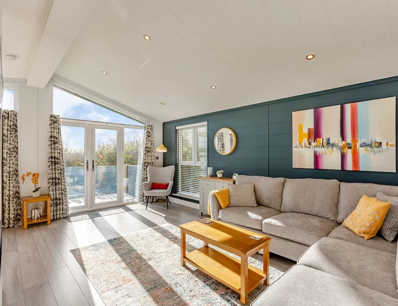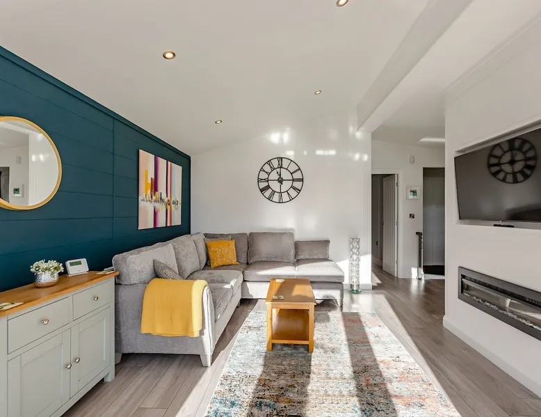 Luxurious lodge with vaulted ceilings and a welcoming feature fireplace.