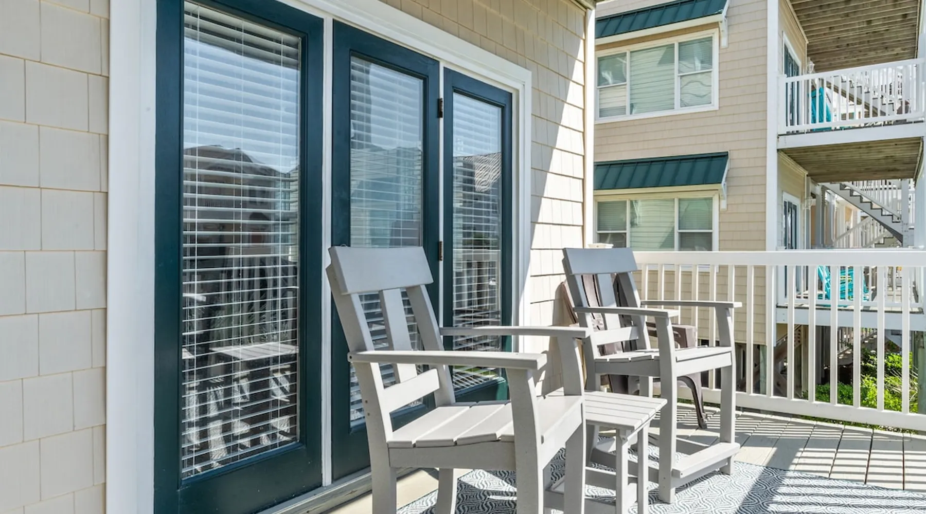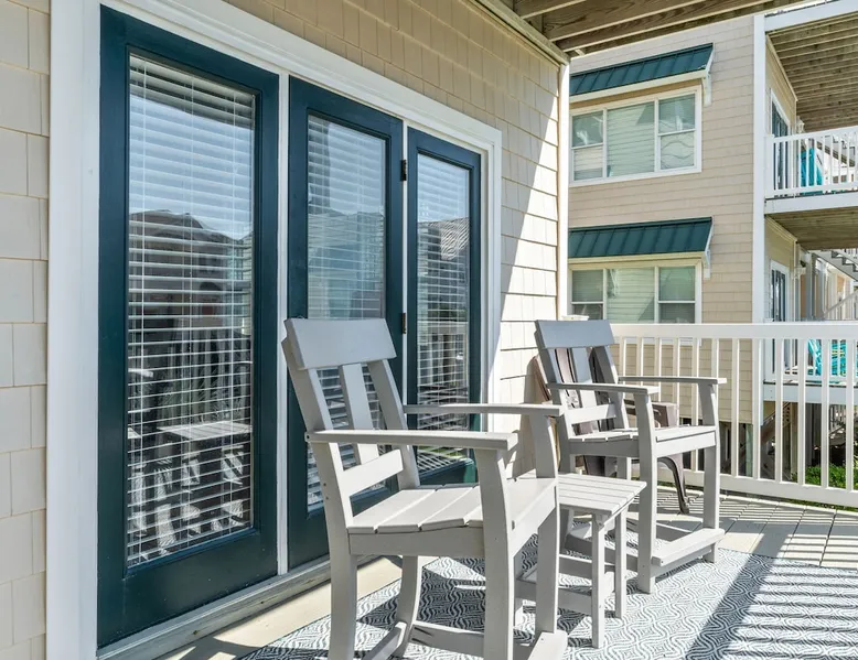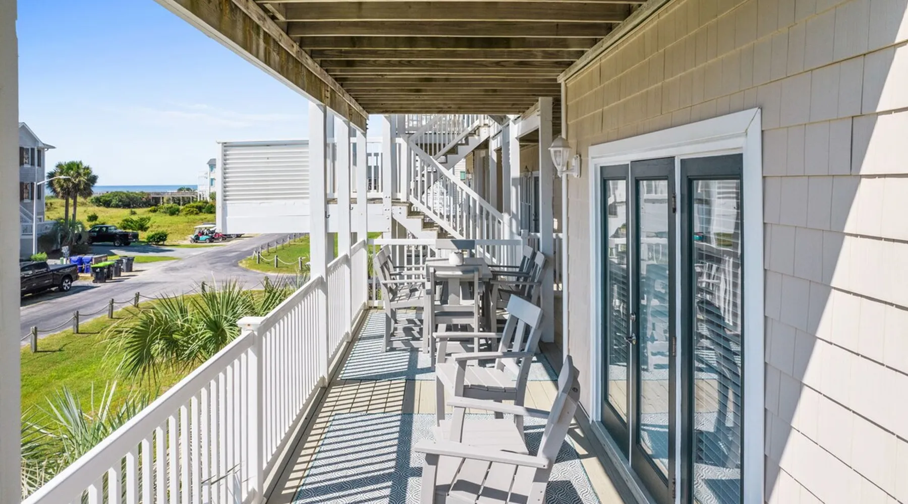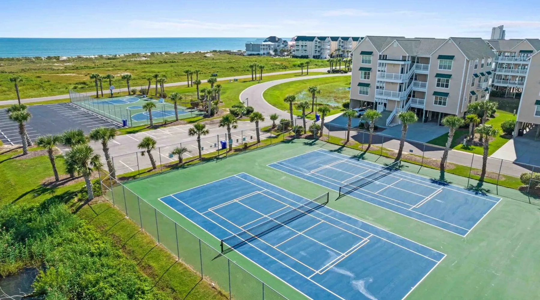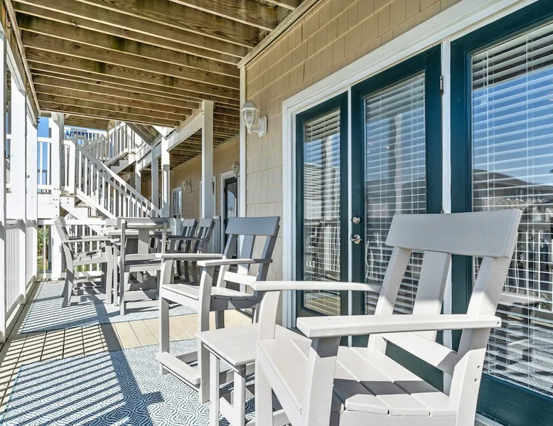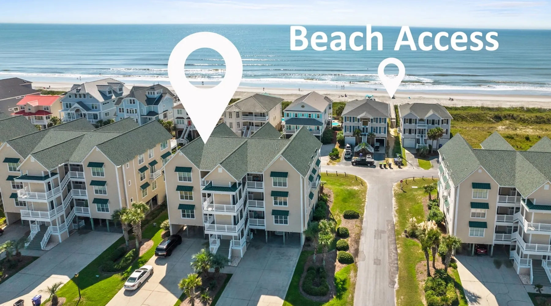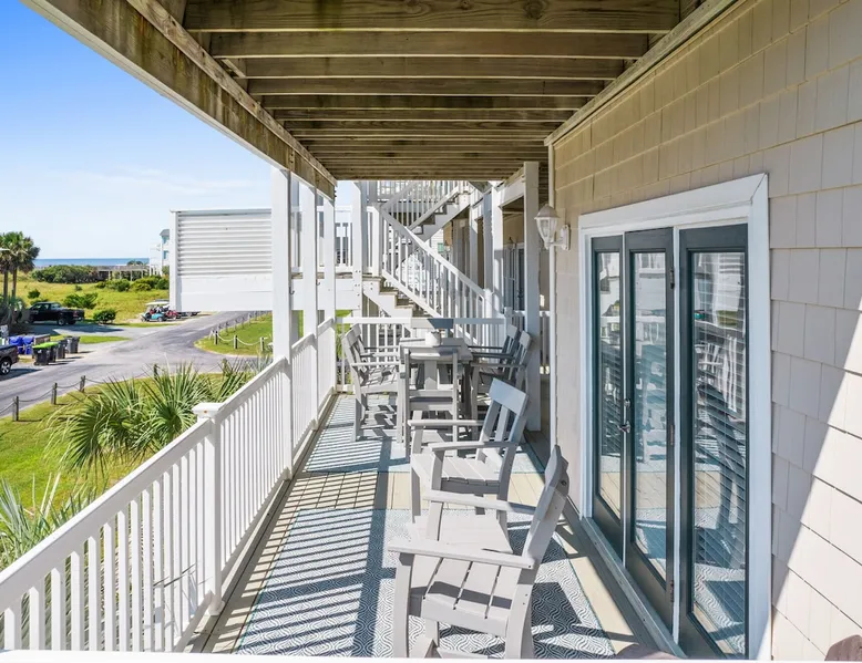 200 FT from beach! Directly across from beach access walkway. Ocean views from furnished shaded deck! Towels are included on all rentals. Linens are also included on all WEEKLY rentals. All bedrooms with private full bath and Smart TV's. Shaded outdoor seating with ocean views! 2 k and 4 dbls in the 4 brs (sleeps 12). ocean club featuring pool, hot tub, kiddie pool, outdoor tiki bar all on ocean front. Note- ocean front pool club open MemDay to Labor Day only. Other things to note Spacious 1700 square feet with over-size furnished deck with polywood deck furniture featuring counter height table and chairs. Unit all on one level. Beautifully decorated with island flavor. All bedrooms have cable TV and each bedroom has its own full private bath. Fully equipped kitchen with everything you have at home! Also full size washer and dryer. Flat screen TV in living area and all bedrooms. 3 walk in showers and 1 shower/tub combination. Quartz double vanity in master suite. NEW DINING TABLE APRIL '23 WITH 8 seats plus 4 adjacent bar stools. Stainless steel appliances. Tennis courts and pickle ball courts on site. Nearby rentals for kayaks, jet skis and bicycles, golf carts. NEW CARPET ALL BEDROOMS APRIL 2023!