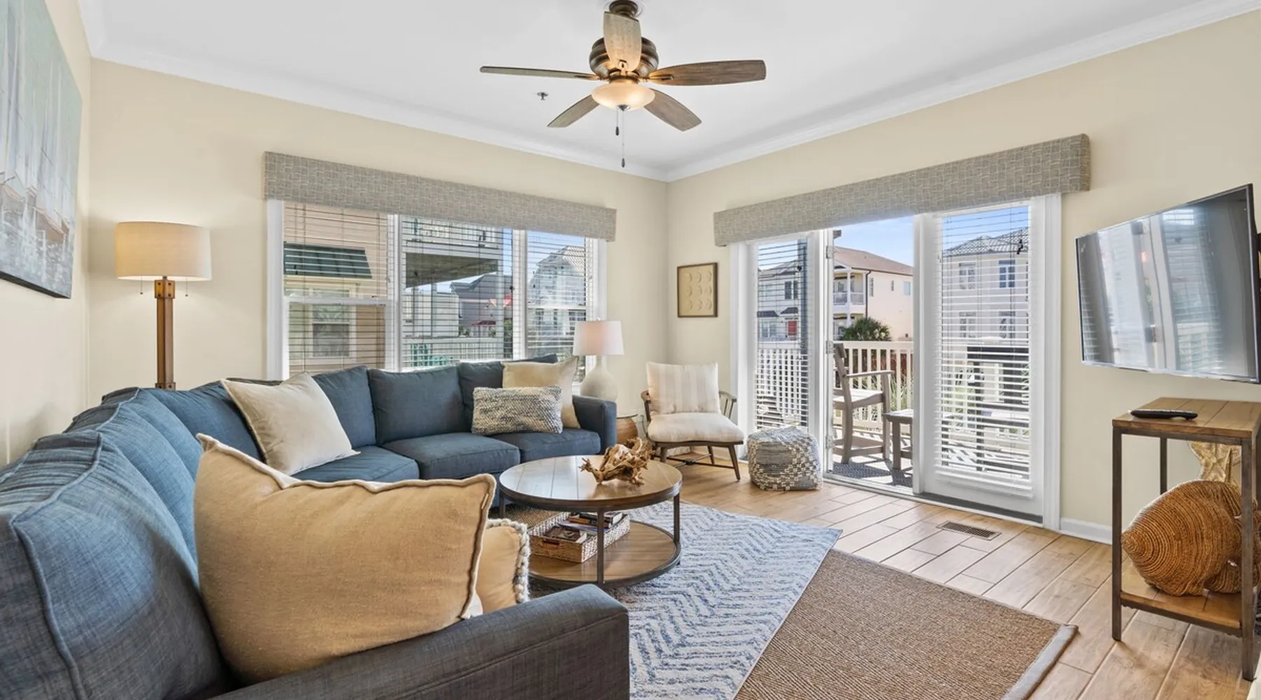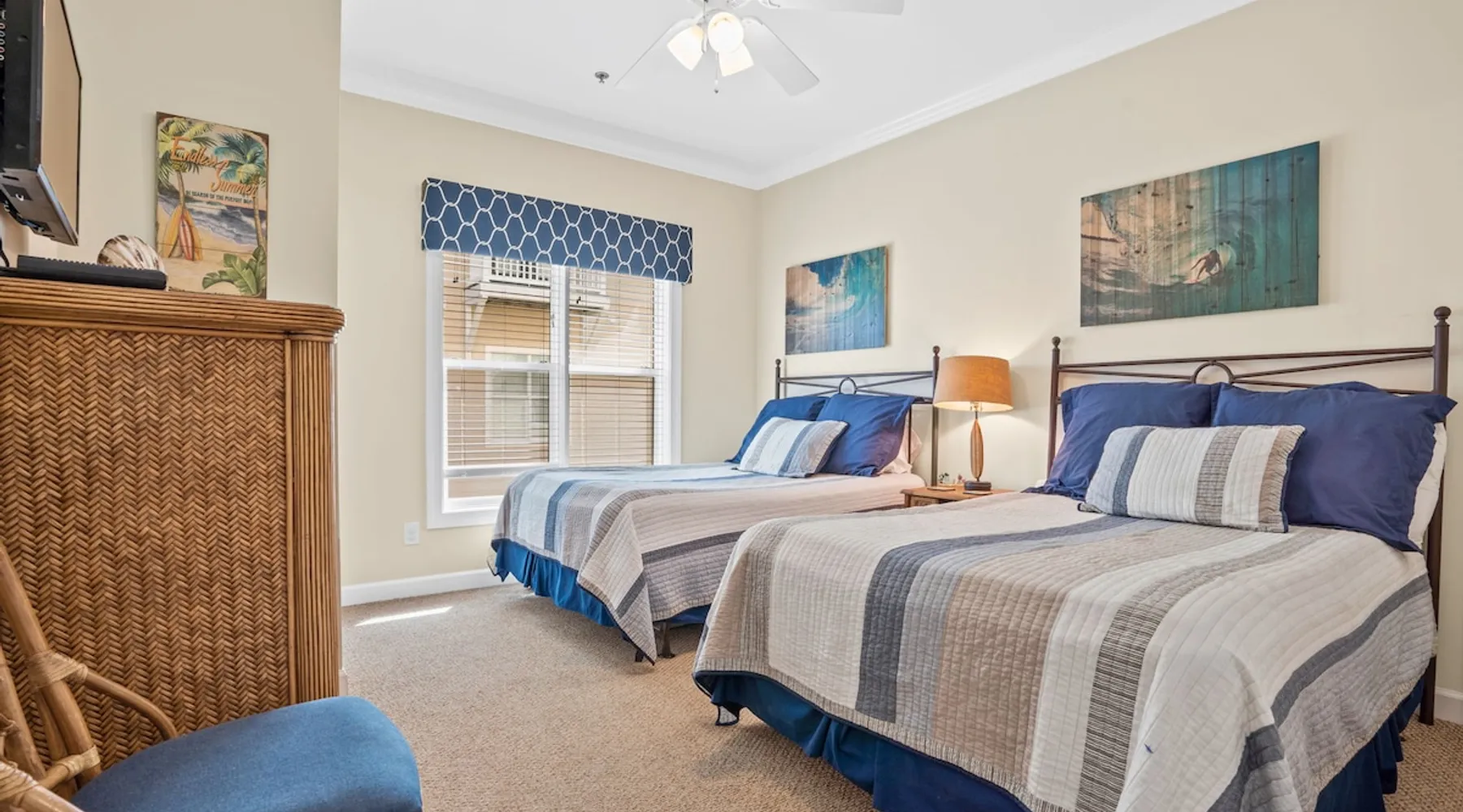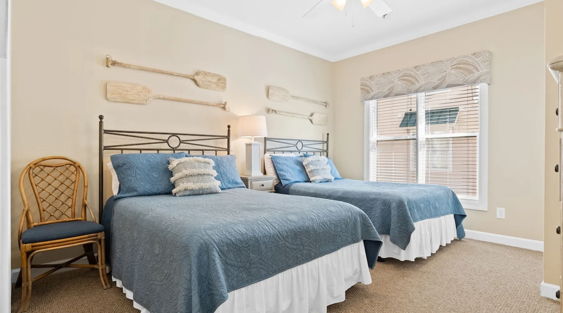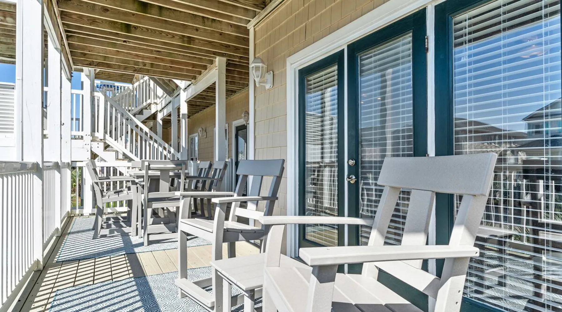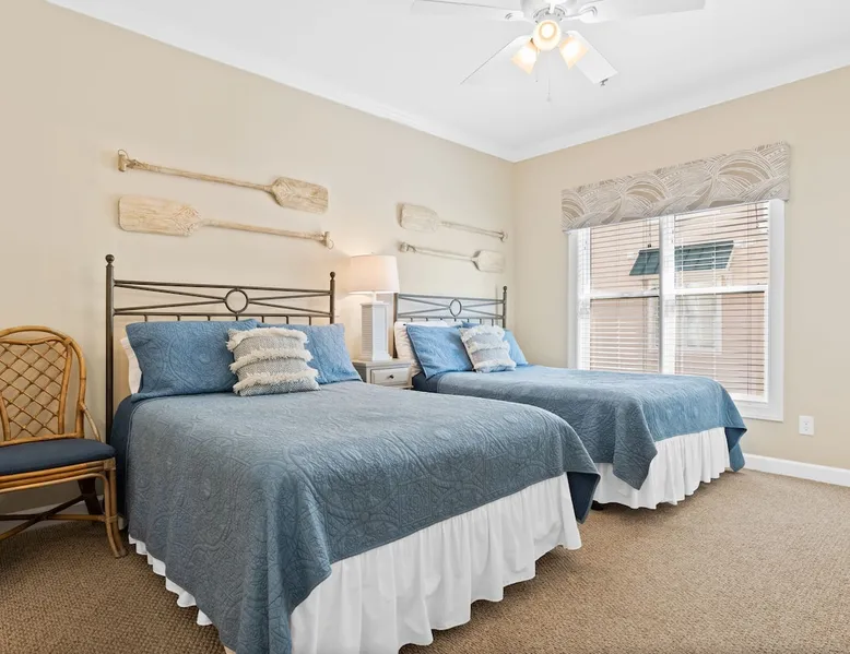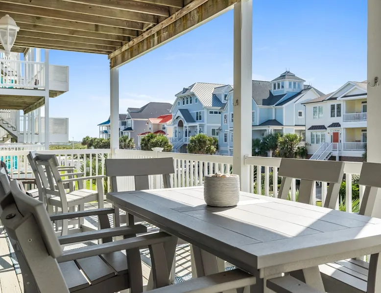 200 FT from beach! Directly across from beach access walkway. Ocean views from furnished shaded deck! Towels are included on all rentals. Linens are also included on all WEEKLY rentals. All bedrooms with private full bath and Smart TV's. Shaded outdoor seating with ocean views! 2 k and 4 dbls in the 4 brs (sleeps 12). ocean club featuring pool, hot tub, kiddie pool, outdoor tiki bar all on ocean front. Note- ocean front pool club open MemDay to Labor Day only. Other things to note Spacious 1700 square feet with over-size furnished deck with polywood deck furniture featuring counter height table and chairs. Unit all on one level. Beautifully decorated with island flavor. All bedrooms have cable TV and each bedroom has its own full private bath. Fully equipped kitchen with everything you have at home! Also full size washer and dryer. Flat screen TV in living area and all bedrooms. 3 walk in showers and 1 shower/tub combination. Quartz double vanity in master suite. NEW DINING TABLE APRIL '23 WITH 8 seats plus 4 adjacent bar stools. Stainless steel appliances. Tennis courts and pickle ball courts on site. Nearby rentals for kayaks, jet skis and bicycles, golf carts. NEW CARPET ALL BEDROOMS APRIL 2023!