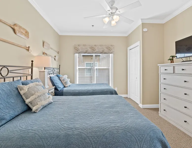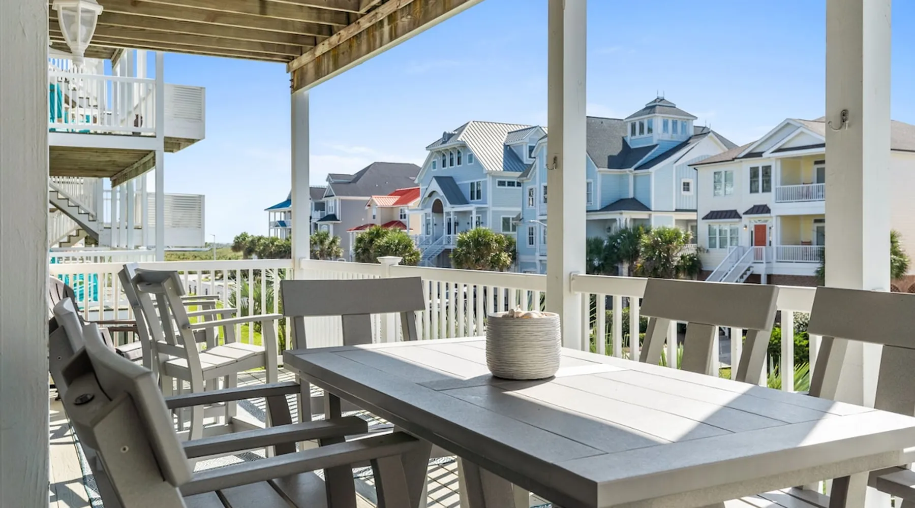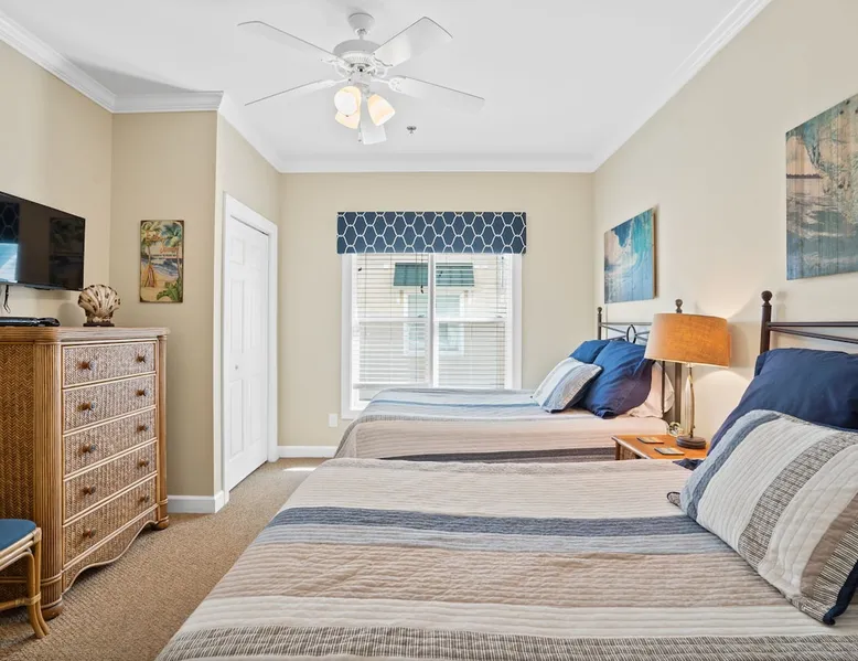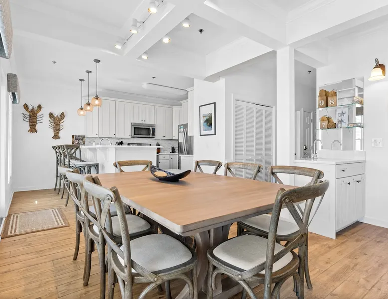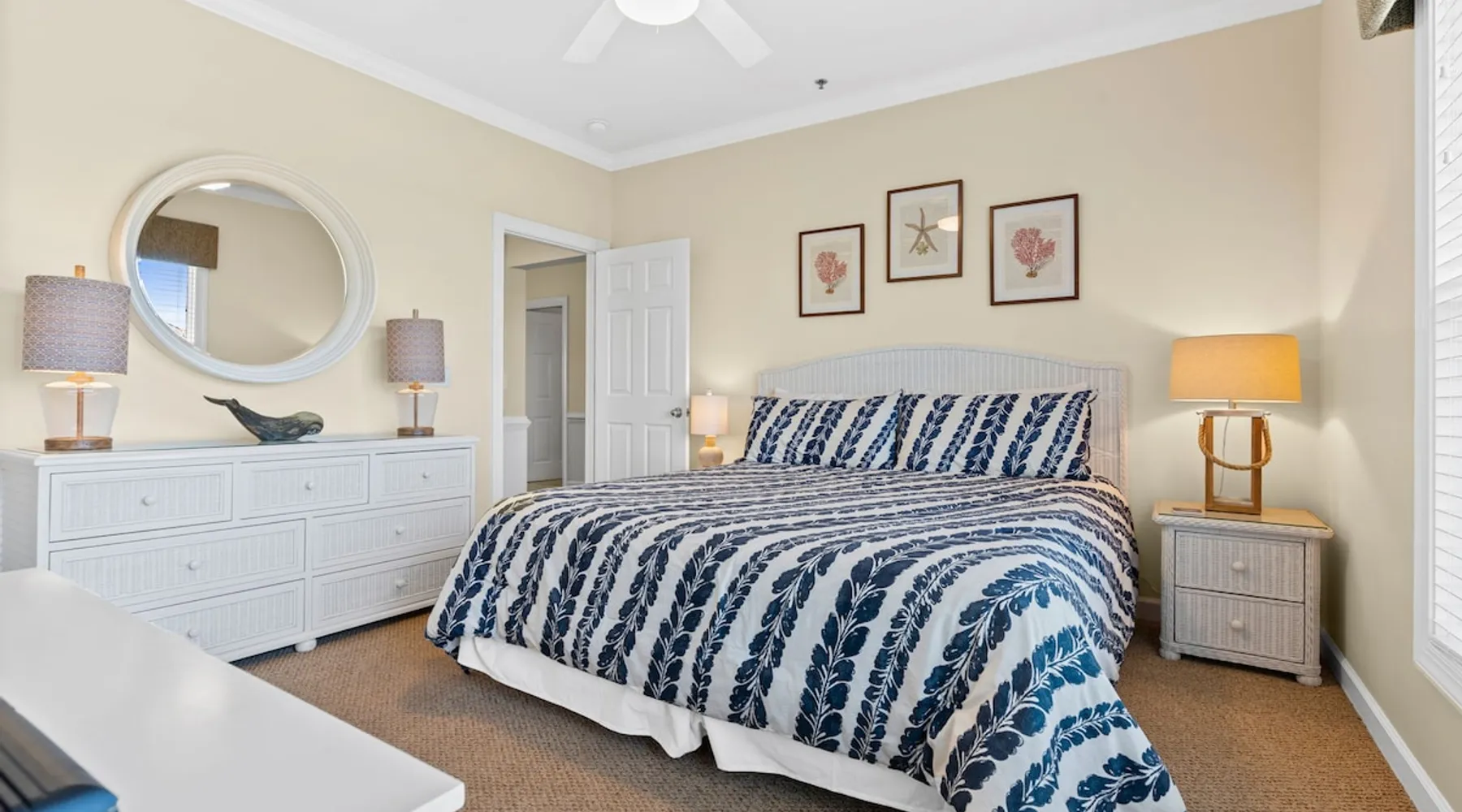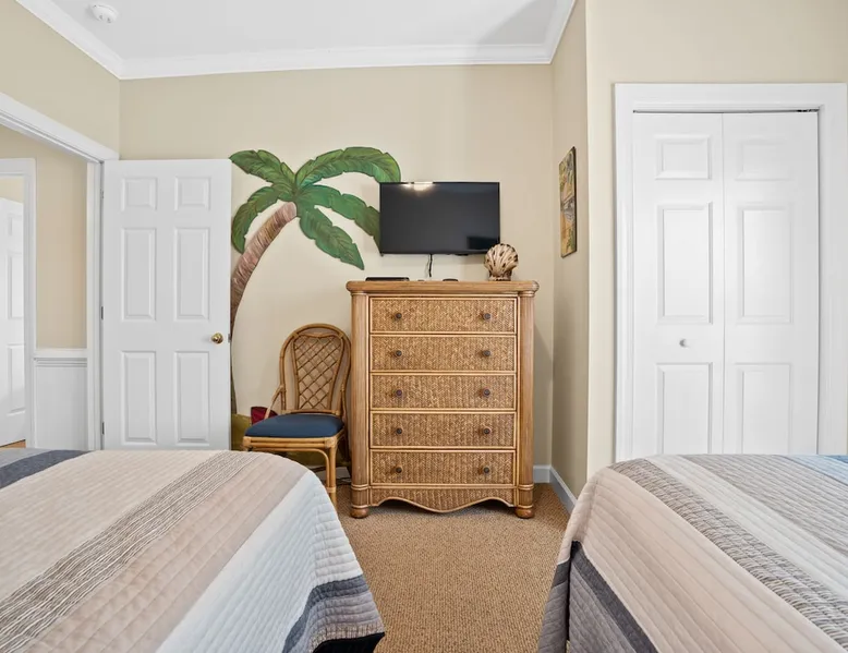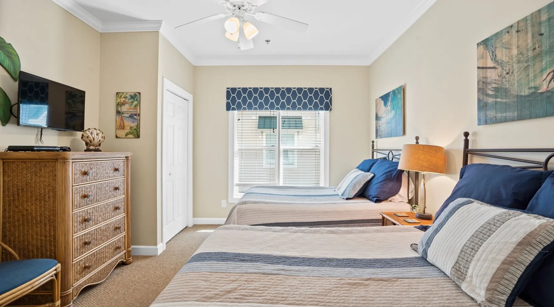 200 FT from beach! Directly across from beach access walkway. Ocean views from furnished shaded deck! Towels are included on all rentals. Linens are also included on all WEEKLY rentals. All bedrooms with private full bath and Smart TV's. Shaded outdoor seating with ocean views! 2 k and 4 dbls in the 4 brs (sleeps 12). ocean club featuring pool, hot tub, kiddie pool, outdoor tiki bar all on ocean front. Note- ocean front pool club open MemDay to Labor Day only. Other things to note Spacious 1700 square feet with over-size furnished deck with polywood deck furniture featuring counter height table and chairs. Unit all on one level. Beautifully decorated with island flavor. All bedrooms have cable TV and each bedroom has its own full private bath. Fully equipped kitchen with everything you have at home! Also full size washer and dryer. Flat screen TV in living area and all bedrooms. 3 walk in showers and 1 shower/tub combination. Quartz double vanity in master suite. NEW DINING TABLE APRIL '23 WITH 8 seats plus 4 adjacent bar stools. Stainless steel appliances. Tennis courts and pickle ball courts on site. Nearby rentals for kayaks, jet skis and bicycles, golf carts. NEW CARPET ALL BEDROOMS APRIL 2023!