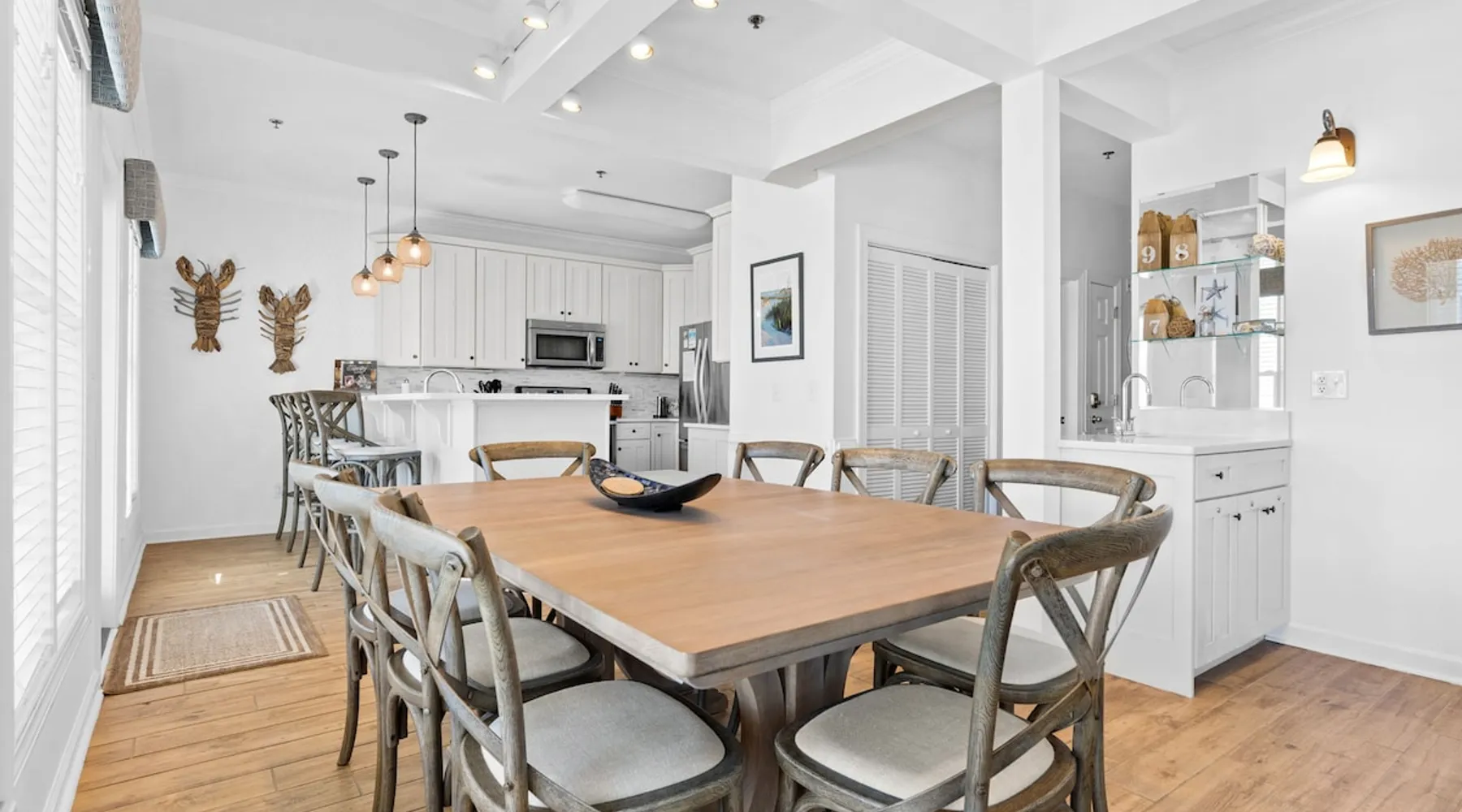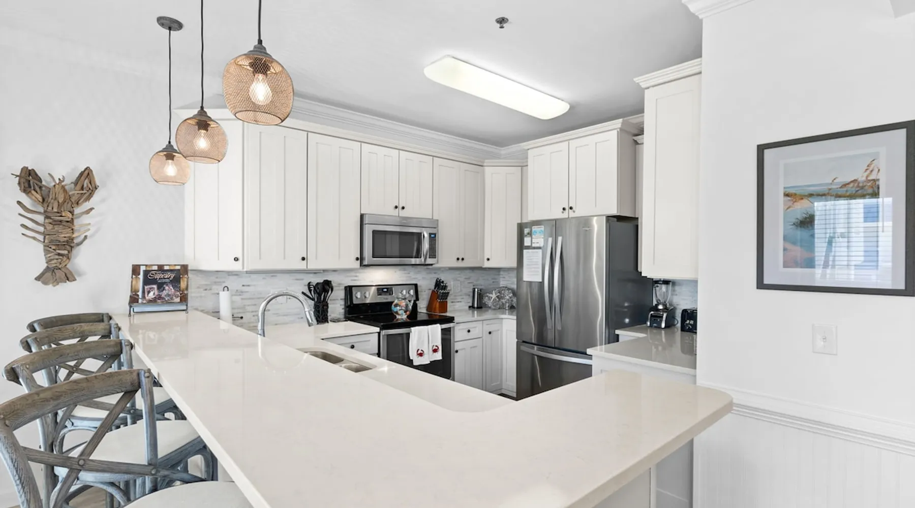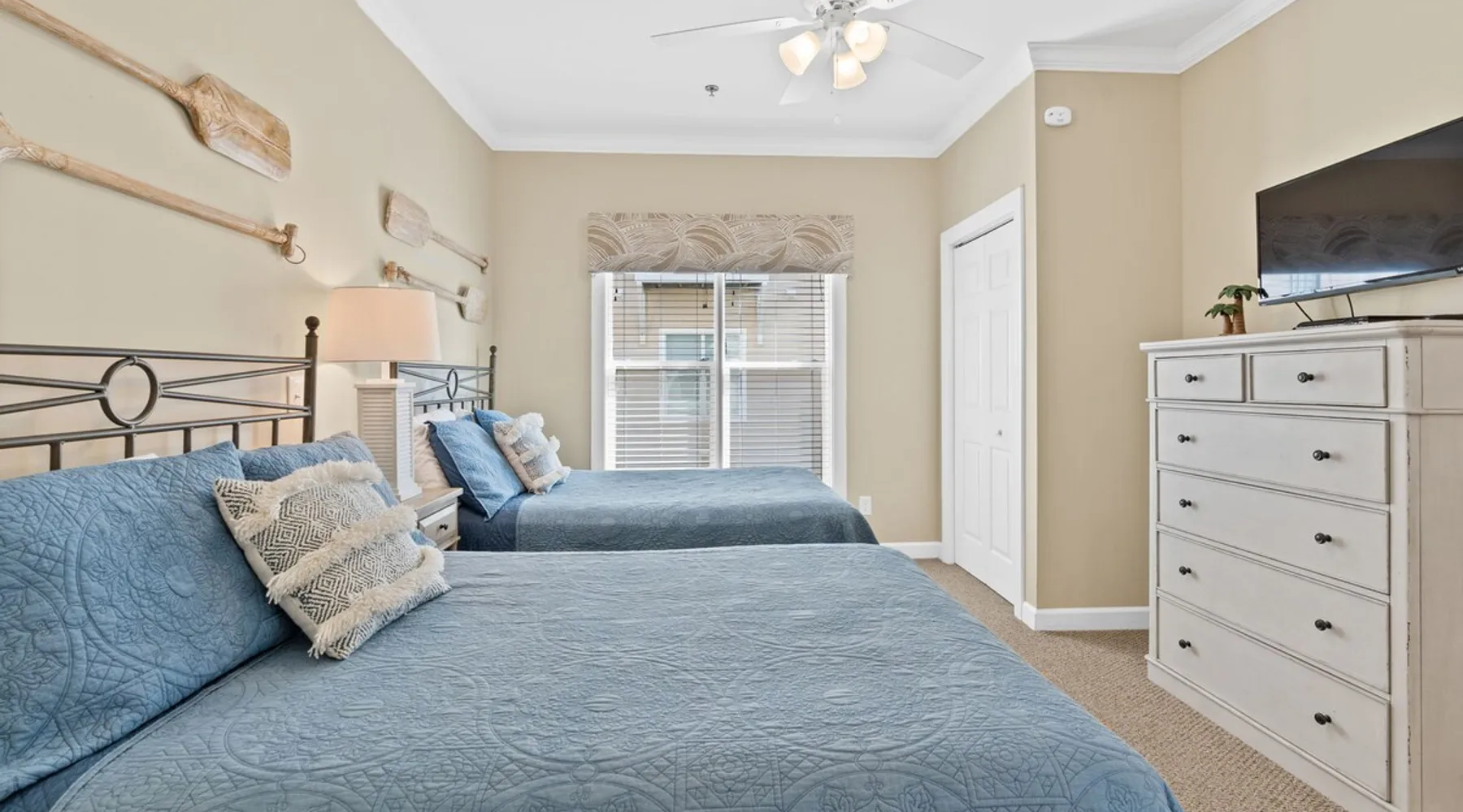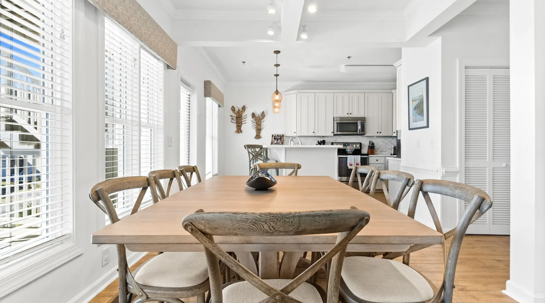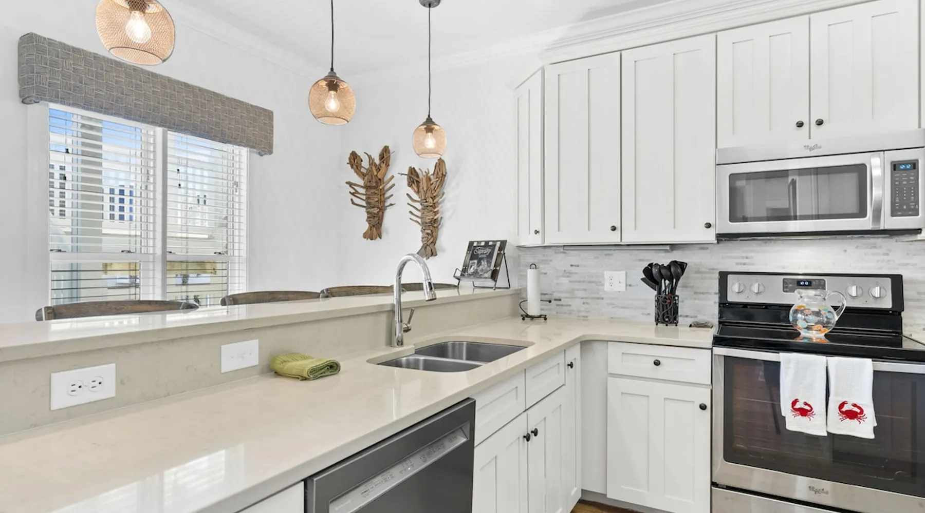 200 FT from beach! Directly across from beach access walkway. Ocean views from furnished shaded deck! Towels are included on all rentals. Linens are also included on all WEEKLY rentals. All bedrooms with private full bath and Smart TV's. Shaded outdoor seating with ocean views! 2 k and 4 dbls in the 4 brs (sleeps 12). ocean club featuring pool, hot tub, kiddie pool, outdoor tiki bar all on ocean front. Note- ocean front pool club open MemDay to Labor Day only. Other things to note Spacious 1700 square feet with over-size furnished deck with polywood deck furniture featuring counter height table and chairs. Unit all on one level. Beautifully decorated with island flavor. All bedrooms have cable TV and each bedroom has its own full private bath. Fully equipped kitchen with everything you have at home! Also full size washer and dryer. Flat screen TV in living area and all bedrooms. 3 walk in showers and 1 shower/tub combination. Quartz double vanity in master suite. NEW DINING TABLE APRIL '23 WITH 8 seats plus 4 adjacent bar stools. Stainless steel appliances. Tennis courts and pickle ball courts on site. Nearby rentals for kayaks, jet skis and bicycles, golf carts. NEW CARPET ALL BEDROOMS APRIL 2023!