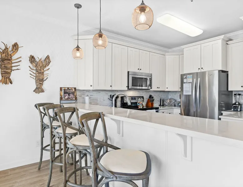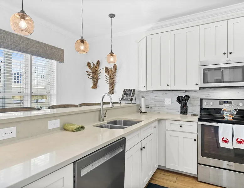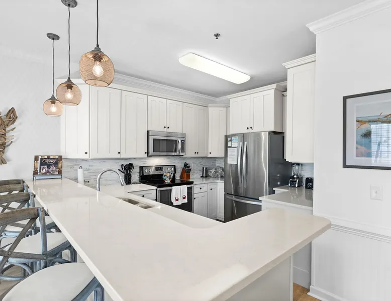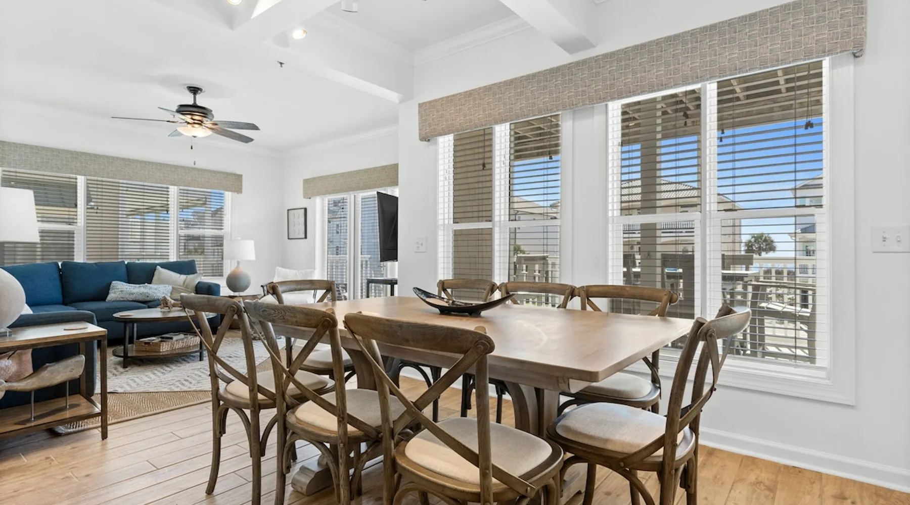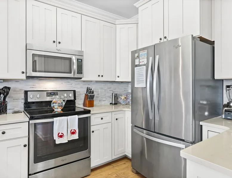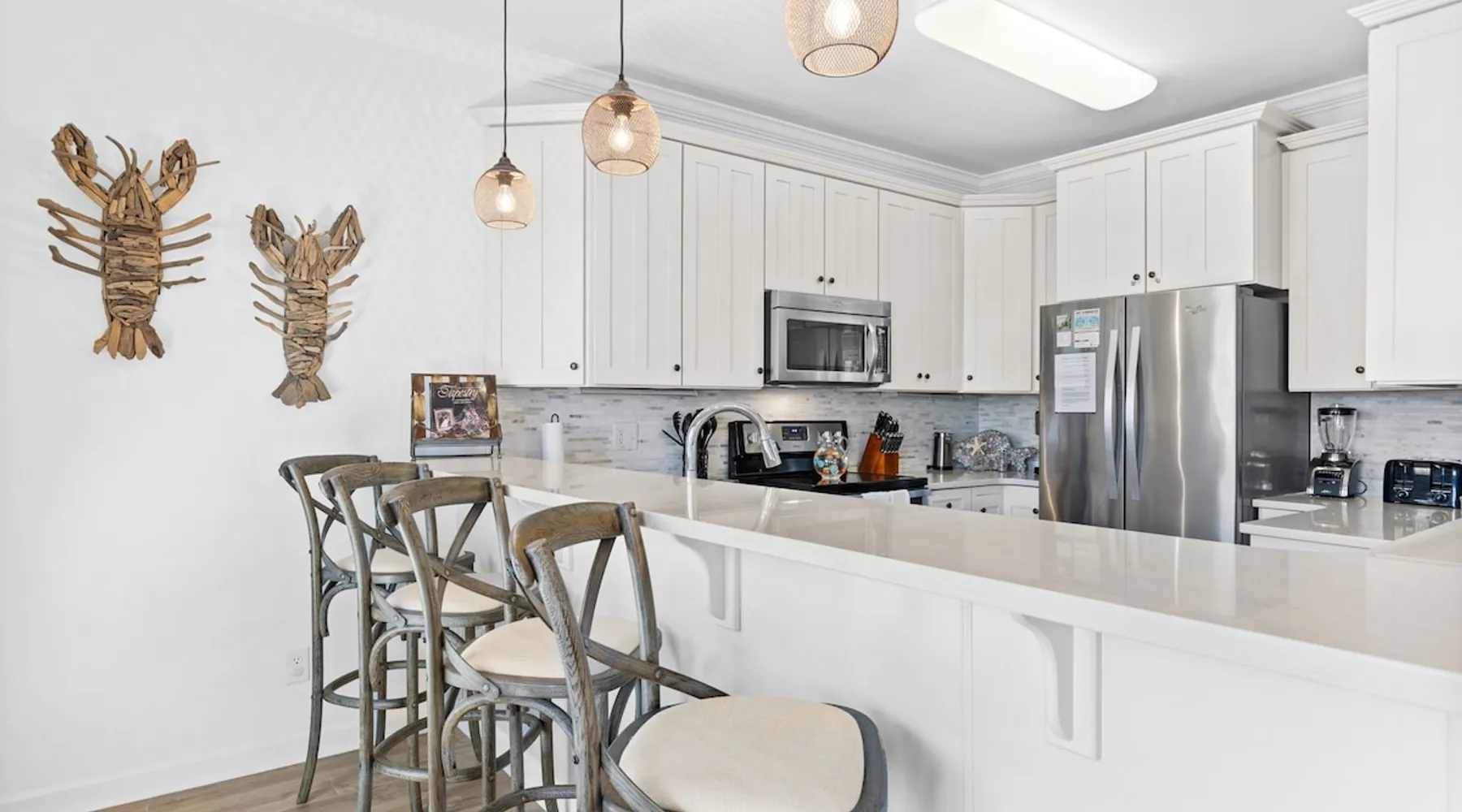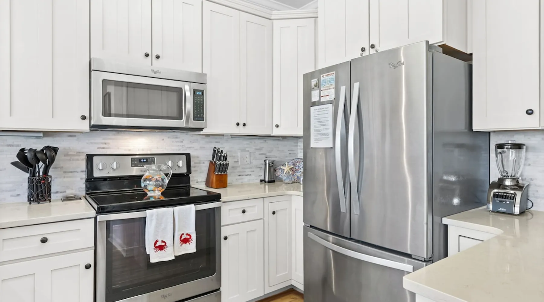 200 FT from beach! Directly across from beach access walkway. Ocean views from furnished shaded deck! Towels are included on all rentals. Linens are also included on all WEEKLY rentals. All bedrooms with private full bath and Smart TV's. Shaded outdoor seating with ocean views! 2 k and 4 dbls in the 4 brs (sleeps 12). ocean club featuring pool, hot tub, kiddie pool, outdoor tiki bar all on ocean front. Note- ocean front pool club open MemDay to Labor Day only. Other things to note Spacious 1700 square feet with over-size furnished deck with polywood deck furniture featuring counter height table and chairs. Unit all on one level. Beautifully decorated with island flavor. All bedrooms have cable TV and each bedroom has its own full private bath. Fully equipped kitchen with everything you have at home! Also full size washer and dryer. Flat screen TV in living area and all bedrooms. 3 walk in showers and 1 shower/tub combination. Quartz double vanity in master suite. NEW DINING TABLE APRIL '23 WITH 8 seats plus 4 adjacent bar stools. Stainless steel appliances. Tennis courts and pickle ball courts on site. Nearby rentals for kayaks, jet skis and bicycles, golf carts. NEW CARPET ALL BEDROOMS APRIL 2023!