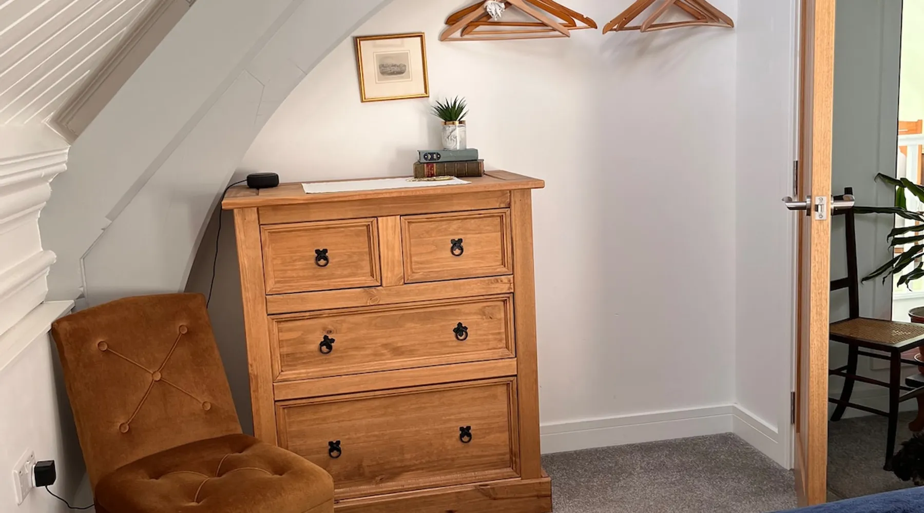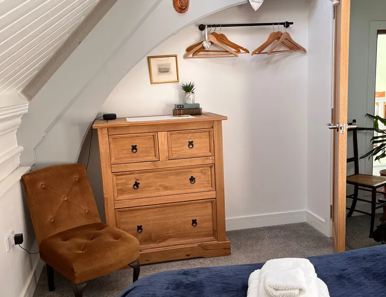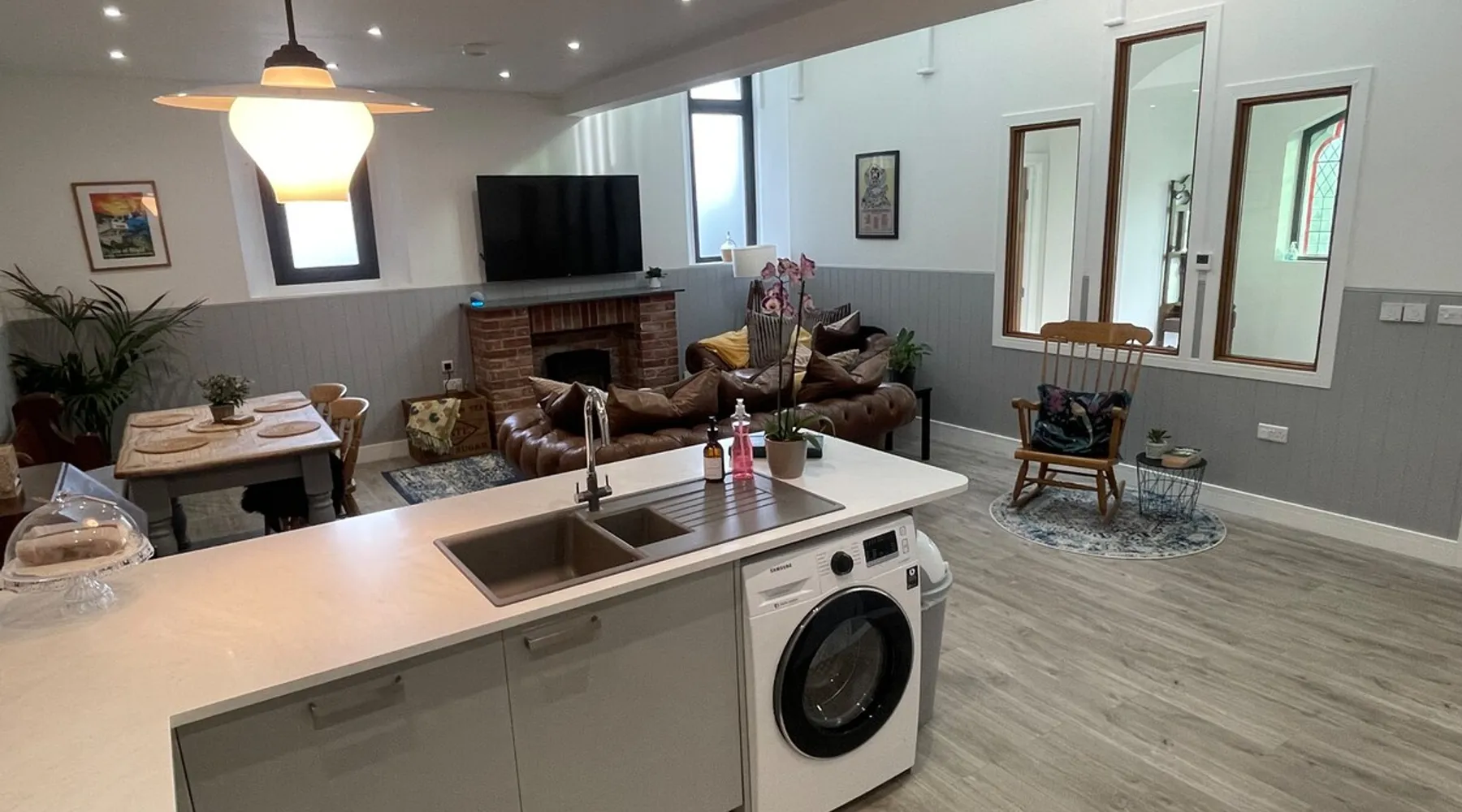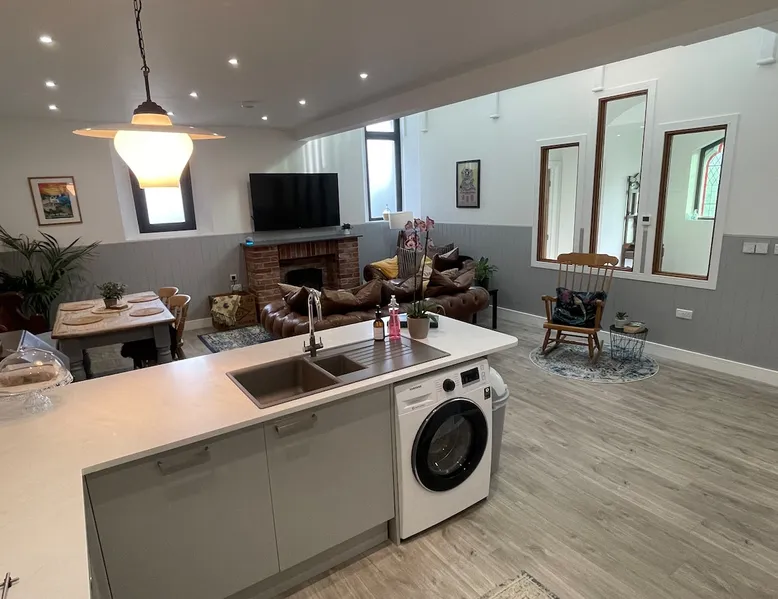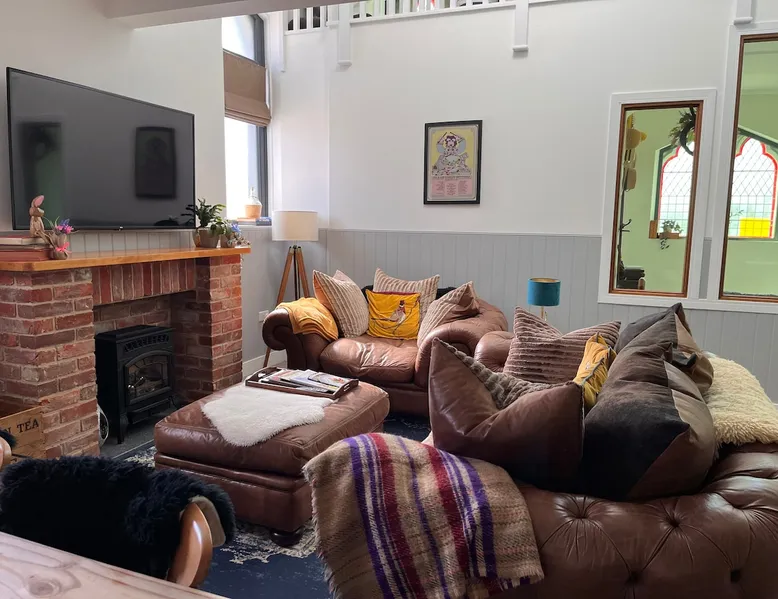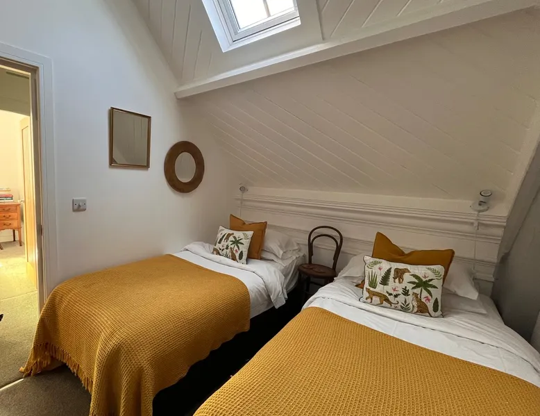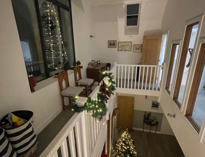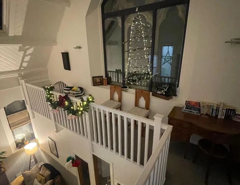 A beautifully converted chapel. Bright, spacious and lovely views from gallery, also a peaceful workspace. Wi-Fi. Pineapple Room with kingsize bed. Jungle Room twin beds or king. Lovely bathroom with shower over bath. Spacious family room with fully equipped kitchen, dining and lounge. Downstairs cloakroom. Designated onsite parking for one car. Enclosed garden ( access across car park). Two housetrained dogs welcome, MUST book. No puppies. The space Upon entering The Old Chapel, built in 1902, you can't fail to notice the beautiful original tiled floor leading to a spacious hall where your adventure begins. Kick off your shoes, hang up your coat and breathe. There's plenty of room here to leave everything from walking boots and jackets to buckets and spades. This is a happy house, where many guests have returned again and again. The family room has a large smart TV and an Amazon Dot. Both bedrooms have smart TVs and Amazon Dots. The kitchen is fully equipped including all cutlery, crockery, cooking equipment, Dulce Gusto coffee maker,dishwasher, large fridge/freezer, washer/drier. The utility cupboard in the hall is where you’ll find the laundry basket, pegs, iron and mini ironing board and other housekeeping items you might need. Across the little car park, a gate leads into our private garden where you can relax and enjoy your morning coffee enjoying the fresh island air. Pull out washing line. Guest access Small completely fenced and gated , which can be bolted) garden backing on to fields. Perfect for little ones and/or four legged friends. Please note there is NO direct access from the chapel into the garden. Other things to note Ferry discounts as follows. Red Funnel 25% discount often available. (Other discounts available through the year. ) Wightlink - discounts often available but not high season. Tesco Club-card points. ( see their website) English Heritage and National Trust members get ferry discounts. ( see their website ). Blue Badge holders can claim 25% ferry discount. ( see website). Blue Light Card holders get approx. 15% ferry discount ( see their website for details). PARKING . There is a dedicated and free parking space for The Old Chapel. It is the middle space which is named. There is also free on street parking.