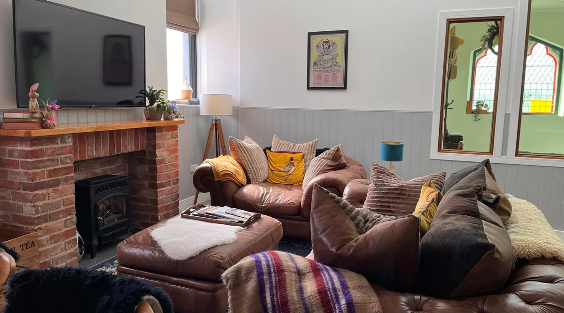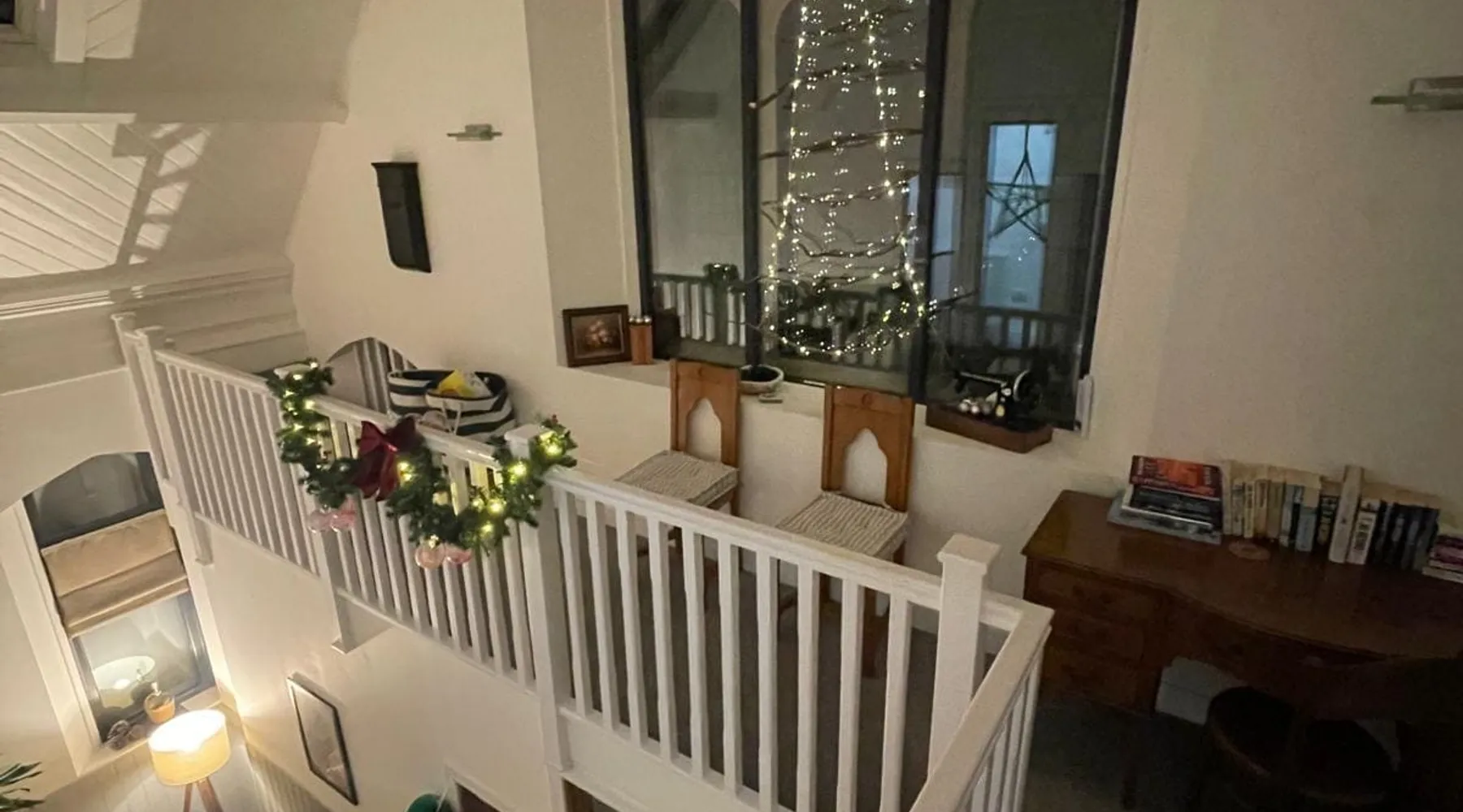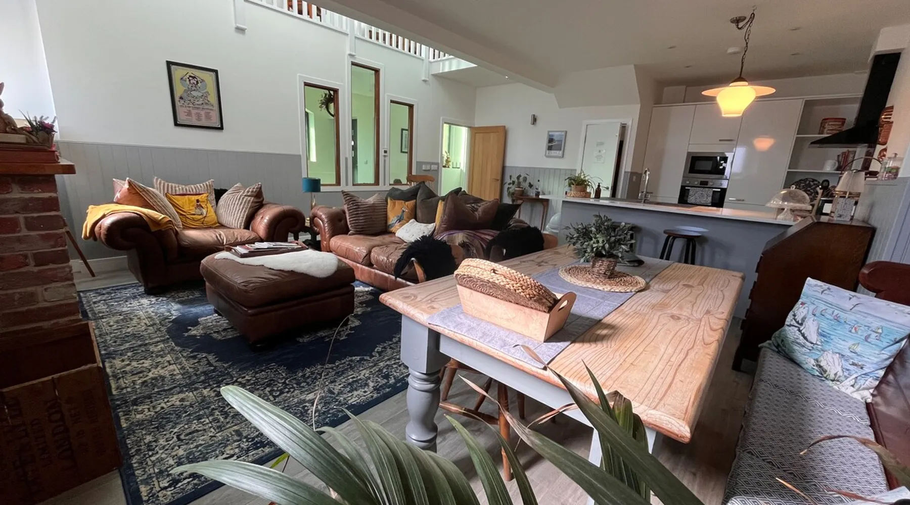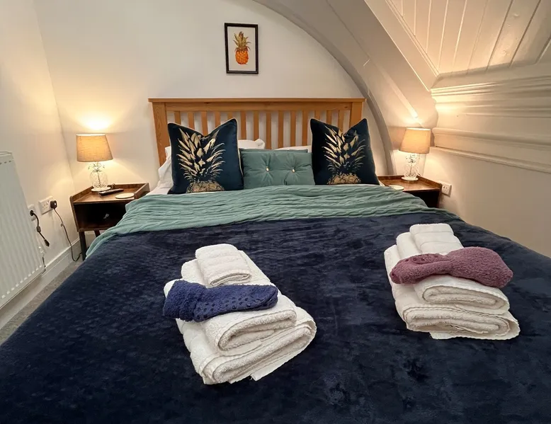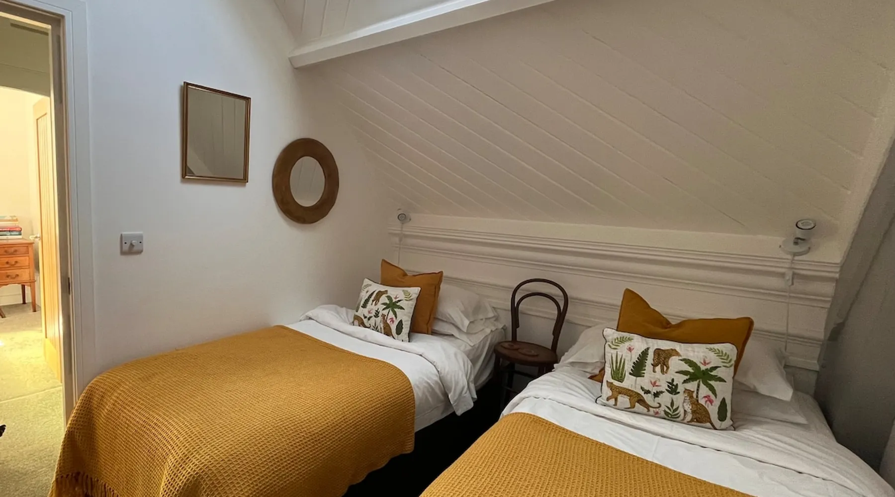 A beautifully converted chapel. Bright, spacious and lovely views from gallery, also a peaceful workspace. Wi-Fi. Pineapple Room with kingsize bed. Jungle Room twin beds or king. Lovely bathroom with shower over bath. Spacious family room with fully equipped kitchen, dining and lounge. Downstairs cloakroom. Designated onsite parking for one car. Enclosed garden ( access across car park). Two housetrained dogs welcome, MUST book. No puppies. The space Upon entering The Old Chapel, built in 1902, you can't fail to notice the beautiful original tiled floor leading to a spacious hall where your adventure begins. Kick off your shoes, hang up your coat and breathe. There's plenty of room here to leave everything from walking boots and jackets to buckets and spades. This is a happy house, where many guests have returned again and again. The family room has a large smart TV and an Amazon Dot. Both bedrooms have smart TVs and Amazon Dots. The kitchen is fully equipped including all cutlery, crockery, cooking equipment, Dulce Gusto coffee maker,dishwasher, large fridge/freezer, washer/drier. The utility cupboard in the hall is where you’ll find the laundry basket, pegs, iron and mini ironing board and other housekeeping items you might need. Across the little car park, a gate leads into our private garden where you can relax and enjoy your morning coffee enjoying the fresh island air. Pull out washing line. Guest access Small completely fenced and gated , which can be bolted) garden backing on to fields. Perfect for little ones and/or four legged friends. Please note there is NO direct access from the chapel into the garden. Other things to note Ferry discounts as follows. Red Funnel 25% discount often available. (Other discounts available through the year. ) Wightlink - discounts often available but not high season. Tesco Club-card points. ( see their website) English Heritage and National Trust members get ferry discounts. ( see their website ). Blue Badge holders can claim 25% ferry discount. ( see website). Blue Light Card holders get approx. 15% ferry discount ( see their website for details). PARKING . There is a dedicated and free parking space for The Old Chapel. It is the middle space which is named. There is also free on street parking.