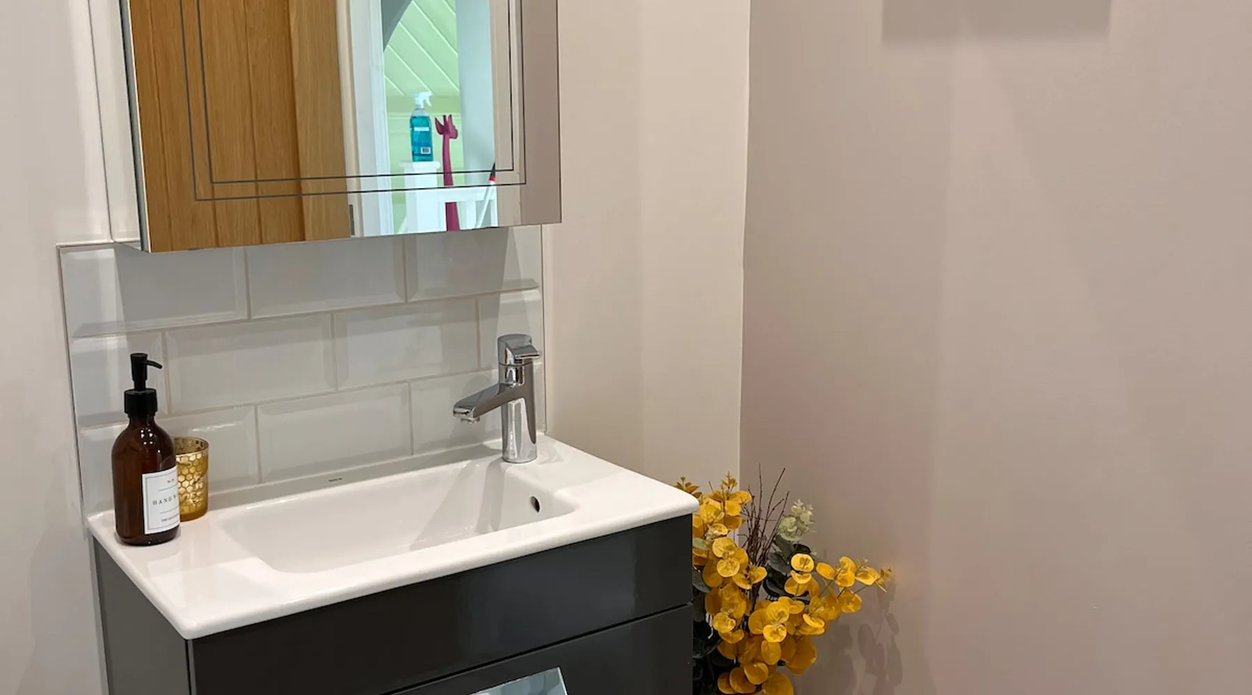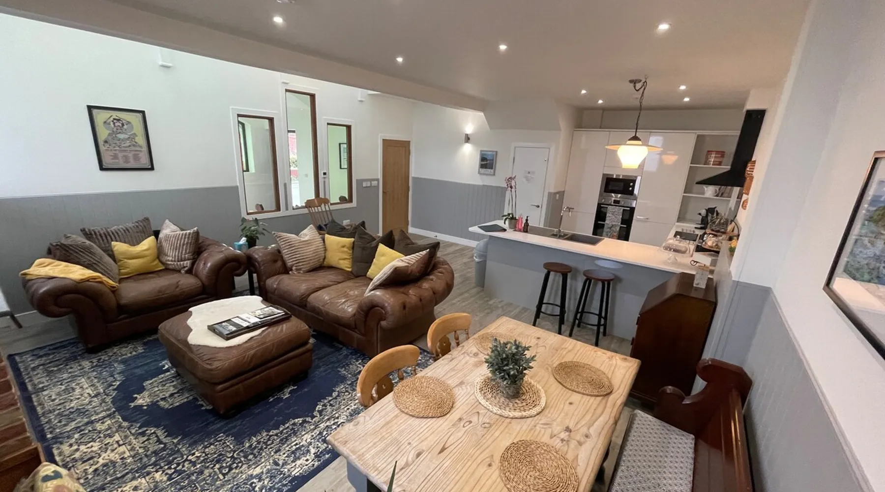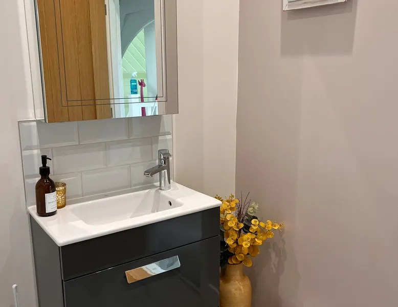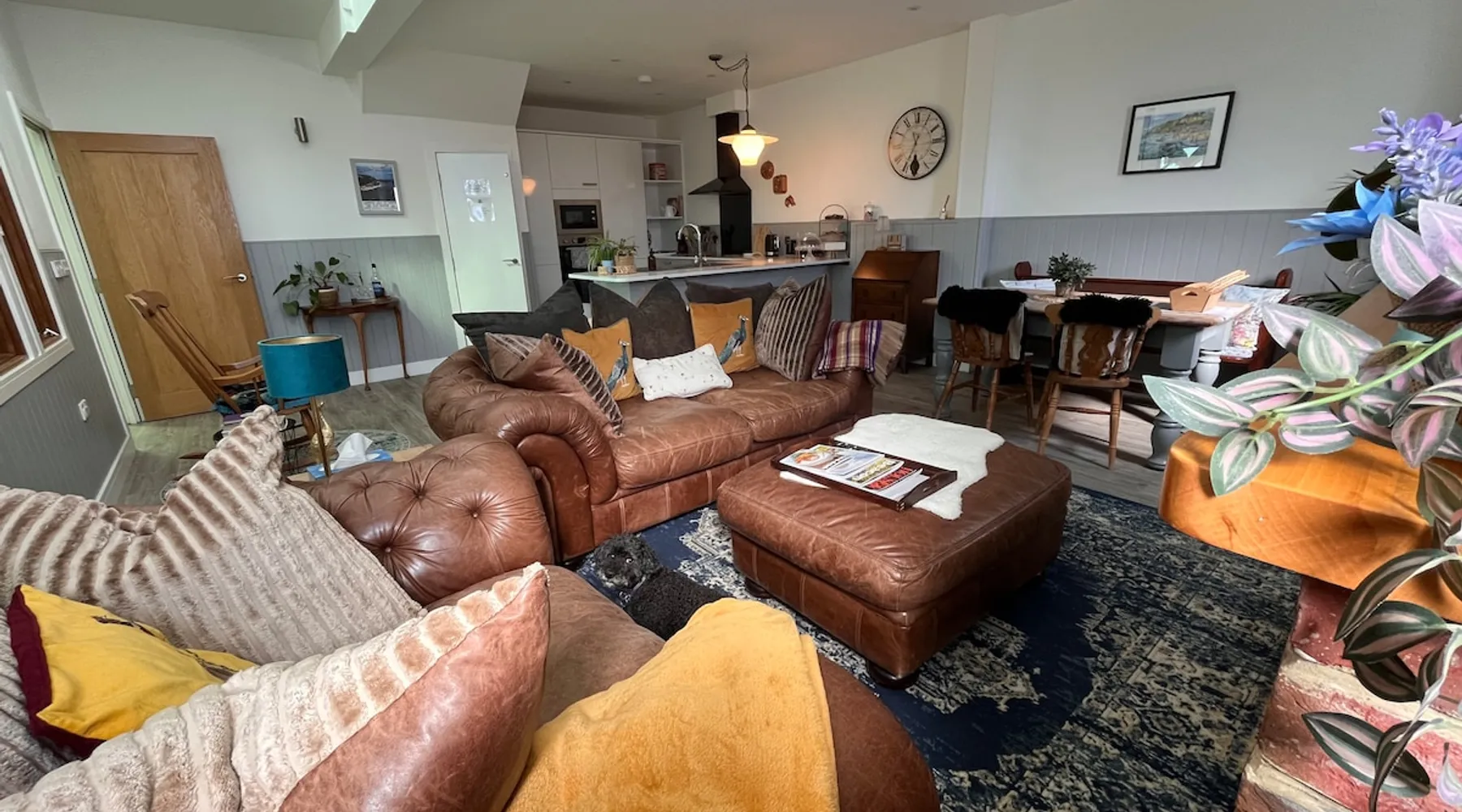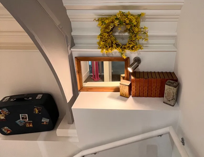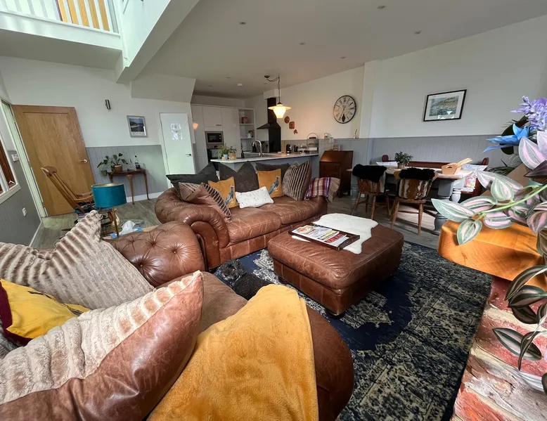 A beautifully converted chapel. Bright, spacious and lovely views from gallery, also a peaceful workspace. Wi-Fi. Pineapple Room with kingsize bed. Jungle Room twin beds or king. Lovely bathroom with shower over bath. Spacious family room with fully equipped kitchen, dining and lounge. Downstairs cloakroom. Designated onsite parking for one car. Enclosed garden ( access across car park). Two housetrained dogs welcome, MUST book. No puppies. The space Upon entering The Old Chapel, built in 1902, you can't fail to notice the beautiful original tiled floor leading to a spacious hall where your adventure begins. Kick off your shoes, hang up your coat and breathe. There's plenty of room here to leave everything from walking boots and jackets to buckets and spades. This is a happy house, where many guests have returned again and again. The family room has a large smart TV and an Amazon Dot. Both bedrooms have smart TVs and Amazon Dots. The kitchen is fully equipped including all cutlery, crockery, cooking equipment, Dulce Gusto coffee maker,dishwasher, large fridge/freezer, washer/drier. The utility cupboard in the hall is where you’ll find the laundry basket, pegs, iron and mini ironing board and other housekeeping items you might need. Across the little car park, a gate leads into our private garden where you can relax and enjoy your morning coffee enjoying the fresh island air. Pull out washing line. Guest access Small completely fenced and gated , which can be bolted) garden backing on to fields. Perfect for little ones and/or four legged friends. Please note there is NO direct access from the chapel into the garden. Other things to note Ferry discounts as follows. Red Funnel 25% discount often available. (Other discounts available through the year. ) Wightlink - discounts often available but not high season. Tesco Club-card points. ( see their website) English Heritage and National Trust members get ferry discounts. ( see their website ). Blue Badge holders can claim 25% ferry discount. ( see website). Blue Light Card holders get approx. 15% ferry discount ( see their website for details). PARKING . There is a dedicated and free parking space for The Old Chapel. It is the middle space which is named. There is also free on street parking.