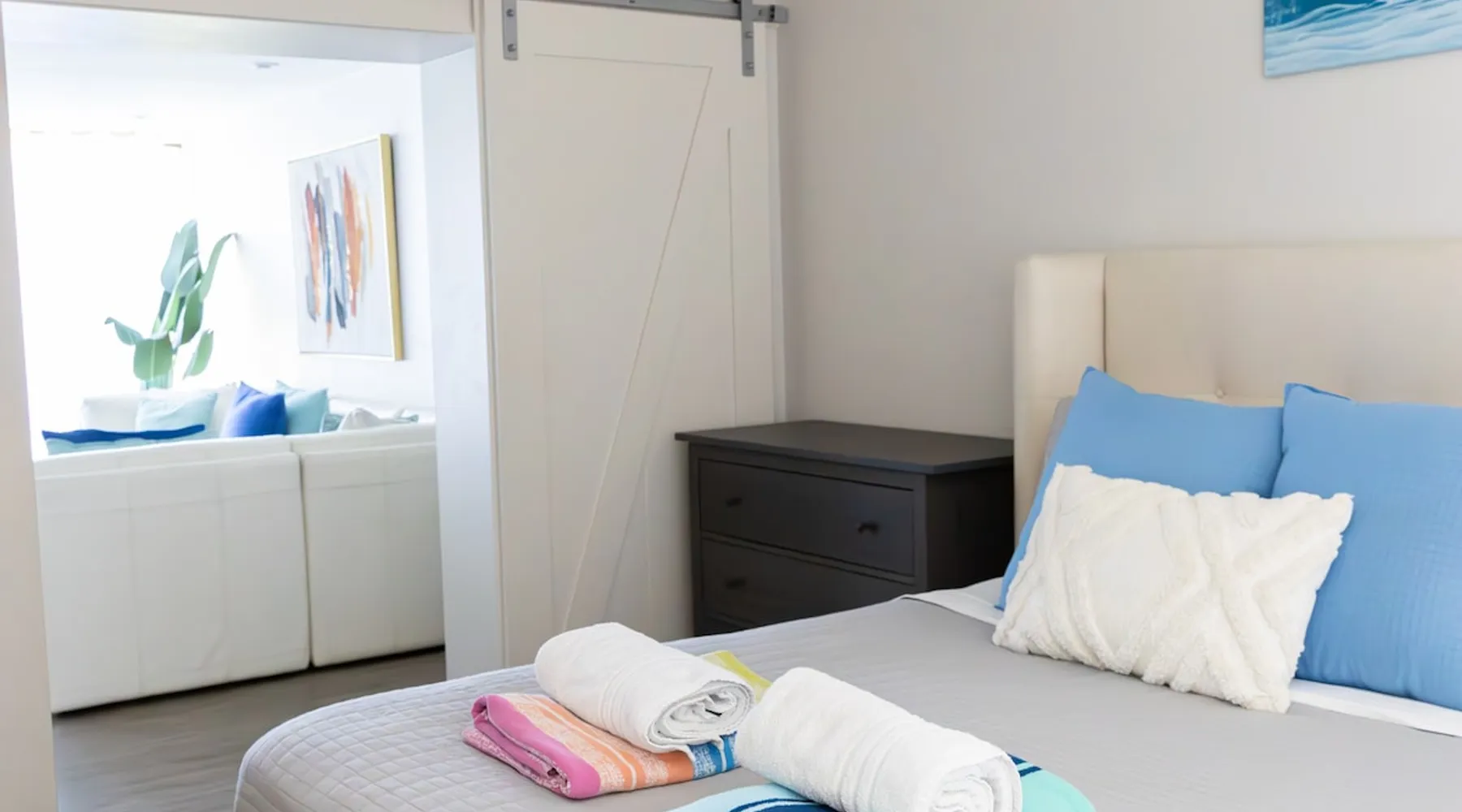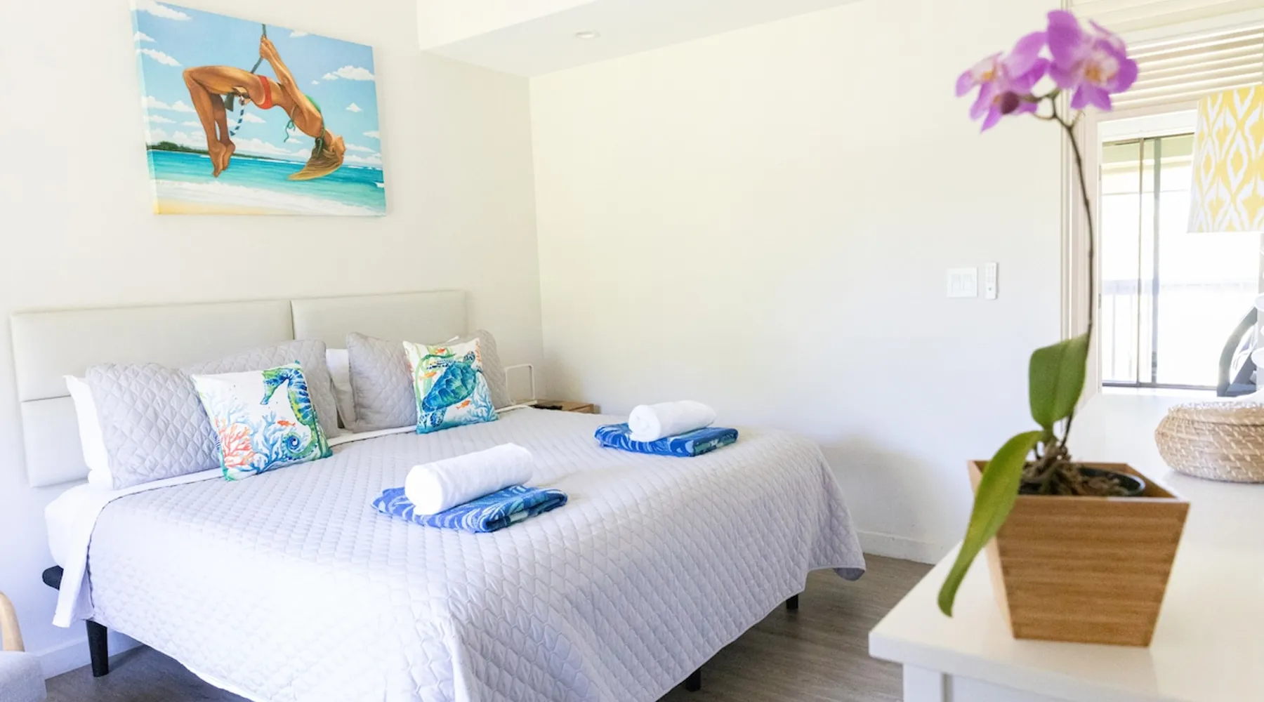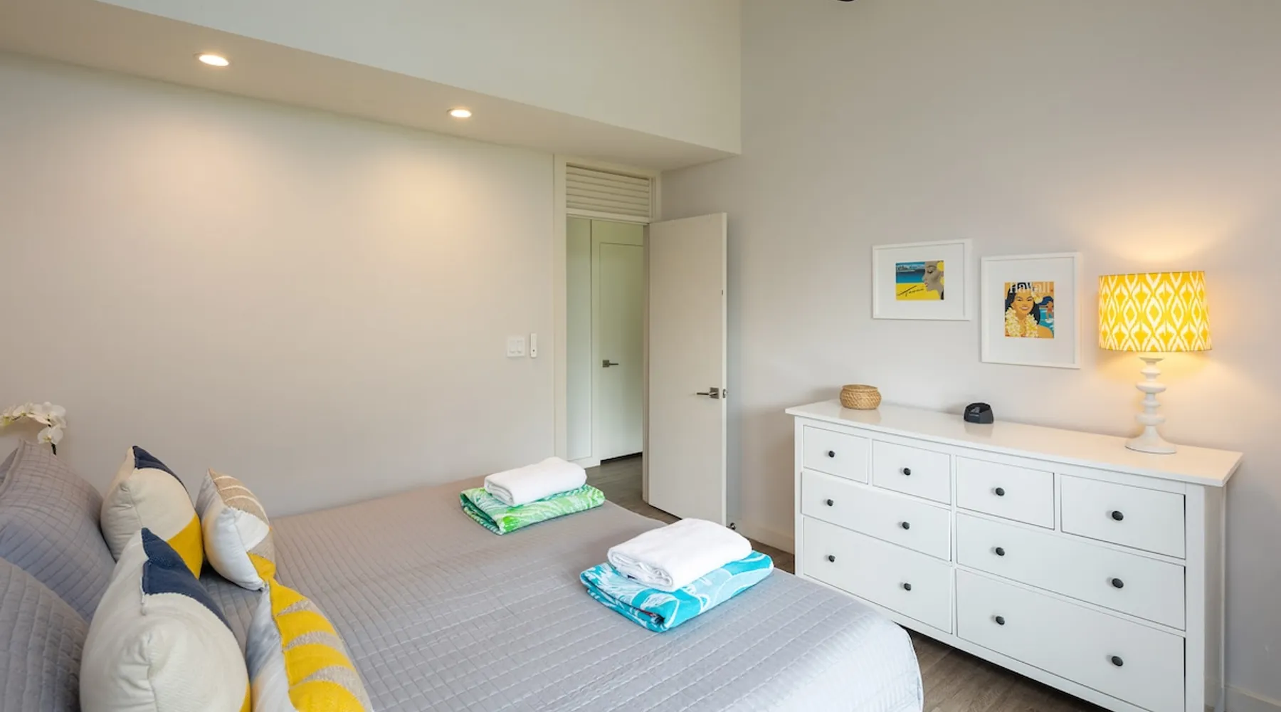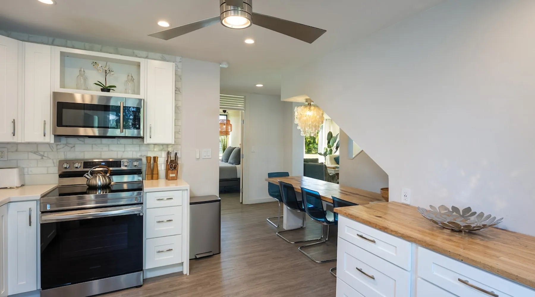 Our bright and breezy Kuilima West condo is located steps away from Turtle Bay Resort, Lei Lei's restaurant, walking trails, golf, and the beautiful beaches of Oahu's North Shore. With two Tempur-Pedic king beds and AC in all bedrooms and the living room, you can enjoy your time inside as much as out. Our space is family-friendly with a beach-modern vibe, decorated with pieces by local artists. We are excited to share our home with you - it truly is the best place to stay on the North Shore! The space Discover the beauty of Oahu's North Shore, from the miles of sparkling coastline to the serene sunsets over the ocean. This is Hale Kuilima, your island home away from home. Haiku fans and AC keep you cool when the island breeze isn't blowing; room-darkening curtains and white noise machines in every bedroom make it easy to snooze after the day's adventures. Upstairs, away from the hustle and bustle of the living room/kitchen is a Tempur-Pedic king-sized bed in one room; two sets of bunk beds (the kid's room) with full-sized mattresses on the bottom in the other room; and a full bathroom. The downstairs bedroom has another Tempur-Pedic split king bed with a power base for getting comfy while reading or watching a movie. A queen-sized bed and a custom-made monkeypod desk are in the den for those who need to check in on the office or just escape to surf the web. The kitchen comes fully-equipped with new appliances and cookware, so you can cook delicious family meals when you aren't enjoying one of the many restaurants onsite or nearby. We also have a coffee machine and Keurig so you can catch the sunrise on the beach with a coffee in hand. The living room has a large sofa and armchairs, and is stocked with board games and Hawaii-themed movies - perfect for enjoying an evening in... or fire up the barbecue and gather on the private patio to enjoy the warm tropical evenings. Feel free to use our beach chairs and toys for the keiki - we even have a wagon to bring it all with you! When it's time to come home, rinse off salt and sand in the refreshing hot/cold outdoor shower. Pools and tennis are steps away and free for guests. Best of all, you are away from the city and free to enjoy the miles of beaches, lovely golf course views, and Turtle Bay resort life. * We have many baby items on hand and available free of charge. Please let us know at the time of booking if you would like a highchair, booster, pack n play or bassinet, baby monitor, infant tub, Lovevery play gym for babies, or baby dish drying rack. * Larger groups: please inquire - we have good relationships with many neighbors who have rental listings and we are happy to work with you to coordinate nearby rentals so you and your friends/family can rent close together. Layout: Bedroom 1: Upstairs king bed with mountain views (overlooking the patio). Bedroom 2: Upstairs twin-over-full bunk beds with golf course views. Bedroom 3: Downstairs king bed with television and direct golf course access and view. Den: Workspace (desk) and a queen bed. Short Term Rental Registration #2355 Other things to note There is no smoking anywhere on the property, including the patio area (property rules). Registration Details 570010290007, 7, TA-095-490-2528-01