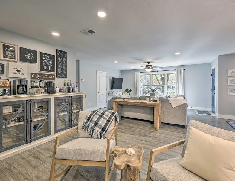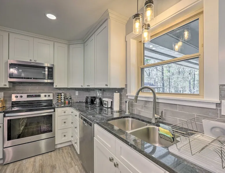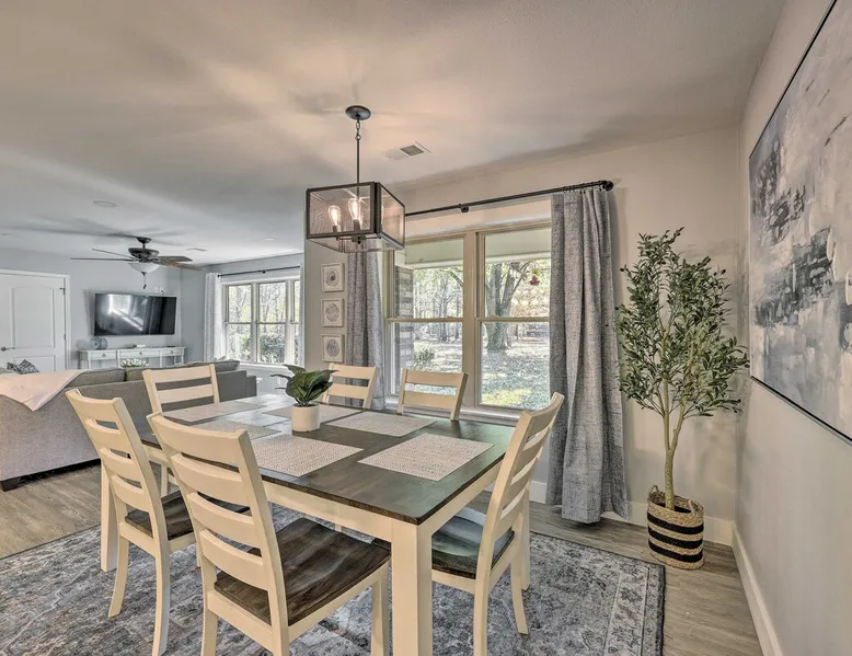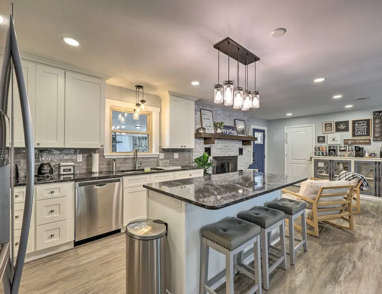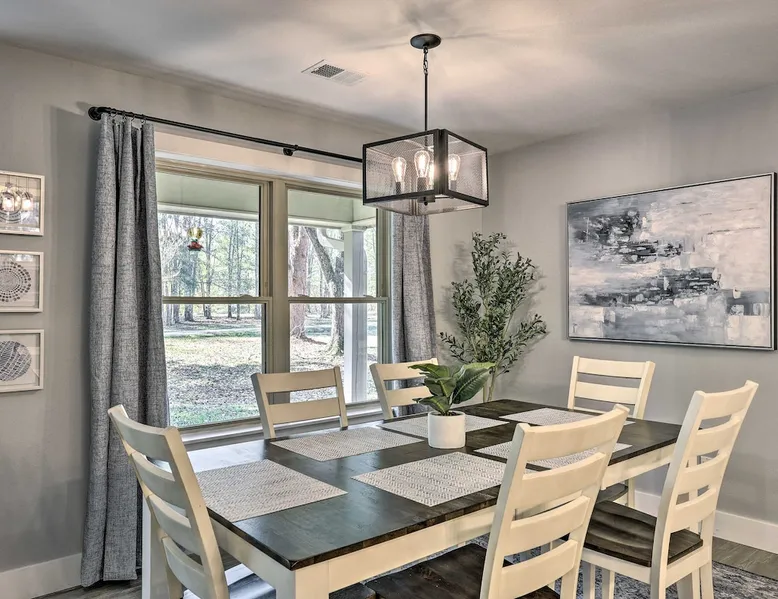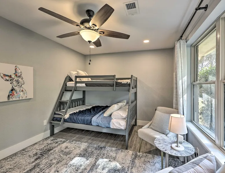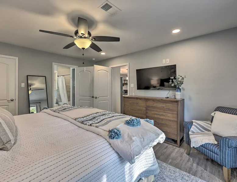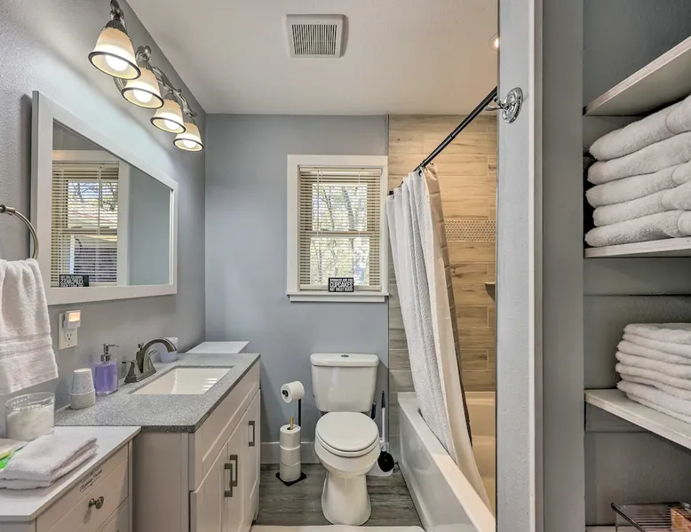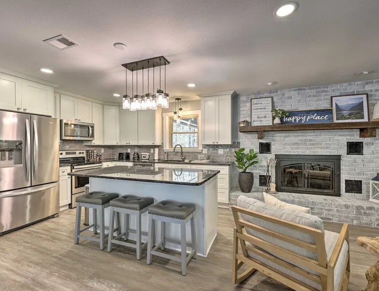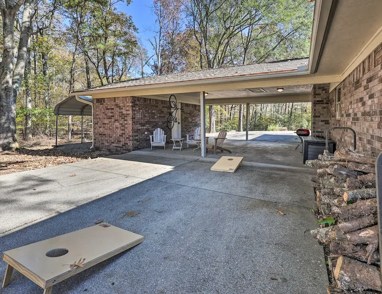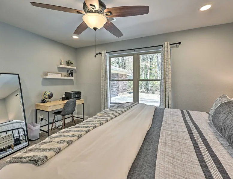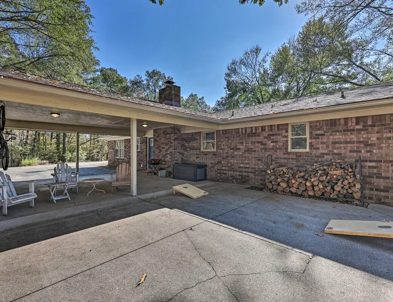 Your adventure begins at ‘Hidden Creek’ in Royal! This semi-secluded hideaway offers a private setting with a modern interior sure to please your entire crew. The 3-bedroom, 2-bathroom vacation rental home is conveniently close to Arkansas’ most scenic places, such as Lake Hamilton, and not far from all the happenings in Hot Springs. After an eventful day, retreat to this gem for a home-cooked meal and explore the nearby creek. Other perks include at-home laundry, a fireplace, and a coffee bar. The space Stocked Coffee Bar | Near Public Boat Launch | Seasonal Creek & Walking Trail On-Site Bedroom 1: King Bed | Bedroom 2: King Bed | Bedroom 3: Twin/Full Bunk Bed | Additional Sleeping: Pack ‘n Play OUTDOOR LIVING: Patio, seating/dining area, charcoal grill, hammocks, bicycle, horseshoes INDOOR LIVING: Smart TVs, wood-burning fireplace, board games, books, ceiling fans, walk-in closet, open living space KITCHEN: Stainless steel appliances, dishwasher, stove/oven, microwave, refrigerator, drip coffee maker, Keurig coffee maker, French press, toaster, dishware + flatware, blender, Crockpot, cooking basics, trash bags + paper towels, complimentary spices, ice maker, water filter, booster seat, bar seating GENERAL: Free WiFi (laptop friendly), washer + dryer, iron/board, central A/C + heating, towels/linens, complimentary toiletries/shampoo, clothes steamer, laundry detergent, hangers, hair dryer, keyless entry SUITABILITY: Half step to enter PARKING: Driveway (2 vehicles), carport (2 vehicles), RV/trailer/boat parking allowed on-site Guest access Guests will have access to the entire property via keyless entry Other things to note - No smoking - No pets allowed - No events, parties, or large gatherings - Additional fees and taxes may apply - Photo ID may be required upon check-in - NOTE: The property requires a half step to enter