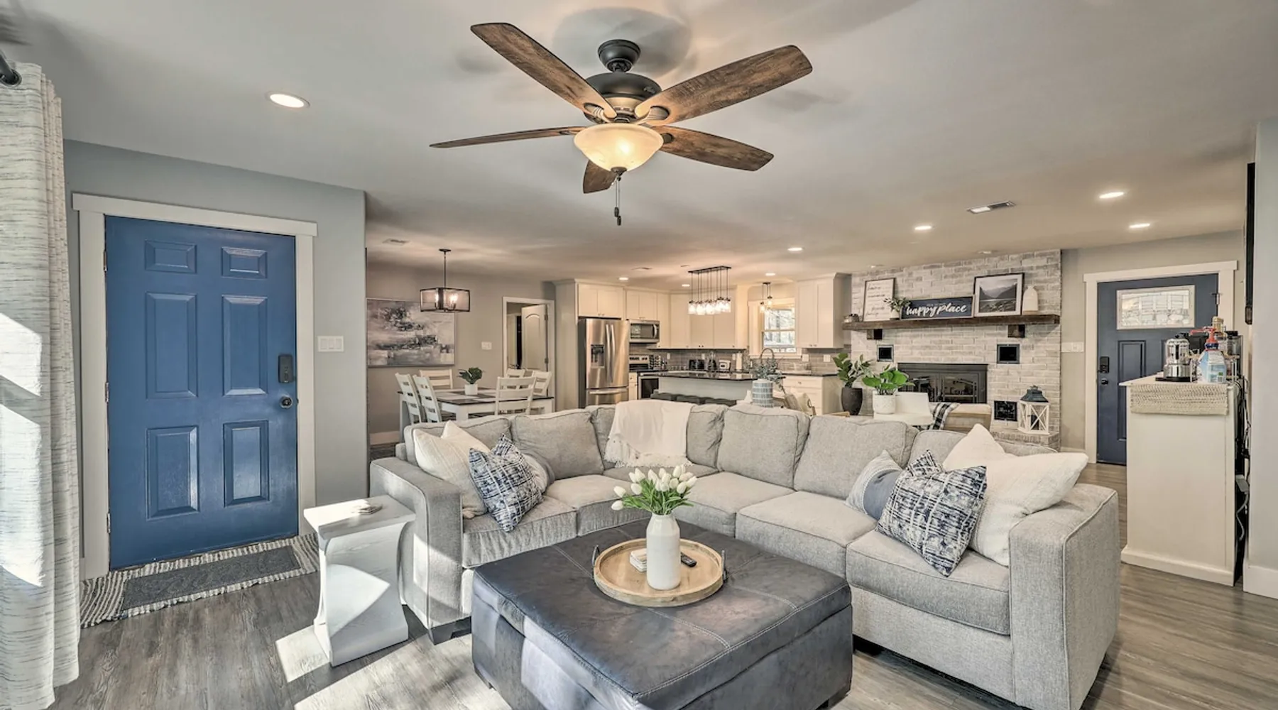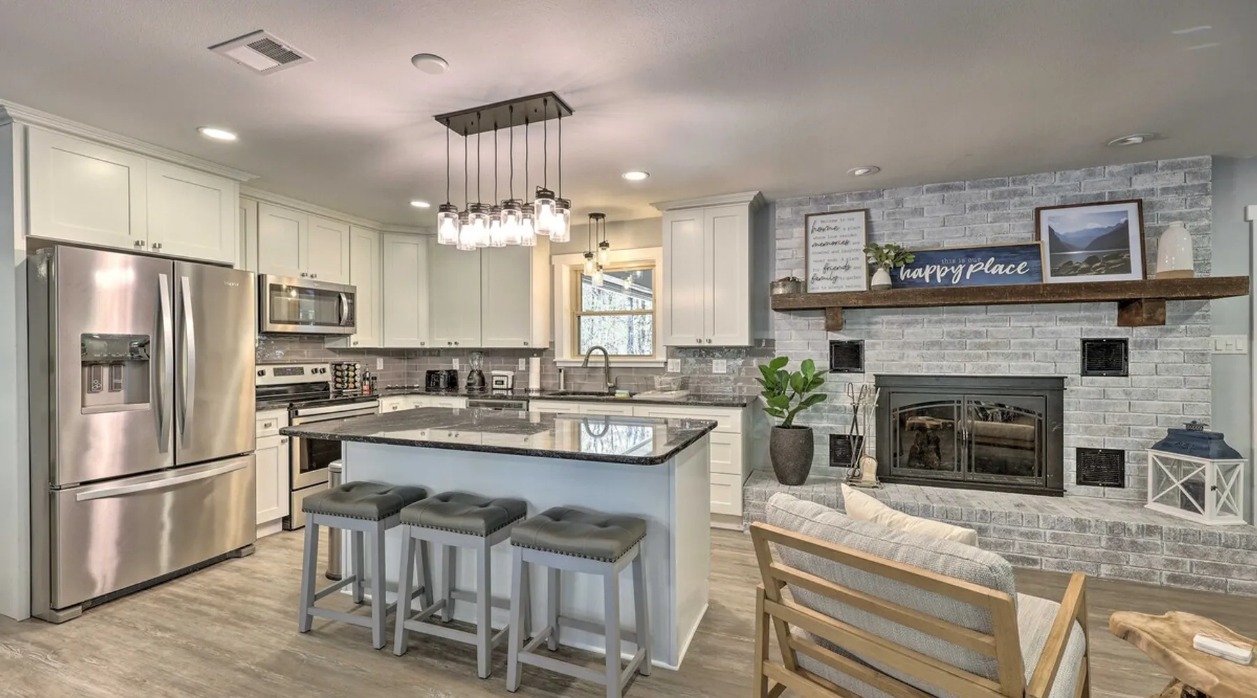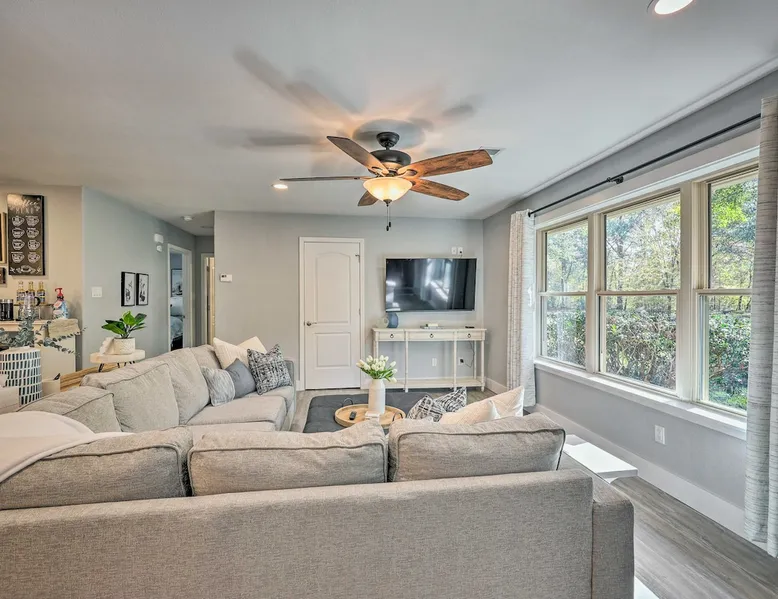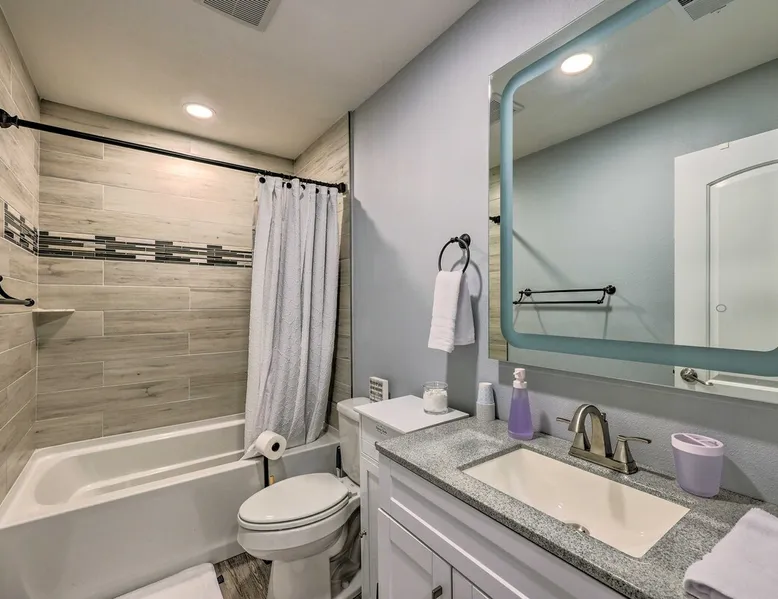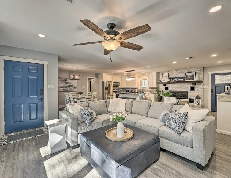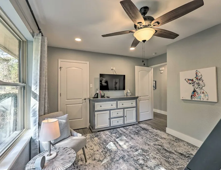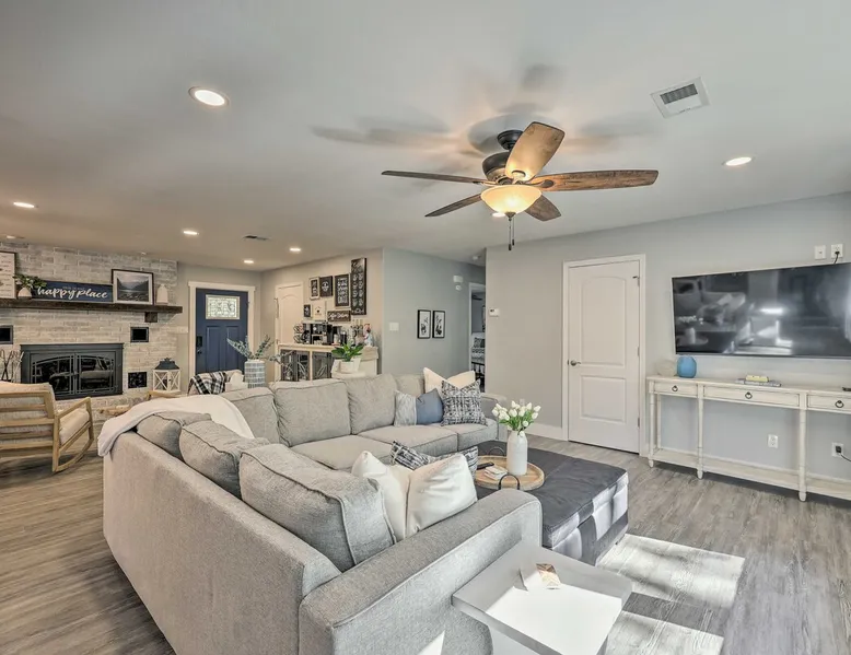 Your adventure begins at ‘Hidden Creek’ in Royal! This semi-secluded hideaway offers a private setting with a modern interior sure to please your entire crew. The 3-bedroom, 2-bathroom vacation rental home is conveniently close to Arkansas’ most scenic places, such as Lake Hamilton, and not far from all the happenings in Hot Springs. After an eventful day, retreat to this gem for a home-cooked meal and explore the nearby creek. Other perks include at-home laundry, a fireplace, and a coffee bar. The space Stocked Coffee Bar | Near Public Boat Launch | Seasonal Creek & Walking Trail On-Site Bedroom 1: King Bed | Bedroom 2: King Bed | Bedroom 3: Twin/Full Bunk Bed | Additional Sleeping: Pack ‘n Play OUTDOOR LIVING: Patio, seating/dining area, charcoal grill, hammocks, bicycle, horseshoes INDOOR LIVING: Smart TVs, wood-burning fireplace, board games, books, ceiling fans, walk-in closet, open living space KITCHEN: Stainless steel appliances, dishwasher, stove/oven, microwave, refrigerator, drip coffee maker, Keurig coffee maker, French press, toaster, dishware + flatware, blender, Crockpot, cooking basics, trash bags + paper towels, complimentary spices, ice maker, water filter, booster seat, bar seating GENERAL: Free WiFi (laptop friendly), washer + dryer, iron/board, central A/C + heating, towels/linens, complimentary toiletries/shampoo, clothes steamer, laundry detergent, hangers, hair dryer, keyless entry SUITABILITY: Half step to enter PARKING: Driveway (2 vehicles), carport (2 vehicles), RV/trailer/boat parking allowed on-site Guest access Guests will have access to the entire property via keyless entry Other things to note - No smoking - No pets allowed - No events, parties, or large gatherings - Additional fees and taxes may apply - Photo ID may be required upon check-in - NOTE: The property requires a half step to enter