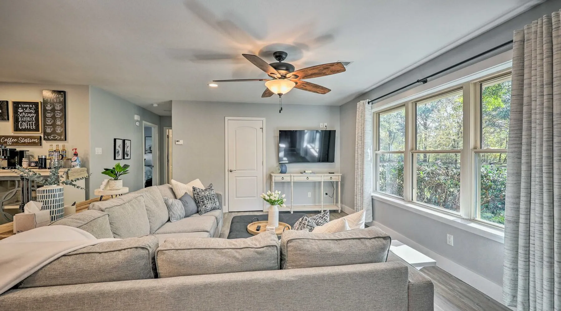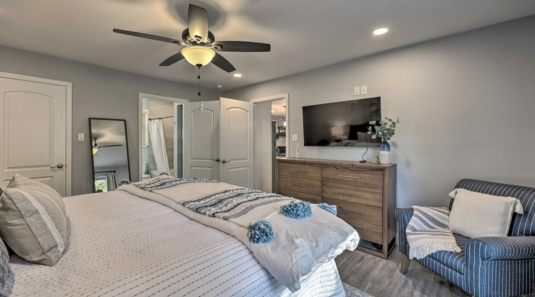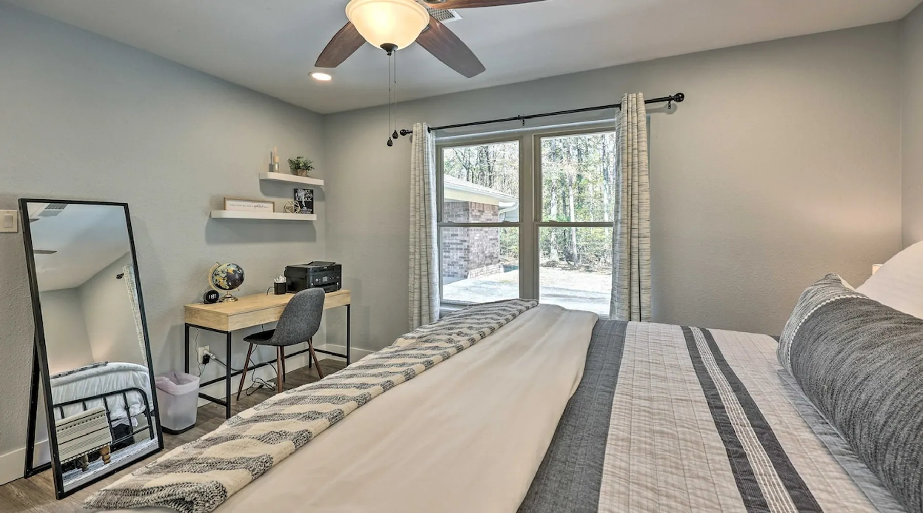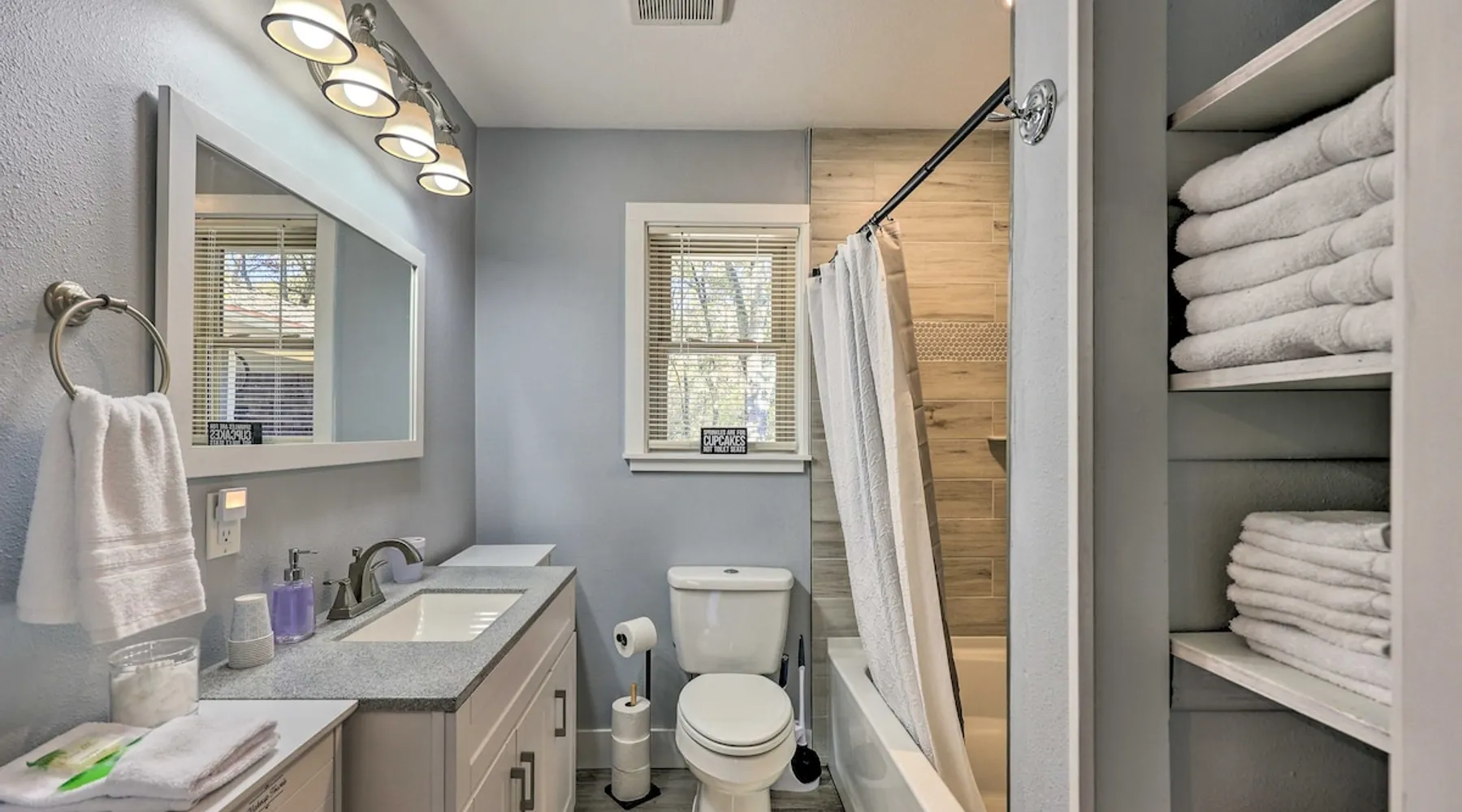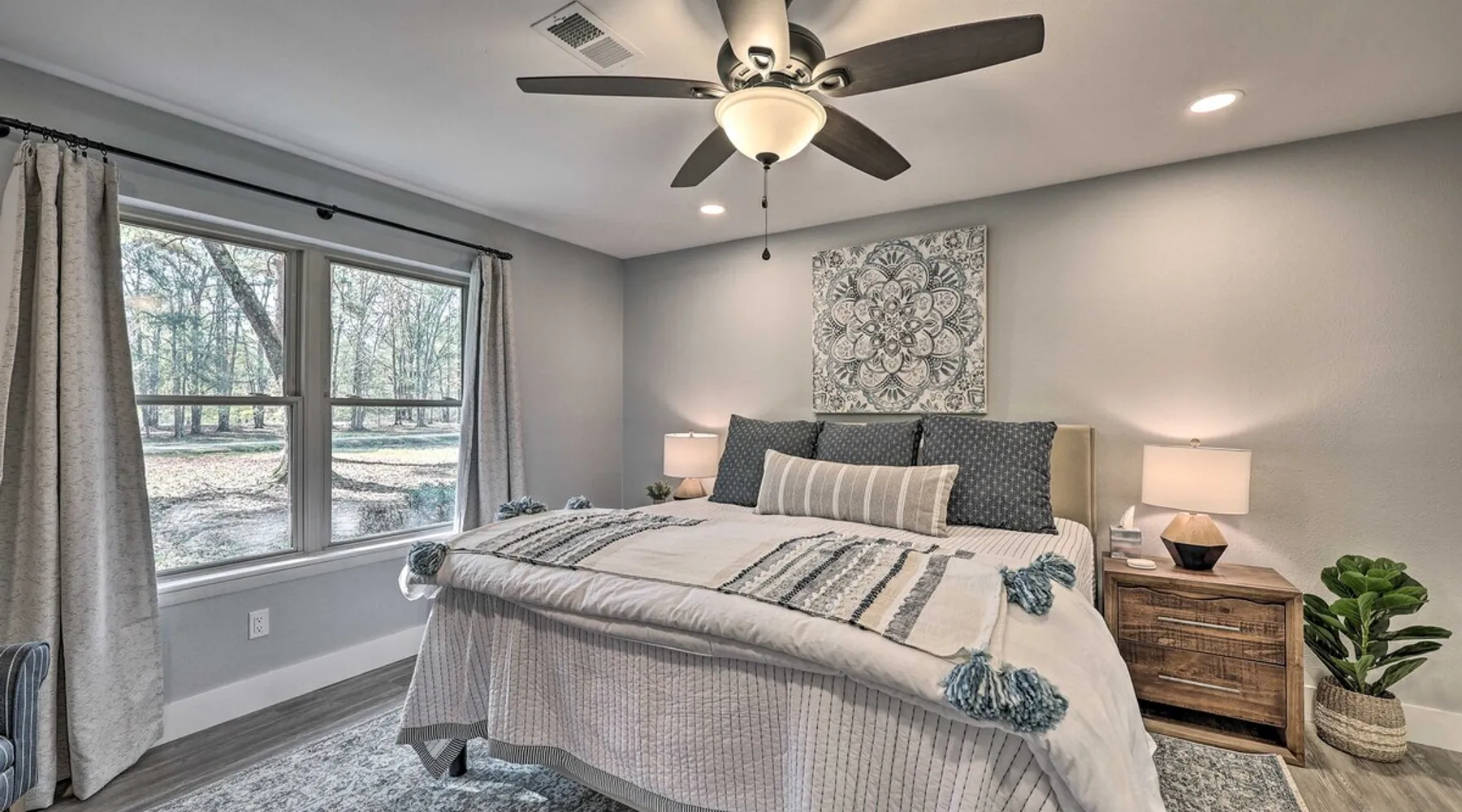 Your adventure begins at ‘Hidden Creek’ in Royal! This semi-secluded hideaway offers a private setting with a modern interior sure to please your entire crew. The 3-bedroom, 2-bathroom vacation rental home is conveniently close to Arkansas’ most scenic places, such as Lake Hamilton, and not far from all the happenings in Hot Springs. After an eventful day, retreat to this gem for a home-cooked meal and explore the nearby creek. Other perks include at-home laundry, a fireplace, and a coffee bar. The space Stocked Coffee Bar | Near Public Boat Launch | Seasonal Creek & Walking Trail On-Site Bedroom 1: King Bed | Bedroom 2: King Bed | Bedroom 3: Twin/Full Bunk Bed | Additional Sleeping: Pack ‘n Play OUTDOOR LIVING: Patio, seating/dining area, charcoal grill, hammocks, bicycle, horseshoes INDOOR LIVING: Smart TVs, wood-burning fireplace, board games, books, ceiling fans, walk-in closet, open living space KITCHEN: Stainless steel appliances, dishwasher, stove/oven, microwave, refrigerator, drip coffee maker, Keurig coffee maker, French press, toaster, dishware + flatware, blender, Crockpot, cooking basics, trash bags + paper towels, complimentary spices, ice maker, water filter, booster seat, bar seating GENERAL: Free WiFi (laptop friendly), washer + dryer, iron/board, central A/C + heating, towels/linens, complimentary toiletries/shampoo, clothes steamer, laundry detergent, hangers, hair dryer, keyless entry SUITABILITY: Half step to enter PARKING: Driveway (2 vehicles), carport (2 vehicles), RV/trailer/boat parking allowed on-site Guest access Guests will have access to the entire property via keyless entry Other things to note - No smoking - No pets allowed - No events, parties, or large gatherings - Additional fees and taxes may apply - Photo ID may be required upon check-in - NOTE: The property requires a half step to enter