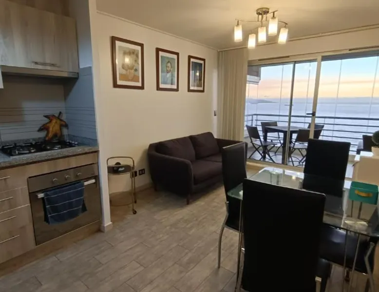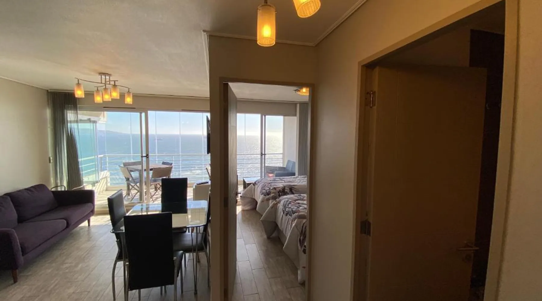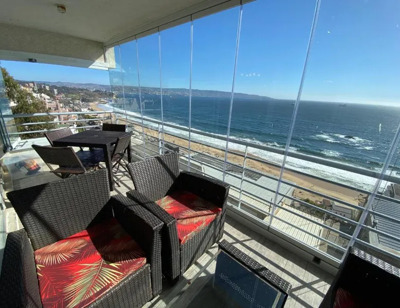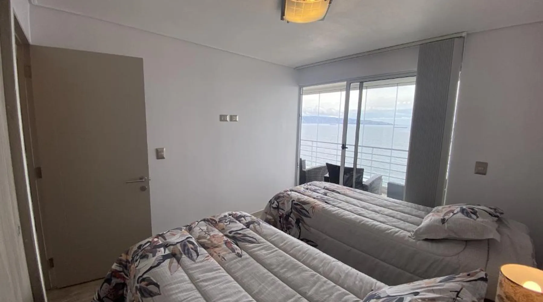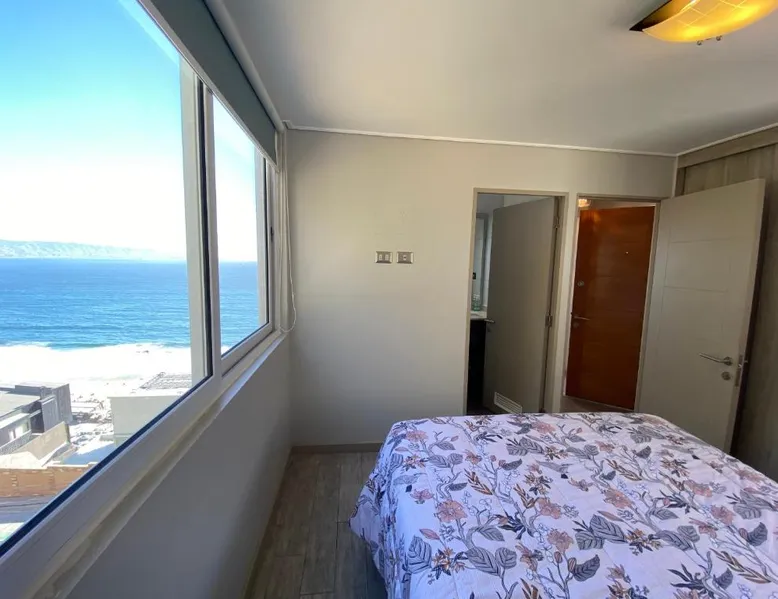 Beachfront Location: Pacífico Bellavista Sector 5 in Viña del Mar offers direct beachfront access, a lush garden, and a spacious terrace. Guests enjoy free WiFi throughout the apartment. Spacious Accommodations: The apartment features two bedrooms, two bathrooms, and a comfortable living room. Amenities include a fully equipped kitchen with a refrigerator, microwave, oven, and stovetop. Additional facilities include a balcony, terrace, and work desk. Convenient Services: The property provides free on-site private parking, a elevator, 24-hour front desk, and full-day security. Reception staff speak English and Spanish. Nearby Attractions: Reñaca Beach is a 7-minute walk away, Cochoa Beach 0.6 mi, and Mall Plaza Reñaca 13-minute walk. Other activities include fishing, walking tours, bike tours, windsurfing, hiking, cycling, and diving. This spacious apartment comes with 1 living room, 2 separate bedrooms and 2 bathrooms with a hairdryer. Meals can be prepared in the well-fitted kitchen, which features a stovetop, a refrigerator, an oven and a microwave. Boasting a terrace, this apartment also features a tea and coffee maker, heating and a flat-screen TV. The unit has 3 beds.