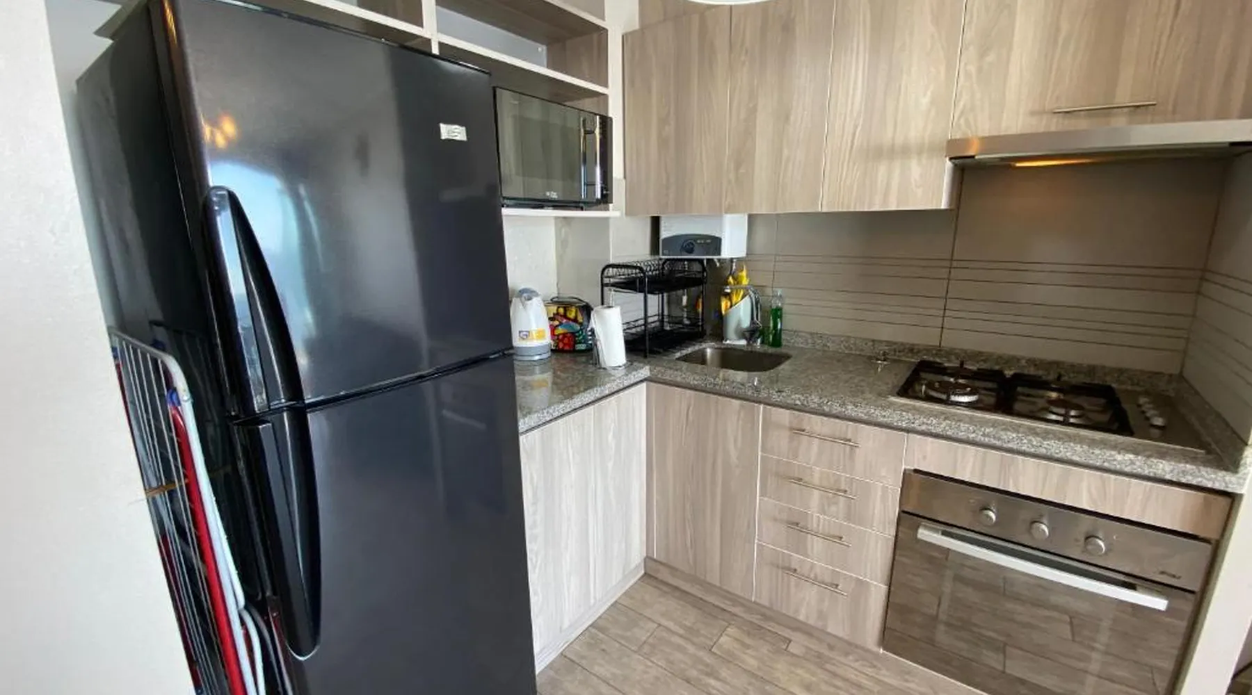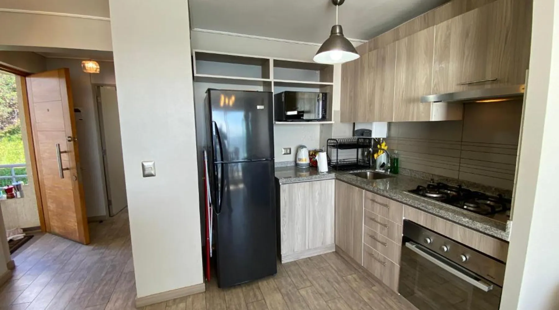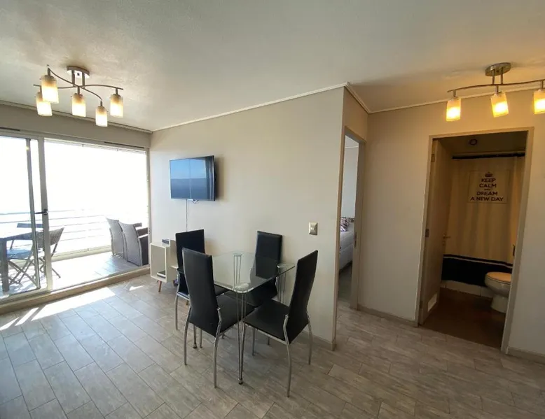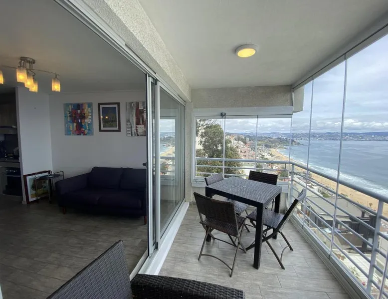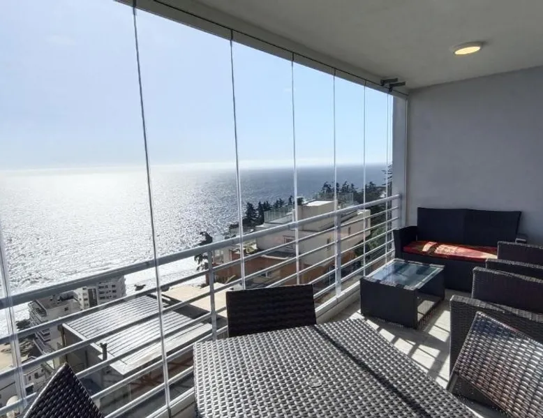 Beachfront Location: Pacífico Bellavista Sector 5 in Viña del Mar offers direct beachfront access, a lush garden, and a spacious terrace. Guests enjoy free WiFi throughout the apartment. Spacious Accommodations: The apartment features two bedrooms, two bathrooms, and a comfortable living room. Amenities include a fully equipped kitchen with a refrigerator, microwave, oven, and stovetop. Additional facilities include a balcony, terrace, and work desk. Convenient Services: The property provides free on-site private parking, a elevator, 24-hour front desk, and full-day security. Reception staff speak English and Spanish. Nearby Attractions: Reñaca Beach is a 7-minute walk away, Cochoa Beach 0.6 mi, and Mall Plaza Reñaca 13-minute walk. Other activities include fishing, walking tours, bike tours, windsurfing, hiking, cycling, and diving. This spacious apartment comes with 1 living room, 2 separate bedrooms and 2 bathrooms with a hairdryer. Meals can be prepared in the well-fitted kitchen, which features a stovetop, a refrigerator, an oven and a microwave. Boasting a terrace, this apartment also features a tea and coffee maker, heating and a flat-screen TV. The unit has 3 beds.