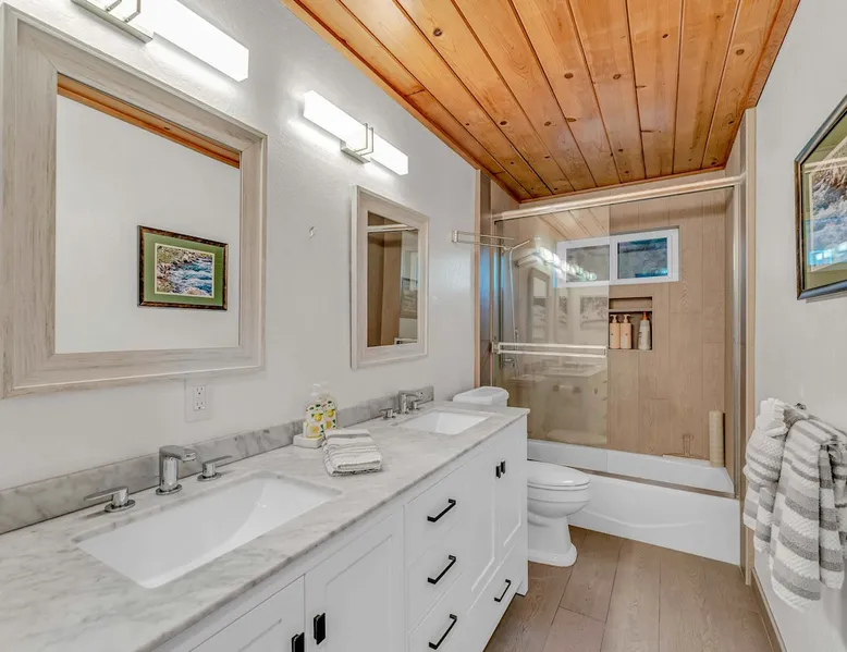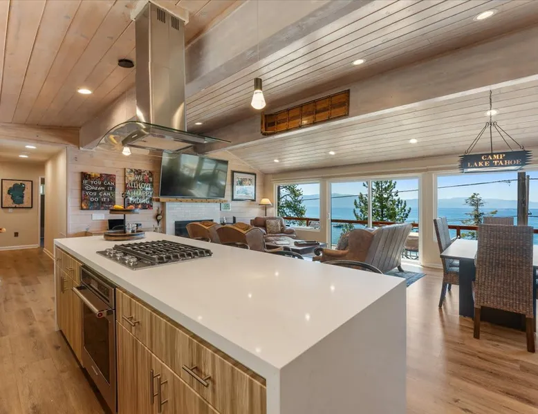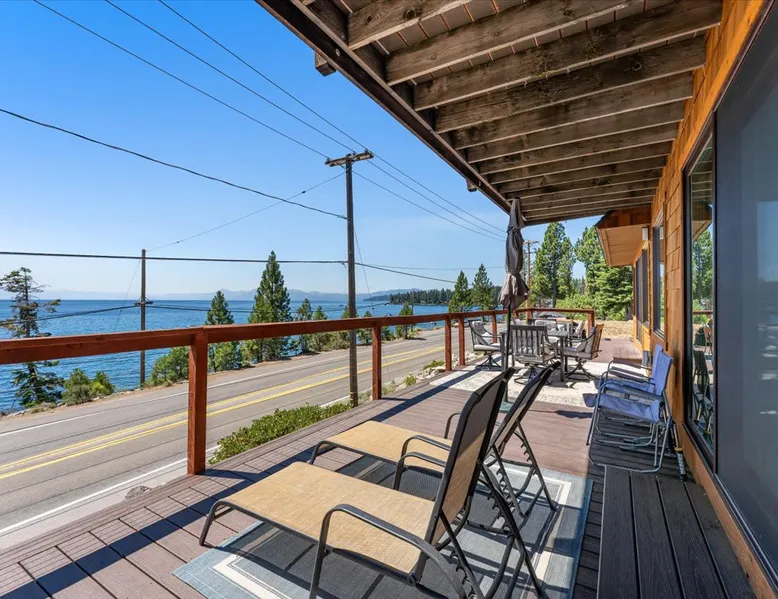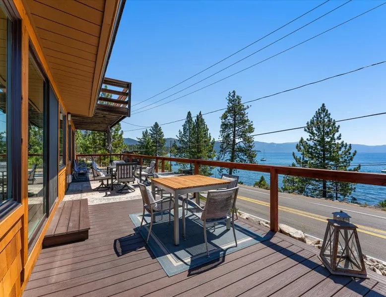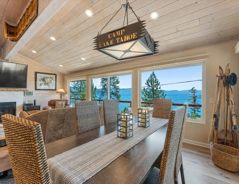 This 5-bedroom Tahoe retreat is just steps from the lake—relax by the water in under a 2 minute walk! Enjoy stunning lake views from two decks, unwind in one of two cozy living rooms, or explore nearby slopes, trails, and towns. Perfect for groups or families seeking comfort, convenience, and year-round adventure. With just a short drive to Kings Beach, Tahoe City, Northstar and Palisades, the perfect Tahoe getaway is at your fingertips. The space Location perks: Lake Tahoe (across the street), Small Rocky Beach Trail (0.1 miles), Tahoe City (6.0 miles), Kings Beach (6.2 miles), Northstar California Resort (15.8 miles) Interior: — Kitchen (fully equipped with cooking utensils, tableware, bar seating) — 2 living rooms (main and upper level) — Smart TV with streaming — Gas fireplace — Kitchenette (upper level) — Free WiFi — Central heat, no A/C — Square footage not specified Exterior: — Deck with lake views — Outdoor seating — On-site parking (details not specified) Main floor: Kitchen, dining area, living room, 3 bedrooms (1 with en-suite bathroom), 1 additional full bathroom Upper floor: Living room, kitchenette, 2 bedrooms, 1 full bathroom STR License Number: STR22-5839 Max Occupancy: 10 Parking Info: There are five spaces available. One spot inside the garage and four spots in the driveway. No street parking. Guest access Guests will have access to the entire home and 5 parking places, 1 inside the garage and 4 in the driveway. Other things to note The home is located on the main road and will experience road noise, but the central location and proximity to the lake is worth it! If you are renting this home from November through March, please remember that there may be winter driving conditions, and a 4-wheel drive with all-terrain tires or snow chains for your 2-wheel drive tires might be necessary for safe travel. Even if it hasn’t snowed in a few days, side roads can still be icy and have snow on them. Please also be aware of long travel times and pass closures due to winter weather conditions. This is a strict no-pet cabin, the owners have extreme allergies, so please do not ask - The answer will be no :), But please check out our Host page for our other pet-friendly homes! - Please note that grills and outdoor furniture are not available during the months of November to April due to snow. - This is a child-friendly rental, but it is your responsibility to bring all of the necessary equipment for their safety and comfort. There is not a fence or impassible barrier between the road and the lake access, so this could present a danger to small children. - If you are looking to party, please look elsewhere. This is a well-cared-for home full of nice things, and we are very close in proximity to our neighbors whom we know very well. If you are disrespectful, we will know and ask you to leave. Please keep in mind that if you plan to ski, you are responsible for verifying the ski resorts' opening and closing dates. Please note that the A/C does work, but may not successfully cool the upstairs rooms, which will be warmer than the rest of the home most of the time. Charcoal grills are strictly forbidden in this county and will result in a $1,500 citation if used. 4-wheel drive or 2-wheel drive tires with snow chains may be necessary for safe travel to this property, even if it hasn’t snowed in a few days.