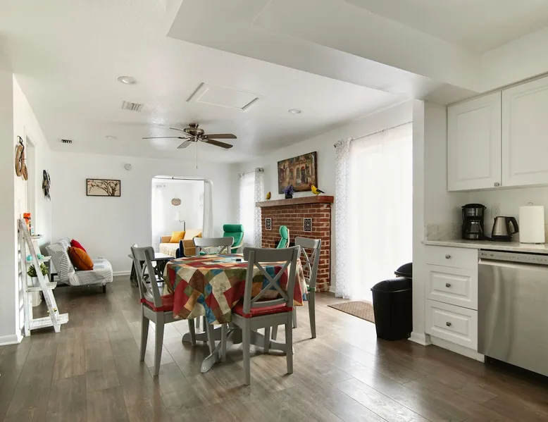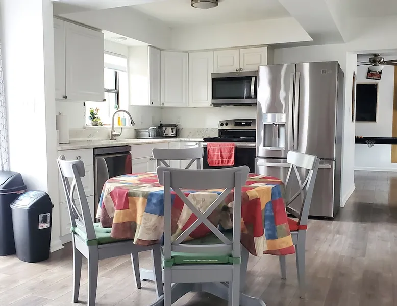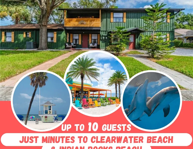 Huge duplex just minutes to Clearwater Beach & Indian Rocks Beach ! "Aruba" unit is fully equipped with amenities, fast wifi, connected TVs, Game room (pool table, darts, board games..), fenced & furnished backyard and free parking. Located in a charming and quiet neighborhood and close to the best the area has to offer (Marine Aquarium, Clearwater beach, Indian Rocks beach, Belleair beach, Sand Key Park, John's pass... and much more). The perfect gateway for your next holiday ! The space This spacious and comfy duplex has 2 units ("ARUBA" and "BERMUDA"). This listing is for "ARUBA" unit. The property, located in a green and quiet neighborhood, has a great location for beach & activity lovers and is close to everything ! Tampa International Airport (30 minutes) Clearwater Beach (6mil.) Sand Key Park & Beach (6mil.) Indian Rocks Beach (5mil.) Belleair Beach (3.6mil.) Busch Gardens (45 minutes) Orlando - Disney Parks (1h30) "ARUBA" is a family-friendly unit that can welcome up to 10 guests (9 ADULTS + 1 BABY) BEDROOMS - Bedroom 1 : 1 King bed & smart TV - Bedroom 2 : 1 Crib + Working Space with 1 desk & 1 office chair (Connected to Bedroom 1) - Bedroom 3 : 2 Twin beds - Bedroom 4 : 1 Queen bed See bedrooms description for details and pictures. BATHROOMS - Bathroom 1 : Full bathroom with shower & bathtub combination + toilet - Bathroom 2 : Full bathroom with shower + toilet LIVING ROOMS - Living room 1 : Fireplace (for decoration only) & sleeper sofa - Living room 2 : Sleeper sofa & Smart TV (Fitting sheets, duvets and pillows are stored inside the sleeper sofa in Living Room 2) KITCHEN Fully equipped kitchen (dishwasher, stove and oven, refrigerator with water & ice dispenser, freezer, microwave, toaster, coffee maker, kettle..) DINING AREA Dining space with extendable table GAME ROOM Pool table Board games stored in the living room under the TV Large closets in every rooms (ideal for long stay) Washer & dryer in the unit (Free use) Towels (Bath & Beach) Fast Wireless Internet Fenced & furnished backyard Free parking Every beds have mattress protection, fitting sheet, duvet with cover and pillows with pillow case (2 per person). Sleeper sofas (2) : fitting sheet, duvets with cover and pillows with pillow case are stored inside the wardrobe in bedroom 2 (with the crib). PROFESSIONAL CLEANING & SANITATION AFTER EACH CHECK-OUT "BERMUDA" unit, located right next door, can accommodate up to 12 guests. IMPORTANT NOTICE NO smoking or vaping inside the house NO party or event and NO disturbances after 10pm. Disturbances after 10pm can result in an EARLY termination of your stay with NO refund. Please respect the neighbors tranquility and take few seconds to read carefully our House Rules. NO weapon / firearm allowed in the property Cameras OUTSIDE the unit ONLY, looking at the front yard and street. NO camera inside the property or backyard. Delivery from Amazon or other platforms are not allowed. Only food deliveries are allowed. Please check your belongings before leaving. We do NOT ship forgotten items FEE for key lost or not returned : $150 Thanks ! Guest access This huge duplex includes 2 units, "ARUBA" and "BERMUDA". You will have your own unit, backyard and parking spots. Other things to note Perfect location for beach lovers : Clearwater Beach (6mil.) Sand Key Park & Beach (6mil.) Indian Rock Beach (5mil.) Belleair Beach (3.6mil.) Be respectful and enjoy your stay !