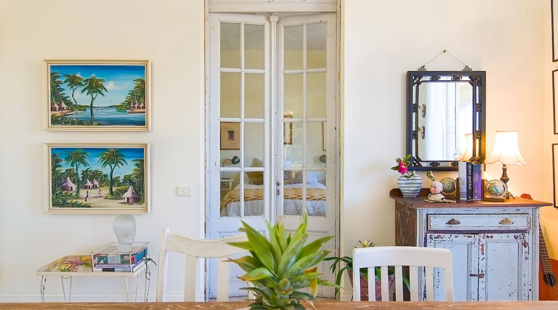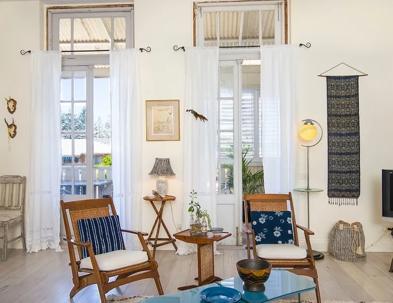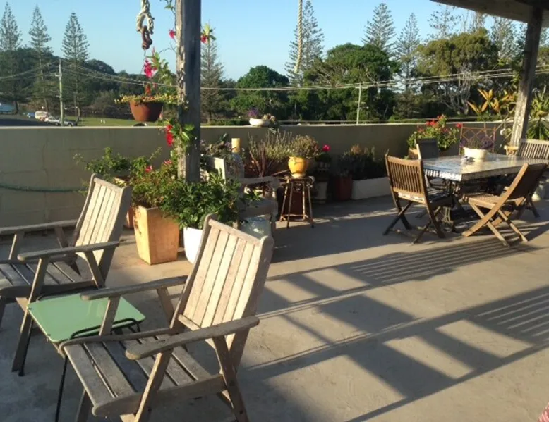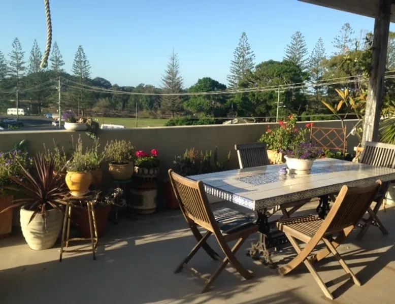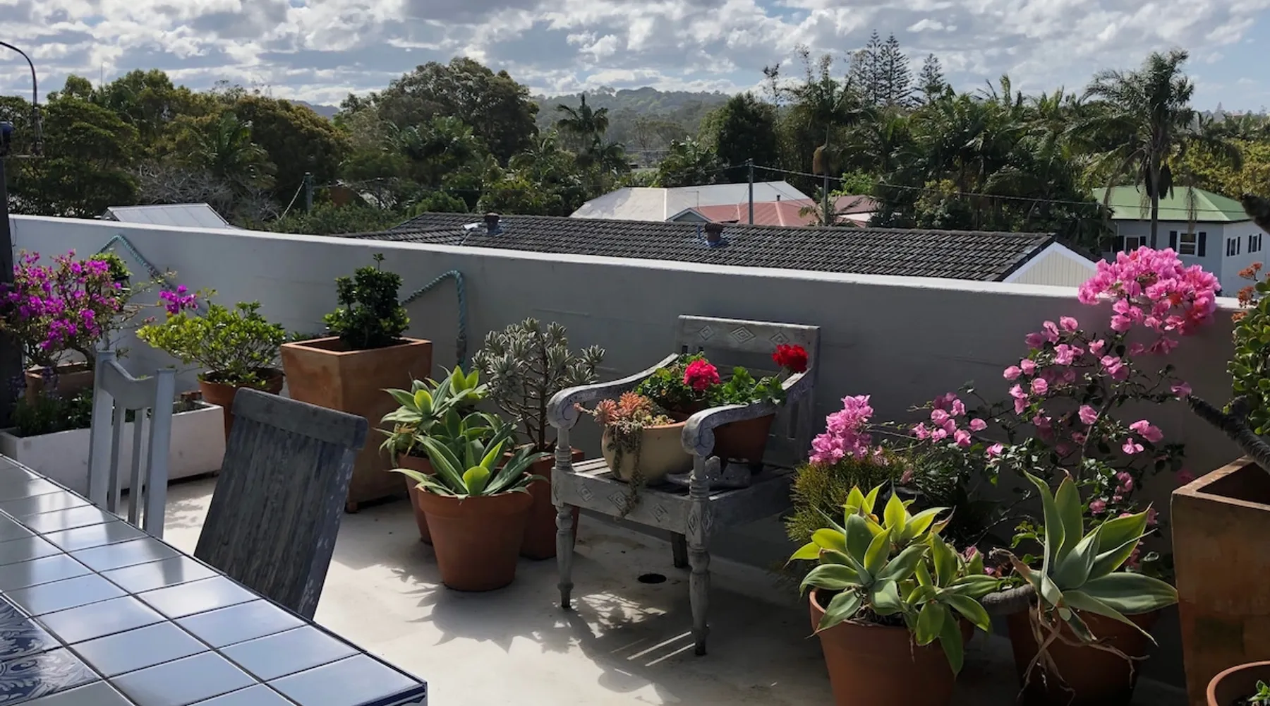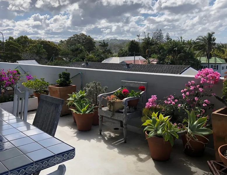 This apartment is full of natural light and for guests staying 6 days or more the rooftop offers a beautiful place to dine al fresco. Less than a minute's walk to the beach and the glorious Brunswick River, this apartment is situated in the heart of Brunz. Lime washed floors and huge french doors open onto a generous deck with river views. Large living area and beautiful kitchen make for a fun place to cook and relax. The space There is simply nothing like it in Brunswick or indeed the North Coast. The apartment has a Parisian feel designed around 5 sets of original french doors however it is casual living and distinctly "beachy". Bedroom has massive ensuite with bath. Living room and bedroom all lead onto a deck with shutters to check for the tides. Air conditioning which is handy in winter but flat is so breezy in summer I hardly use it! There is a roof garden with view to the mountains and the river for guests staying four nights or more. Available all year round with vacancies for Christmas and Splendor. Guest access Access is from the back of the building. The apartment is self contained except for washing machine which is downstairs. Rooftop is off limits except for hanging washing if needed or unless specifically negotiated. Other things to note There is a washing machine downstairs in a cupboard to the right of the garage. The roof is not included in the letting (unless guests stay a week or more) but you may use the line to hang washing. Registration Details PID-STRA-31456