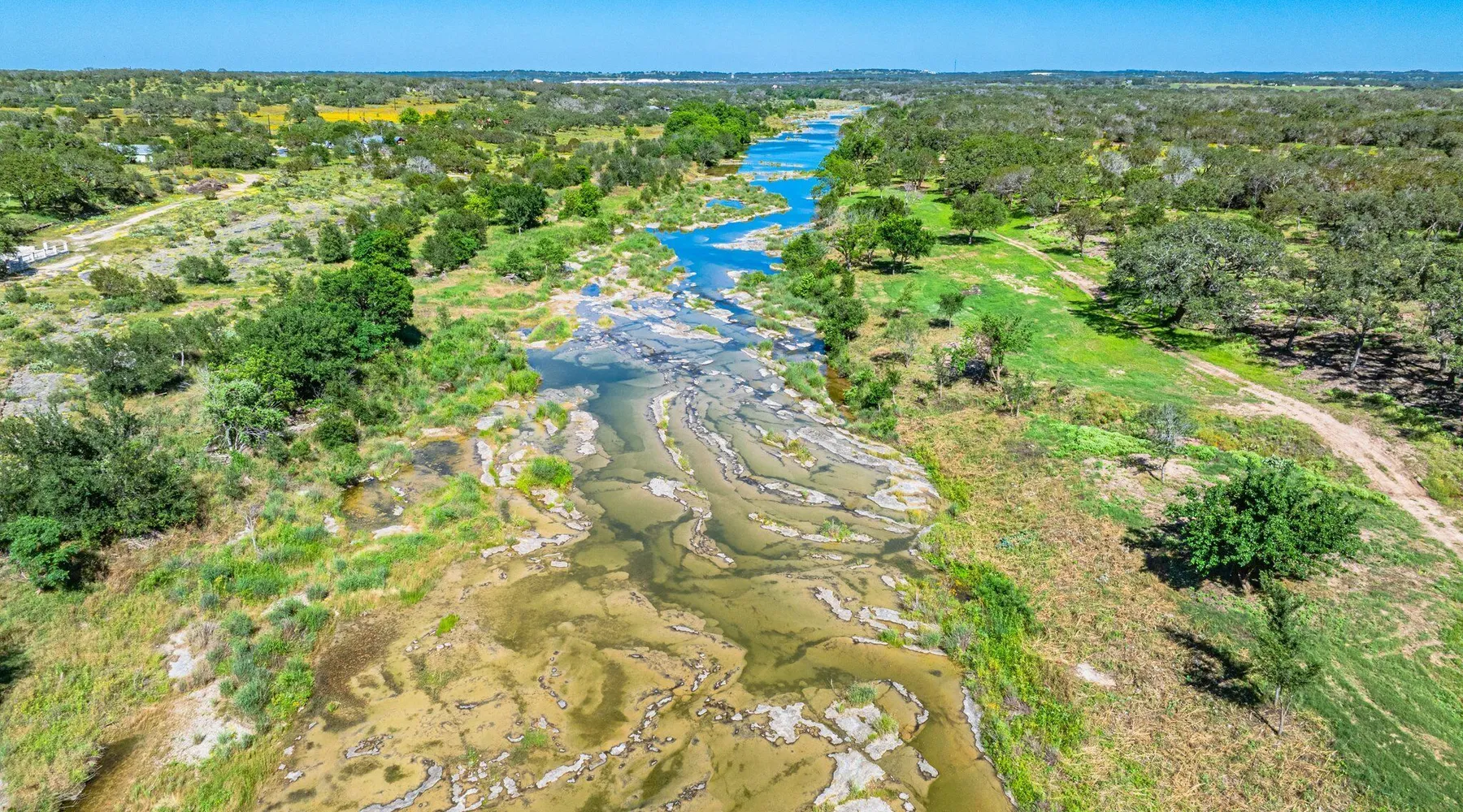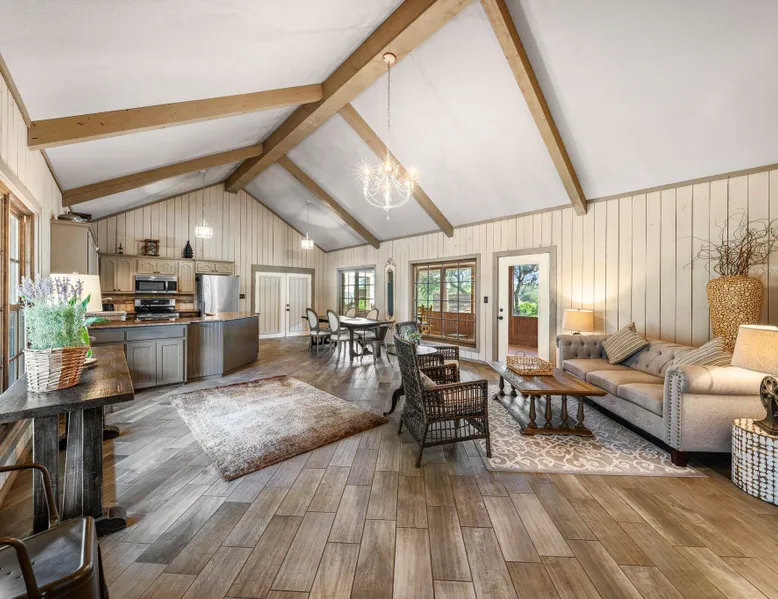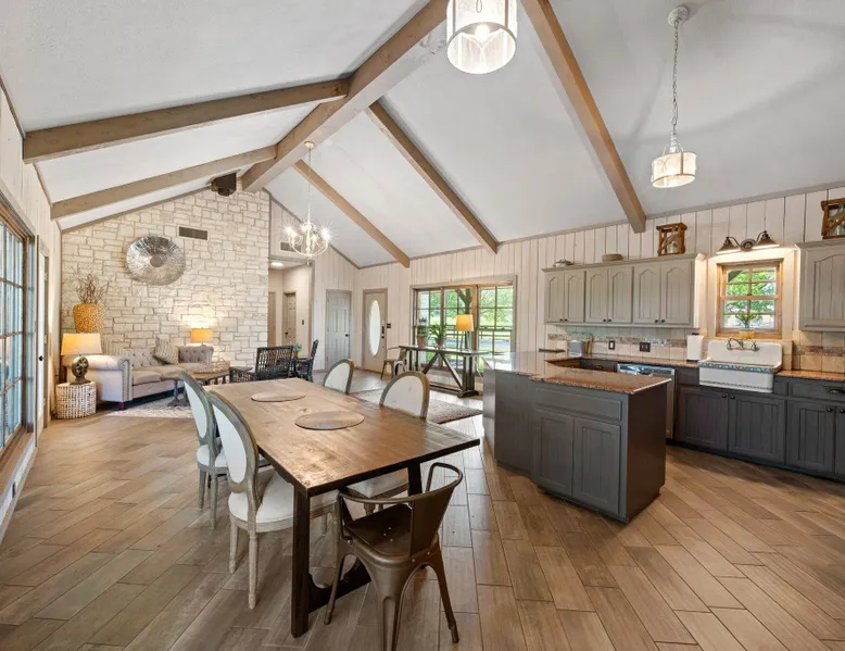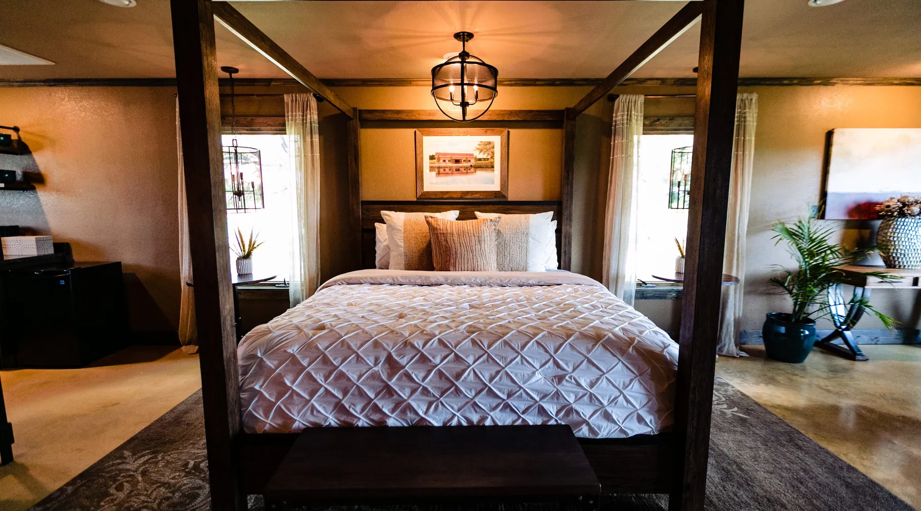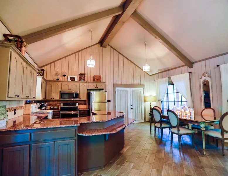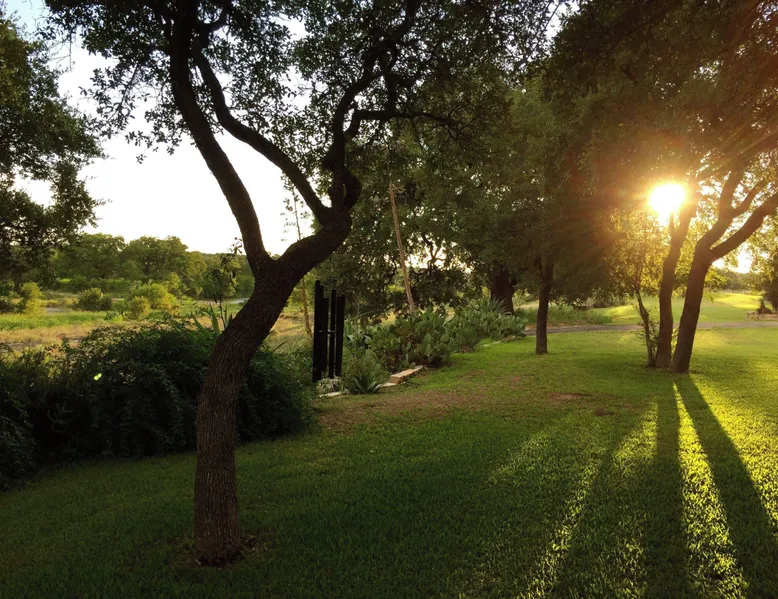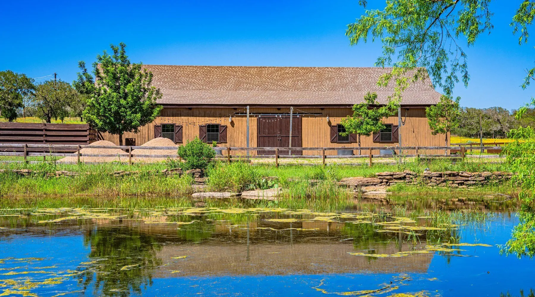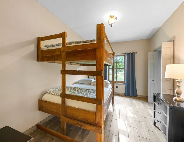 Tucked away in the most heavenly corner of the Texas Hill Country sits King River Ranch, a sprawling 25-acre paradise that offers its guests a perfect blend of private luxury and natural beauty. Upon driving through the gates, the KRR guest is greeted by our exclusive quarter-mile of the Pedernales River to enjoy and explore. The eye never ceases to be dazzled by impossibly charming barns, expansive horse pastures filled with friendly farm animals, the peacefully flowing river, and cinematic views in every direction, all within feet from the front door of this ultimate Hill Country getaway. Just a stone's throw downriver from the Lyndon B. Johnson Family Ranch, KRR is conveniently located 20 minutes from shopping and dining in Fredericksburg, 25 minutes to water sports at Horseshoe Bay, under one-hour to downtown ATX and SATX, and just a skip-and-a-jump to the historic town of Hye, the epicenter of the Hill Country wineries. Being in the heart of the one of the most popular destinations in the entire Lone Star State, there is literally no end to the things to do in the immediate area. The River Cottage is a gorgeous ranch house perched above the river on one side and panoramic views of the magnificent King Barn, horse pastures and fishing pond. The Suite is a generous and luxuriant private space built just for two, with a grand canopy bed from where you can watch deer gently cross the river. The River Cottage and Suite are included in every stay. Ask about your micro-wedding and elopement packages!