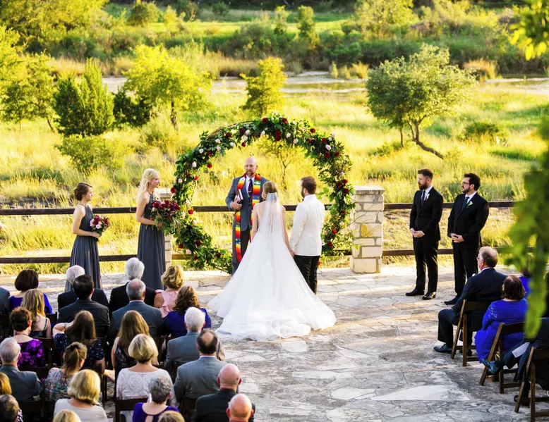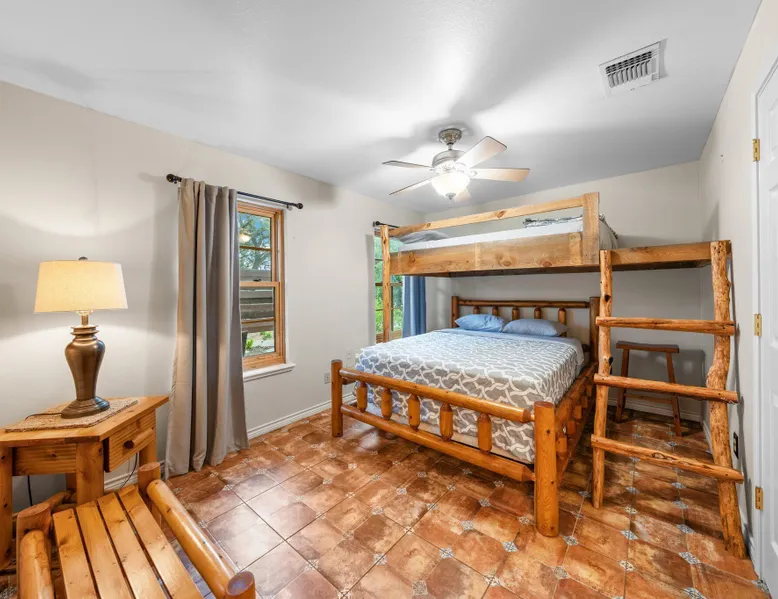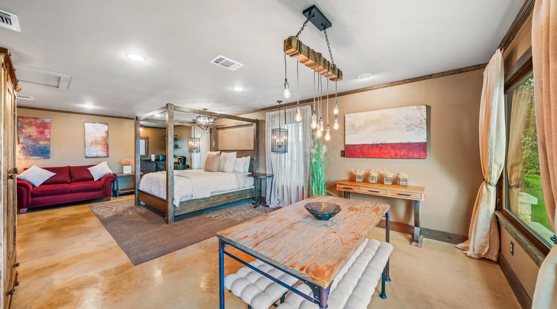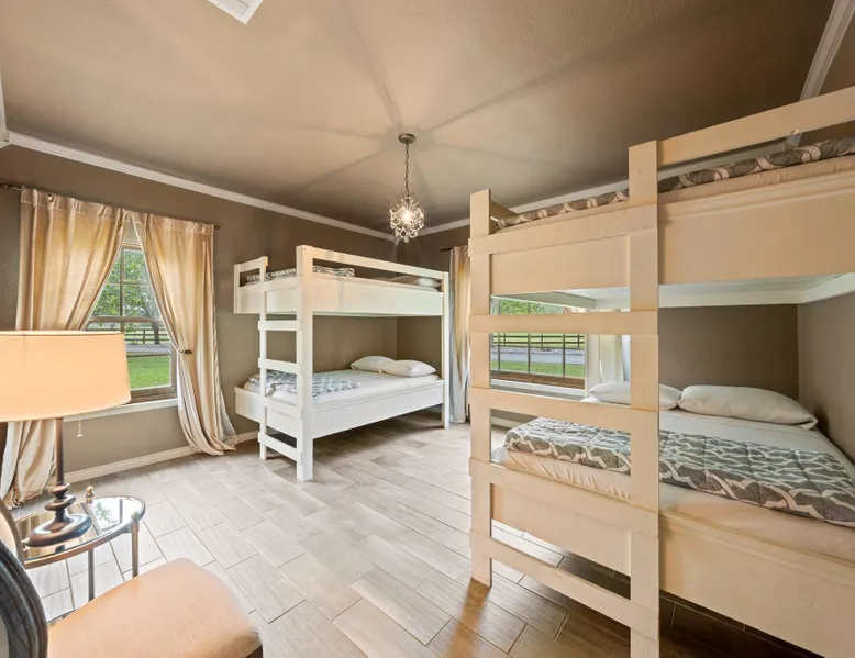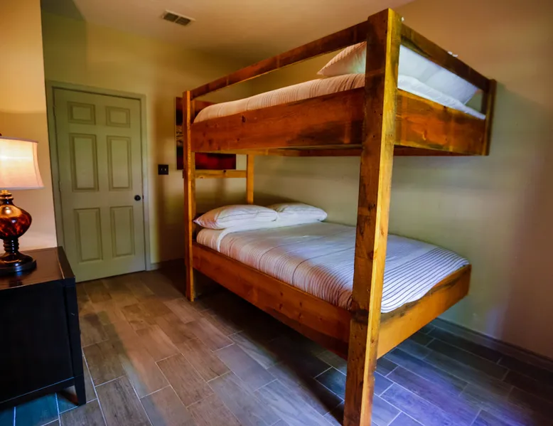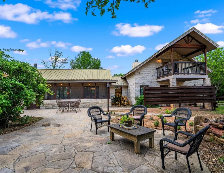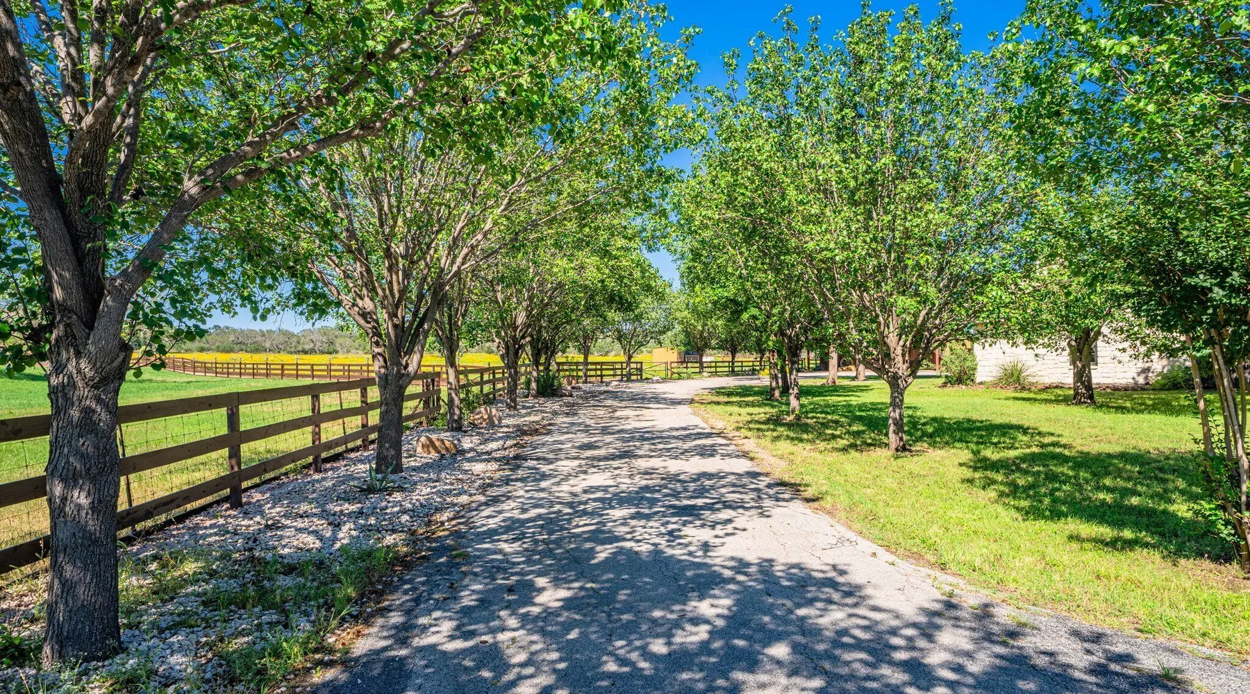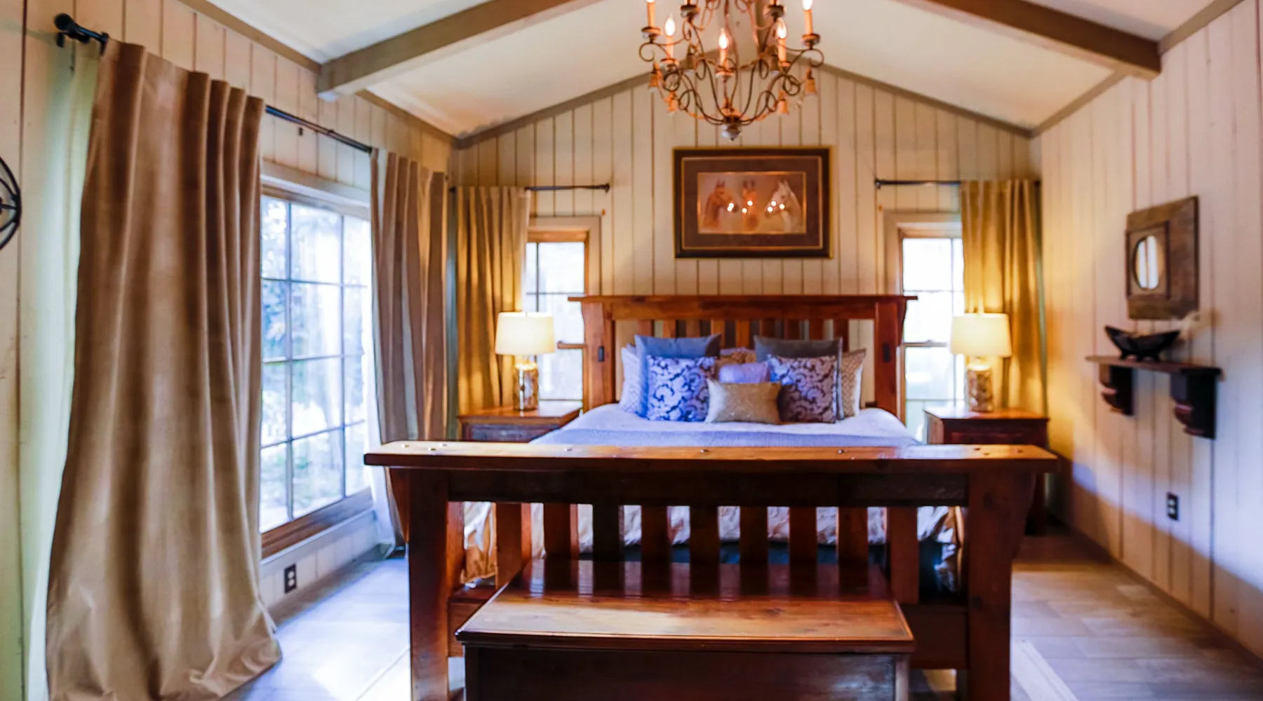 Tucked away in the most heavenly corner of the Texas Hill Country sits King River Ranch, a sprawling 25-acre paradise that offers its guests a perfect blend of private luxury and natural beauty. Upon driving through the gates, the KRR guest is greeted by our exclusive quarter-mile of the Pedernales River to enjoy and explore. The eye never ceases to be dazzled by impossibly charming barns, expansive horse pastures filled with friendly farm animals, the peacefully flowing river, and cinematic views in every direction, all within feet from the front door of this ultimate Hill Country getaway. Just a stone's throw downriver from the Lyndon B. Johnson Family Ranch, KRR is conveniently located 20 minutes from shopping and dining in Fredericksburg, 25 minutes to water sports at Horseshoe Bay, under one-hour to downtown ATX and SATX, and just a skip-and-a-jump to the historic town of Hye, the epicenter of the Hill Country wineries. Being in the heart of the one of the most popular destinations in the entire Lone Star State, there is literally no end to the things to do in the immediate area. The River Cottage is a gorgeous ranch house perched above the river on one side and panoramic views of the magnificent King Barn, horse pastures and fishing pond. The Suite is a generous and luxuriant private space built just for two, with a grand canopy bed from where you can watch deer gently cross the river. The River Cottage and Suite are included in every stay. Ask about your micro-wedding and elopement packages!