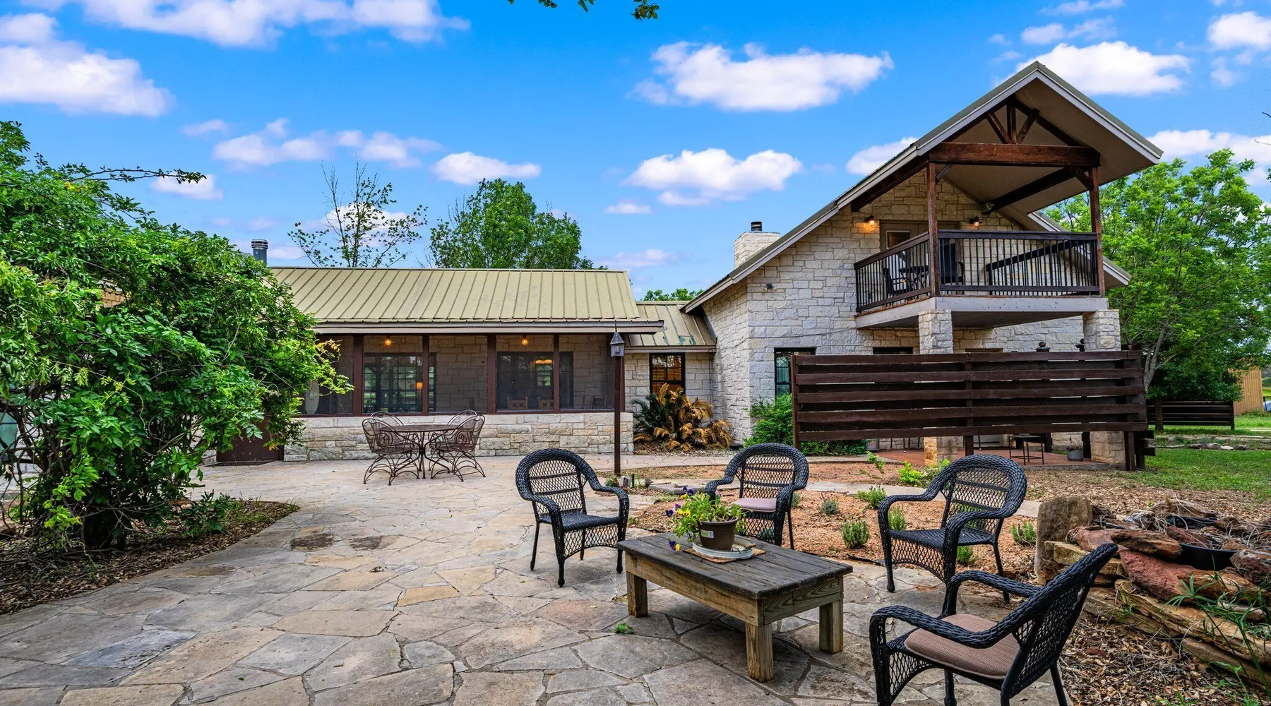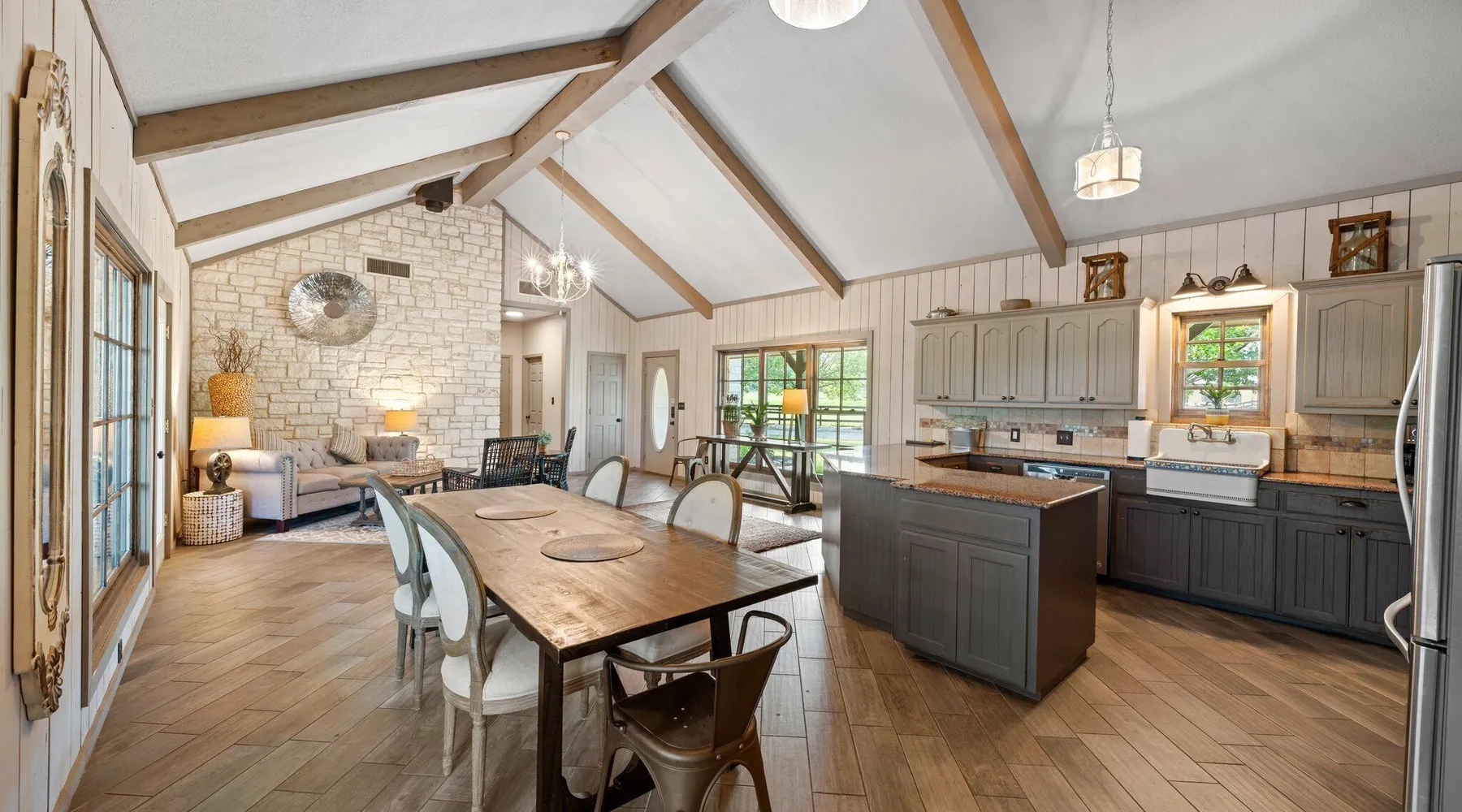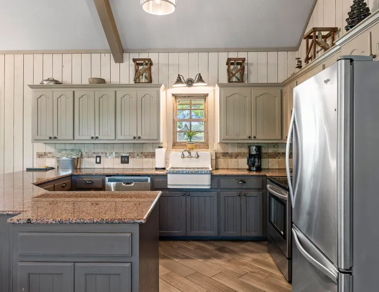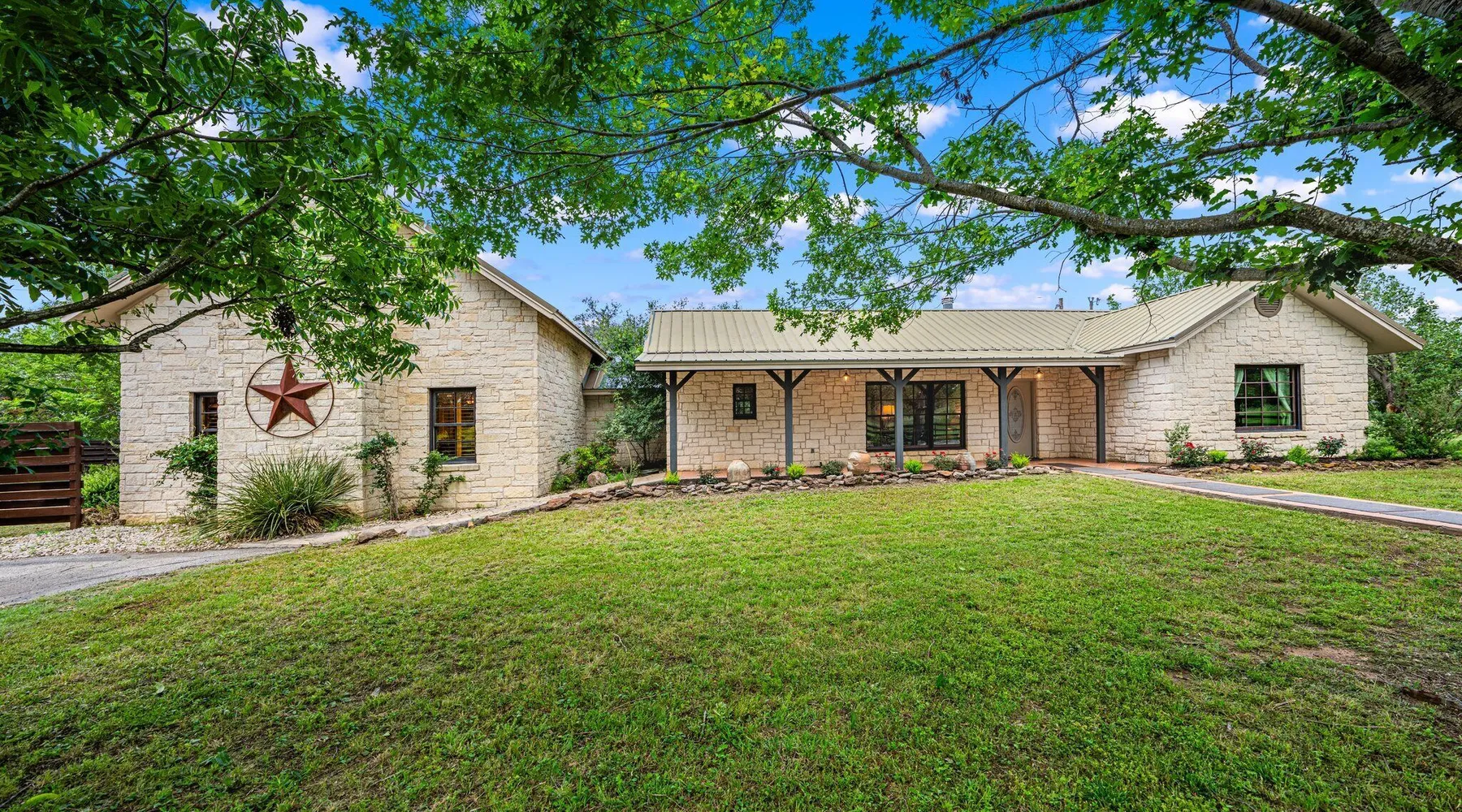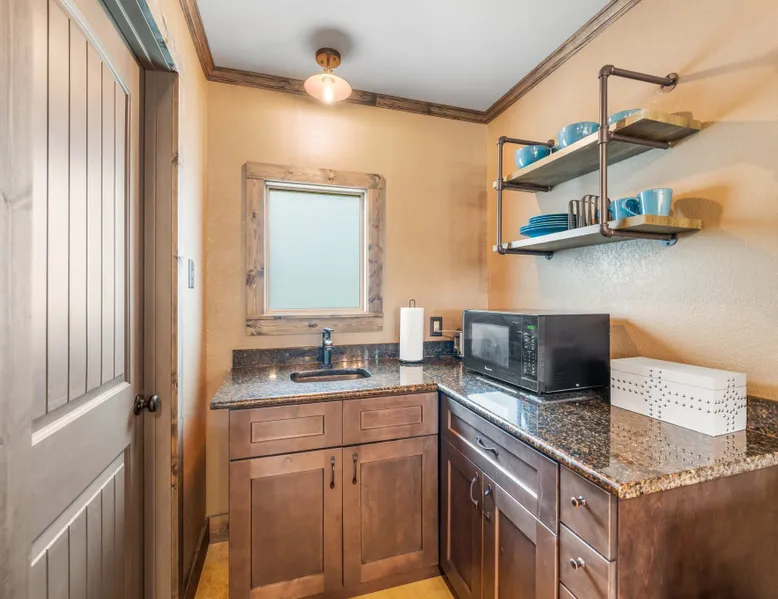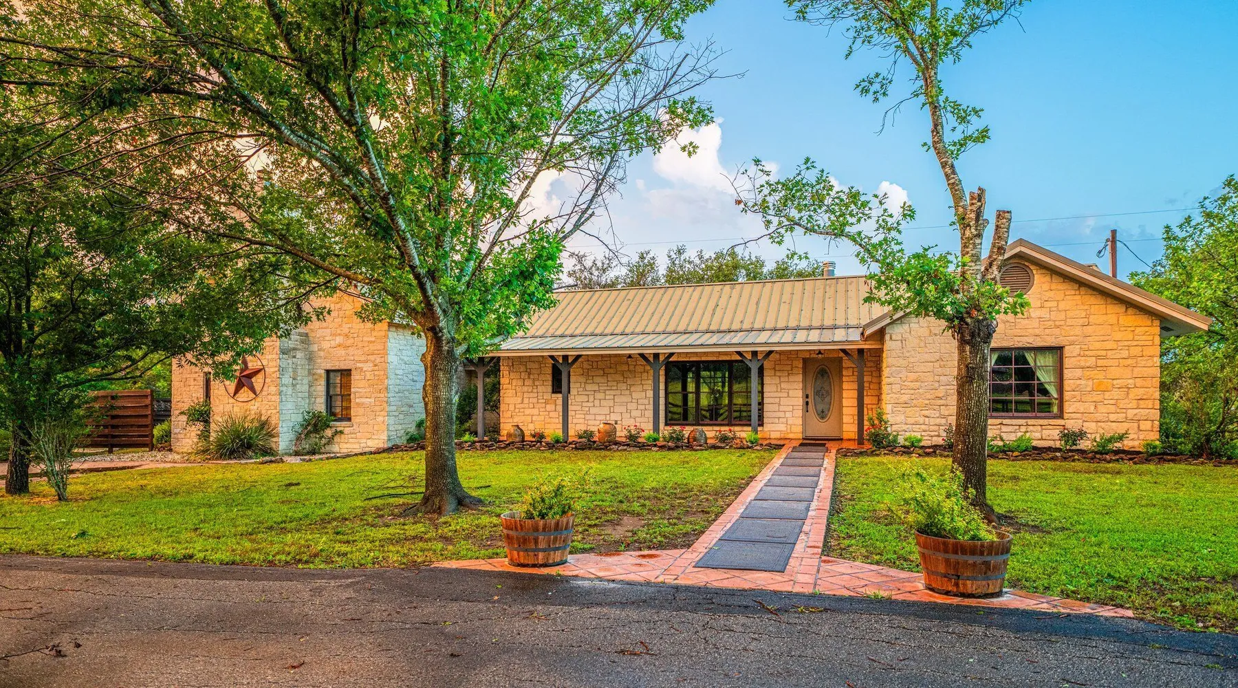 Tucked away in the most heavenly corner of the Texas Hill Country sits King River Ranch, a sprawling 25-acre paradise that offers its guests a perfect blend of private luxury and natural beauty. Upon driving through the gates, the KRR guest is greeted by our exclusive quarter-mile of the Pedernales River to enjoy and explore. The eye never ceases to be dazzled by impossibly charming barns, expansive horse pastures filled with friendly farm animals, the peacefully flowing river, and cinematic views in every direction, all within feet from the front door of this ultimate Hill Country getaway. Just a stone's throw downriver from the Lyndon B. Johnson Family Ranch, KRR is conveniently located 20 minutes from shopping and dining in Fredericksburg, 25 minutes to water sports at Horseshoe Bay, under one-hour to downtown ATX and SATX, and just a skip-and-a-jump to the historic town of Hye, the epicenter of the Hill Country wineries. Being in the heart of the one of the most popular destinations in the entire Lone Star State, there is literally no end to the things to do in the immediate area. The River Cottage is a gorgeous ranch house perched above the river on one side and panoramic views of the magnificent King Barn, horse pastures and fishing pond. The Suite is a generous and luxuriant private space built just for two, with a grand canopy bed from where you can watch deer gently cross the river. The River Cottage and Suite are included in every stay. Ask about your micro-wedding and elopement packages!