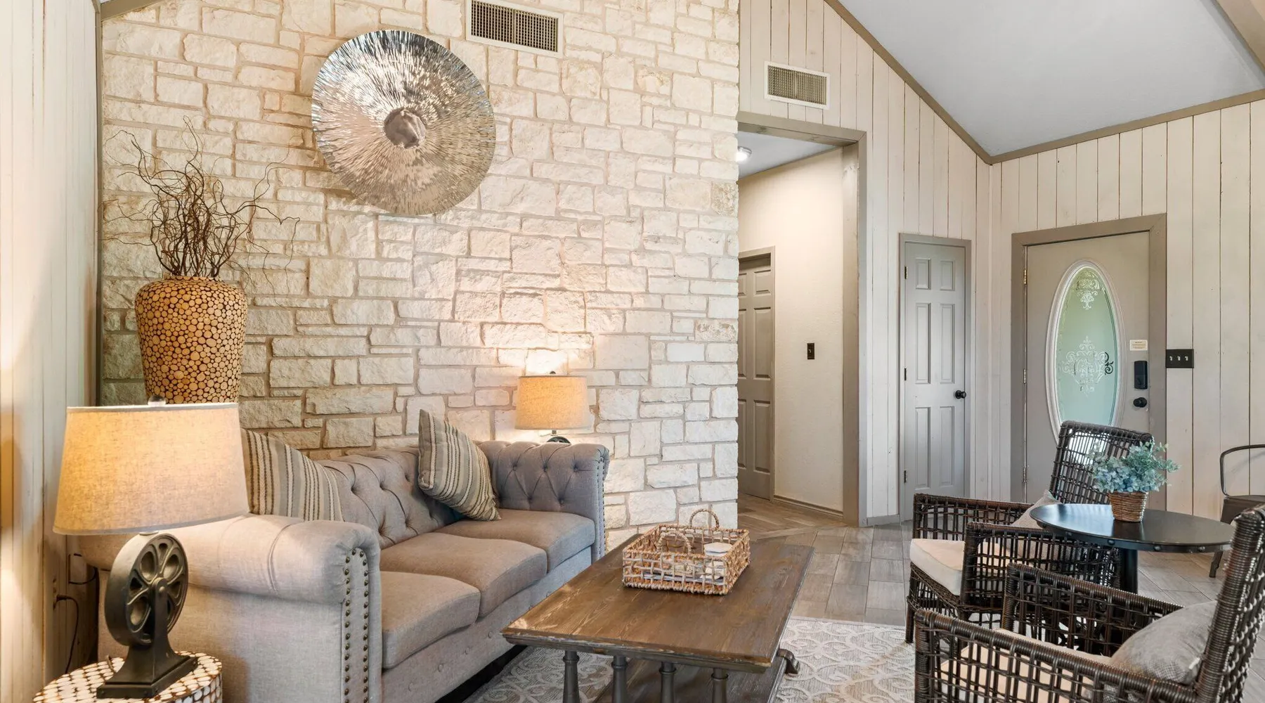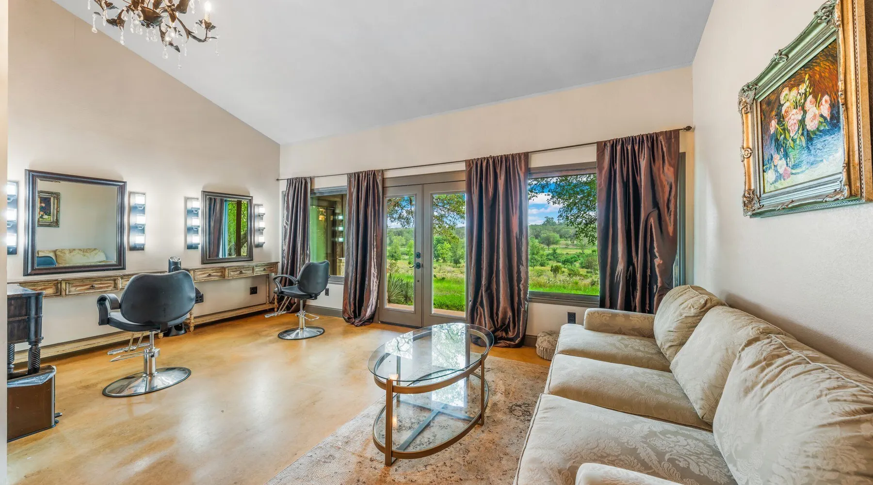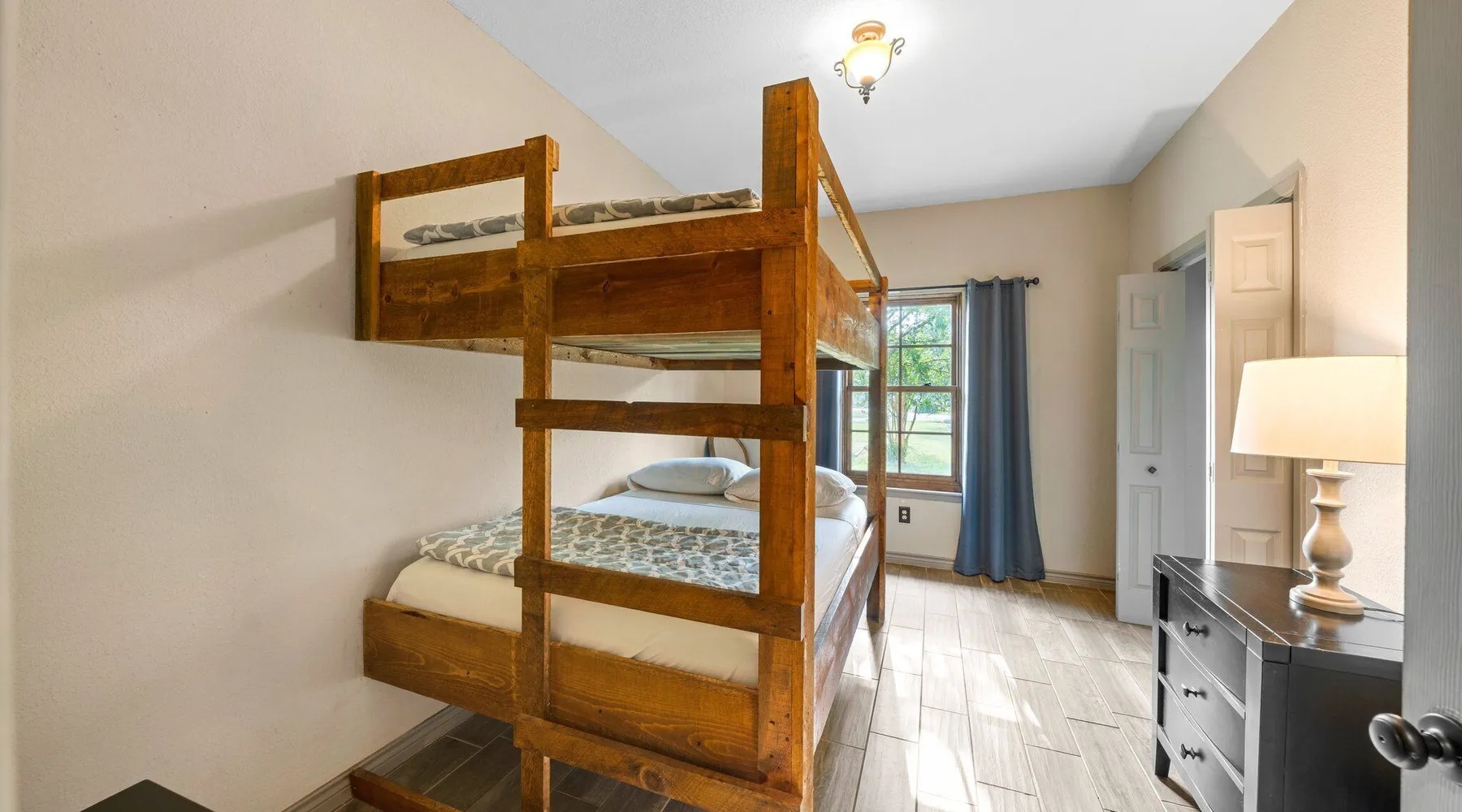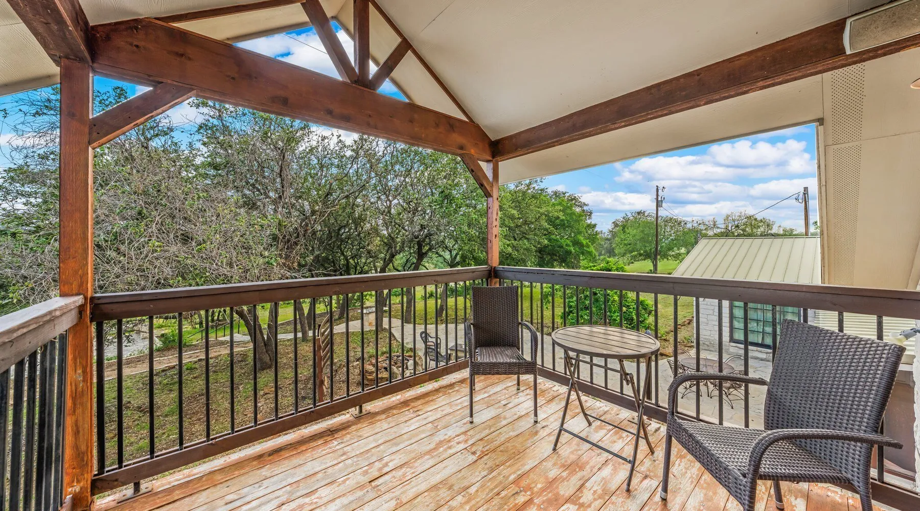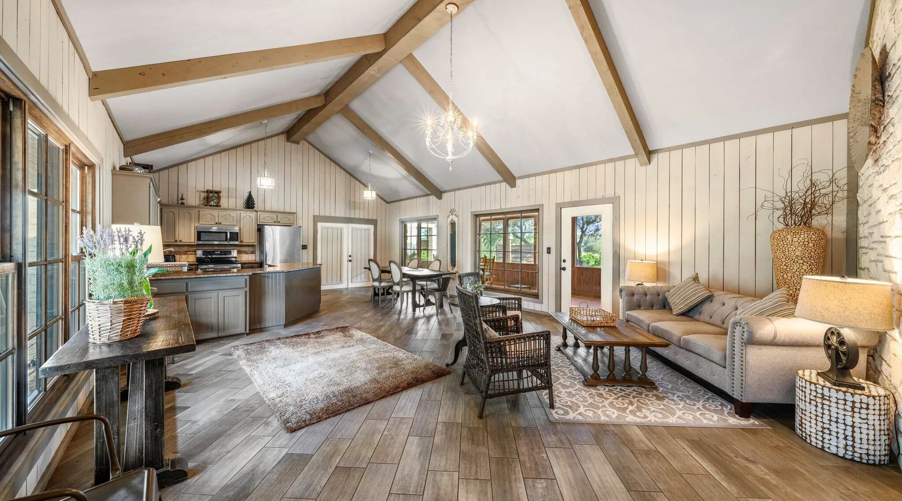 Tucked away in the most heavenly corner of the Texas Hill Country sits King River Ranch, a sprawling 25-acre paradise that offers its guests a perfect blend of private luxury and natural beauty. Upon driving through the gates, the KRR guest is greeted by our exclusive quarter-mile of the Pedernales River to enjoy and explore. The eye never ceases to be dazzled by impossibly charming barns, expansive horse pastures filled with friendly farm animals, the peacefully flowing river, and cinematic views in every direction, all within feet from the front door of this ultimate Hill Country getaway. Just a stone's throw downriver from the Lyndon B. Johnson Family Ranch, KRR is conveniently located 20 minutes from shopping and dining in Fredericksburg, 25 minutes to water sports at Horseshoe Bay, under one-hour to downtown ATX and SATX, and just a skip-and-a-jump to the historic town of Hye, the epicenter of the Hill Country wineries. Being in the heart of the one of the most popular destinations in the entire Lone Star State, there is literally no end to the things to do in the immediate area. The River Cottage is a gorgeous ranch house perched above the river on one side and panoramic views of the magnificent King Barn, horse pastures and fishing pond. The Suite is a generous and luxuriant private space built just for two, with a grand canopy bed from where you can watch deer gently cross the river. The River Cottage and Suite are included in every stay. Ask about your micro-wedding and elopement packages!