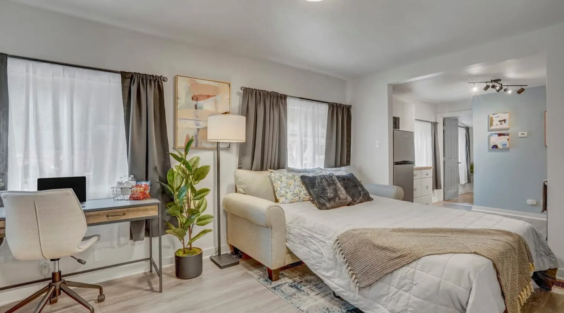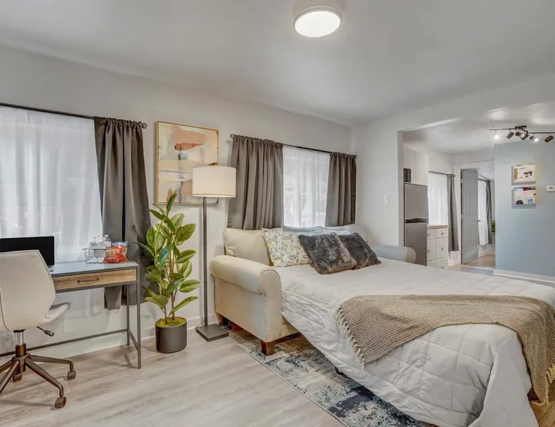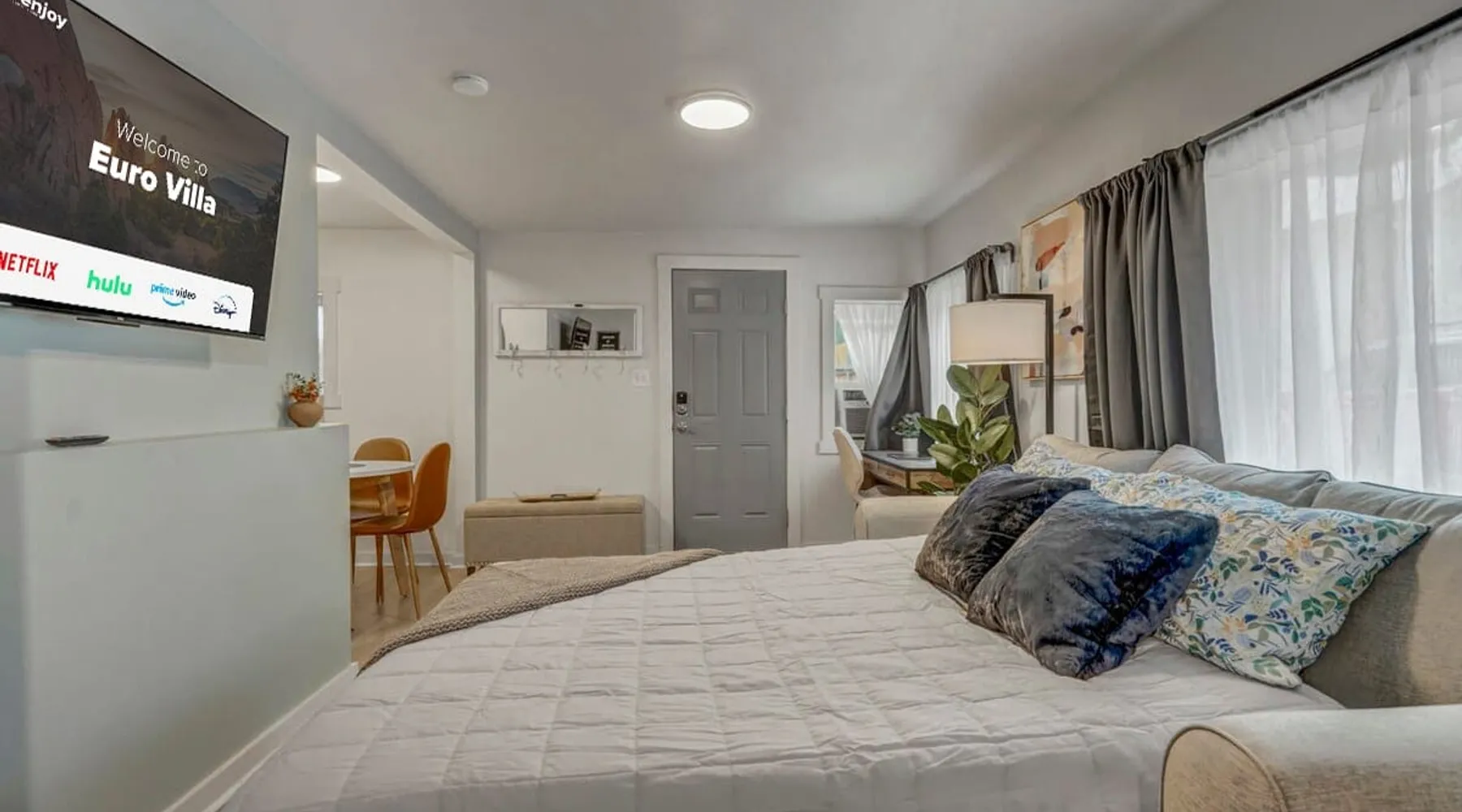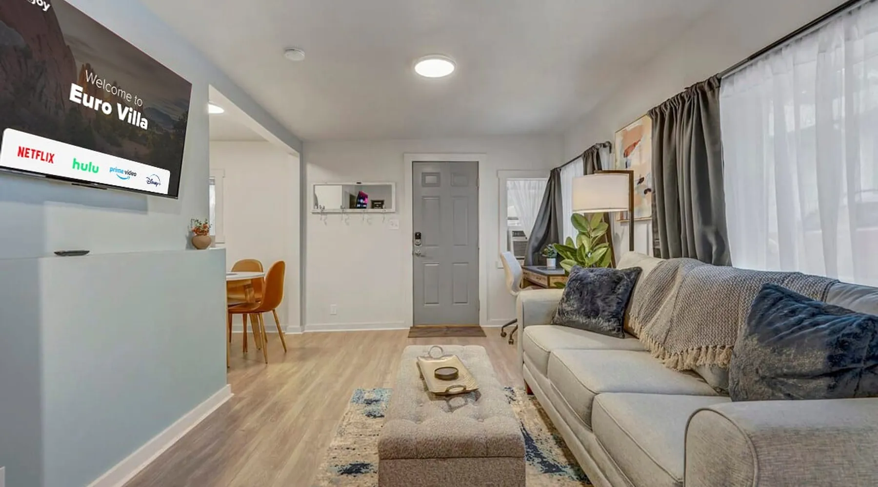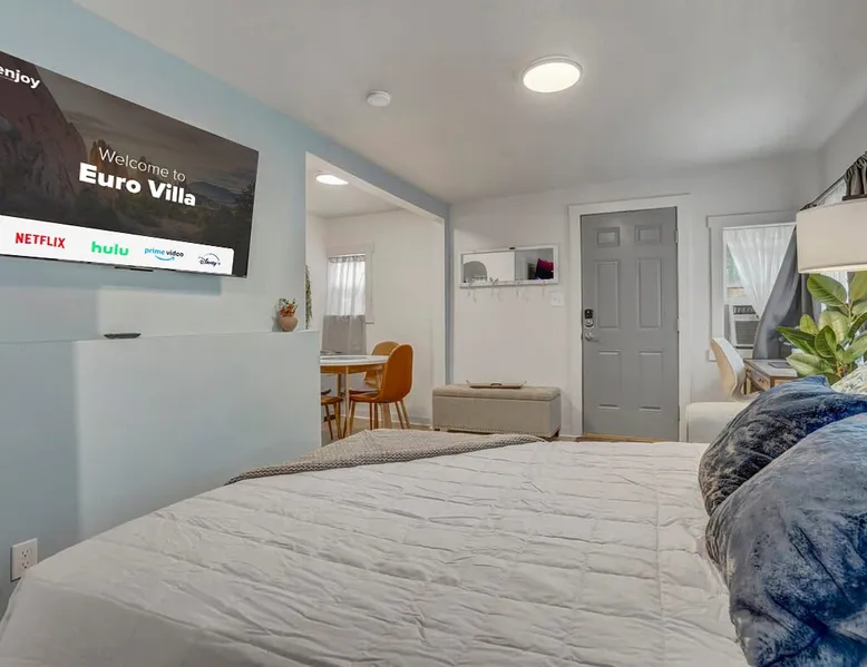 Welcome to Euro Villa! Discover the downtown adventure you never realized you craved! 🏡 Top-rated vacation rental in downtown Colorado Springs! 🏙️ Mins to downtown shops & restaurants! 🏰 Quick drive to Garden of the Gods, Pikes Peak, USAFA, & CC! 🚶 Walk to The Olympic Training Center & Memorial Hospital! 🔥 Private fenced backyard w/ fire pit & BBQ grill!. 🚀 Fast WiFi, workspace, & Smart TVs! 🍽️ Fully-stocked kitchen! Time to plan your next adventure! The space Welcome to our thoughtfully curated short-term rental in Colorado Springs, perfect for couples, small families, and business travelers. In our cozy duplex home, you'll enjoy the spacious east-facing unit all to yourself. Meticulously designed to meet your every need, our home is ideal for business trips, vacations, or weekend getaways. After a day of exploring, relax in the private fenced yard with a fire pit, grill, and picnic area, perfect for unwinding under the stars.. 🍳 Kitchen Our kitchen is fully equipped with everything you need to cook your favorite meals. It includes pots, pans, and spices, making meal preparation a breeze. Start your day with fresh coffee from our Keurig machine, ensuring a great start to your mornings. 🛏️ Bedroom The bedroom features a comfy queen mattress, providing a restful night's sleep. Traveling with little ones? We can provide a Pack 'n Play and high chair to make your stay even more convenient. 🛁 Bathroom The bathroom boasts a walk-in shower and comes stocked with essentials such as shampoo, conditioner, and soap. To ensure your stay is as easy and comfortable as possible, we also provide a hairdryer, first aid kit, and extra toilet paper. 🧺 Laundry For your convenience, there's a washer and dryer located in the bedroom, allowing you to take care of laundry during your stay with ease. 🌳 Yard Our outdoor space is designed for relaxation and connection. The fully fenced yard offers privacy and includes a grill, picnic table, and a fire pit for cozy evenings. Whether you’re grilling dinner, sipping morning coffee in the fresh air, or gathering with loved ones for s’mores and late-night conversations under the stars, the space makes it easy to enjoy the outdoors. It’s the perfect spot to unwind after exploring Colorado Springs. We understand that your trip is a carefully planned experience, and we're committed to providing a stay that exceeds your expectations. With attention to detail and a focus on your comfort, our space offers everything you need for a memorable and enjoyable stay. Guest access 🔑 Guests will have access to all areas of the listing to include the washer/dryer in the unit available for use at any time during your stay as well as the fully enclosed, private yard. Other things to note 📜 Rental Agreement: For a seamless booking experience, a Rental Agreement is required for all reservations. Once your reservation is confirmed, we’ll provide details for completing the agreement. 🔑 Check-In Process: For a seamless check-in experience, your unique code along with your check-in instructions will be updated into your personalized guidebook on the morning of your arrival. You’ll use this code for entry. ☕ Starter Supply: We’ve prepared a starter supply that includes paper towels, coffee K-cups, toilet paper, shampoo, body wash, and plush white towels! We hope these amenities add an extra touch of comfort to your stay. ⏰ Unauthorized Late Checkout Fee: $20 Per Half Hour Late 💵 Additional Fees: For guests bringing dogs, there is a mandatory pet fee of $100 per dog, collected after booking. A maximum of 2 dogs is allowed per reservation unless otherwise approved. No other animals are permitted. Optional services, including early check-in, late check-out, and additional guests, can be arranged upon request and are subject to availability. These additional fees help cover the cost of reworking the schedule or adding an additional cleaner if needed. Please message us ahead of time for pricing and availability. 🏡 Duplex Details: This listing is for one unit of the duplex. Each side has its own separate yard, parking, and entrance. It is a side-by-side duplex with only one shared wall.