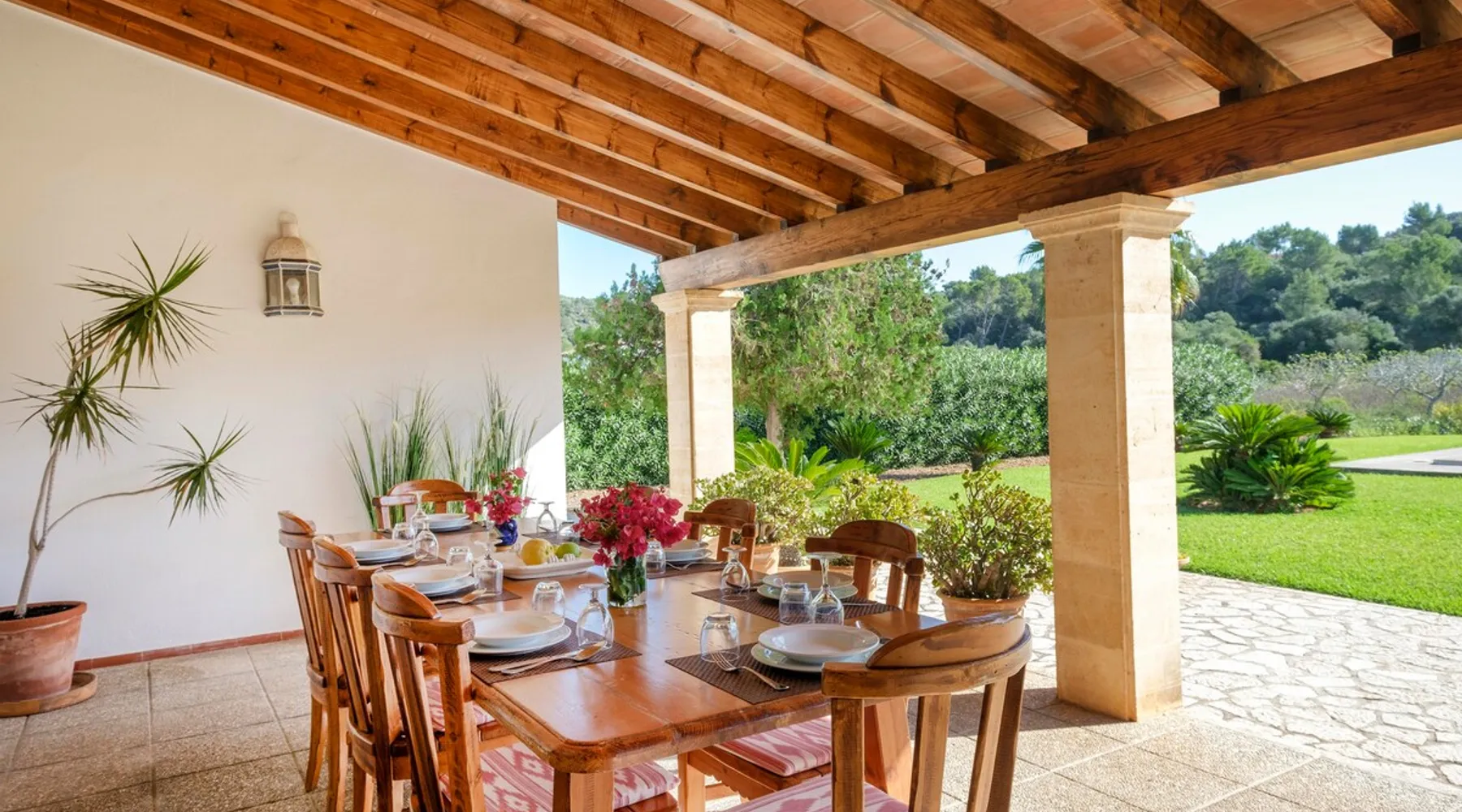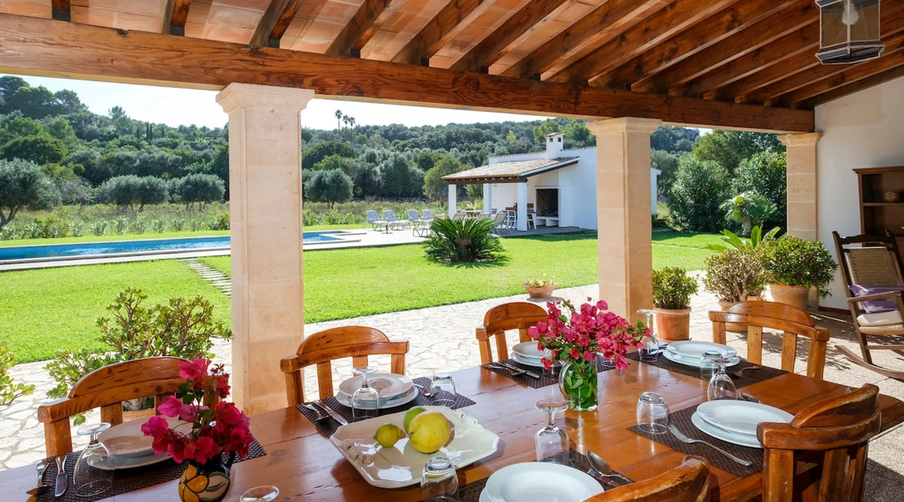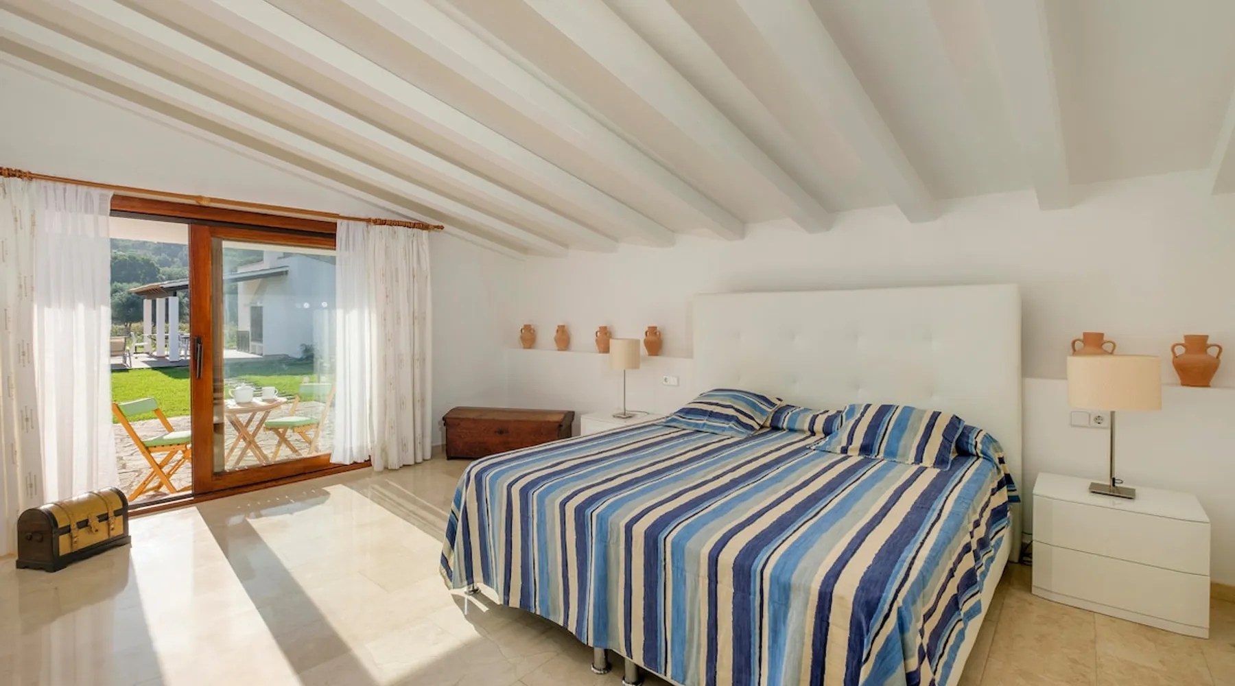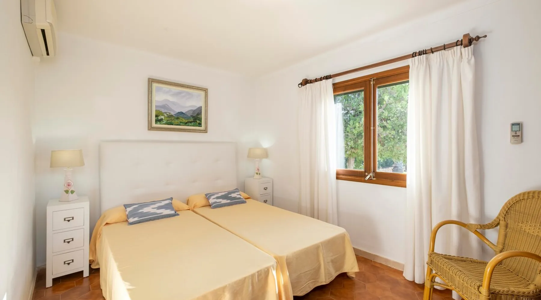 The finca with pool is located between Pollença and Puerto Pollença and offers space for 8 people. The finca is in a rural location and invites you to relax in unspoilt nature. The view stretches far and the tranquillity is a blessing. The village of Pollença, with its good shops, bars and restaurants, is only about 4 kilometres away. The beaches of Puerto Pollença or Cala San Vicente are only 5 minutes away by car. The space The house offers 4 bedrooms, 3 bathrooms and a living/dining room with open kitchen. The large veranda is comfortably furnished and invites you to linger. A covered barbecue is also designed for lingering and cosy barbecue evenings. There is plenty of space and cosy spots to relax. Guest access The entire property is at the guests' disposal. Other things to note Included services: - Bed linen: Change each 7 days. - Towels: Change each 7 days. - Swimming pool: Price: included in the booking - A €150 deposit is required on arrival. This will be refunded before departure, minus any damage caused. In case of excessive use of the air conditioning, electricity will be charged according to consumption. 230 kWh/ week are included, additional consumption will be charged at 0,30 € / kWh. Optional services: - Cot/Crib: Price: included in the booking. - Baby high chair: Price: included in the booking. Registration Details Spain - National registration number ESFCTU000007030000568289000000000000000000000ETC/8294