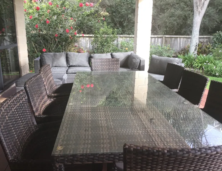 Bring the whole family or share with friends. A great holiday home with lots of room & well set up for fun holidays! Great secluded entertainment area with a large covered patio complete with blinds, table tennis set up in the garage, upstairs smart TV for Netflix etc. SkyTV in the lounge. Short walk to ocean beach and Anzac Bay, Bowentown Camping ground and playground. Bowentown Boat club within walking distance if you wish to dine out! Great coffee at the campground cafe. Other things to note Cleaning Fee $180 includes bed linen only. Towels, face cloths etc are NOT provided.