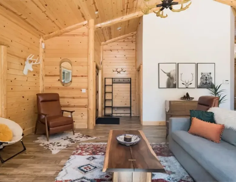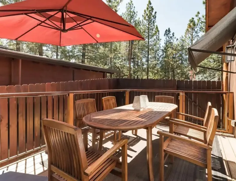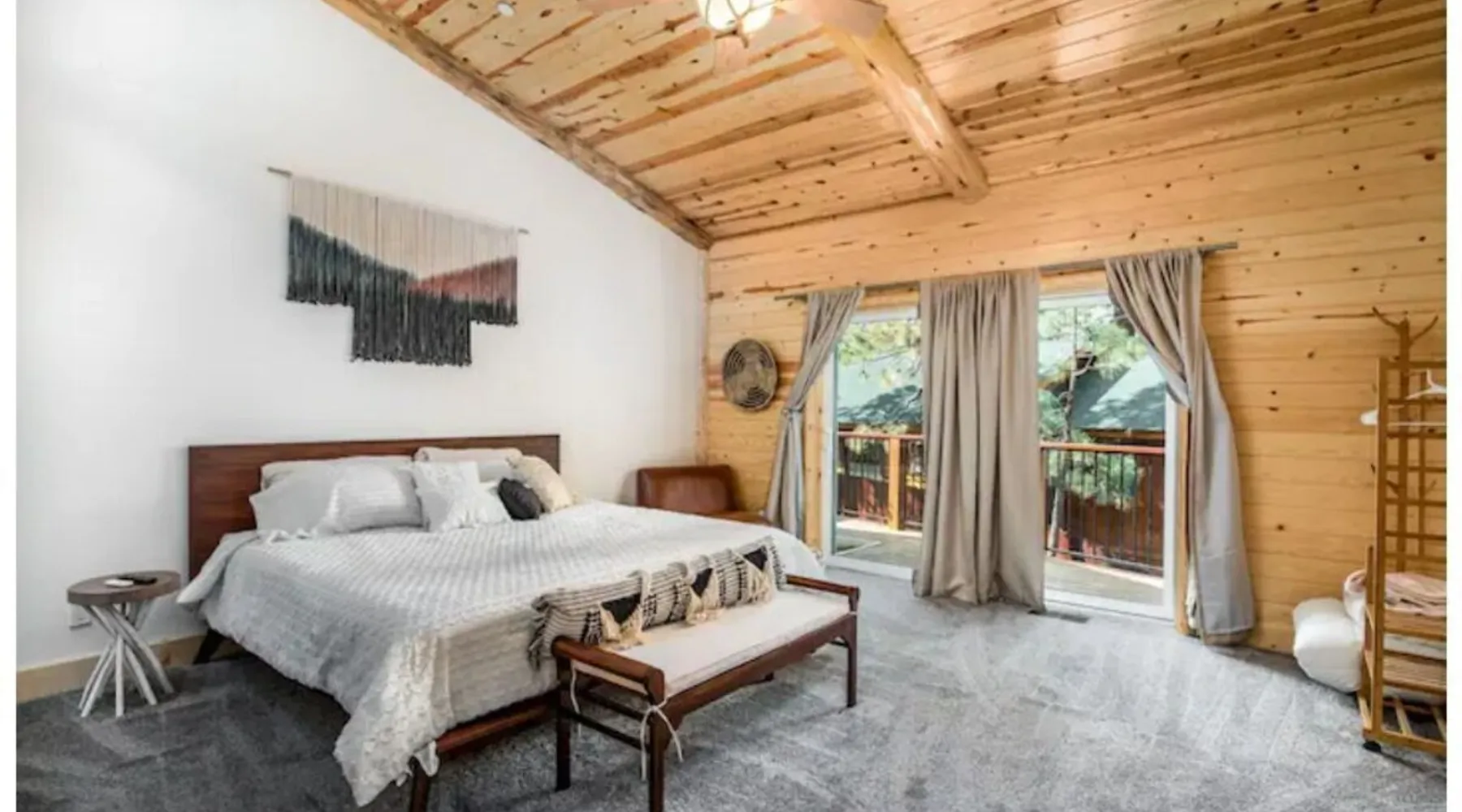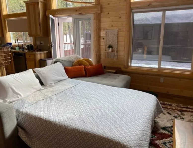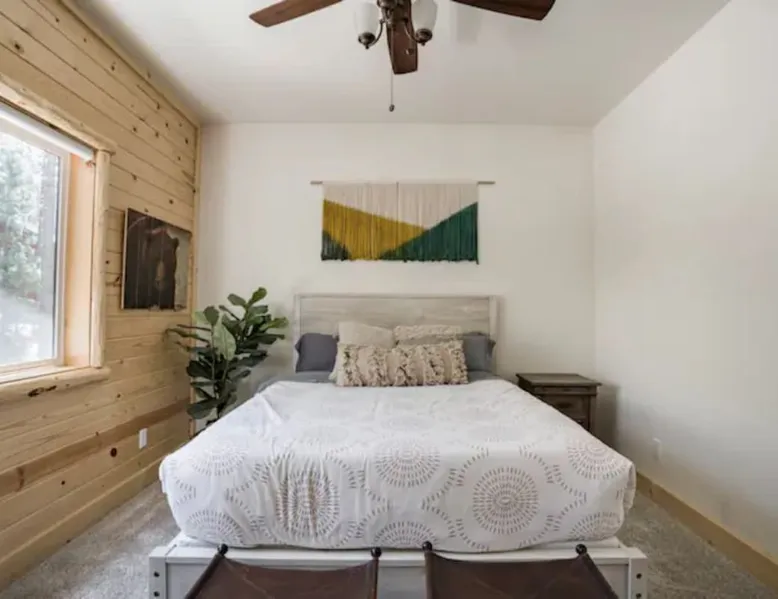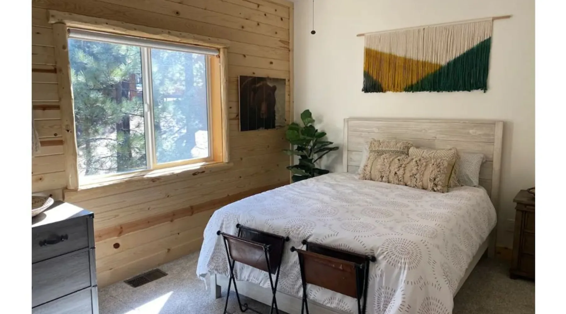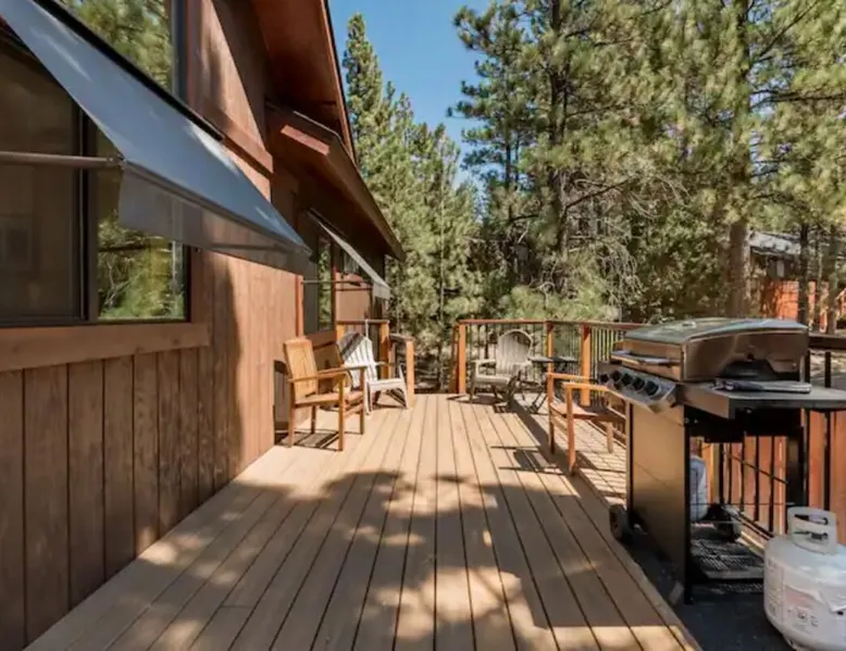 GORGEOUS, SINGLE LEVEL CUSTOM CABIN FENCED YARD-SPA-BBQ-FIRE PIT-CLOSE TO SLOPES New, gorgeous cabin located minutes away from Big Bear Lake and Ski slopes. Built in 2019 and decorated with the finest details throughout, this cozy cabin truly offers the ideal mountain getaway. The perfectly located quaint neighborhood includes multiple routes to slopes, ensuring a quick journey even during days with heavy traffic. Take in the beautiful pine views with two spacious decks including stairs to a modern 6 person salt water spa. The space Open concept great room with living, kitchen, and dining rooms all under a knotty pine vaulted ceiling. Large master with en-suite bath and two secondary bedrooms with a full bath to share. Large fully fenced back yard and two spacious wood patios surrounded by beautiful pines. Guest access Entire home, two patios and fully fenced yard. Languages English, Spanish