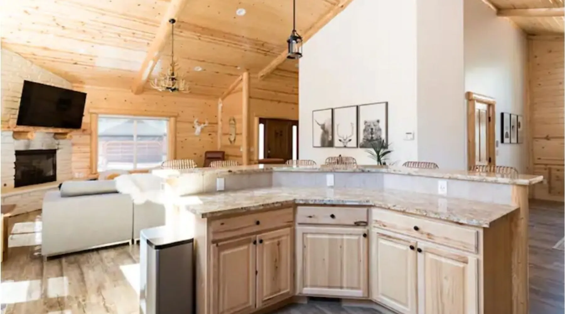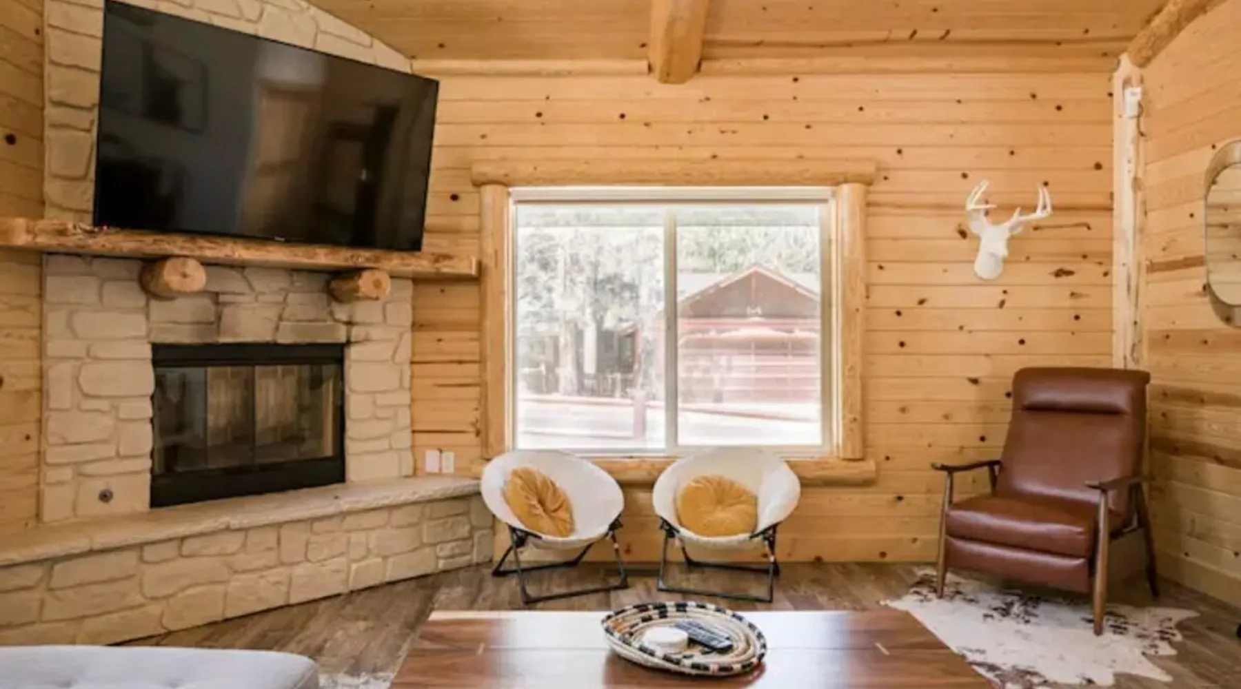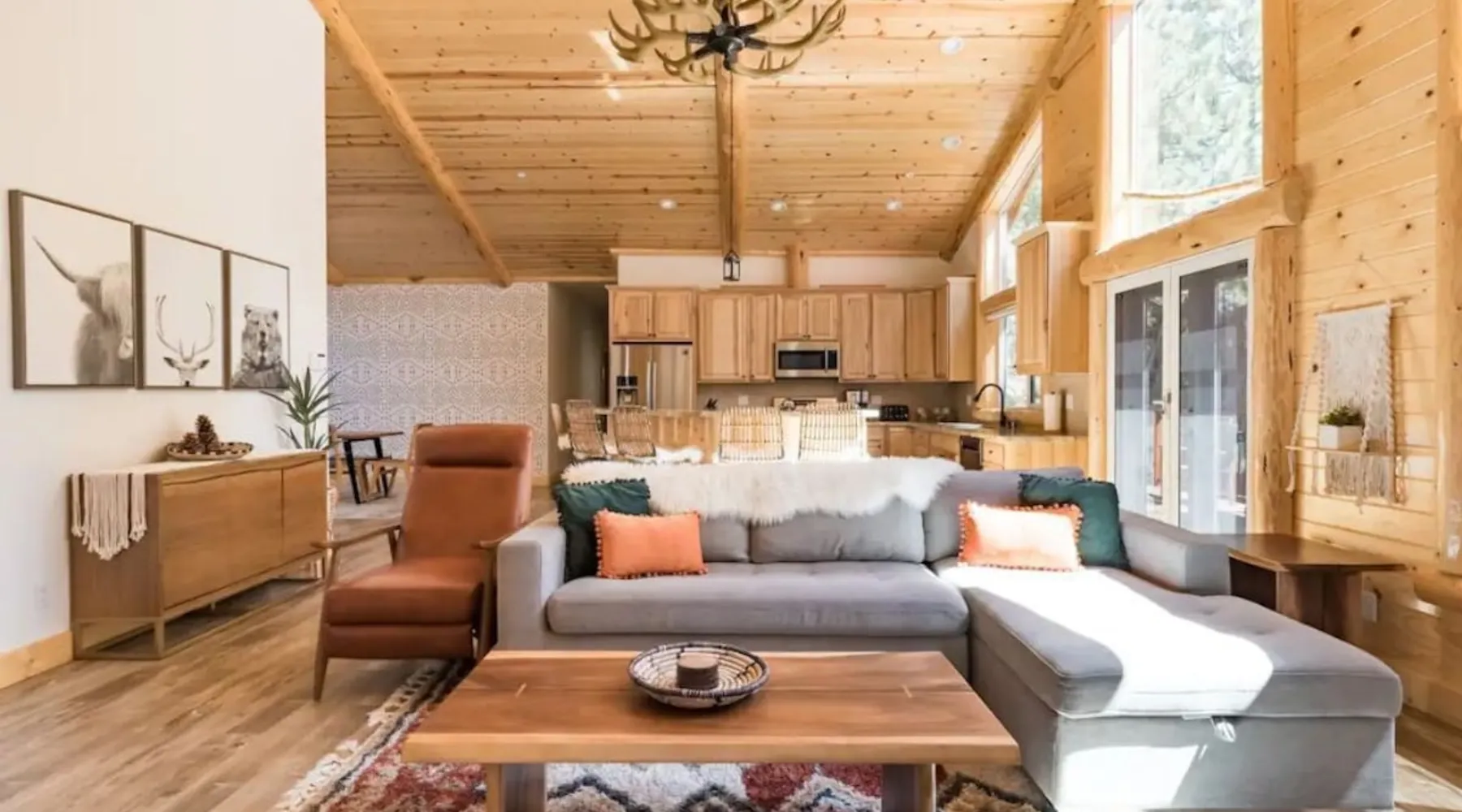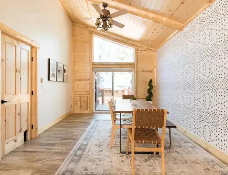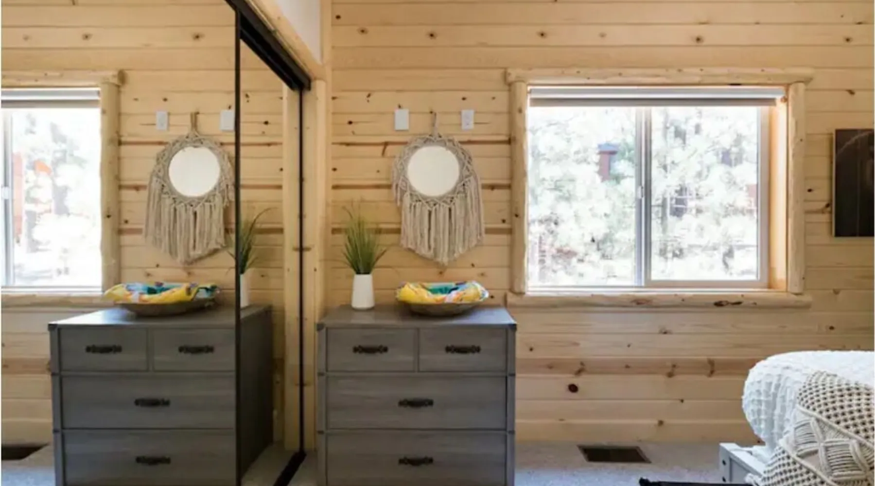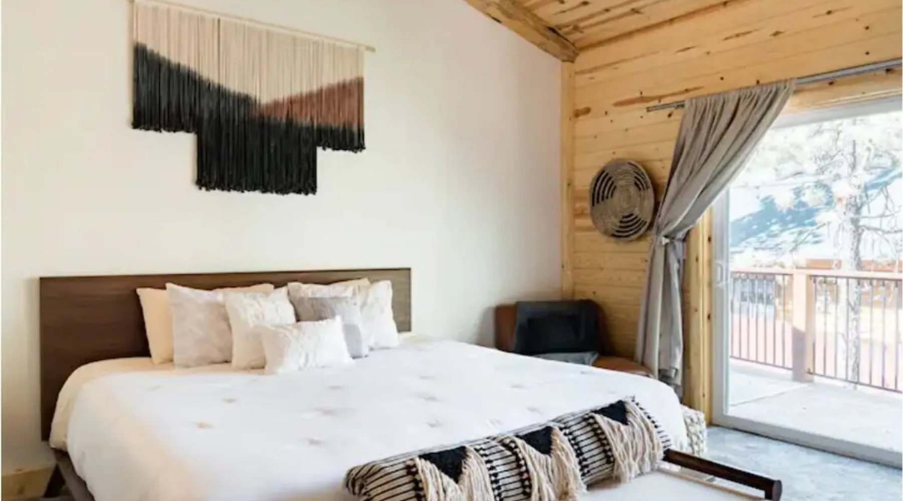 GORGEOUS, SINGLE LEVEL CUSTOM CABIN FENCED YARD-SPA-BBQ-FIRE PIT-CLOSE TO SLOPES New, gorgeous cabin located minutes away from Big Bear Lake and Ski slopes. Built in 2019 and decorated with the finest details throughout, this cozy cabin truly offers the ideal mountain getaway. The perfectly located quaint neighborhood includes multiple routes to slopes, ensuring a quick journey even during days with heavy traffic. Take in the beautiful pine views with two spacious decks including stairs to a modern 6 person salt water spa. The space Open concept great room with living, kitchen, and dining rooms all under a knotty pine vaulted ceiling. Large master with en-suite bath and two secondary bedrooms with a full bath to share. Large fully fenced back yard and two spacious wood patios surrounded by beautiful pines. Guest access Entire home, two patios and fully fenced yard. Languages English, Spanish