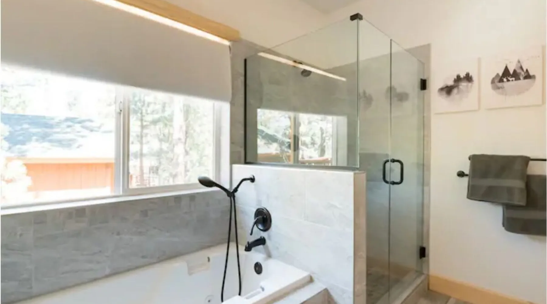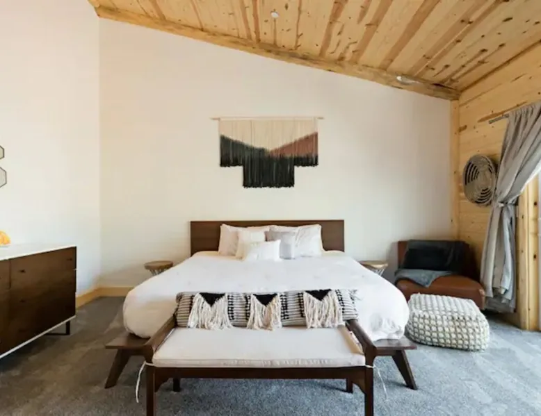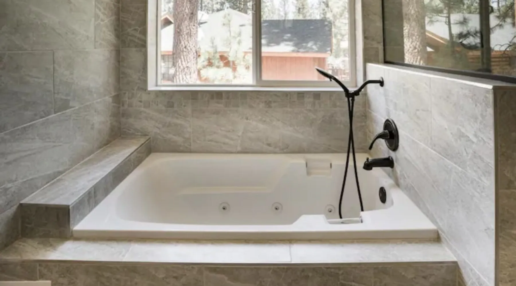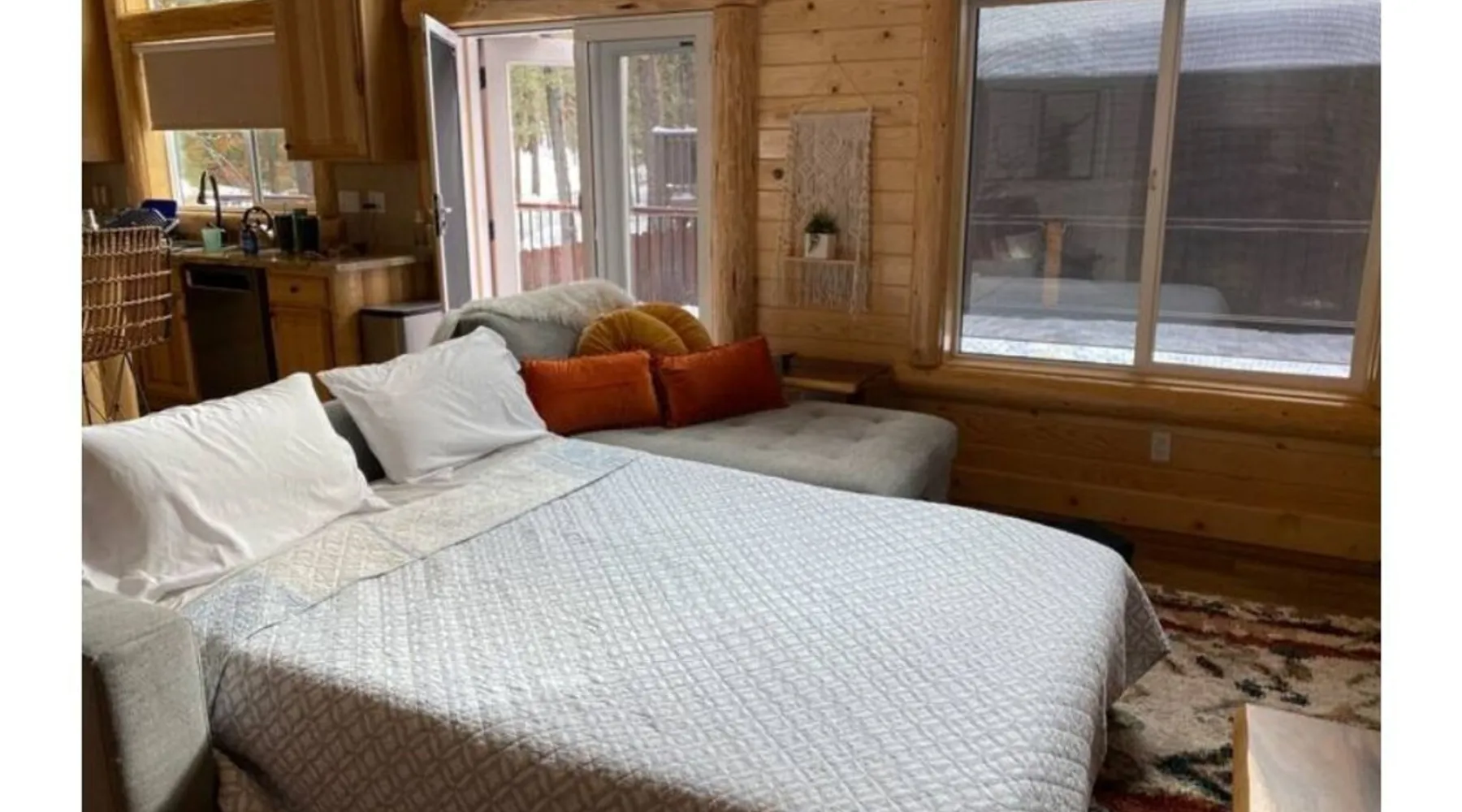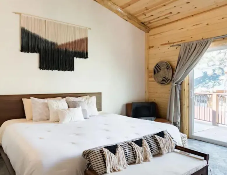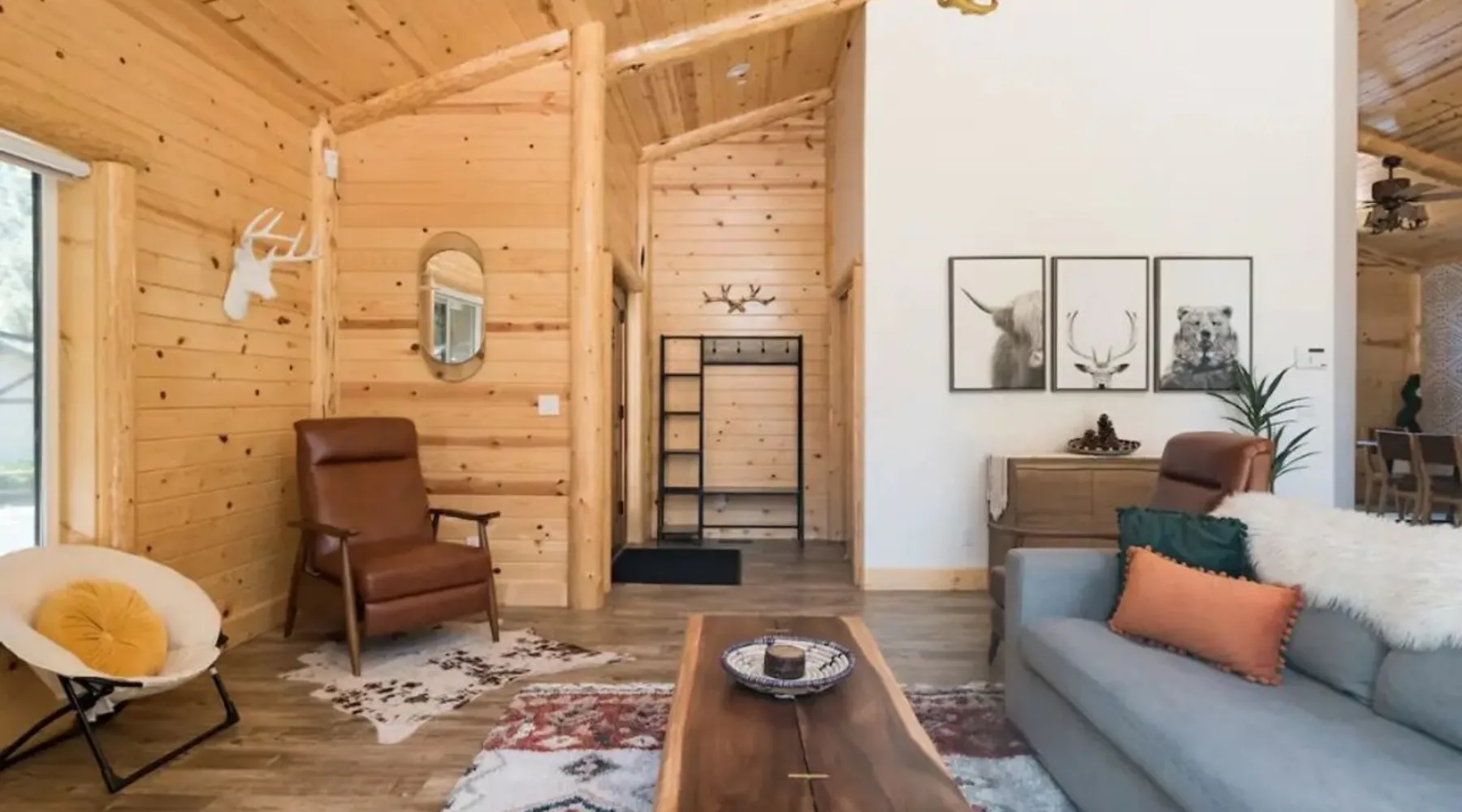 GORGEOUS, SINGLE LEVEL CUSTOM CABIN FENCED YARD-SPA-BBQ-FIRE PIT-CLOSE TO SLOPES New, gorgeous cabin located minutes away from Big Bear Lake and Ski slopes. Built in 2019 and decorated with the finest details throughout, this cozy cabin truly offers the ideal mountain getaway. The perfectly located quaint neighborhood includes multiple routes to slopes, ensuring a quick journey even during days with heavy traffic. Take in the beautiful pine views with two spacious decks including stairs to a modern 6 person salt water spa. The space Open concept great room with living, kitchen, and dining rooms all under a knotty pine vaulted ceiling. Large master with en-suite bath and two secondary bedrooms with a full bath to share. Large fully fenced back yard and two spacious wood patios surrounded by beautiful pines. Guest access Entire home, two patios and fully fenced yard. Languages English, Spanish