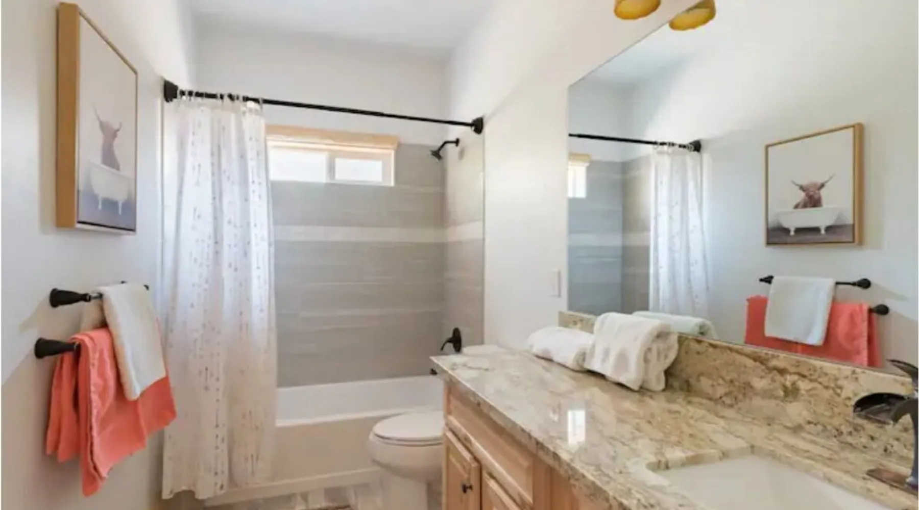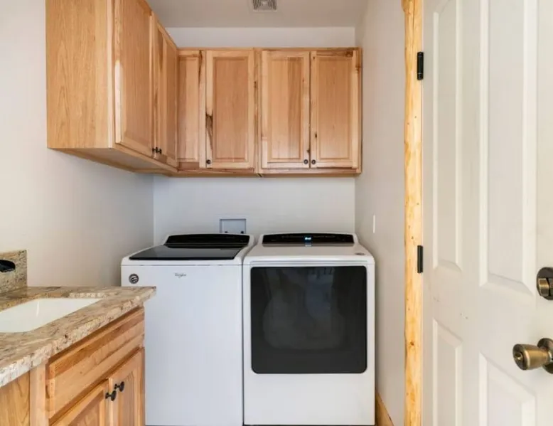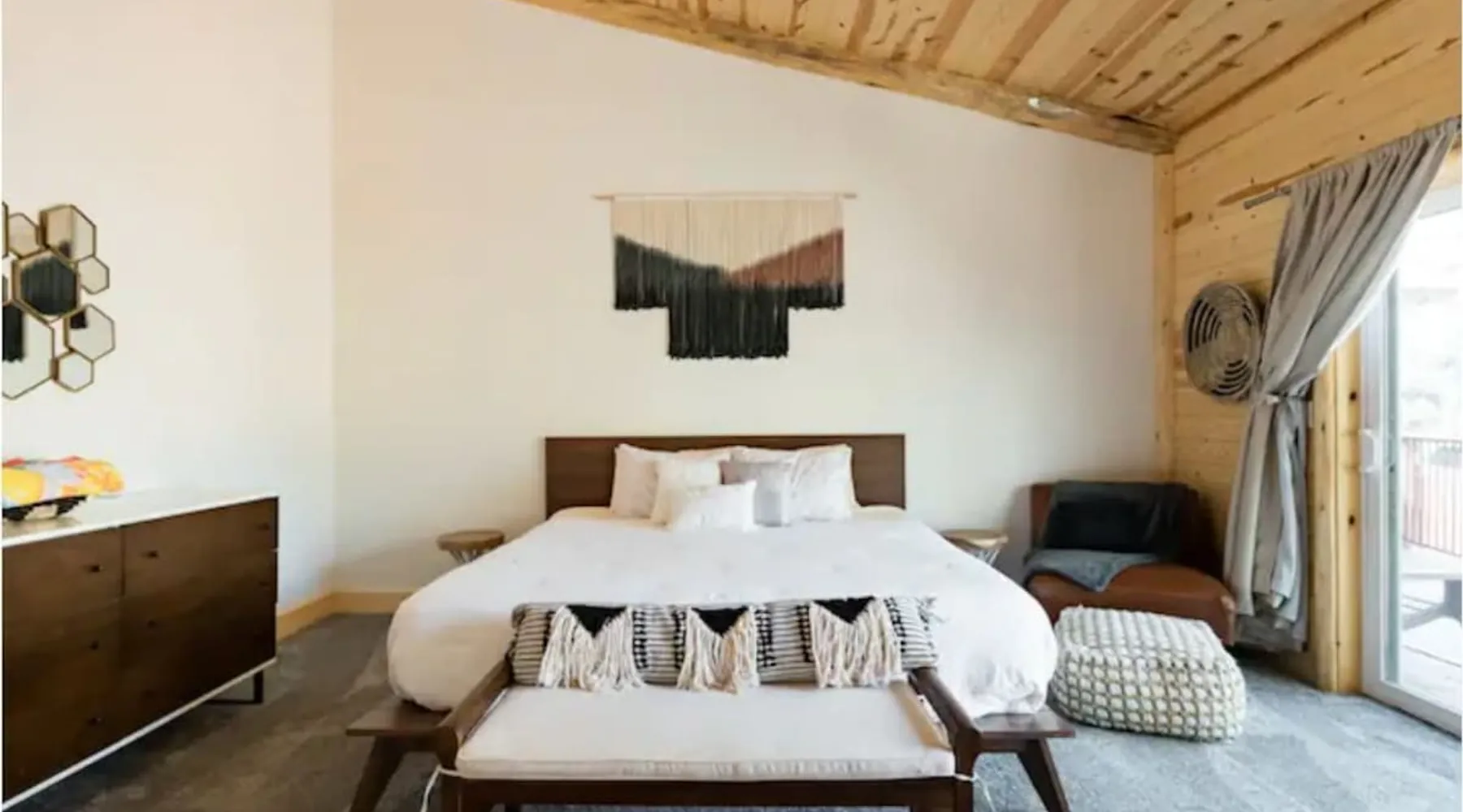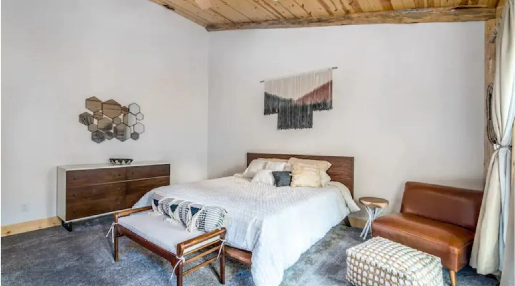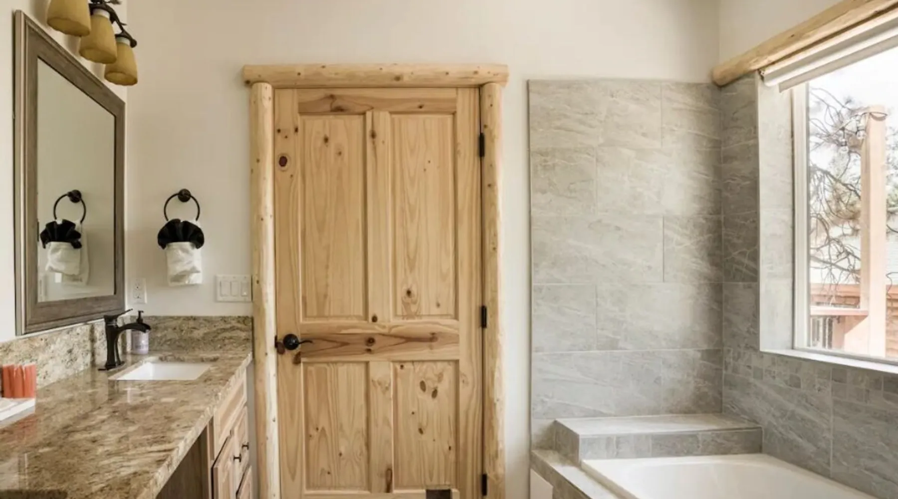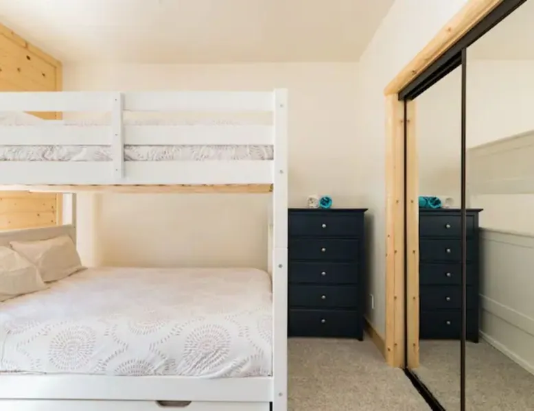 GORGEOUS, SINGLE LEVEL CUSTOM CABIN FENCED YARD-SPA-BBQ-FIRE PIT-CLOSE TO SLOPES New, gorgeous cabin located minutes away from Big Bear Lake and Ski slopes. Built in 2019 and decorated with the finest details throughout, this cozy cabin truly offers the ideal mountain getaway. The perfectly located quaint neighborhood includes multiple routes to slopes, ensuring a quick journey even during days with heavy traffic. Take in the beautiful pine views with two spacious decks including stairs to a modern 6 person salt water spa. The space Open concept great room with living, kitchen, and dining rooms all under a knotty pine vaulted ceiling. Large master with en-suite bath and two secondary bedrooms with a full bath to share. Large fully fenced back yard and two spacious wood patios surrounded by beautiful pines. Guest access Entire home, two patios and fully fenced yard. Languages English, Spanish
