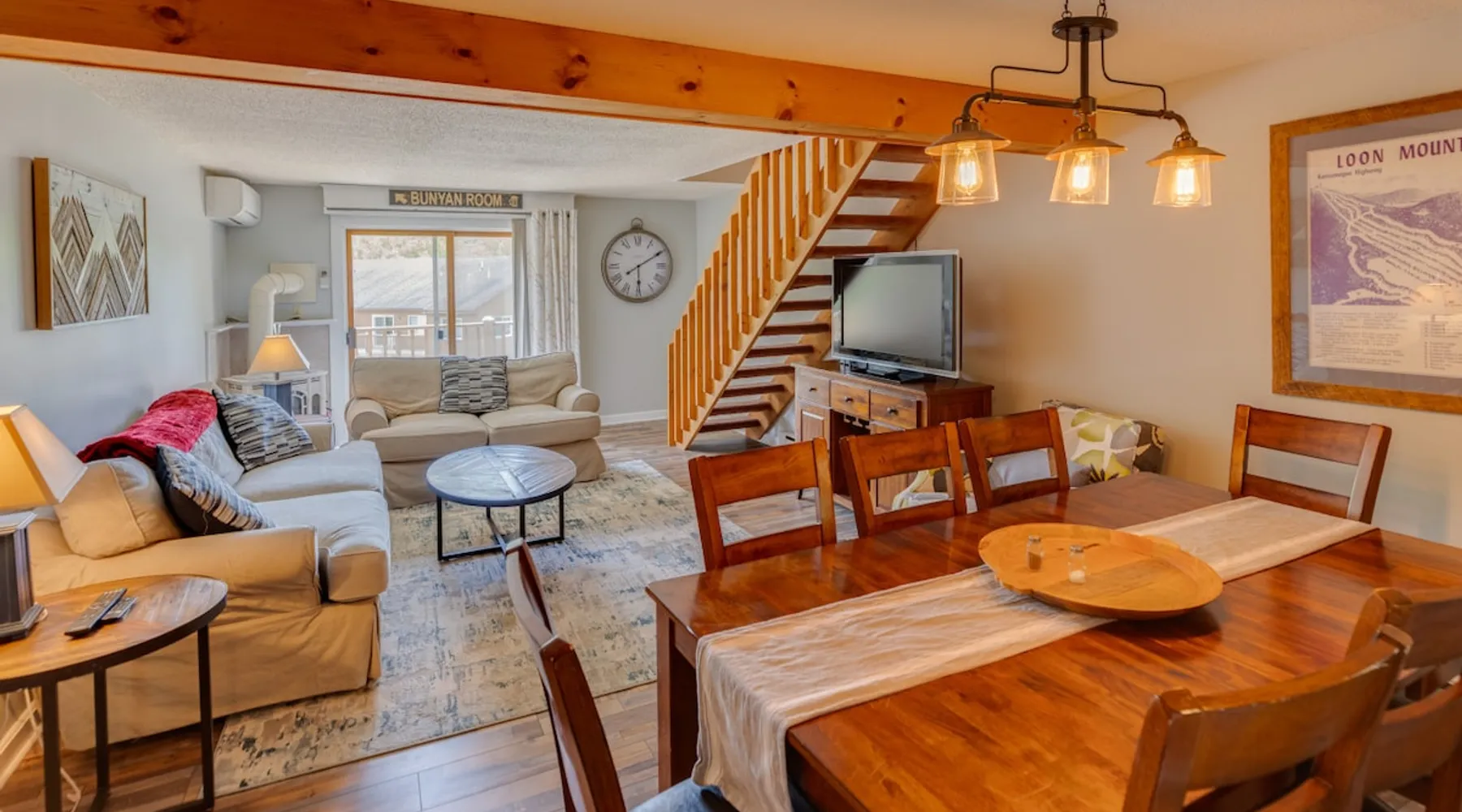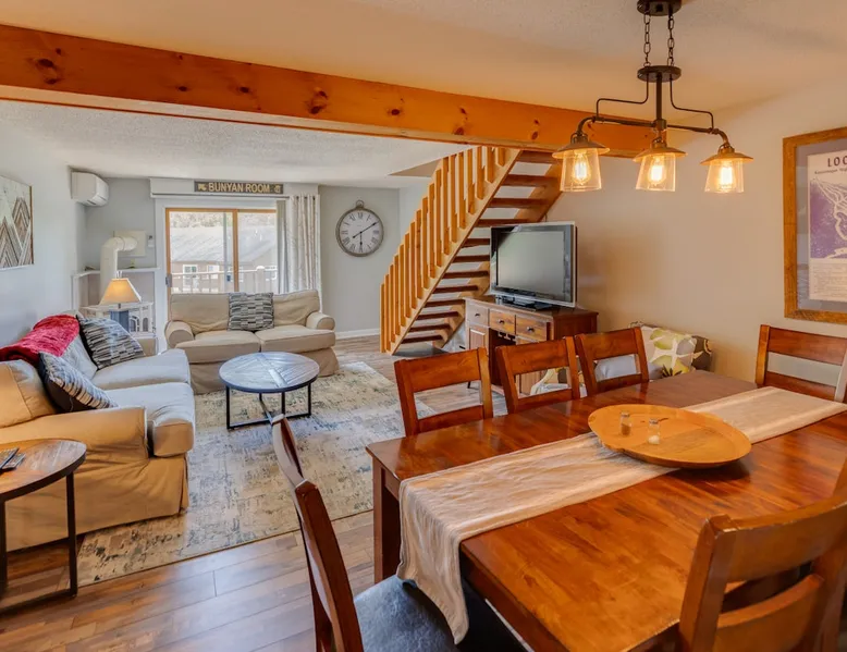 Welcome to Lincoln! Our cozy, updated unit is ideally located just a short walk to Main Street shopping, dining and swimming, and less than 3 miles to Loon Mountain Resort. Just a short drive to area attractions! This is a perfect base camp for families, hikers and anyone looking to take advantage of all that the area has to offer. Offsite amenities (indoor/outdoor pools, hot tub and gym) are included and located nearby at the Nordic Inn. The space The condo is located on the third floor of the building with an exterior entrance. Upon entering you will find a full kitchen, and a large open concept dining/living area. There are 1.5 bathrooms and 2 bedrooms on the main level. There is a large private deck off of the living room. Upstairs, you will find a second living area with attached bunk room. (the kids will love having their own floor!) THERE IS A POOL ON SITE, BUT PER HOA IT IS NOT AVAILABLE FOR RENTER USE Guest access ***IMPORTANT*** There is parking for 2 vehicles total. Parking is not assigned, but one car must park behind the other.