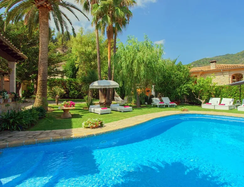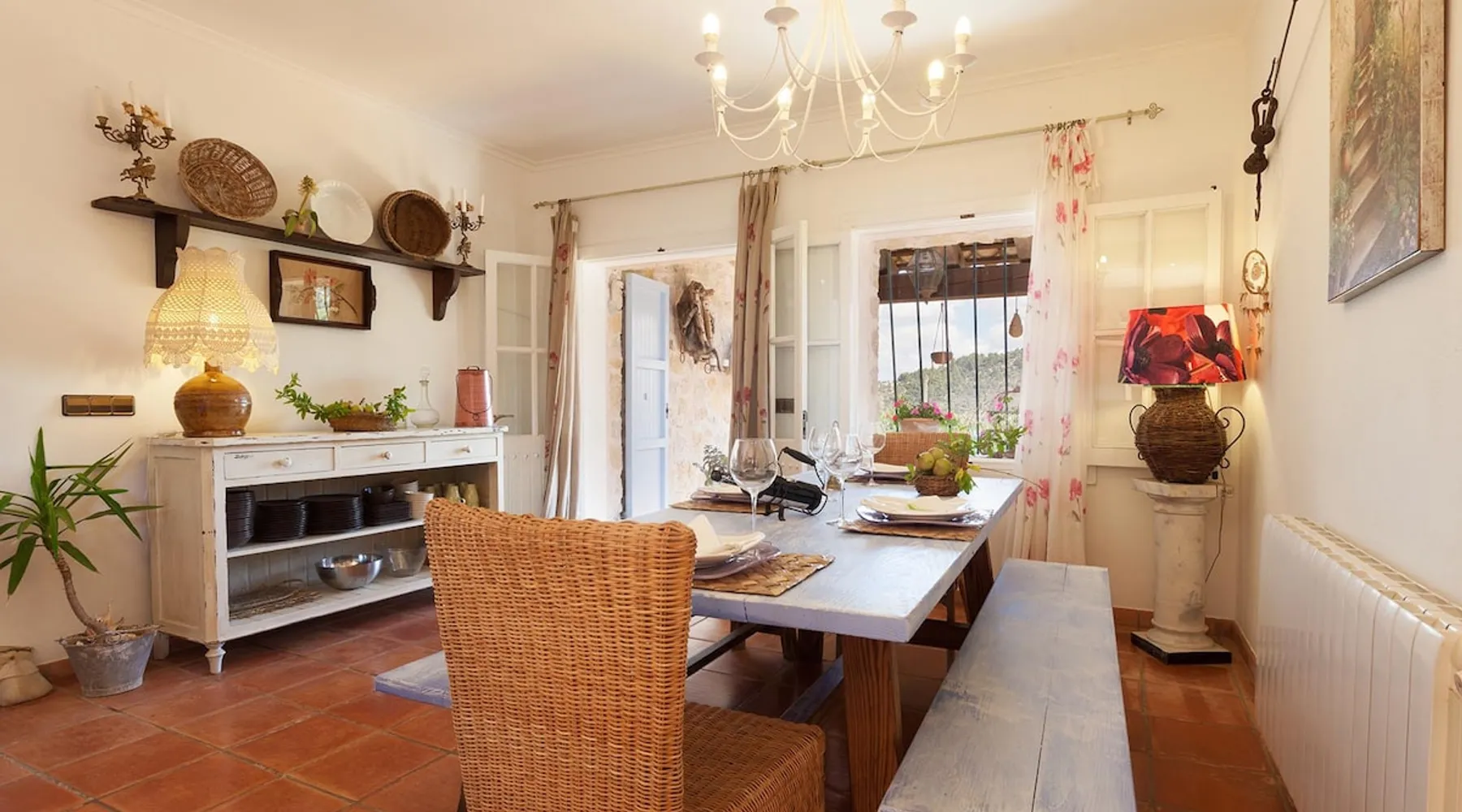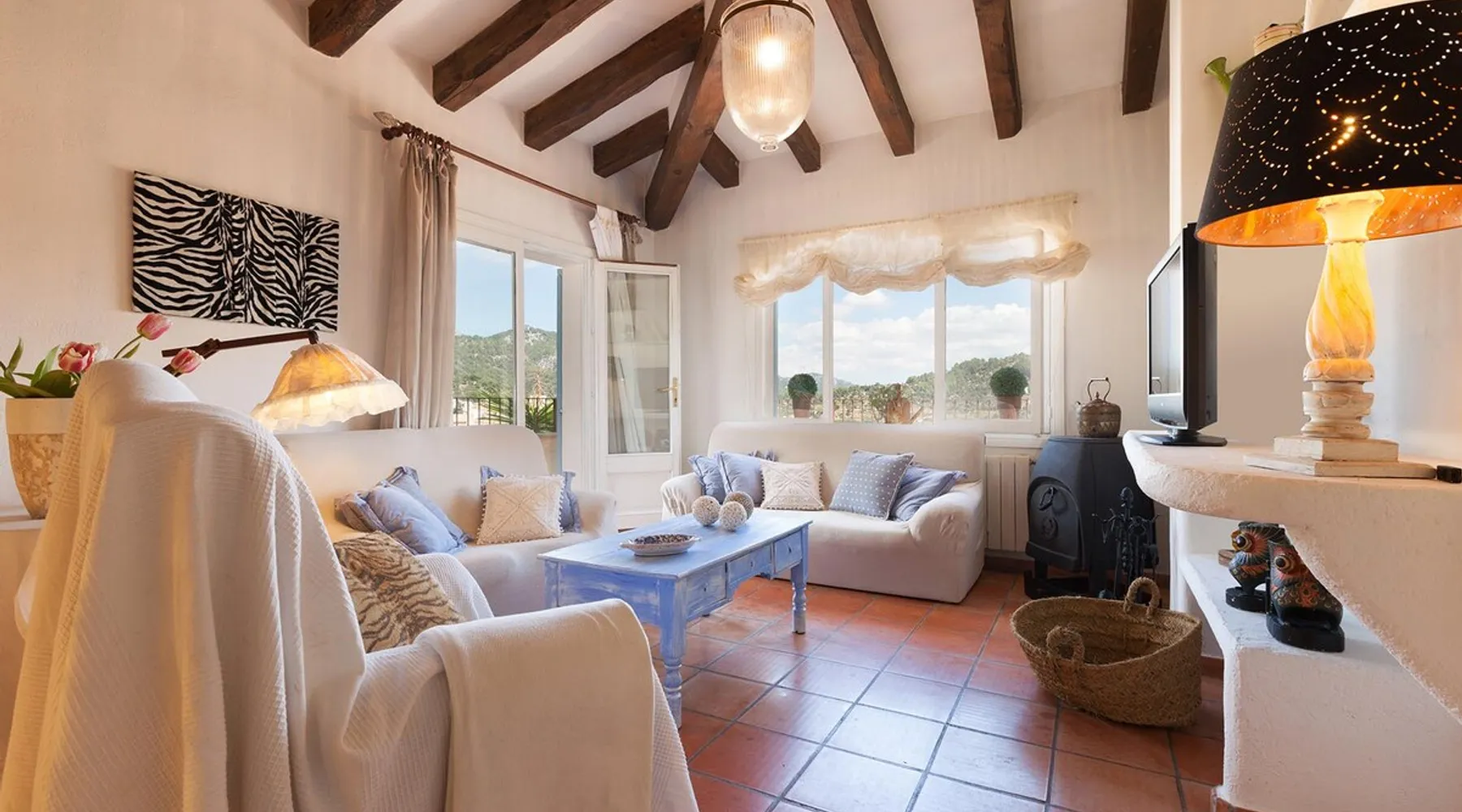 A beautiful villa with a private pool in Mancor de la Vall, the perfect location for hiking. The house is in a quiet location on the outskirts of Mancor de la Vall. Nature lovers and those seeking peace and quiet will feel especially at home here. The house is a perfect base for hiking in the Tramuntana or cycling, and Alcudia Bay is 20 kilometres away. The space The house is in a quiet location on the outskirts of Mancor de la Vall. On the ground floor, it offers a spacious kitchen, a living/dining room, two double bedrooms and a bathroom. Upstairs, there are two double bedrooms, two bathrooms and a second living room. From the terrace, you can enjoy breathtaking views over the village and the mountains. The covered veranda is comfortably furnished and looks out onto the beautiful garden. The house and its facilities are of a remarkably high standard and have been lovingly decorated. Mancor de la Vall is a small community of around 1,100 inhabitants, eight and a half kilometres from Inca. Other things to note The local Eco Tasa has to be paid extra. Included services: - Bed linen: Change each 7 days. - Swimming pool: Price: included in the booking Optional services: - Air conditioning: Price: included - Heating: The use is charged according to consumption. - Cot/Crib: Price: included in the booking. - Baby high chair: Price: included in the booking. From November to March, we offer the cottage for stays of one month or more. The electricity and heating are then billed separately. Registration Details Spain - National registration number ESFCTU000007022000212200000000000000000000000ET/32546