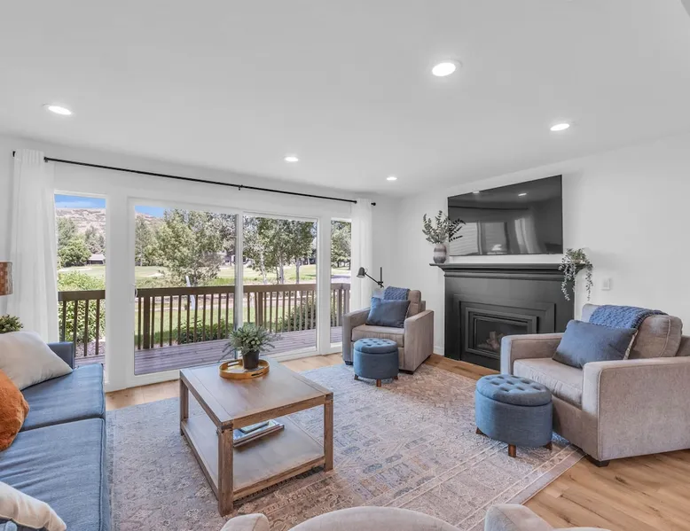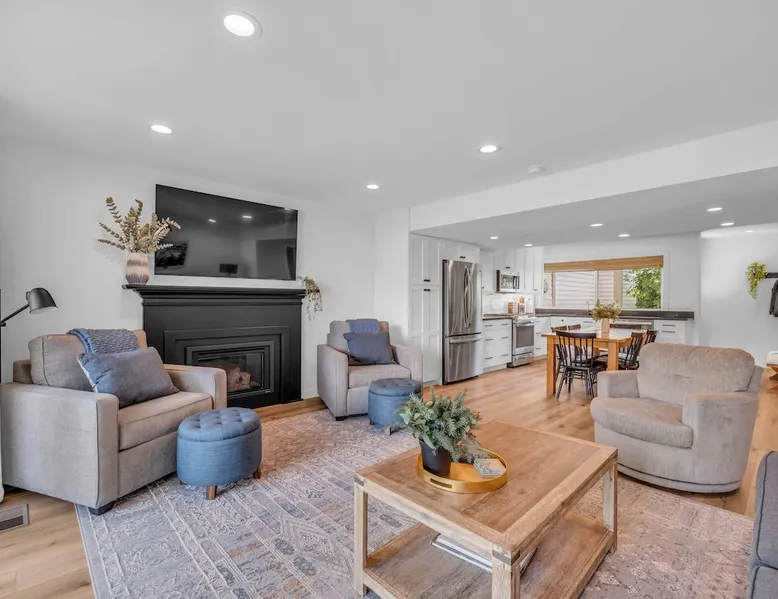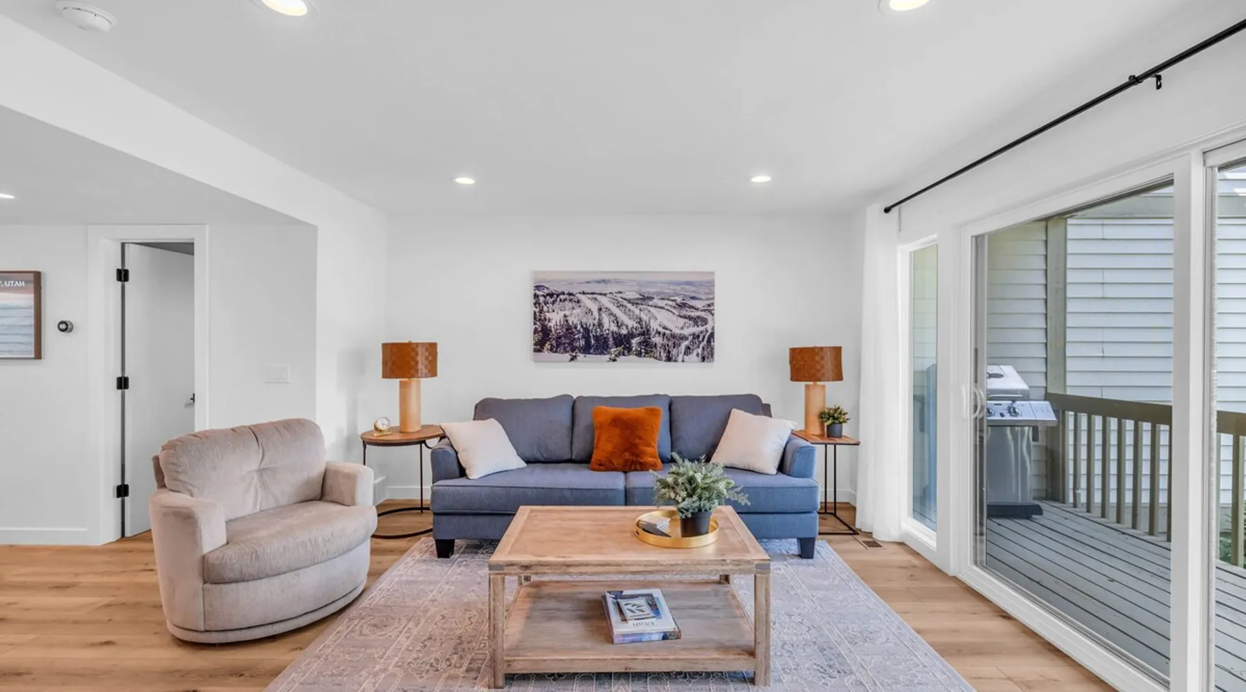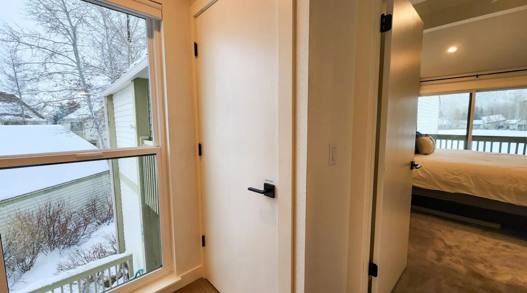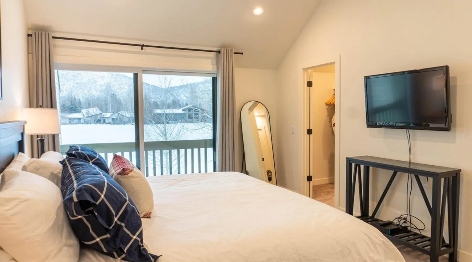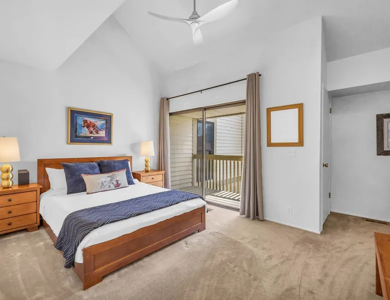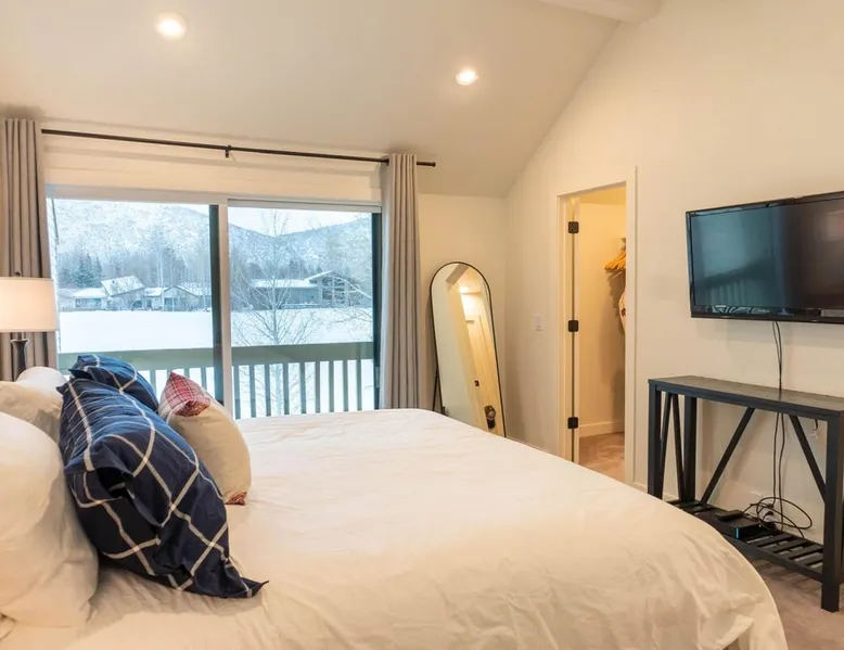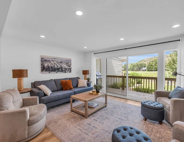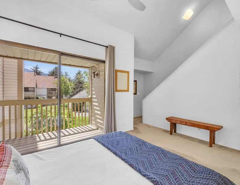 Located in the desirable Park Meadows neighborhood, this modern three-bedroom townhome places you minutes from a world-class ski resort, golf courses, hiking trails, and downtown Park City. The updated townhome is surrounded by serene nature while being only steps from the free city shuttle line at the MARC Stop. Enjoy the best of both sides in this townhome that provides a beautifully decorated quiet space to unwind in an unbeatable location near all the action! The space This beautifully decorated townhome is set up to fulfill all your needs for a comfortable and convenient stay in Park City! Guests will enter the townhome off the front porch, which overlooks a small yard and the surrounding, quiet community. Upon entering the home, take in the bright, updated space as you hang your coats on the large coat rack before making your way into the rest of the home. The ground level of the townhome is set up out with an open-concept floor plan placing the kitchen, dining, and living room all together, creating a thoughtfully designed space for your group to enjoy. Guests will first come to the kitchen, a dazzling space with white cabinets, stainless steel appliances, and a large window above the kitchen sink. The kitchen is fully equipped with everything you may need to make morning pancakes or cook up a delicious dinner. You will find it all in this well-organized space. Combined with the kitchen is the dining space, where you will find a beautiful wooden table with seating for 6. This space is flooded with natural lighting thanks to the sliding glass doors that will take you out to the patio. Just off the dining and kitchen area, a half bathroom is conveniently located for use in the common space and features a single-sink vanity with under-sink storage space and a toilet. Connected to the kitchen/dining area is the living room, a bright space with great views thanks to the sliding glass doors leading out to the patio. The living room is set up with a large couch and three comfortable couch chairs, two of which include footrests for added comfort. Throughout the space, you will also find three side tables and two lamps, as well as one large coffee table. Your group will enjoy warming up by the electric fireplace or catching a movie on the 65” smart TV in this cozy space! From the living room, head out to the private patio via the sliding glass doors and be greeted with beautiful views over the area. The patio includes four patio chairs for you to settle into as you take in the views looking out on the golf course and towards the mountains and the famous Park City hill sign. On the second level of the townhome, you will find three bedrooms, two full bathrooms, and a washing and drying machine. As you come to the top of the stairs, you arrive at an open hallway where you will find the washing and drying machine located in a closet space on the left-hand side. At the end of the hallway located between the master bedroom and first bedroom is the shared bathroom, which features a single-sink vanity, a tiled shower/bathtub combo, and ample below-sink storage space. To the left of the bathroom is the master bedroom. Enjoy a restful night of sleep on the king bed in this spacious room where you will find vaulted ceilings, a large walk-in closet, and a private terrace through a sliding glass door that provides lovely views over the golf course and backyard area. Enjoy the views while still resting in bed, watch a movie on the mounted 39” TV, or enjoy a good book with the conveniently located bedside lamps on the two nightstands. Adding to your comfort is the fully attached master bathroom boasting a modern design complete with a double-sink vanity and a large walk-in shower with a small built-in seat. Directly across from the master bedroom you will find the first guest bedroom, which includes a queen bed, a bedside table and lamp, and sliding glass doors to a balcony that overlooks the front side of the townhome. This charming room has additional touches to make you feel right at home with vaulted ceilings, well-placed decor, and blackout curtains to ensure a restful night of sleep. Additionally, located in this room is a staircase leading up to a loft area, which has been set up as a third bedroom. In this third bedroom, you will find two twin beds, one bedside table with a lamp, a 32” TV, and two closets for guest use. The two rooms offer a great space for families or groups to share while still providing separation of sleeping areas. Guest access Guests will have access to the entire home as well as two parking spots, one community space, and one space in the parking garage. Other things to note This home is located on the 6th hole of Park Meadows Country Club golf course, which is a private golf course and can only be played on with a membership. In the summer months, guests are asked to not go out onto the course located behind the house at any time. Please note, like most homes in Park City, this home does not have A/C. Parking Notes: Guests cannot park their vehicles in front of the garage door. They can be towed by the HOA at the guest's expense. Please keep in mind that if you plan to ski, you are responsible for verifying the ski resorts' opening and closing dates.