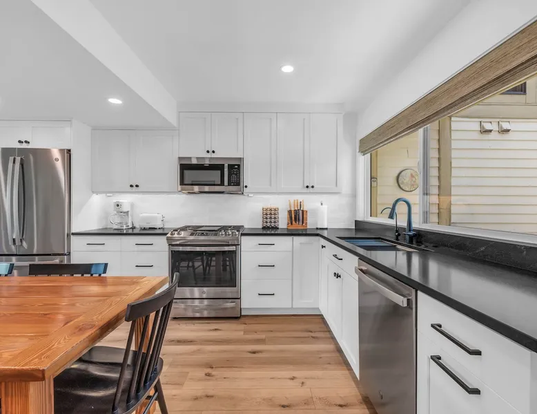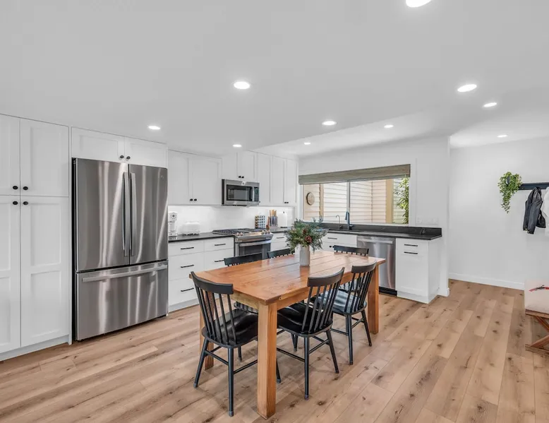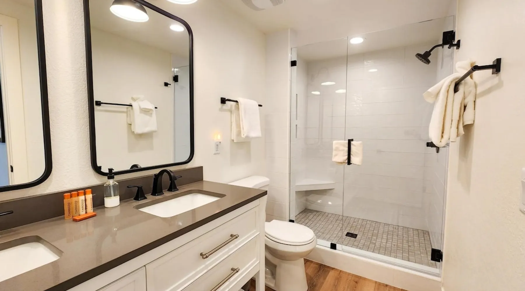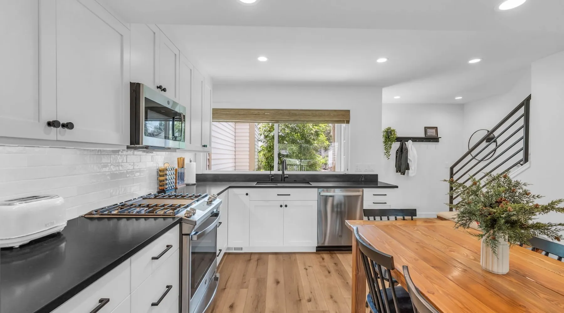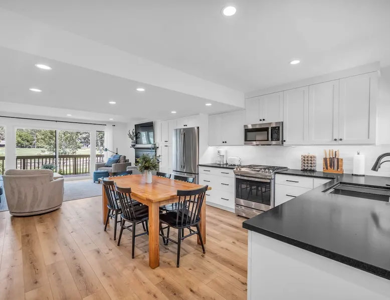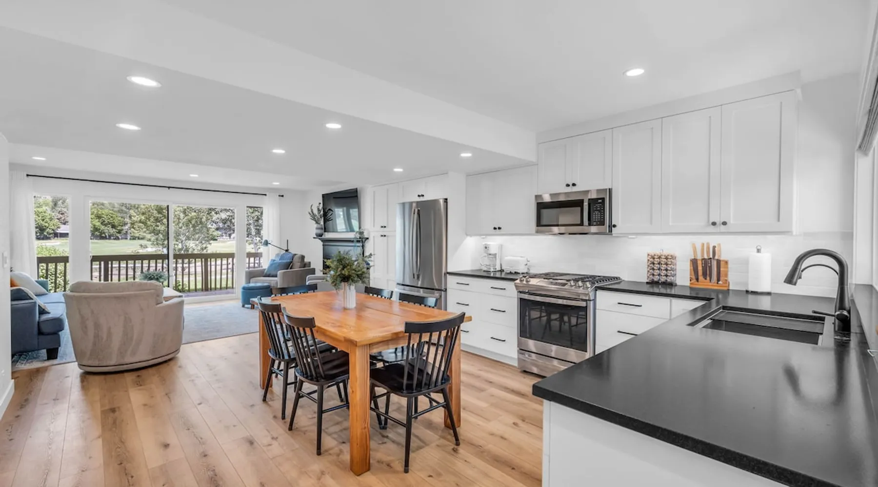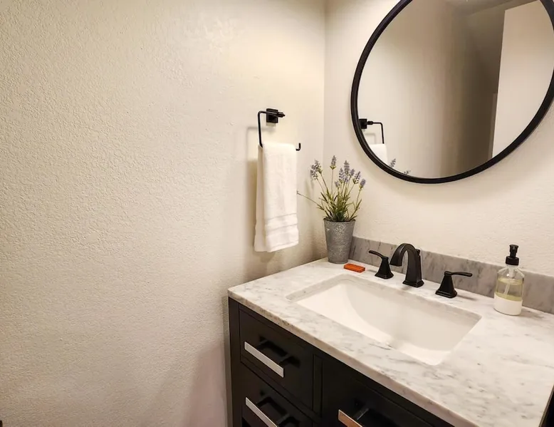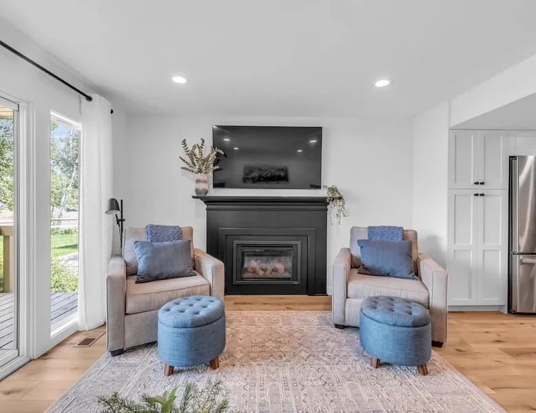 Located in the desirable Park Meadows neighborhood, this modern three-bedroom townhome places you minutes from a world-class ski resort, golf courses, hiking trails, and downtown Park City. The updated townhome is surrounded by serene nature while being only steps from the free city shuttle line at the MARC Stop. Enjoy the best of both sides in this townhome that provides a beautifully decorated quiet space to unwind in an unbeatable location near all the action! The space This beautifully decorated townhome is set up to fulfill all your needs for a comfortable and convenient stay in Park City! Guests will enter the townhome off the front porch, which overlooks a small yard and the surrounding, quiet community. Upon entering the home, take in the bright, updated space as you hang your coats on the large coat rack before making your way into the rest of the home. The ground level of the townhome is set up out with an open-concept floor plan placing the kitchen, dining, and living room all together, creating a thoughtfully designed space for your group to enjoy. Guests will first come to the kitchen, a dazzling space with white cabinets, stainless steel appliances, and a large window above the kitchen sink. The kitchen is fully equipped with everything you may need to make morning pancakes or cook up a delicious dinner. You will find it all in this well-organized space. Combined with the kitchen is the dining space, where you will find a beautiful wooden table with seating for 6. This space is flooded with natural lighting thanks to the sliding glass doors that will take you out to the patio. Just off the dining and kitchen area, a half bathroom is conveniently located for use in the common space and features a single-sink vanity with under-sink storage space and a toilet. Connected to the kitchen/dining area is the living room, a bright space with great views thanks to the sliding glass doors leading out to the patio. The living room is set up with a large couch and three comfortable couch chairs, two of which include footrests for added comfort. Throughout the space, you will also find three side tables and two lamps, as well as one large coffee table. Your group will enjoy warming up by the electric fireplace or catching a movie on the 65” smart TV in this cozy space! From the living room, head out to the private patio via the sliding glass doors and be greeted with beautiful views over the area. The patio includes four patio chairs for you to settle into as you take in the views looking out on the golf course and towards the mountains and the famous Park City hill sign. On the second level of the townhome, you will find three bedrooms, two full bathrooms, and a washing and drying machine. As you come to the top of the stairs, you arrive at an open hallway where you will find the washing and drying machine located in a closet space on the left-hand side. At the end of the hallway located between the master bedroom and first bedroom is the shared bathroom, which features a single-sink vanity, a tiled shower/bathtub combo, and ample below-sink storage space. To the left of the bathroom is the master bedroom. Enjoy a restful night of sleep on the king bed in this spacious room where you will find vaulted ceilings, a large walk-in closet, and a private terrace through a sliding glass door that provides lovely views over the golf course and backyard area. Enjoy the views while still resting in bed, watch a movie on the mounted 39” TV, or enjoy a good book with the conveniently located bedside lamps on the two nightstands. Adding to your comfort is the fully attached master bathroom boasting a modern design complete with a double-sink vanity and a large walk-in shower with a small built-in seat. Directly across from the master bedroom you will find the first guest bedroom, which includes a queen bed, a bedside table and lamp, and sliding glass doors to a balcony that overlooks the front side of the townhome. This charming room has additional touches to make you feel right at home with vaulted ceilings, well-placed decor, and blackout curtains to ensure a restful night of sleep. Additionally, located in this room is a staircase leading up to a loft area, which has been set up as a third bedroom. In this third bedroom, you will find two twin beds, one bedside table with a lamp, a 32” TV, and two closets for guest use. The two rooms offer a great space for families or groups to share while still providing separation of sleeping areas. Guest access Guests will have access to the entire home as well as two parking spots, one community space, and one space in the parking garage. Other things to note This home is located on the 6th hole of Park Meadows Country Club golf course, which is a private golf course and can only be played on with a membership. In the summer months, guests are asked to not go out onto the course located behind the house at any time. Please note, like most homes in Park City, this home does not have A/C. Parking Notes: Guests cannot park their vehicles in front of the garage door. They can be towed by the HOA at the guest's expense. Please keep in mind that if you plan to ski, you are responsible for verifying the ski resorts' opening and closing dates.