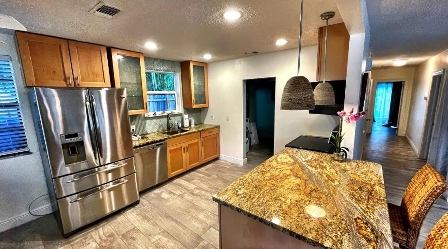 Spacious Accommodations: Laguna Azul in Redington Beach offers a spacious holiday home with two bedrooms and two bathrooms. The living room includes a comfortable sofa and a TV, ensuring a relaxing stay. Private Beach Area: Guests can enjoy a private beach area with direct access to the sea. The property features a swimming pool with a view, sun terrace, and lush garden, providing ample outdoor space. Modern Amenities: The holiday home includes air-conditioning, a fully equipped kitchen, washing machine, and free WiFi. Additional facilities include a private pool, outdoor seating area, picnic area, and free on-site parking. Nearby Attractions: Madeira Beach is a 2-minute walk away, while John's Pass is 2.7 mi from the property. St. Pete-Clearwater International Airport is 14 mi distant, offering convenient travel options. The private pool is the special feature of this holiday home. Meals can be prepared in the well-fitted kitchen, which comes with a stovetop, a refrigerator, a dishwasher and an oven. The spacious air-conditioned holiday home provides a flat-screen TV with cable channels, a washing machine, a private entrance and a tea and coffee maker. The unit offers 6 beds.