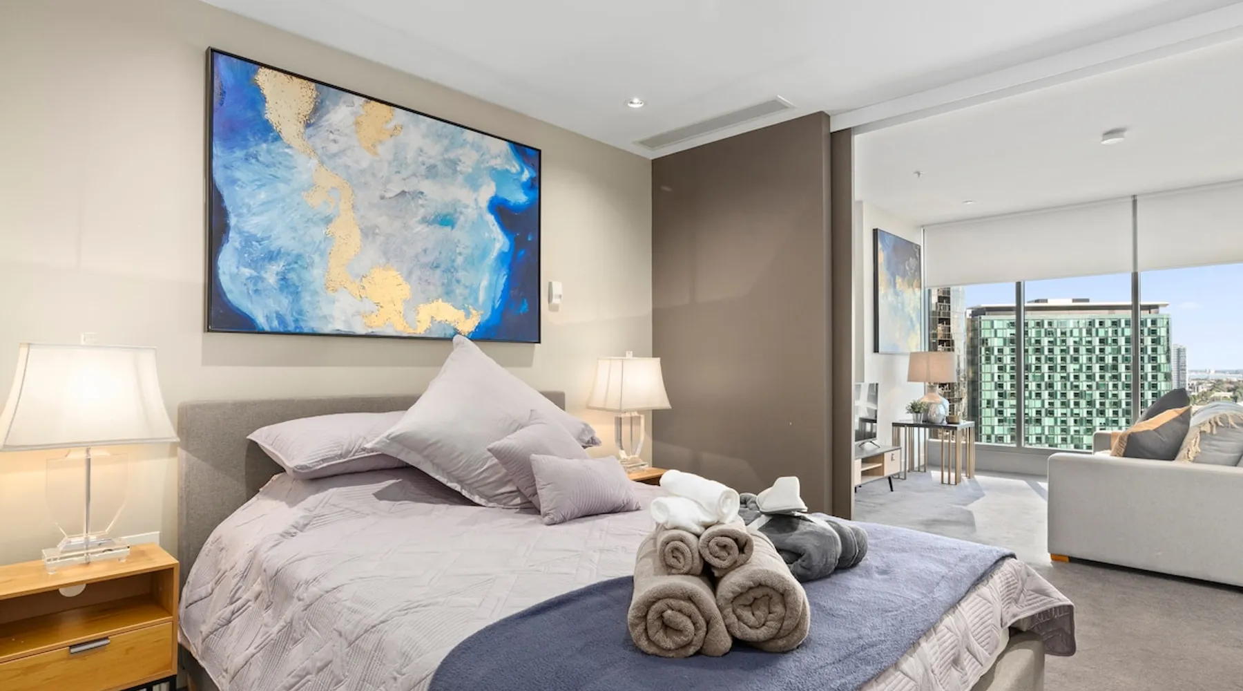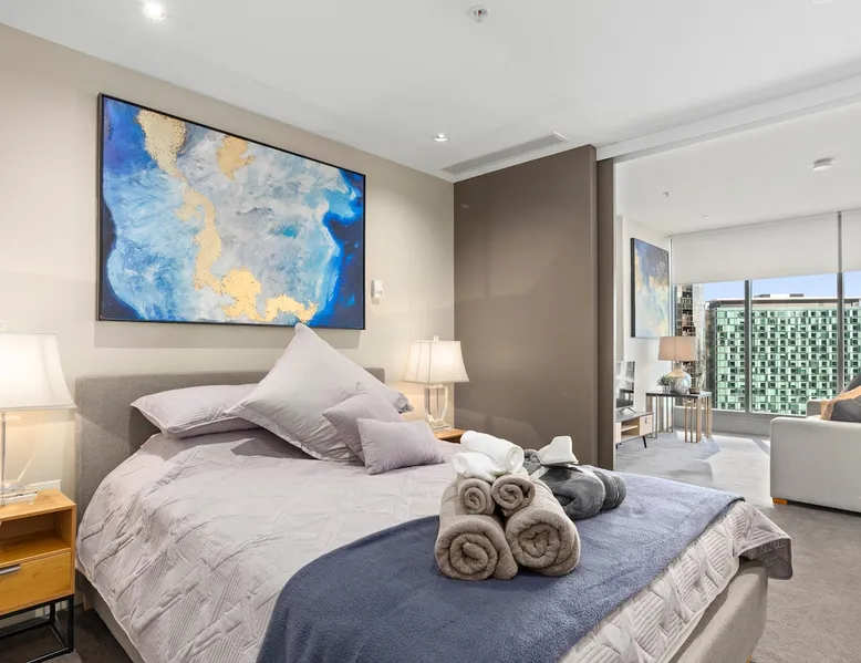 Wake up to stunning city and river views in the heart of Southbank. This light-filled, designer apartment offers the perfect blend of comfort and location — just steps from Crown Casino, the Yarra River, and Melbourne's iconic laneways. ✔️ 5-Star Hotel Experience ✔️ Fully Equipped Kitchen ✔️ Super Fast Wi-Fi ✔️ Walk Score 98 + Transit Score 100 ✔️ Premium Queen Bed + Sofa Bed ✔️ 24hr Building Concierge Availability is limited — book your stay now. The space 🏙️ Welcome to Freshwater Place – Southbank’s Most Sought-After Designer Apartments Step into luxury and feel the difference the moment you arrive. This high-floor residence delivers a 5-star hotel experience with brand new designer furnishings, breathtaking views, and everything you need for a perfect stay. ✔ Premium hotel-quality queen bed ✔ Memory foam fold-out double sofa bed ✔ Full kitchen with oven, microwave, fridge & dishwasher ✔ 40" Smart TV with Netflix ✔ Automatic coffee machine with milk frother ✔ Super-fast Wi-Fi ✔ Dedicated work/study bench ✔ 24hr building concierge ✔ Hairdryer, iron 💎 Experience More Than Just a Stay Wake up to panoramic views, sip coffee in a beautifully styled space, and unwind in the heart of Melbourne — just steps from Crown Casino, the Yarra River promenade, and world-class dining. ➤ Please Note: 🏊 Access to the building’s gym, pool, spa, sauna, and BBQ area is available for long-term stays only (1+ month). A $150 per person fee applies, charged by building management An in-person 2-hour induction (on Thursday or Saturday) is required to activate access Access card issued 48 hours after induction This is optional and best suited to extended stays. ➤ Ready to Relax in Style? ➡ BOOK NOW to lock in your dates and start planning your Southbank escape! Guest access Guest access ✔Self Check In. Key instructions sent through the day prior to check-in. Free check-in between 3 pm and 8:30 pm. ✔I am always contactable and advise anyone to contact me if they need anything or have any questions at any time. ✔If you can kindly wait outside at the front of the building, we will come and meet you with the key. Please don't check-in with concierge as it's a private resident building and they will be unable to assist. 》Standard check-in is between 3-9 pm. • Check-ins between 9 pm-midnight will incur a late check-in fee of $40. • Check-ins after midnight will incur a late check-in fee of $70. Other things to note 》I want to ensure things are flexibile for you. If you require a specific check-in or check-out time, please let me know and I will accomodate as best I can. 》The facilities, pool, gym, sauna, steam room and BBQ area cost an additional $150 per stay to use (this fee is incurred directly from the building management) Guests will need to complete a 2 hour induction at the property on either a Saturday or a Thursday to be able to access the facilities. Once the induction is complete you will receive an access card after 48hrs. 》Please note, this room is not suitable for any parties or large groups. Freshwater Place is a prestigious residence which prohibits any rowdy behaviour. 》Parking - this apartment does not have a carpark. However, there are 2 Wilson Carparks nextdoor. Wilson Riveside Quay & Wilson Eureka. I advise checking their rates for parking. Feel free to contact us with any additional questions you might have.