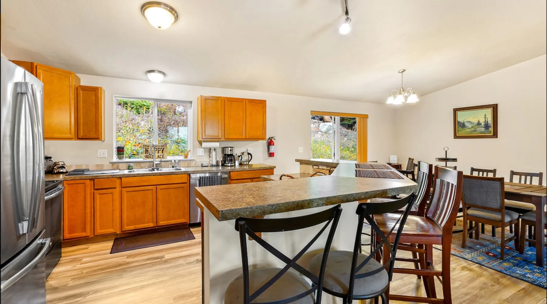 Marvel at the sweeping beauty of Wenatchee National Forest from the comfort of the patio, or simply step out your backdoor to adventure. Cascades Wildflower Villa is your gateway to quintessential Pacific Northwest recreation with plenty of room for friends and family (and Fido, too!). ABOUT CASCADES WIDFLOWER VILLA Open the front door to the beautifully manicured Kahler Glen Golf Course or step directly out of the back door into the Wenatchee National Forest! Cozy but spacious, this home invites you to be whoever you want to be: cuddly book worm, thrill-seeking adrenaline junky, curious trail climber. Perfectly located for those looking to explore Leavenworth and Wenatchee, and equally convenient as a basecamp for Stevens Pass. The open concept living/dining/kitchen space is the perfect retreat for the whole group after a day of natural fun. Relax on the sunny patio and feast your eyes on the rolling mountains by day, and gather ‘round the fire pit to tell stories and spot constellations by night. Worried about missing the game, or wishing you could curl up to your favorite film while on vacation? We have three 50" flat screen smart TVs, each with its own sound bar waiting for you. With three inviting bedrooms, two full bathrooms, and plentiful living room seating, Cascades Wildflower Chalet Villa comfortably sleeps up to six adults in the tranquility of the Pacific Northwest Mountains. With the two sleeper sofas in the living room and a crib, up to eight adults, two kids and one infant or toddler can be accommodated.. WHAT GUESTS HAVE TO STAY “Exceptional” - Eddie “It was a great stay and would recommend this place to anyone looking for a mountain staycation. The house was squeaky clean when we arrived and was very well maintained. If you are looking for a cabin in the woods, this is the right spot.” - Vibha MORE ABOUT CASCADES WILDFLOWER VILLA Your escape to the Cascades: - This is a ski-in, ski-out property and trails hook into the Lake Wenatchee trail system, so there are miles and miles of groomed cross country ski trails right outside the front door. (Please be sure to check trail maps and snow reports for current conditions and trail openings.) - The Nason Ridge Trail is literally right out the back door of Cascades Wildflower Cabin, where you can start your hike through the Wenatchee National Forest. Additional hiking can be found at Hidden Lake, just five minutes west, and Dirty Face, seven minutes northwest. - Make yourself at home! Please enjoy the entire house and outdoor amenities. - Fully equipped stainless steel kitchen for home cooking, or walk a few blocks down the road to Wildflour’s four-star Italian dining. - Up to 2 dogs are allowed with our per pet per day cleaning fee. - In winter resort roads are snow plowed, but you must bring tire chains to more easily access our steep driveway. KAHLER GLEN GOLF & SKI RESORT - The real treat is the location right on Kahler Glen Golf Course. Even if you don't play the spectacular 18 holes, you'll enjoy the full mountain views, the long luscious greens and serenity the course offers. The clubhouse includes a full restaurant and bar available for your enjoyment. - Simply step outdoors to enjoy Kahler Glen’s 18-hole, par 70 golf course in the warmer months. In winter the course is transformed into a groomed cross country ski area, with sledding, and snowshoeing. Kids will enjoy the on-site playground. - Enjoy a four-star dining experience at Wildflour Restaurant, located on the Kahler Glen premises. Not only wonderful food, but year round dining in unique outdoor igloos and, if you prefer, carry out. Reservations are highly recommended. - Just one mile away, you'll find Lake Wenatchee State Park where in summer you can swim, rent kayaks and stand up paddleboards, ride horses, and more. In winter, the area activities include sledding, snowshoeing, and cross country skiing. - Plain, five miles to the east, features zip line tours. - For Bavarian charm, wine tasting galore, and summer rafting trips on the Wenatchee River, head on over to Leavenworth, just 20 minutes away. - In 30 minutes, you can find yourself at Stevens Pass, a Vail Ski Resort. ABOUT LAKE WENATCHEE NEAR LEAVENWORTH Looking to enjoy a getaway in the Leavenworth area? You've come to the right place because Lake Wenatchee properties are only a short 30-35 minute drive to downtown Leavenworth itself. The Lake Wenatchee area has endless recreational activity options throughout all four seasons. If you decide to stay with us, you'll have the opportunity to explore and adventure around the lake and throughout the towering timbers. During the summer, there are bird watching, fishing, boating & rafting and trail hiking opportunities. The warm weather brings all the wildlife out, so take the opportunity to explore the area. The colder months of winter allow for skiing, snowshoeing, as well as ice fishing & skating adventures. No matter what time of the year you decide to visit, the scenic views are to die for. As we stated earlier, you're also a short drive away to downtown Leavenworth where the Bavarian culture and spirits exist. You can enjoy a variety of events throughout the year such as Oktoberfest, the flowering Maifest or the Christmas lighting and caroling during December. THE LEAVENWORTH GETAWAYS PROMISE Leavenworth Getaways is the only full-stack vacation rental management company in the area. We vow to make booking with us simple and exciting. We know that booking a rental property home for your vacation can be unfamiliar territory for some, while others know their way around it. Because we know this, we ensure that each of our properties are up to high quality standards. We do our absolute best to provide support to our guests when booking. We are available to assist you every day of the year if you have any questions or concerns before, during or after you visit our home. We have onsite property management available 24/7 for anything concerning that 
