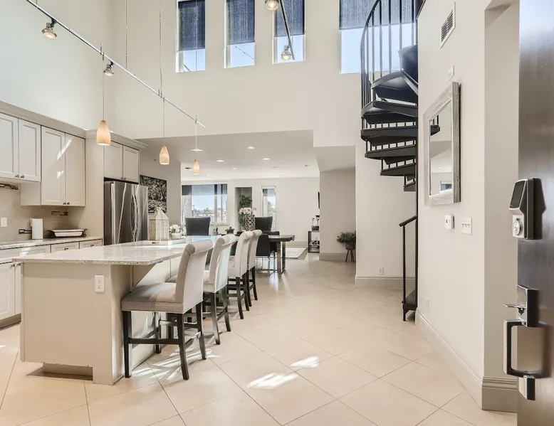 Welcome to your urban oasis in the heart of Denver! Step into this stunning condo, where elegance meets comfort. Recently remodeled, this sleek condo features high-end furnishings that create an inviting atmosphere, ensuring you feel right at home. With its spacious layout and stylish decor, this loft is the perfect retreat after a busy day in the city. Experience the vibrant energy of Denver while enjoying the luxurious comforts of your own private sanctuary. The space BEDROOMS: -The Master Bedroom boasts a contemporary design with a queen sized bed and en suite full bathroom, ,fully stocked with toiletries and hotel grade bath towels. - The cozy loft features two inviting queen beds. Wake up refreshed and enjoy stunning views from the rooftop patio BATHROOMS: This condo has 1.5 bathrooms. The full bathroom (shower & bathtub) is located in the master bedroom.. meaning you have to walk through the master bedroom to get to the full bathroom. The other bathroom is a half bath (toilet only). OUTDOOR SPACE: Step onto the rooftop terrace and immerse yourself in unparalleled views of the vibrant RiNo neighborhood and downtown Denver. This stunning outdoor space invites you to unwind in the cozy seating area, where you can relax with friends or enjoy a peaceful moment under the sun. For a touch of fun, challenge your friends to a lively game of cornhole, all while soaking in the spectacular skyline and starry nights. This rooftop terrace is not just a space; it’s an experience that combines relaxation and entertainment in the heart of the city! LOCATION: Discover the ultimate urban lifestyle in this unbeatable location! Just a stone's throw away from Denver's finest restaurants, vibrant art scene, and electrifying nightlife, you'll find yourself at the heart of it all. Whether you're craving a gourmet meal, a visit to an art gallery, or a night out on the town, everything you desire is within easy reach. Embrace the convenience and excitement of city living while enjoying all the amenities that make this property the perfect place to call home. KEY AMENITIES: ☆ 5 STAR LOCATION ☆ Modern, updated furnishings ☆ Fully Stocked Kitchen ☆ 3 Queen Beds ☆ Large Smart TV ☆ Fast Wifi ☆1 Designated off-street parking spot ☆Incredible private rooftop terrace w/outdoor seating ☆Prime mountain access ☆Walkers Paradise Guest access You'll have complete access to the loft, including a private outdoor terrace. Other things to note Please not that the condo is on the third floor of the building and is only accessed by stairs. The elevator is not available for guest use. Reservations may be subject to extra guest fees, as well as additional charges for optional services such as adding pets or requesting early check-ins. Registration Details 2023-BFN-0021026