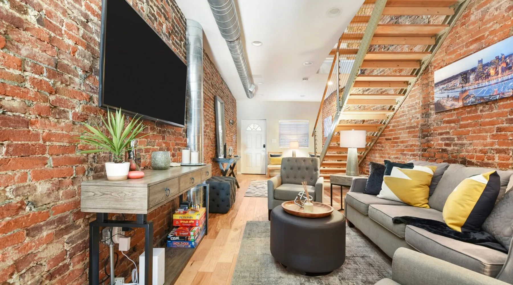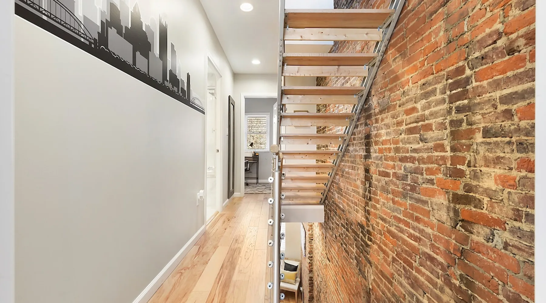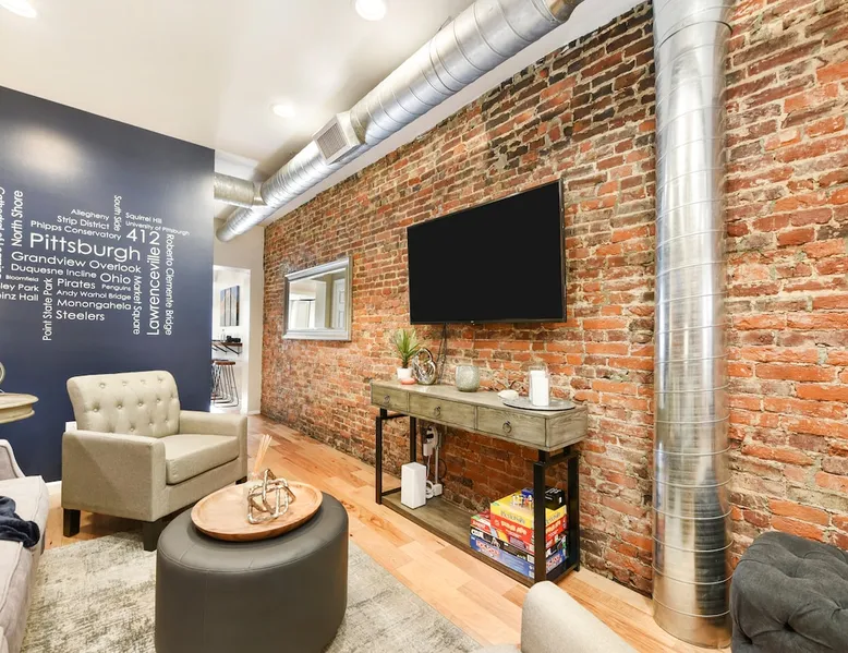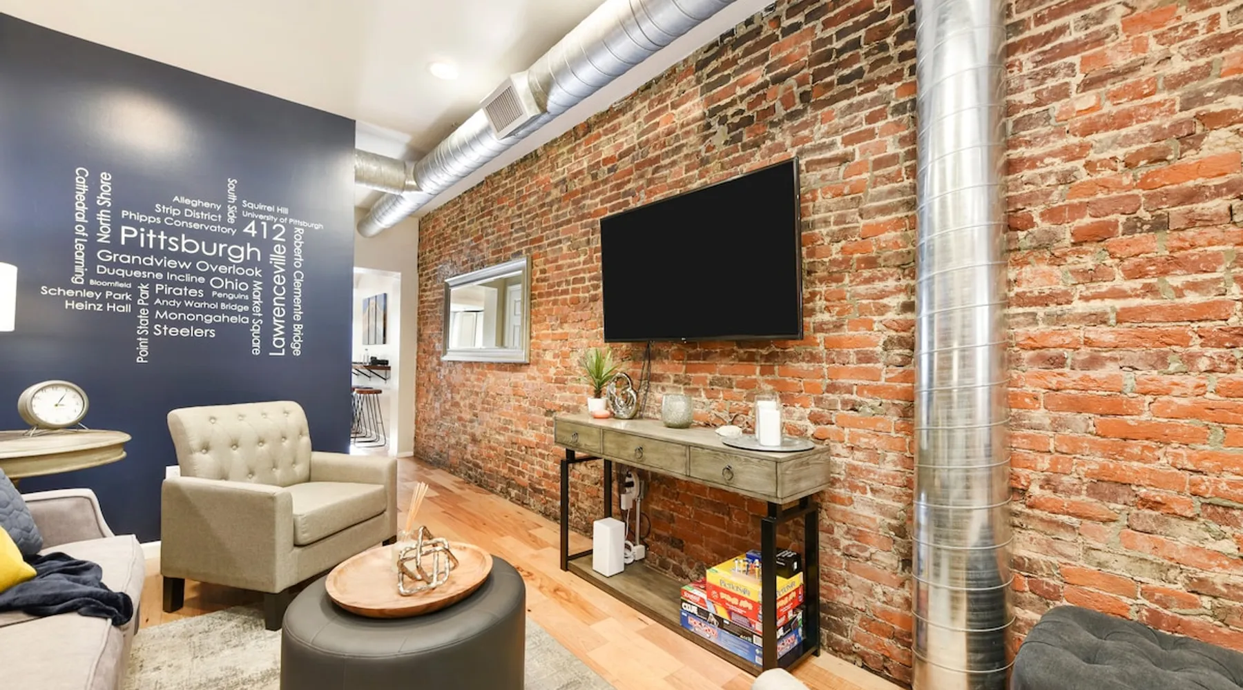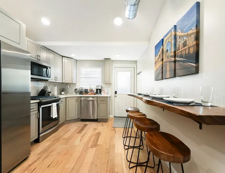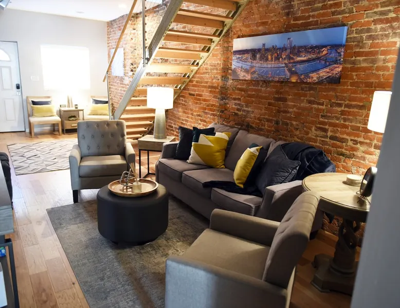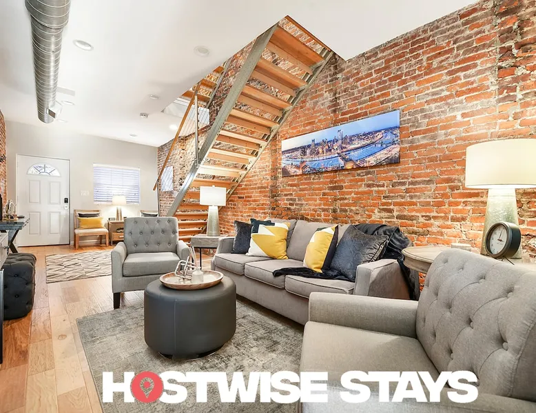 In the heart of lower Lawrenceville, our place exudes historic Pittsburgh charm while providing an incredibly cozy experience. Our spacious kitchen invites you to cook a great dinner. Our comfortable living room surrounded by historic brickwork + open staircase encourages you to relax and watch Netflix. The patio welcomes you with fresh air. With two full bathrooms, two couples or a family can get ready for the day (or night!) Within walking distance, bars, breweries, and restaurants abound! The space 🏡 KEY FEATURES & AMENITIES ✓ Chore-Free Checkout® – So easy, it's trademarked! ✓ Keyless Entry – Smart lock + optional digital access guide ✓ Spacious 2BR / 2BA – Three-story row home with private entrance ✓ Fast Wi-Fi – 400 Mbps Verizon fiber optic internet ✓ Off-Street Parking – Fits two smaller cars or one large vehicle + free street parking ✓ Work-From-Home Ready – Cozy office with dedicated desk & charging ports ✓ Fully Stocked Kitchen – Stainless steel cookware, sharp knives, toaster, microwave, dishwasher, stove & more ✓ Premium Coffee Bar – Commonplace Roasters whole bean coffee, drip maker, French press, tea selection, electric kettle ✓ Entertainment – 60” 4K Smart TV in living room, 40” Smart TVs in both bedrooms ✓ Smart Home Tech – Dack-enabled smart lock, G-Mini voice assistant ✓ Eco-Friendly – Recycling, sustainable toiletries, filtered water, Dropps detergent ✓ A/C & Heating – Central air conditioning & forced air heat ✓ Outdoor Space – Private patio with seating for 4 🏆 ABOUT HOSTWISE STAYS As Pittsburgh’s top-rated professional hosts (4.93 overall with 20k+ stays!), we’re obsessed with quality service & top-tier amenities. ✔ No excessive checkout lists ✔ Professionally cleaned—never outsourced ✔ 24/7 local support ✔ Stocked with premium amenities We create seamless, stress-free stays so you can focus on enjoying your trip! 🧹 CLEANING PROCEDURES We believe a spotless home is a must. Unlike other hosts, we never outsource our cleaning. ✔ Professionally trained in-house cleaning team ✔ Industry-leading cleaning checklist followed every stay ✔ Regular inspections by our Operations team ✔ Eco-friendly, high-quality cleaning products used throughout Expect a pristine, sanitized home every time. 🏡 DETAILED AMENITY OVERVIEW 🛏️ Bedrooms & Sleeping Arrangements • Primary Bedroom – Queen bed, 40” Smart TV, blackout curtains • Guest Bedroom – Queen bed, 40” Smart TV, blackout curtains ✔ 100% cotton, high-quality linens ✔ Four plush & firm pillows per bed 🛁 Bathrooms • First Floor Bathroom – Walk-in shower, premium toiletries, plush towels, hair dryer • Second Floor Bathroom – Soaking tub + shower combo, premium toiletries, plush towels, hair dryer 📺 Entertainment & Smart Tech • 60” 4K Smart TV in living room • 40” Smart TVs in both bedrooms • G-Mini smart speaker – Voice-activated for music, weather, and more • Dack-enabled smart lock with randomized access codes 🍽️ Kitchen & Dining • Fully stocked kitchen – Stainless cookware, utensils, knives, toaster, microwave, dishwasher, stove • Coffee & Tea Bar – Commonplace whole bean coffee, French press, drip machine, electric kettle, premium tea, creamers & sugar • Breakfast Bar Seating – Seats 4 comfortably for meals or work 🖥️ Work-From-Home Setup • Dedicated front office • Desk with lighting & charging ports 🧺 Laundry & Essentials • In-unit washer & dryer • Eco-friendly Dropps detergent provided • Iron & ironing board included 🚗 Parking & Location • Off-street parking for up to 2 small cars end-to-end or 1 large car • Free street parking available • Access from front or back via keyless entry 🚫 House Rules 🚫 No smoking indoors 🚫 No parties or events 🚫 No pets permitted 🏠 HOUSE LAYOUT Welcome to your private three-story row home in the heart of Pittsburgh! With exposed brick, thoughtful design, and modern comforts throughout, this home blends character with convenience. First Floor – Living, Kitchen & Outdoor Flow Step through the front door into a bright and welcoming living room, complete with a 60" Smart TV and cozy seating for nights in. Midway down the hall, you'll find a full bathroom with a walk-in shower—perfect for guests or freshening up after a day out. At the back of the home sits the fully stocked kitchen, featuring a breakfast bar with seating for four, premium appliances, and direct access to the private patio and off-street parking just beyond. Guests can enter through the front or use the back entrance via the patio for easy unloading. Second Floor – Bedroom + Office + Bath Up the modern-width staircase, the second floor features a spacious primary bedroom with a queen bed and 40" Smart TV. A full bathroom with a soaking tub + shower combo is attached to the bedroom but also accessible via the hallway. Just down the hall is a separate office, perfect for remote work, Zoom calls, or quiet focus. It includes a desk, lighting, and device charging ports. Third Floor – Guest Bedroom The top floor offers a cozy guest bedroom with a second queen bed and 40" Smart TV. With separation from the rest of the home, it's ideal for extra privacy—whether you're traveling with friends, family, or colleagues. Guest access The entire property is accessible, from the outdoor patio & parking area to the front door, and everything in between!