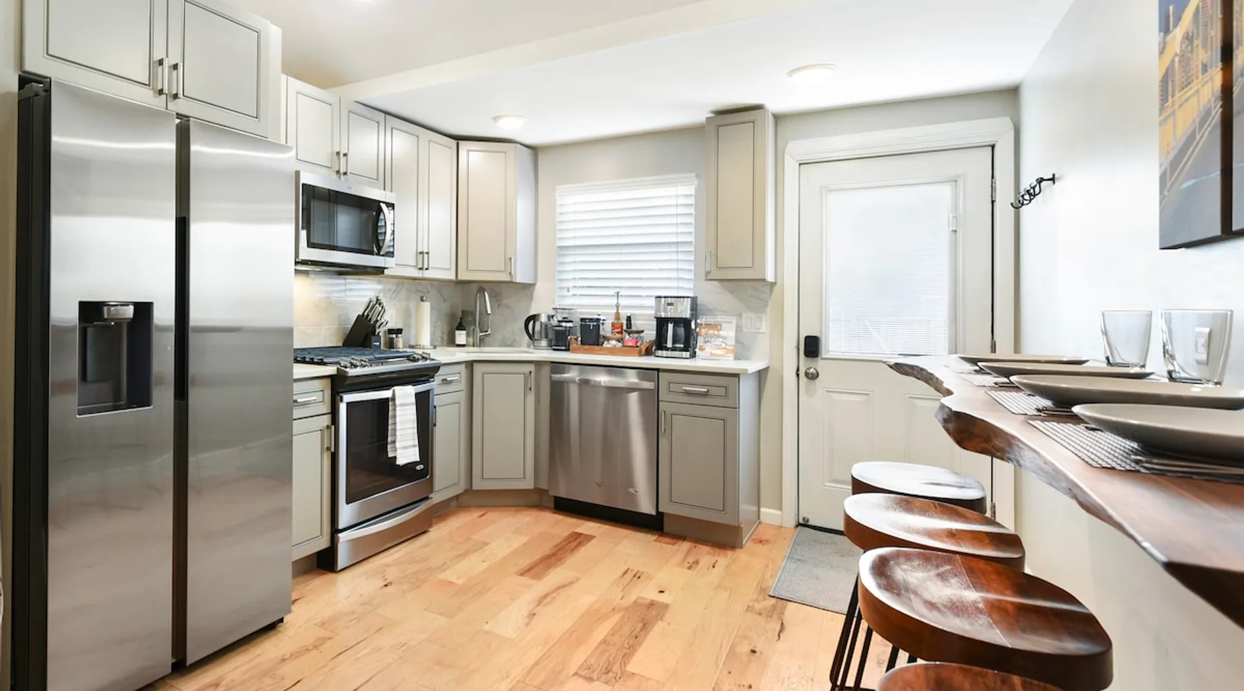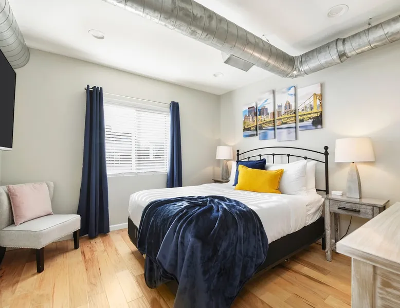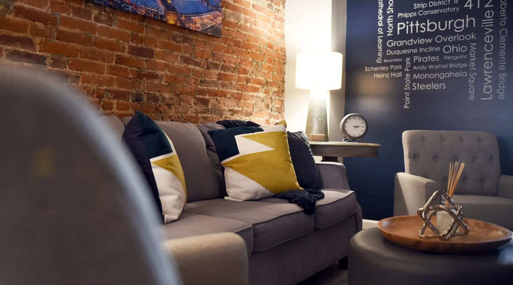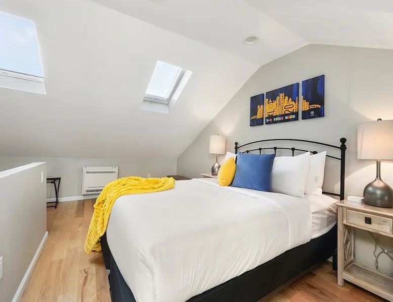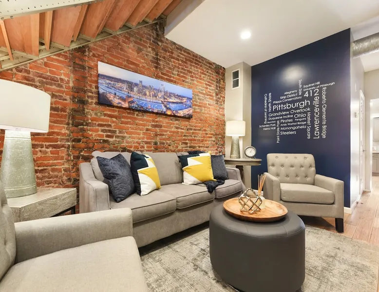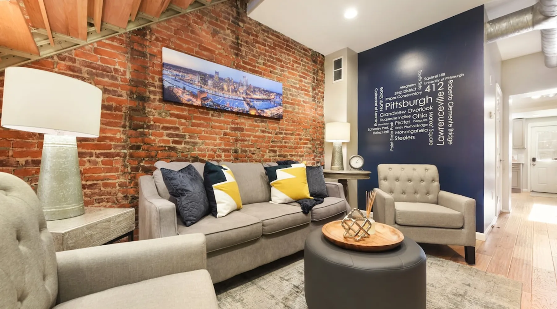 In the heart of lower Lawrenceville, our place exudes historic Pittsburgh charm while providing an incredibly cozy experience. Our spacious kitchen invites you to cook a great dinner. Our comfortable living room surrounded by historic brickwork + open staircase encourages you to relax and watch Netflix. The patio welcomes you with fresh air. With two full bathrooms, two couples or a family can get ready for the day (or night!) Within walking distance, bars, breweries, and restaurants abound! The space 🏡 KEY FEATURES & AMENITIES ✓ Chore-Free Checkout® – So easy, it's trademarked! ✓ Keyless Entry – Smart lock + optional digital access guide ✓ Spacious 2BR / 2BA – Three-story row home with private entrance ✓ Fast Wi-Fi – 400 Mbps Verizon fiber optic internet ✓ Off-Street Parking – Fits two smaller cars or one large vehicle + free street parking ✓ Work-From-Home Ready – Cozy office with dedicated desk & charging ports ✓ Fully Stocked Kitchen – Stainless steel cookware, sharp knives, toaster, microwave, dishwasher, stove & more ✓ Premium Coffee Bar – Commonplace Roasters whole bean coffee, drip maker, French press, tea selection, electric kettle ✓ Entertainment – 60” 4K Smart TV in living room, 40” Smart TVs in both bedrooms ✓ Smart Home Tech – Dack-enabled smart lock, G-Mini voice assistant ✓ Eco-Friendly – Recycling, sustainable toiletries, filtered water, Dropps detergent ✓ A/C & Heating – Central air conditioning & forced air heat ✓ Outdoor Space – Private patio with seating for 4 🏆 ABOUT HOSTWISE STAYS As Pittsburgh’s top-rated professional hosts (4.93 overall with 20k+ stays!), we’re obsessed with quality service & top-tier amenities. ✔ No excessive checkout lists ✔ Professionally cleaned—never outsourced ✔ 24/7 local support ✔ Stocked with premium amenities We create seamless, stress-free stays so you can focus on enjoying your trip! 🧹 CLEANING PROCEDURES We believe a spotless home is a must. Unlike other hosts, we never outsource our cleaning. ✔ Professionally trained in-house cleaning team ✔ Industry-leading cleaning checklist followed every stay ✔ Regular inspections by our Operations team ✔ Eco-friendly, high-quality cleaning products used throughout Expect a pristine, sanitized home every time. 🏡 DETAILED AMENITY OVERVIEW 🛏️ Bedrooms & Sleeping Arrangements • Primary Bedroom – Queen bed, 40” Smart TV, blackout curtains • Guest Bedroom – Queen bed, 40” Smart TV, blackout curtains ✔ 100% cotton, high-quality linens ✔ Four plush & firm pillows per bed 🛁 Bathrooms • First Floor Bathroom – Walk-in shower, premium toiletries, plush towels, hair dryer • Second Floor Bathroom – Soaking tub + shower combo, premium toiletries, plush towels, hair dryer 📺 Entertainment & Smart Tech • 60” 4K Smart TV in living room • 40” Smart TVs in both bedrooms • G-Mini smart speaker – Voice-activated for music, weather, and more • Dack-enabled smart lock with randomized access codes 🍽️ Kitchen & Dining • Fully stocked kitchen – Stainless cookware, utensils, knives, toaster, microwave, dishwasher, stove • Coffee & Tea Bar – Commonplace whole bean coffee, French press, drip machine, electric kettle, premium tea, creamers & sugar • Breakfast Bar Seating – Seats 4 comfortably for meals or work 🖥️ Work-From-Home Setup • Dedicated front office • Desk with lighting & charging ports 🧺 Laundry & Essentials • In-unit washer & dryer • Eco-friendly Dropps detergent provided • Iron & ironing board included 🚗 Parking & Location • Off-street parking for up to 2 small cars end-to-end or 1 large car • Free street parking available • Access from front or back via keyless entry 🚫 House Rules 🚫 No smoking indoors 🚫 No parties or events 🚫 No pets permitted 🏠 HOUSE LAYOUT Welcome to your private three-story row home in the heart of Pittsburgh! With exposed brick, thoughtful design, and modern comforts throughout, this home blends character with convenience. First Floor – Living, Kitchen & Outdoor Flow Step through the front door into a bright and welcoming living room, complete with a 60" Smart TV and cozy seating for nights in. Midway down the hall, you'll find a full bathroom with a walk-in shower—perfect for guests or freshening up after a day out. At the back of the home sits the fully stocked kitchen, featuring a breakfast bar with seating for four, premium appliances, and direct access to the private patio and off-street parking just beyond. Guests can enter through the front or use the back entrance via the patio for easy unloading. Second Floor – Bedroom + Office + Bath Up the modern-width staircase, the second floor features a spacious primary bedroom with a queen bed and 40" Smart TV. A full bathroom with a soaking tub + shower combo is attached to the bedroom but also accessible via the hallway. Just down the hall is a separate office, perfect for remote work, Zoom calls, or quiet focus. It includes a desk, lighting, and device charging ports. Third Floor – Guest Bedroom The top floor offers a cozy guest bedroom with a second queen bed and 40" Smart TV. With separation from the rest of the home, it's ideal for extra privacy—whether you're traveling with friends, family, or colleagues. Guest access The entire property is accessible, from the outdoor patio & parking area to the front door, and everything in between!
