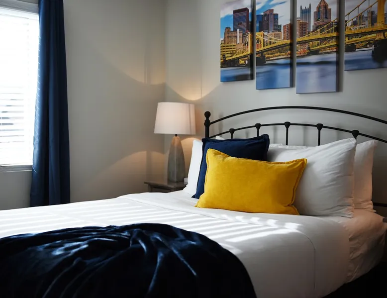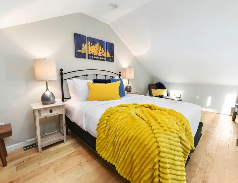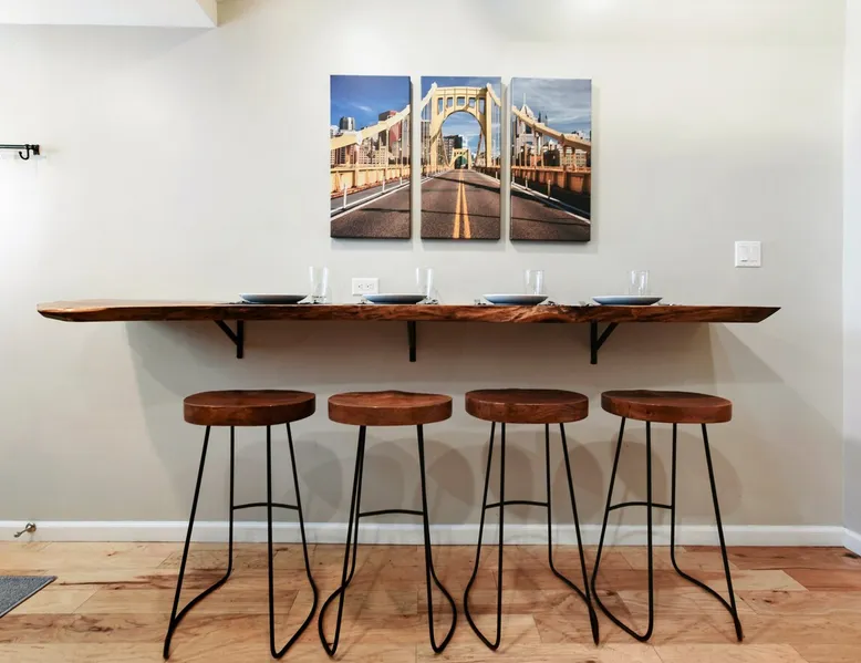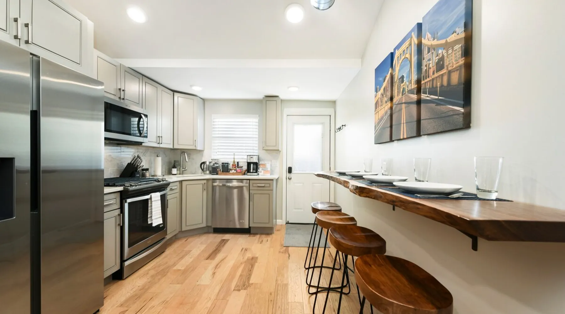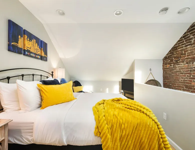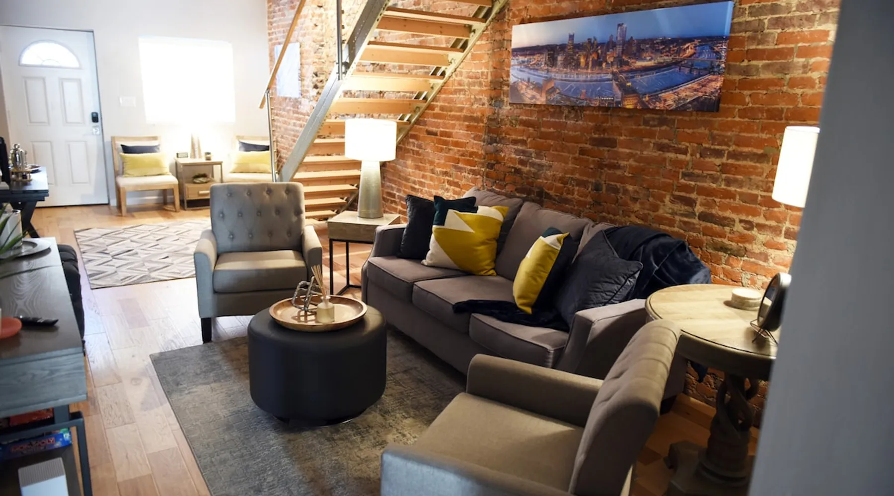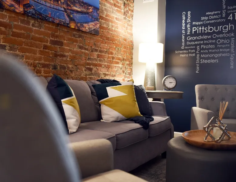 In the heart of lower Lawrenceville, our place exudes historic Pittsburgh charm while providing an incredibly cozy experience. Our spacious kitchen invites you to cook a great dinner. Our comfortable living room surrounded by historic brickwork + open staircase encourages you to relax and watch Netflix. The patio welcomes you with fresh air. With two full bathrooms, two couples or a family can get ready for the day (or night!) Within walking distance, bars, breweries, and restaurants abound! The space 🏡 KEY FEATURES & AMENITIES ✓ Chore-Free Checkout® – So easy, it's trademarked! ✓ Keyless Entry – Smart lock + optional digital access guide ✓ Spacious 2BR / 2BA – Three-story row home with private entrance ✓ Fast Wi-Fi – 400 Mbps Verizon fiber optic internet ✓ Off-Street Parking – Fits two smaller cars or one large vehicle + free street parking ✓ Work-From-Home Ready – Cozy office with dedicated desk & charging ports ✓ Fully Stocked Kitchen – Stainless steel cookware, sharp knives, toaster, microwave, dishwasher, stove & more ✓ Premium Coffee Bar – Commonplace Roasters whole bean coffee, drip maker, French press, tea selection, electric kettle ✓ Entertainment – 60” 4K Smart TV in living room, 40” Smart TVs in both bedrooms ✓ Smart Home Tech – Dack-enabled smart lock, G-Mini voice assistant ✓ Eco-Friendly – Recycling, sustainable toiletries, filtered water, Dropps detergent ✓ A/C & Heating – Central air conditioning & forced air heat ✓ Outdoor Space – Private patio with seating for 4 🏆 ABOUT HOSTWISE STAYS As Pittsburgh’s top-rated professional hosts (4.93 overall with 20k+ stays!), we’re obsessed with quality service & top-tier amenities. ✔ No excessive checkout lists ✔ Professionally cleaned—never outsourced ✔ 24/7 local support ✔ Stocked with premium amenities We create seamless, stress-free stays so you can focus on enjoying your trip! 🧹 CLEANING PROCEDURES We believe a spotless home is a must. Unlike other hosts, we never outsource our cleaning. ✔ Professionally trained in-house cleaning team ✔ Industry-leading cleaning checklist followed every stay ✔ Regular inspections by our Operations team ✔ Eco-friendly, high-quality cleaning products used throughout Expect a pristine, sanitized home every time. 🏡 DETAILED AMENITY OVERVIEW 🛏️ Bedrooms & Sleeping Arrangements • Primary Bedroom – Queen bed, 40” Smart TV, blackout curtains • Guest Bedroom – Queen bed, 40” Smart TV, blackout curtains ✔ 100% cotton, high-quality linens ✔ Four plush & firm pillows per bed 🛁 Bathrooms • First Floor Bathroom – Walk-in shower, premium toiletries, plush towels, hair dryer • Second Floor Bathroom – Soaking tub + shower combo, premium toiletries, plush towels, hair dryer 📺 Entertainment & Smart Tech • 60” 4K Smart TV in living room • 40” Smart TVs in both bedrooms • G-Mini smart speaker – Voice-activated for music, weather, and more • Dack-enabled smart lock with randomized access codes 🍽️ Kitchen & Dining • Fully stocked kitchen – Stainless cookware, utensils, knives, toaster, microwave, dishwasher, stove • Coffee & Tea Bar – Commonplace whole bean coffee, French press, drip machine, electric kettle, premium tea, creamers & sugar • Breakfast Bar Seating – Seats 4 comfortably for meals or work 🖥️ Work-From-Home Setup • Dedicated front office • Desk with lighting & charging ports 🧺 Laundry & Essentials • In-unit washer & dryer • Eco-friendly Dropps detergent provided • Iron & ironing board included 🚗 Parking & Location • Off-street parking for up to 2 small cars end-to-end or 1 large car • Free street parking available • Access from front or back via keyless entry 🚫 House Rules 🚫 No smoking indoors 🚫 No parties or events 🚫 No pets permitted 🏠 HOUSE LAYOUT Welcome to your private three-story row home in the heart of Pittsburgh! With exposed brick, thoughtful design, and modern comforts throughout, this home blends character with convenience. First Floor – Living, Kitchen & Outdoor Flow Step through the front door into a bright and welcoming living room, complete with a 60" Smart TV and cozy seating for nights in. Midway down the hall, you'll find a full bathroom with a walk-in shower—perfect for guests or freshening up after a day out. At the back of the home sits the fully stocked kitchen, featuring a breakfast bar with seating for four, premium appliances, and direct access to the private patio and off-street parking just beyond. Guests can enter through the front or use the back entrance via the patio for easy unloading. Second Floor – Bedroom + Office + Bath Up the modern-width staircase, the second floor features a spacious primary bedroom with a queen bed and 40" Smart TV. A full bathroom with a soaking tub + shower combo is attached to the bedroom but also accessible via the hallway. Just down the hall is a separate office, perfect for remote work, Zoom calls, or quiet focus. It includes a desk, lighting, and device charging ports. Third Floor – Guest Bedroom The top floor offers a cozy guest bedroom with a second queen bed and 40" Smart TV. With separation from the rest of the home, it's ideal for extra privacy—whether you're traveling with friends, family, or colleagues. Guest access The entire property is accessible, from the outdoor patio & parking area to the front door, and everything in between!