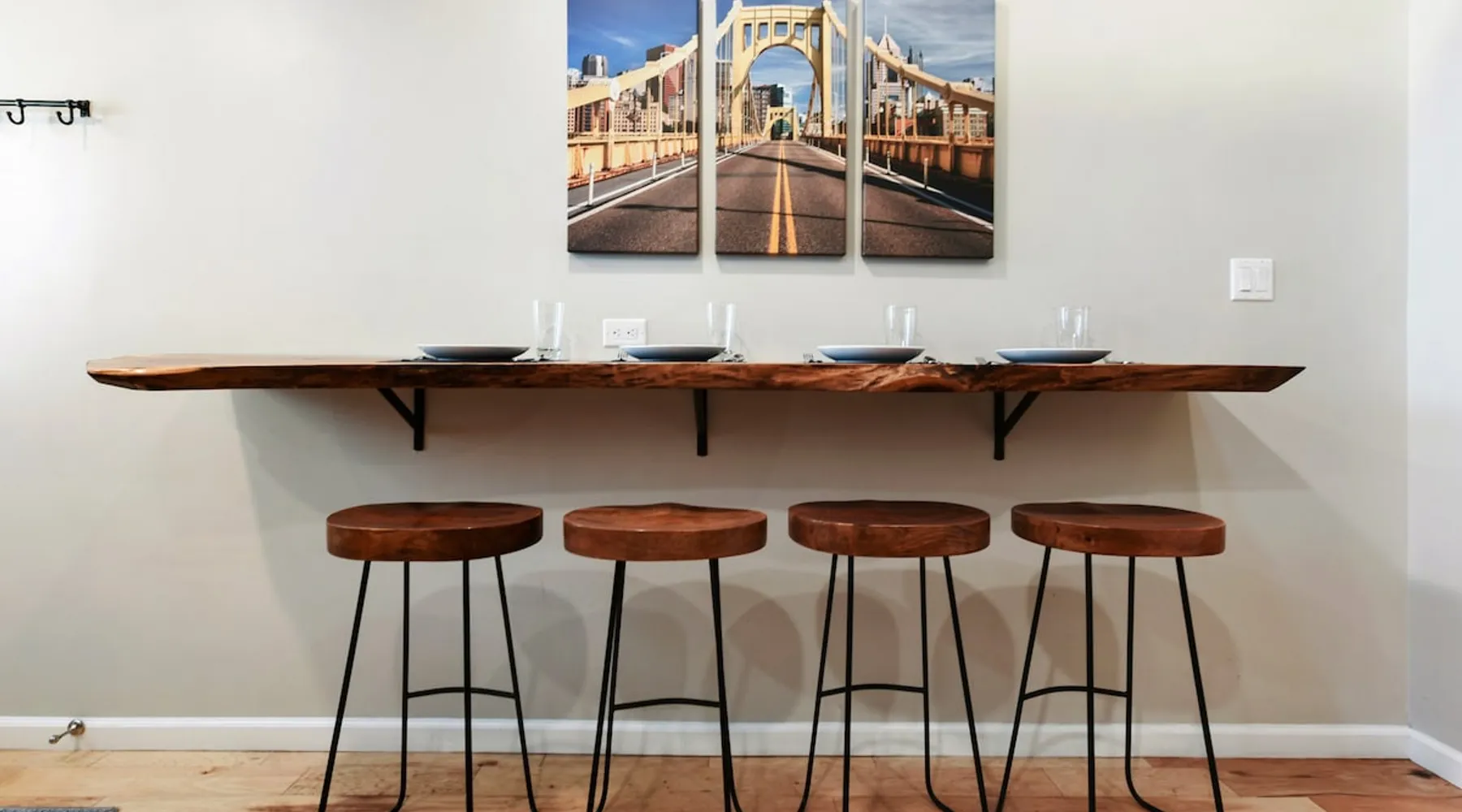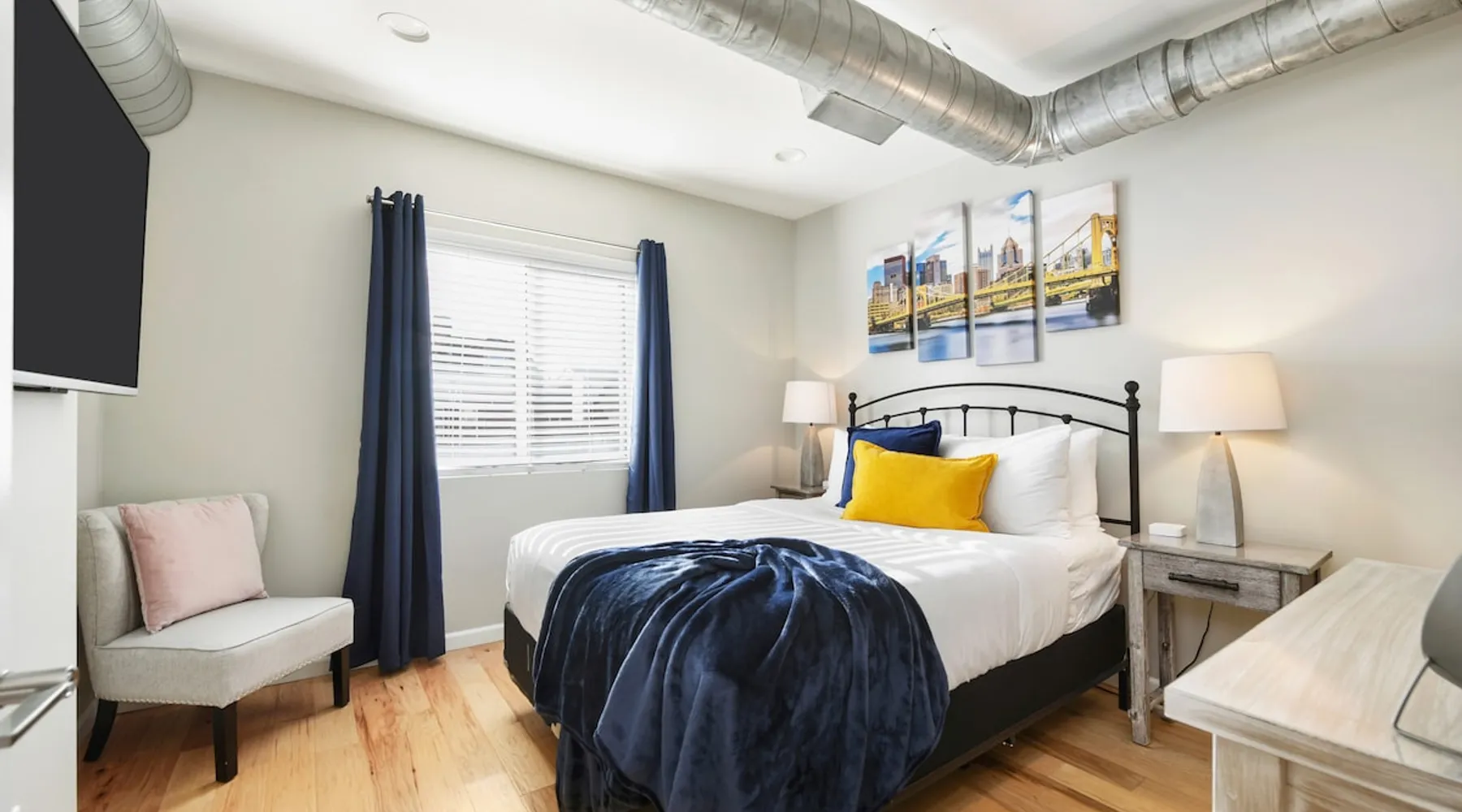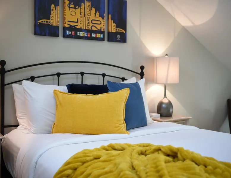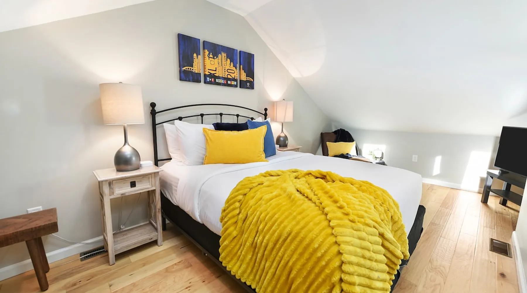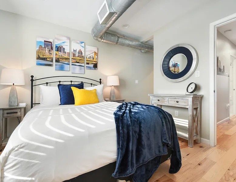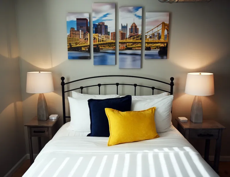In the heart of lower Lawrenceville, our place exudes historic Pittsburgh charm while providing an incredibly cozy experience. Our spacious kitchen invites you to cook a great dinner. Our comfortable living room surrounded by historic brickwork + open staircase encourages you to relax and watch Netflix. The patio welcomes you with fresh air. With two full bathrooms, two couples or a family can get ready for the day (or night!) Within walking distance, bars, breweries, and restaurants abound! The space 🏡 KEY FEATURES & AMENITIES ✓ Chore-Free Checkout® – So easy, it's trademarked! ✓ Keyless Entry – Smart lock + optional digital access guide ✓ Spacious 2BR / 2BA – Three-story row home with private entrance ✓ Fast Wi-Fi – 400 Mbps Verizon fiber optic internet ✓ Off-Street Parking – Fits two smaller cars or one large vehicle + free street parking ✓ Work-From-Home Ready – Cozy office with dedicated desk & charging ports ✓ Fully Stocked Kitchen – Stainless steel cookware, sharp knives, toaster, microwave, dishwasher, stove & more ✓ Premium Coffee Bar – Commonplace Roasters whole bean coffee, drip maker, French press, tea selection, electric kettle ✓ Entertainment – 60” 4K Smart TV in living room, 40” Smart TVs in both bedrooms ✓ Smart Home Tech – Dack-enabled smart lock, G-Mini voice assistant ✓ Eco-Friendly – Recycling, sustainable toiletries, filtered water, Dropps detergent ✓ A/C & Heating – Central air conditioning & forced air heat ✓ Outdoor Space – Private patio with seating for 4 🏆 ABOUT HOSTWISE STAYS As Pittsburgh’s top-rated professional hosts (4.93 overall with 20k+ stays!), we’re obsessed with quality service & top-tier amenities. ✔ No excessive checkout lists ✔ Professionally cleaned—never outsourced ✔ 24/7 local support ✔ Stocked with premium amenities We create seamless, stress-free stays so you can focus on enjoying your trip! 🧹 CLEANING PROCEDURES We believe a spotless home is a must. Unlike other hosts, we never outsource our cleaning. ✔ Professionally trained in-house cleaning team ✔ Industry-leading cleaning checklist followed every stay ✔ Regular inspections by our Operations team ✔ Eco-friendly, high-quality cleaning products used throughout Expect a pristine, sanitized home every time. 🏡 DETAILED AMENITY OVERVIEW 🛏️ Bedrooms & Sleeping Arrangements • Primary Bedroom – Queen bed, 40” Smart TV, blackout curtains • Guest Bedroom – Queen bed, 40” Smart TV, blackout curtains ✔ 100% cotton, high-quality linens ✔ Four plush & firm pillows per bed 🛁 Bathrooms • First Floor Bathroom – Walk-in shower, premium toiletries, plush towels, hair dryer • Second Floor Bathroom – Soaking tub + shower combo, premium toiletries, plush towels, hair dryer 📺 Entertainment & Smart Tech • 60” 4K Smart TV in living room • 40” Smart TVs in both bedrooms • G-Mini smart speaker – Voice-activated for music, weather, and more • Dack-enabled smart lock with randomized access codes 🍽️ Kitchen & Dining • Fully stocked kitchen – Stainless cookware, utensils, knives, toaster, microwave, dishwasher, stove • Coffee & Tea Bar – Commonplace whole bean coffee, French press, drip machine, electric kettle, premium tea, creamers & sugar • Breakfast Bar Seating – Seats 4 comfortably for meals or work 🖥️ Work-From-Home Setup • Dedicated front office • Desk with lighting & charging ports 🧺 Laundry & Essentials • In-unit washer & dryer • Eco-friendly Dropps detergent provided • Iron & ironing board included 🚗 Parking & Location • Off-street parking for up to 2 small cars end-to-end or 1 large car • Free street parking available • Access from front or back via keyless entry 🚫 House Rules 🚫 No smoking indoors 🚫 No parties or events 🚫 No pets permitted 🏠 HOUSE LAYOUT Welcome to your private three-story row home in the heart of Pittsburgh! With exposed brick, thoughtful design, and modern comforts throughout, this home blends character with convenience. First Floor – Living, Kitchen & Outdoor Flow Step through the front door into a bright and welcoming living room, complete with a 60" Smart TV and cozy seating for nights in. Midway down the hall, you'll find a full bathroom with a walk-in shower—perfect for guests or freshening up after a day out. At the back of the home sits the fully stocked kitchen, featuring a breakfast bar with seating for four, premium appliances, and direct access to the private patio and off-street parking just beyond. Guests can enter through the front or use the back entrance via the patio for easy unloading. Second Floor – Bedroom + Office + Bath Up the modern-width staircase, the second floor features a spacious primary bedroom with a queen bed and 40" Smart TV. A full bathroom with a soaking tub + shower combo is attached to the bedroom but also accessible via the hallway. Just down the hall is a separate office, perfect for remote work, Zoom calls, or quiet focus. It includes a desk, lighting, and device charging ports. Third Floor – Guest Bedroom The top floor offers a cozy guest bedroom with a second queen bed and 40" Smart TV. With separation from the rest of the home, it's ideal for extra privacy—whether you're traveling with friends, family, or colleagues. Guest access The entire property is accessible, from the outdoor patio & parking area to the front door, and everything in between!