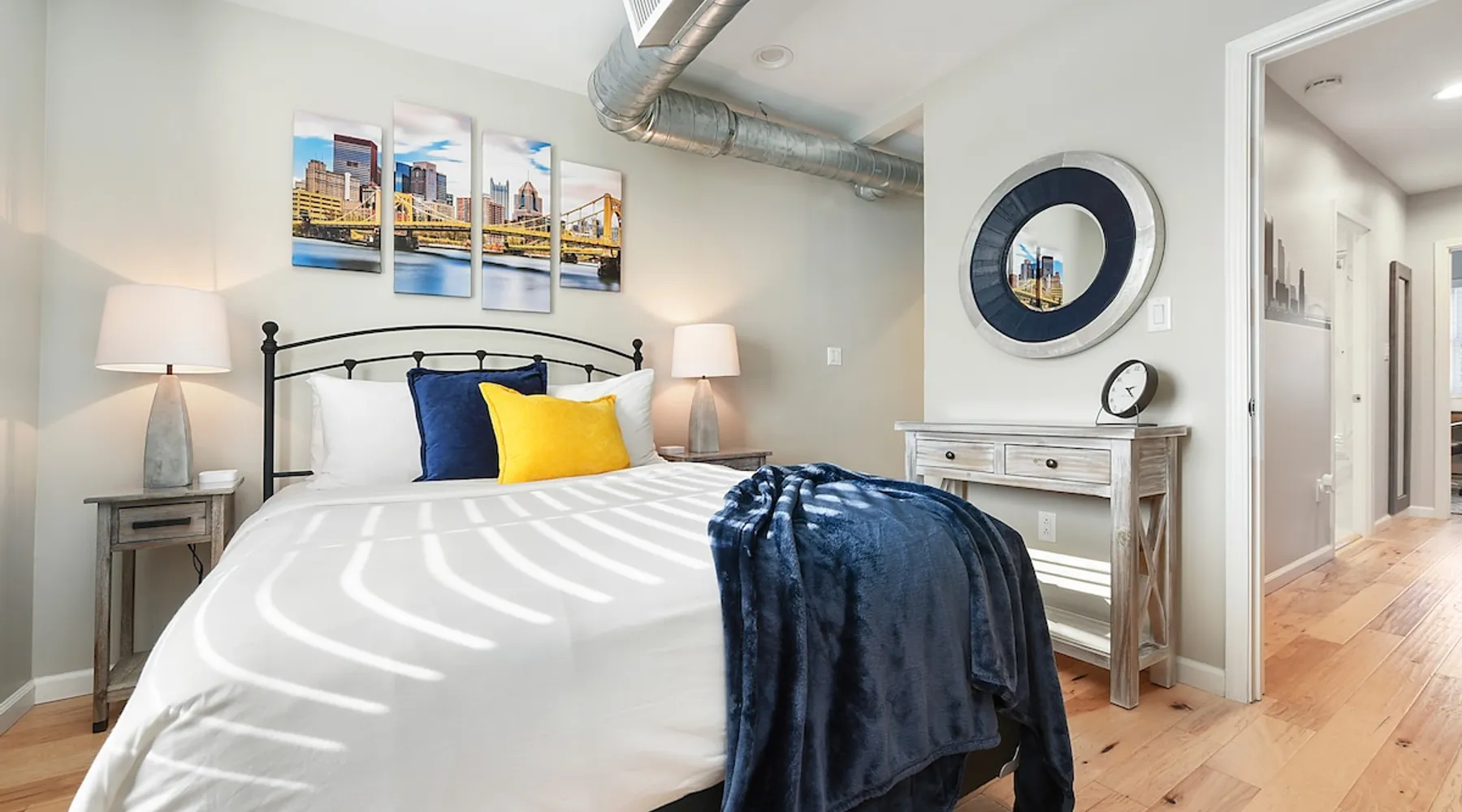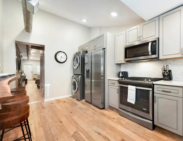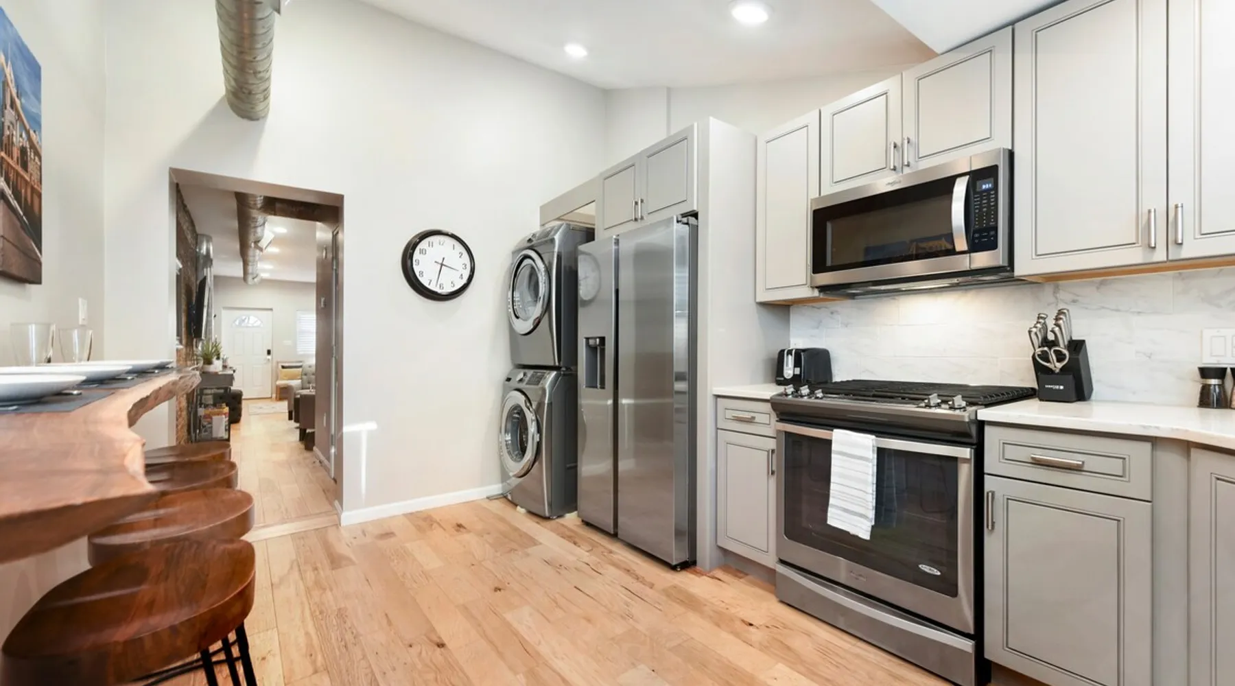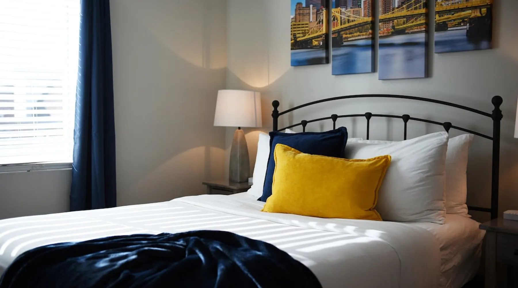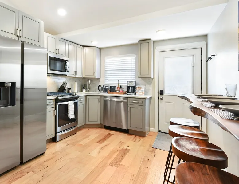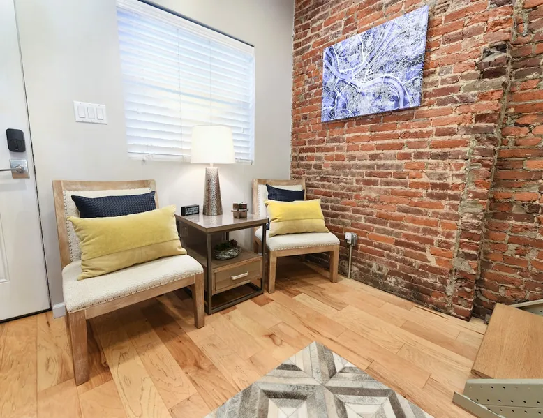 In the heart of lower Lawrenceville, our place exudes historic Pittsburgh charm while providing an incredibly cozy experience. Our spacious kitchen invites you to cook a great dinner. Our comfortable living room surrounded by historic brickwork + open staircase encourages you to relax and watch Netflix. The patio welcomes you with fresh air. With two full bathrooms, two couples or a family can get ready for the day (or night!) Within walking distance, bars, breweries, and restaurants abound! The space 🏡 KEY FEATURES & AMENITIES ✓ Chore-Free Checkout® – So easy, it's trademarked! ✓ Keyless Entry – Smart lock + optional digital access guide ✓ Spacious 2BR / 2BA – Three-story row home with private entrance ✓ Fast Wi-Fi – 400 Mbps Verizon fiber optic internet ✓ Off-Street Parking – Fits two smaller cars or one large vehicle + free street parking ✓ Work-From-Home Ready – Cozy office with dedicated desk & charging ports ✓ Fully Stocked Kitchen – Stainless steel cookware, sharp knives, toaster, microwave, dishwasher, stove & more ✓ Premium Coffee Bar – Commonplace Roasters whole bean coffee, drip maker, French press, tea selection, electric kettle ✓ Entertainment – 60” 4K Smart TV in living room, 40” Smart TVs in both bedrooms ✓ Smart Home Tech – Dack-enabled smart lock, G-Mini voice assistant ✓ Eco-Friendly – Recycling, sustainable toiletries, filtered water, Dropps detergent ✓ A/C & Heating – Central air conditioning & forced air heat ✓ Outdoor Space – Private patio with seating for 4 🏆 ABOUT HOSTWISE STAYS As Pittsburgh’s top-rated professional hosts (4.93 overall with 20k+ stays!), we’re obsessed with quality service & top-tier amenities. ✔ No excessive checkout lists ✔ Professionally cleaned—never outsourced ✔ 24/7 local support ✔ Stocked with premium amenities We create seamless, stress-free stays so you can focus on enjoying your trip! 🧹 CLEANING PROCEDURES We believe a spotless home is a must. Unlike other hosts, we never outsource our cleaning. ✔ Professionally trained in-house cleaning team ✔ Industry-leading cleaning checklist followed every stay ✔ Regular inspections by our Operations team ✔ Eco-friendly, high-quality cleaning products used throughout Expect a pristine, sanitized home every time. 🏡 DETAILED AMENITY OVERVIEW 🛏️ Bedrooms & Sleeping Arrangements • Primary Bedroom – Queen bed, 40” Smart TV, blackout curtains • Guest Bedroom – Queen bed, 40” Smart TV, blackout curtains ✔ 100% cotton, high-quality linens ✔ Four plush & firm pillows per bed 🛁 Bathrooms • First Floor Bathroom – Walk-in shower, premium toiletries, plush towels, hair dryer • Second Floor Bathroom – Soaking tub + shower combo, premium toiletries, plush towels, hair dryer 📺 Entertainment & Smart Tech • 60” 4K Smart TV in living room • 40” Smart TVs in both bedrooms • G-Mini smart speaker – Voice-activated for music, weather, and more • Dack-enabled smart lock with randomized access codes 🍽️ Kitchen & Dining • Fully stocked kitchen – Stainless cookware, utensils, knives, toaster, microwave, dishwasher, stove • Coffee & Tea Bar – Commonplace whole bean coffee, French press, drip machine, electric kettle, premium tea, creamers & sugar • Breakfast Bar Seating – Seats 4 comfortably for meals or work 🖥️ Work-From-Home Setup • Dedicated front office • Desk with lighting & charging ports 🧺 Laundry & Essentials • In-unit washer & dryer • Eco-friendly Dropps detergent provided • Iron & ironing board included 🚗 Parking & Location • Off-street parking for up to 2 small cars end-to-end or 1 large car • Free street parking available • Access from front or back via keyless entry 🚫 House Rules 🚫 No smoking indoors 🚫 No parties or events 🚫 No pets permitted 🏠 HOUSE LAYOUT Welcome to your private three-story row home in the heart of Pittsburgh! With exposed brick, thoughtful design, and modern comforts throughout, this home blends character with convenience. First Floor – Living, Kitchen & Outdoor Flow Step through the front door into a bright and welcoming living room, complete with a 60" Smart TV and cozy seating for nights in. Midway down the hall, you'll find a full bathroom with a walk-in shower—perfect for guests or freshening up after a day out. At the back of the home sits the fully stocked kitchen, featuring a breakfast bar with seating for four, premium appliances, and direct access to the private patio and off-street parking just beyond. Guests can enter through the front or use the back entrance via the patio for easy unloading. Second Floor – Bedroom + Office + Bath Up the modern-width staircase, the second floor features a spacious primary bedroom with a queen bed and 40" Smart TV. A full bathroom with a soaking tub + shower combo is attached to the bedroom but also accessible via the hallway. Just down the hall is a separate office, perfect for remote work, Zoom calls, or quiet focus. It includes a desk, lighting, and device charging ports. Third Floor – Guest Bedroom The top floor offers a cozy guest bedroom with a second queen bed and 40" Smart TV. With separation from the rest of the home, it's ideal for extra privacy—whether you're traveling with friends, family, or colleagues. Guest access The entire property is accessible, from the outdoor patio & parking area to the front door, and everything in between!
