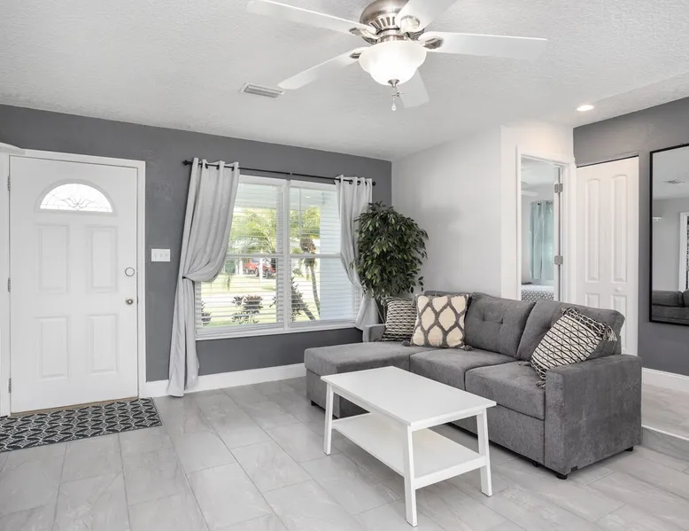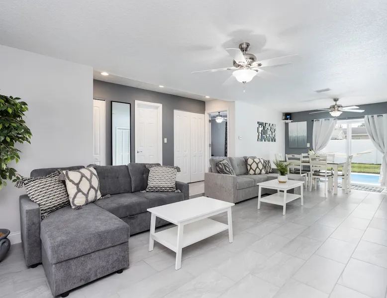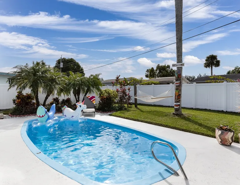 Our stunning light and sparking dream house with the pool is waiting for you! This updated kitchen featuring upgraded stainless steel appliances, new furniture, new flooring. Great for family! Includes a privacy fenced backyard with pool and outdoor patio area. 3 minutes to shopping & restaurants. Less than 20 miles from USSSA Space Coast Complex. Only 6.2 miles away from the beach and 6.1 miles to downtown Melbourne. Can sleep up to 10 people. You'll fall in love with this beautiful place! The space As you enter your temporary abode, the elegant décor and beautiful plants are sure to make you feel right at home. Complete with a 75 inch Smart TV, the living room is a great place to rest. Boasting stainless steel appliances, the newly updated kitchen has everything you'll need to wow your friends with your culinary capabilities. No Florida getaway is complete without sand and saltwater, so spend an afternoon relaxing on Melbourne Beach. Located just 6.2 miles from the property, Melbourne Beach offers everything from swimming to deep sea fishing charters and dinner cruises, making it a deal for beach goers of all ages! Take a family trip to the Brevard Zoo and see the amazing wildlife put on a show. Sebastian Inlet State Park offers beautiful views, picturesque for photos and captivating memories. The Cocoa Beach Pier offers spectacular views of the inlet and a popular spot for experienced surfers and an awesome lagoon to swim in that includes multiple picnic areas and fishing. Main street Melbourne (Downtown Melbourne) is a great place for small boutique shops, small restaurants, and bars. They have large block events where the road is close for pedestrians and vendors to enjoy. For a fun day in the beach and sun, you can visit Paradise Beach & Park. The beach offers ample parking, a short walk away with soft, clean sand and warm, clear water. It has lifeguards for safety, a bathhouse, outdoor showers, a kids' playground, and even a food truck offering ice cream! Closest Commercial Airport – Orlando Melbourne International Airport (MLB) Property Includes The Following: Basics: Dishes, pots and pans, bakeware, flatware, utensils, glasses, coffee pot, all bedding (linens, pillows, and towels). Fun Items: Beach/Pool towels, portable chairs, barbecue hibachi, propane grill. Not "Fun" Items: Toilet paper, paper towels, trash bags, some cleaning supplies, laundry detergent, kitchen soap, shampoo/conditioner. Three Smart TV's with Cable, Netflix, Amazon Video, Hulu and more. Full size washer and dryer, iron, ironing board, and blow dryer. Kitchen: Stainless appliances, oven, microwave, refrigerator, and dishwasher. NOT PROVIDED: Food or pantry items of any kind, toiletries, personal items. Note: All paper products, trash bags, and cleaning supplies are provided, but are not unlimited. If your group exceeds the standard usage, additional items must be purchased separately. Guest access Access the house using the keypad lock provided by the host. Guests have full use of the property, home, and contents except for the backyard shed for personal storage. Other things to note Parties and events are not allowed. Any additional guests or gatherings, must be requested and approved by the host. *10:00PM local noise ordinance. All outside noise (including pool area) must be kept to a minimum after 10:00PM. This is strictly enforced! *No smoking/vaping inside the home. *No glitter or confetti allowed on the property. This includes the exterior and pool area. The following are in close proximity: 3 minutes to: Dining, bars, and shopping areas. 10 to 20 minutes to: Beaches, Beach Yoga, Brevard Zoo, Airboat Rides, Stand Up Paddle boarding, Kayaking, Historic Downtown Melbourne, Historic Eau Gallie Arts District, USSSA Baseball Field, Surfing, Golf, Hiking, Turtle Creek, King Center for the Performing Arts, Wickham Park, Viera Wetlands, Andretti Thrill Park/Race Track, FIT - Florida Institute of Technology, and Florida Botanical Gardens (Coming Soon: Jimmy Buffets Margaritaville). - Public Park across the street for Kiddie area, swings, baseball, basketball court, tennis court, and soccer field. - 40 min to 1 hour to: Orlando International Airport, Disney, Universal Studios, SeaWorld, Cape Canaveral, Port Canaveral Cruise Port, Kennedy Space Center, Rocket Launches, Meet an Astronaut, and Sebastian Inlet for excellent fishing. - Around the state in 2 to 3 hours: Several natural springs and state parks.