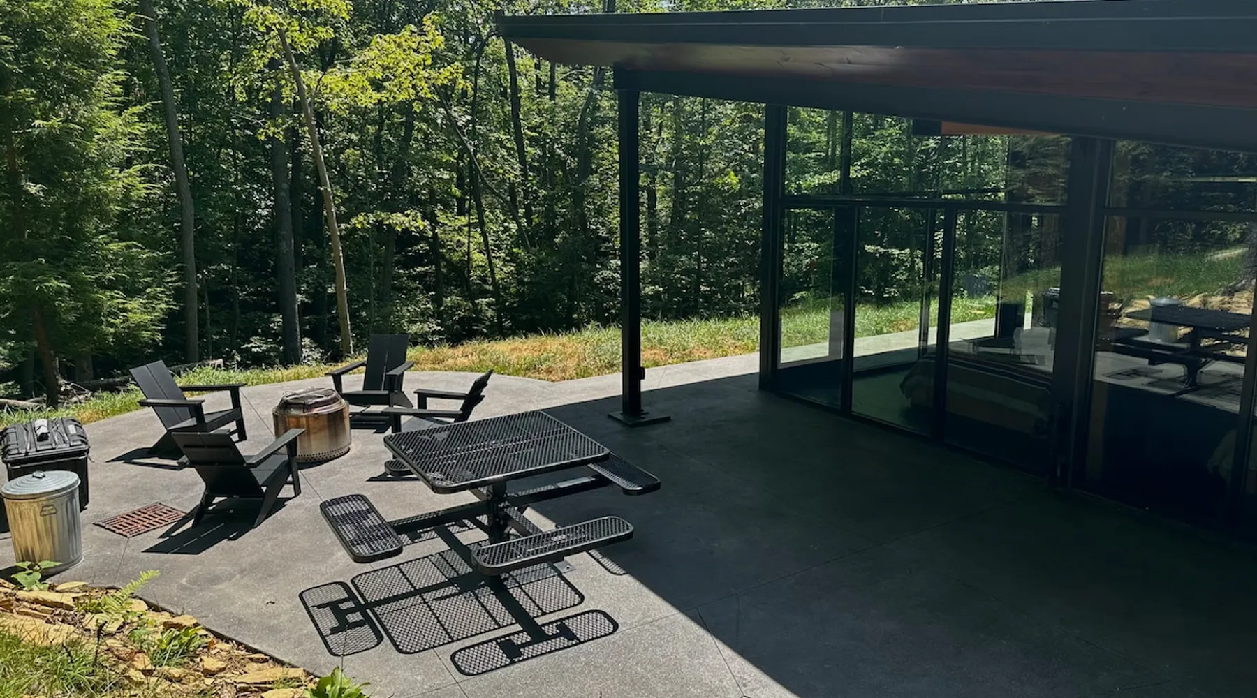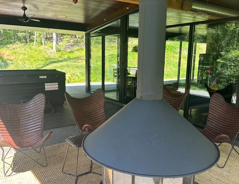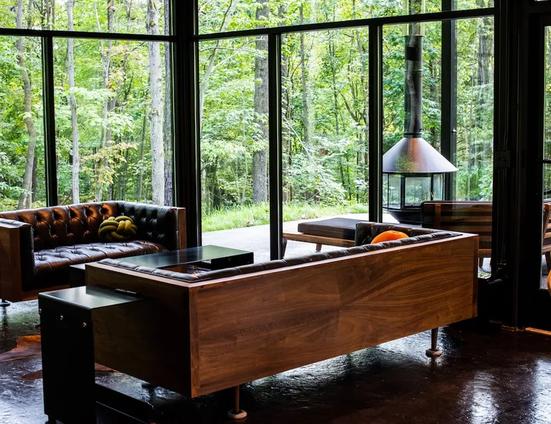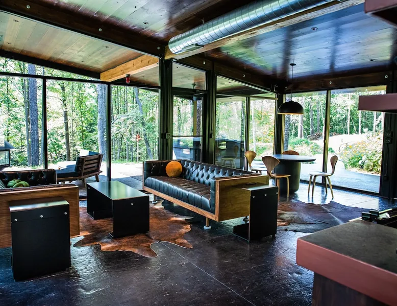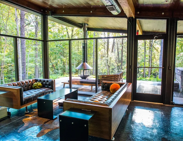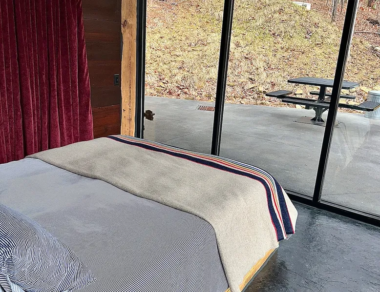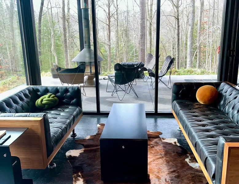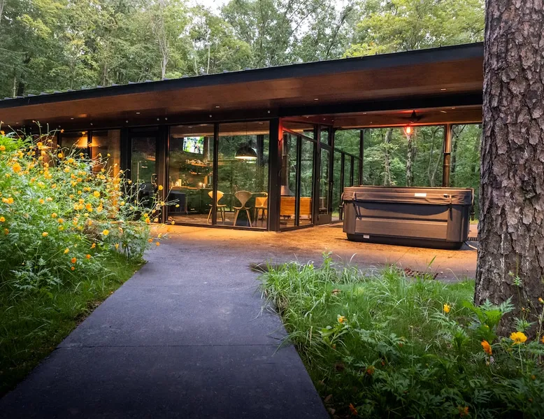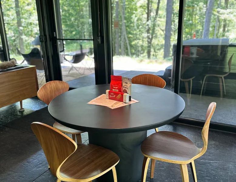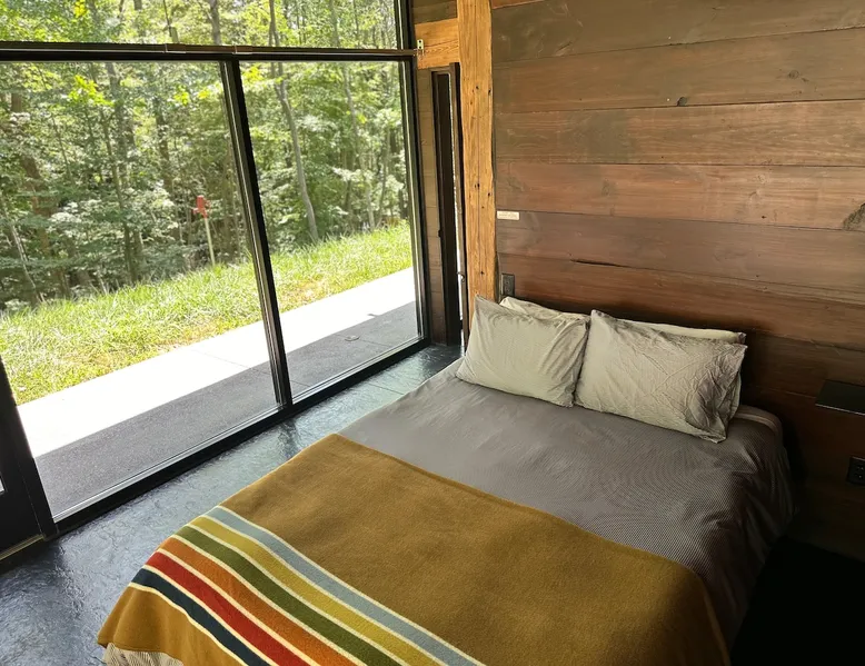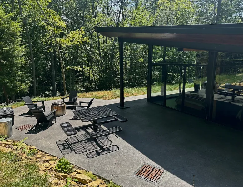 The Study is a minimalist-modern cabin featuring 360-degree glass walls that invite you to gaze out while cozy inside. The indoor space seamlessly extends to spacious patios, complete with a 6-person hot tub, Malm fireplace, grill and dining area. Set on a peaceful, 24-acre forested property, you’ll enjoy tranquility and privacy just 5 miles from the renowned hiking trails of Hocking Hills. Whether you’re unwinding or exploring nearby nature, The Study offers an unforgettable luxe retreat. The space Created with 360 degree floor to ceiling glass, the Study allows total immersion into nature’s surroundings while lounging in comfort. With a strong nod to Philip Johnson’s Glass House, The Study blends mid-century appeal with the beauty of the area - including a hand-built shower with rocks from Lost Cavern, radiant-heated stamped concrete floors resembling the sandstone terrain, Douglas fir beams and a seamless transition from inside to outside patios. Featuring a carousel fireplace, Sonos speakers, 6-person hot tub, Solo stove, gas grill, bespoke furniture, and purple hybrid mattresses, we want everything about your stay to be memorable. Guest access Guests have access to the house and patios.