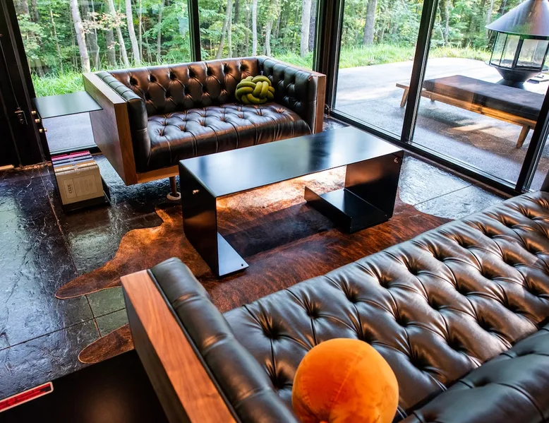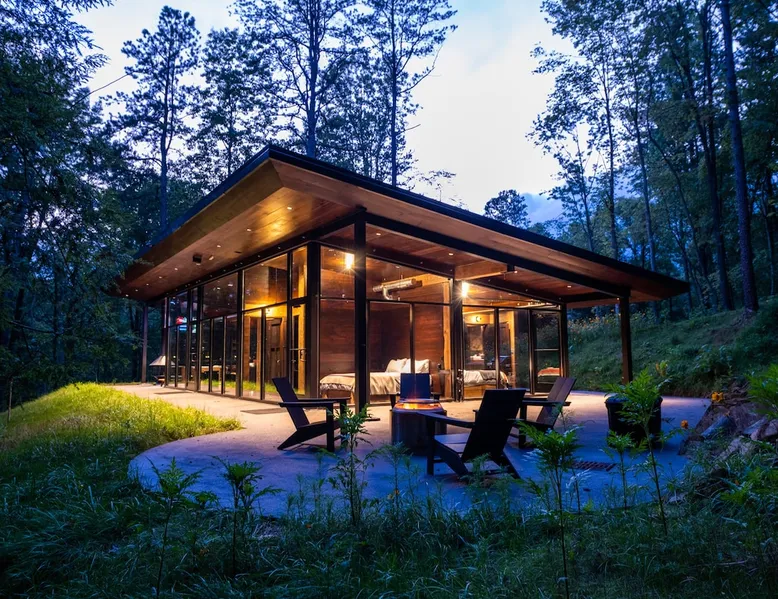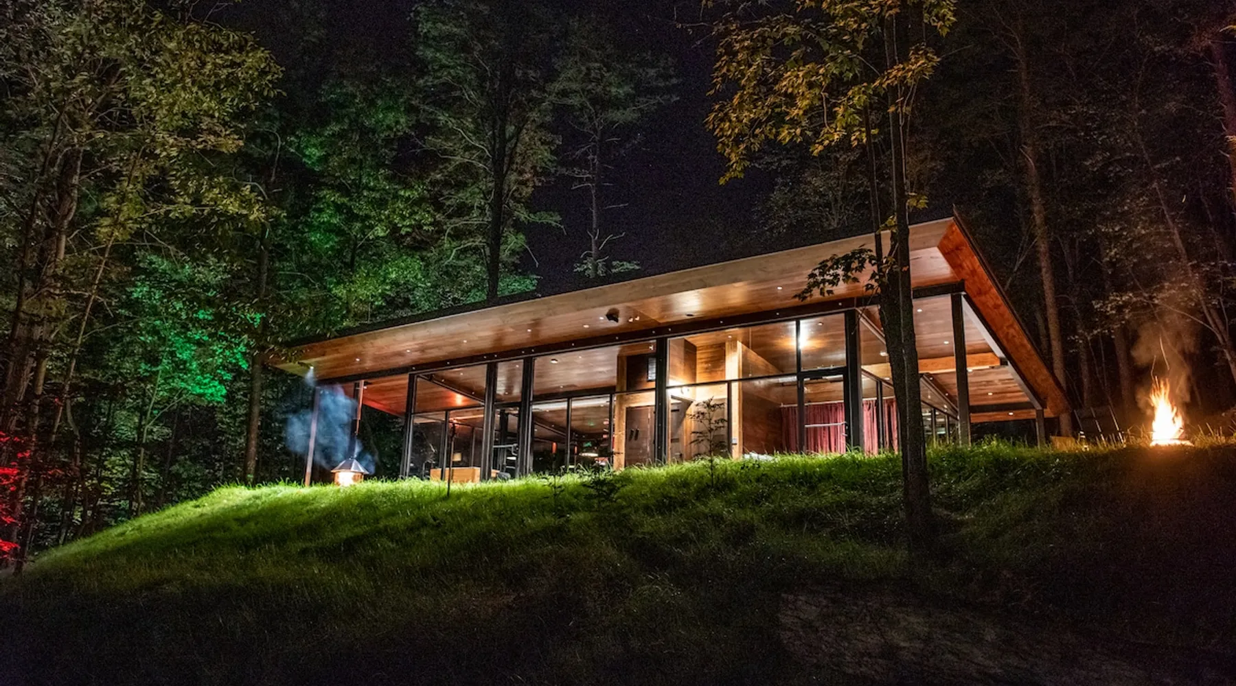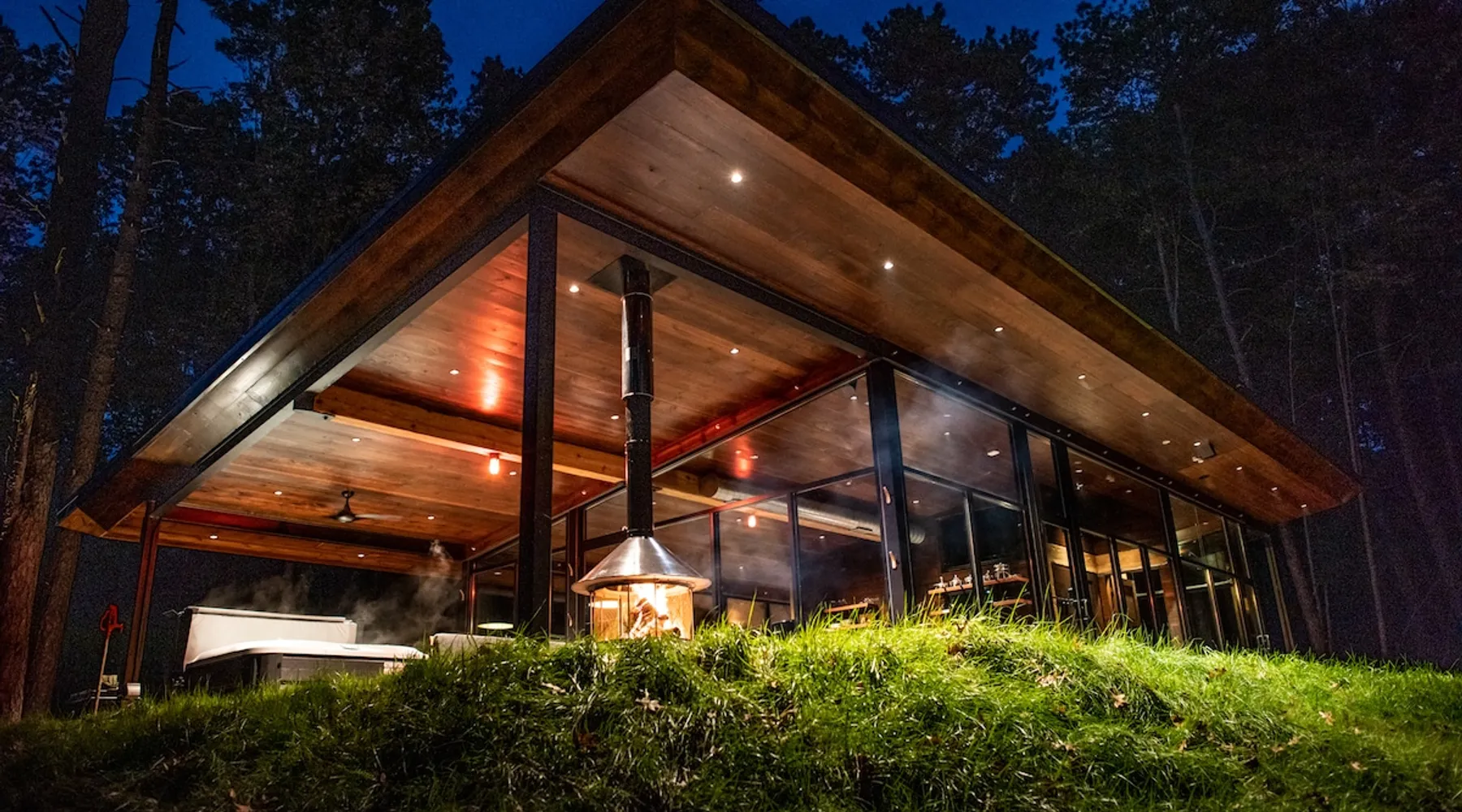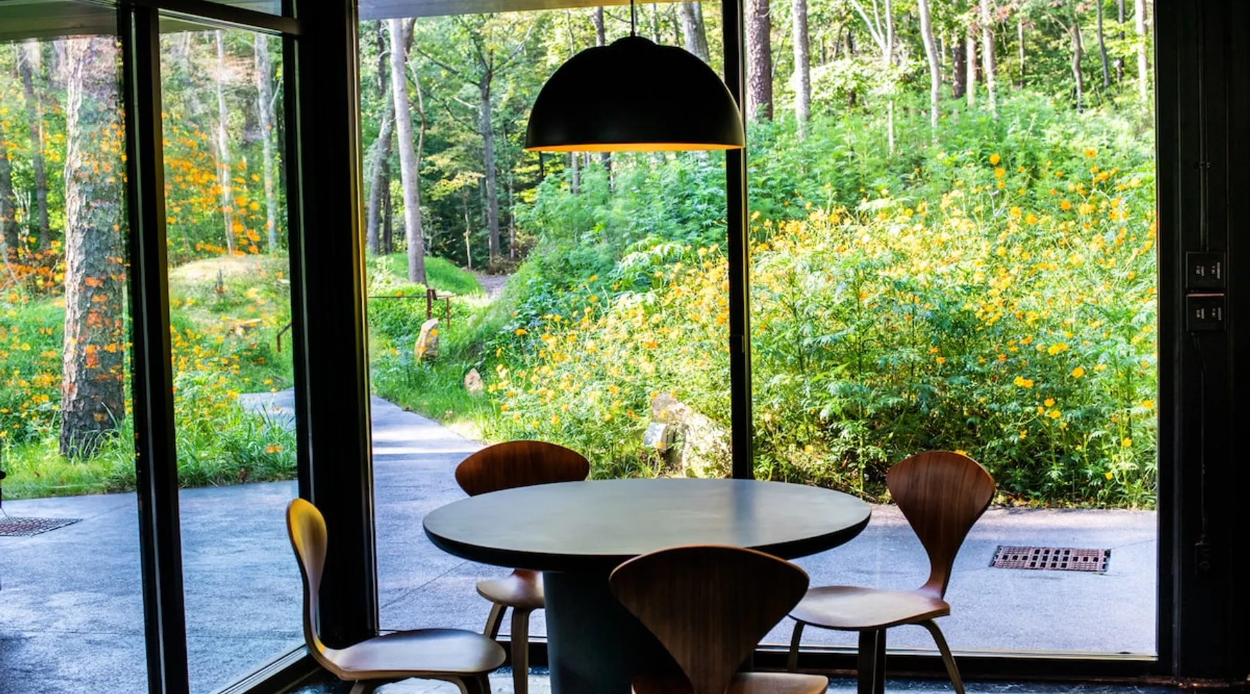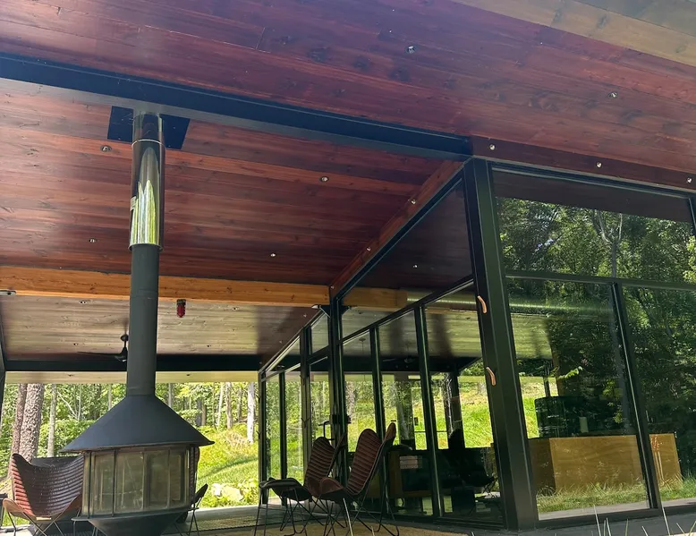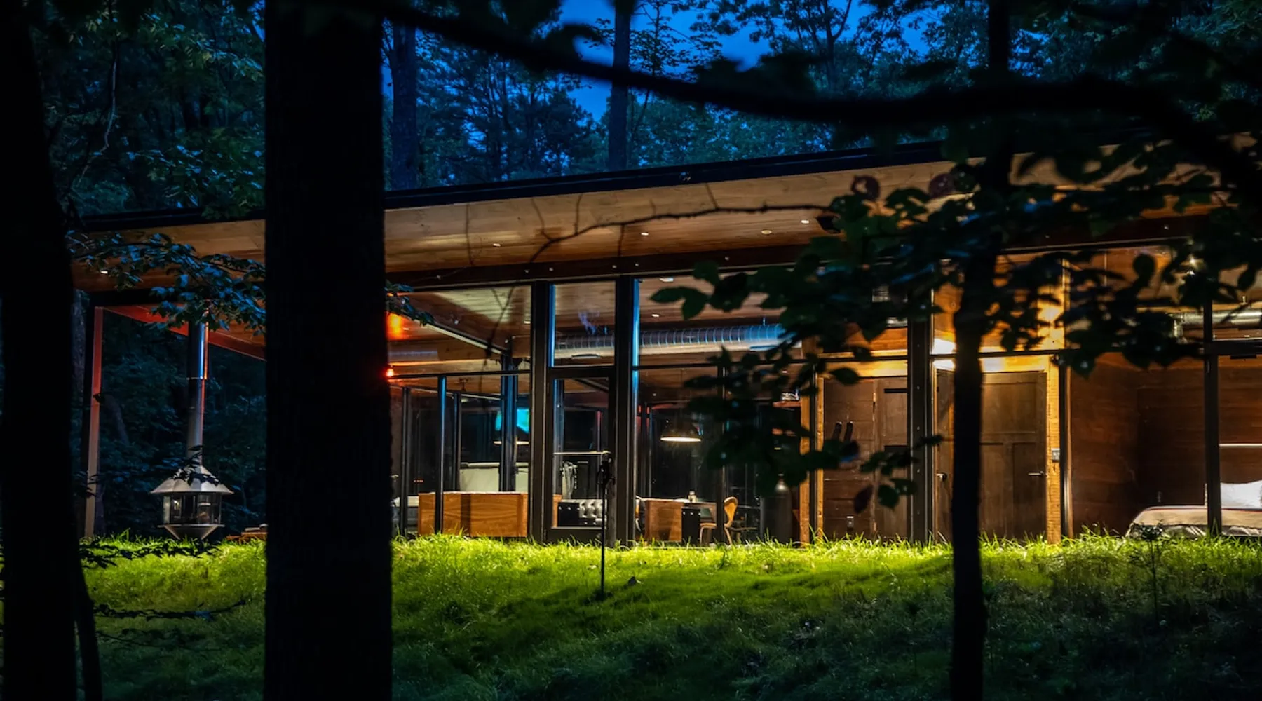 The Study is a minimalist-modern cabin featuring 360-degree glass walls that invite you to gaze out while cozy inside. The indoor space seamlessly extends to spacious patios, complete with a 6-person hot tub, Malm fireplace, grill and dining area. Set on a peaceful, 24-acre forested property, you’ll enjoy tranquility and privacy just 5 miles from the renowned hiking trails of Hocking Hills. Whether you’re unwinding or exploring nearby nature, The Study offers an unforgettable luxe retreat. The space Created with 360 degree floor to ceiling glass, the Study allows total immersion into nature’s surroundings while lounging in comfort. With a strong nod to Philip Johnson’s Glass House, The Study blends mid-century appeal with the beauty of the area - including a hand-built shower with rocks from Lost Cavern, radiant-heated stamped concrete floors resembling the sandstone terrain, Douglas fir beams and a seamless transition from inside to outside patios. Featuring a carousel fireplace, Sonos speakers, 6-person hot tub, Solo stove, gas grill, bespoke furniture, and purple hybrid mattresses, we want everything about your stay to be memorable. Guest access Guests have access to the house and patios.