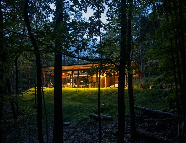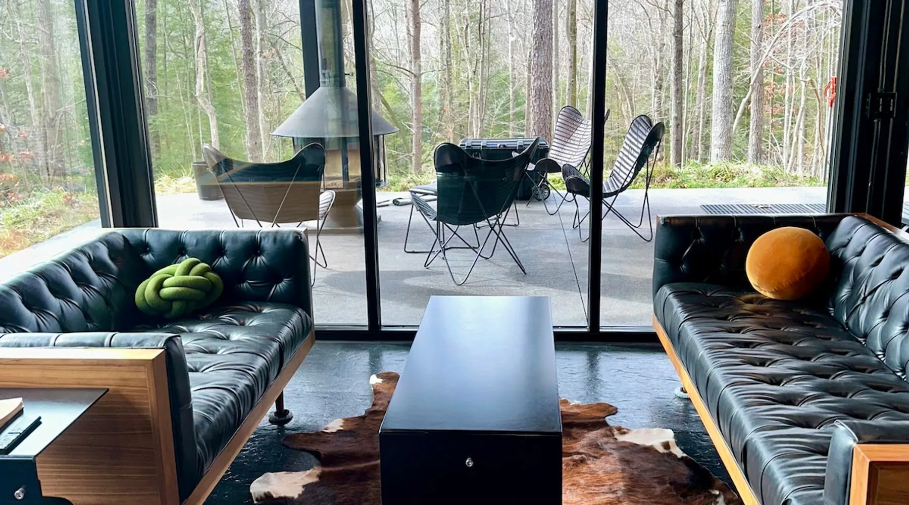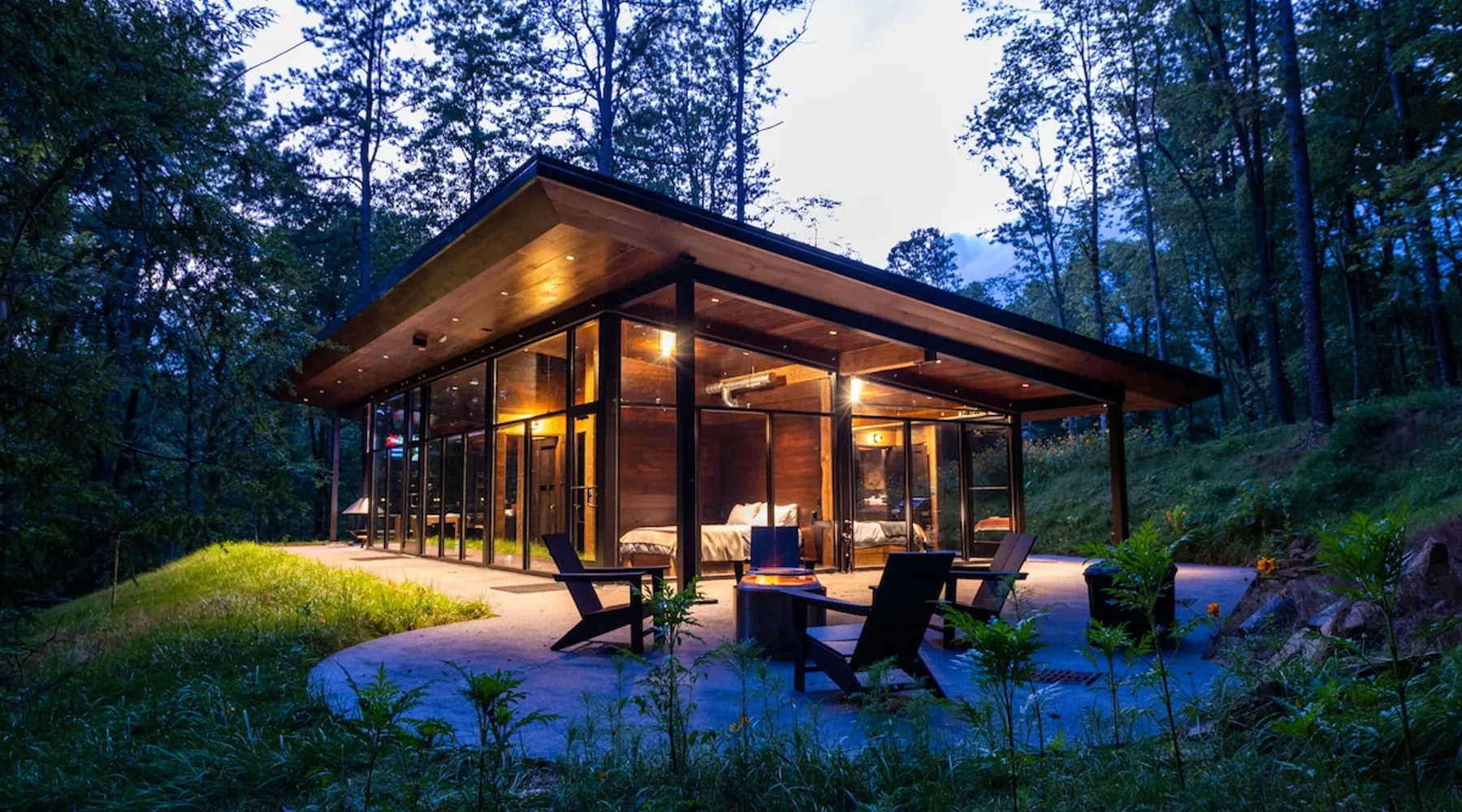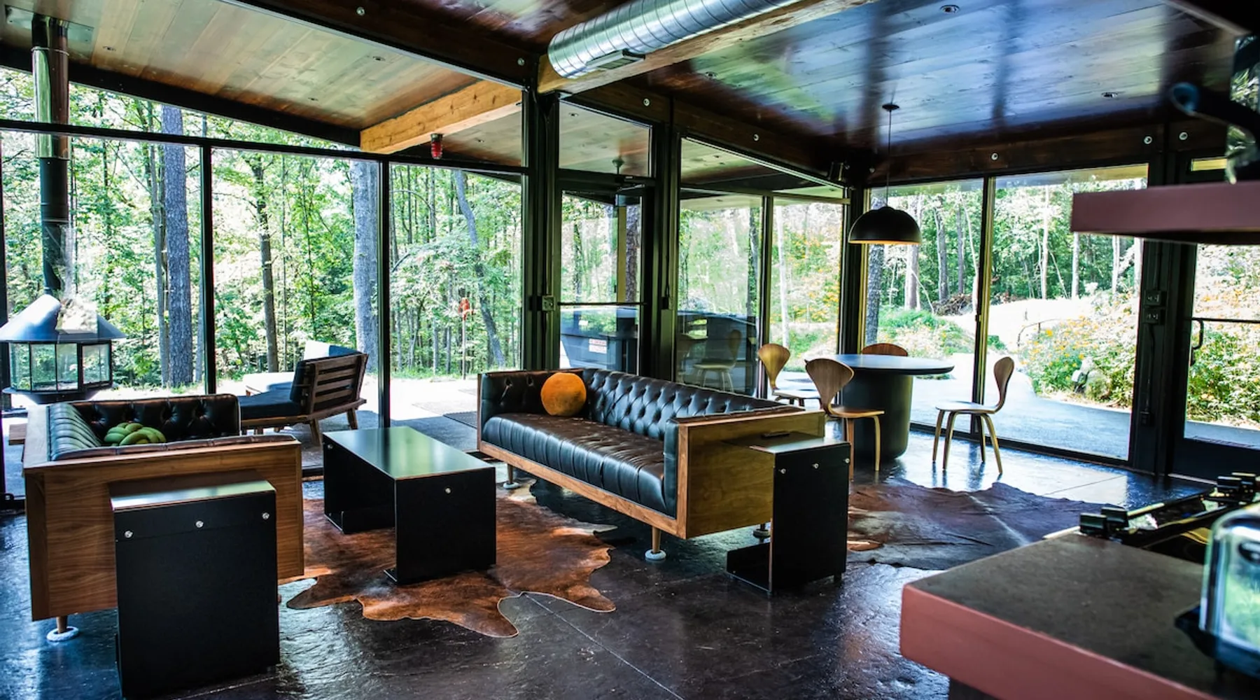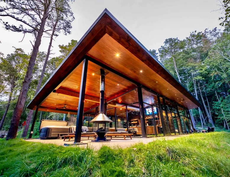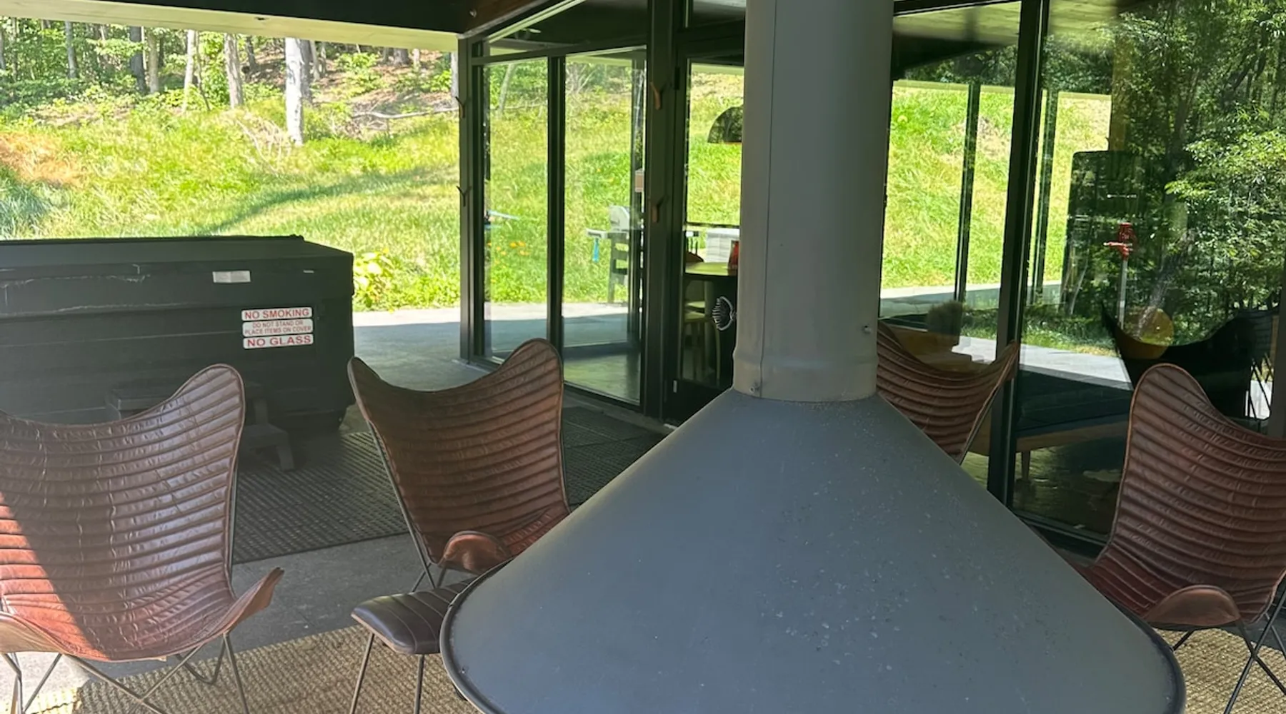 The Study is a minimalist-modern cabin featuring 360-degree glass walls that invite you to gaze out while cozy inside. The indoor space seamlessly extends to spacious patios, complete with a 6-person hot tub, Malm fireplace, grill and dining area. Set on a peaceful, 24-acre forested property, you’ll enjoy tranquility and privacy just 5 miles from the renowned hiking trails of Hocking Hills. Whether you’re unwinding or exploring nearby nature, The Study offers an unforgettable luxe retreat. The space Created with 360 degree floor to ceiling glass, the Study allows total immersion into nature’s surroundings while lounging in comfort. With a strong nod to Philip Johnson’s Glass House, The Study blends mid-century appeal with the beauty of the area - including a hand-built shower with rocks from Lost Cavern, radiant-heated stamped concrete floors resembling the sandstone terrain, Douglas fir beams and a seamless transition from inside to outside patios. Featuring a carousel fireplace, Sonos speakers, 6-person hot tub, Solo stove, gas grill, bespoke furniture, and purple hybrid mattresses, we want everything about your stay to be memorable. Guest access Guests have access to the house and patios.