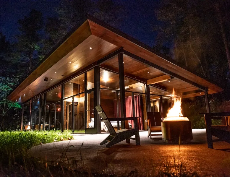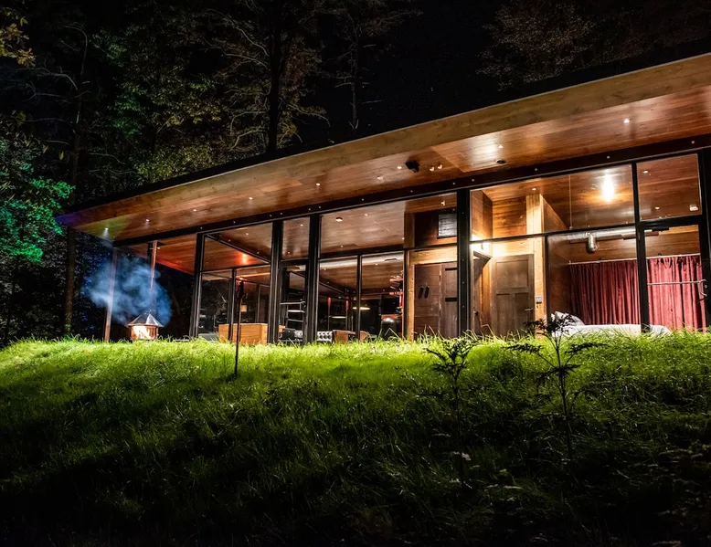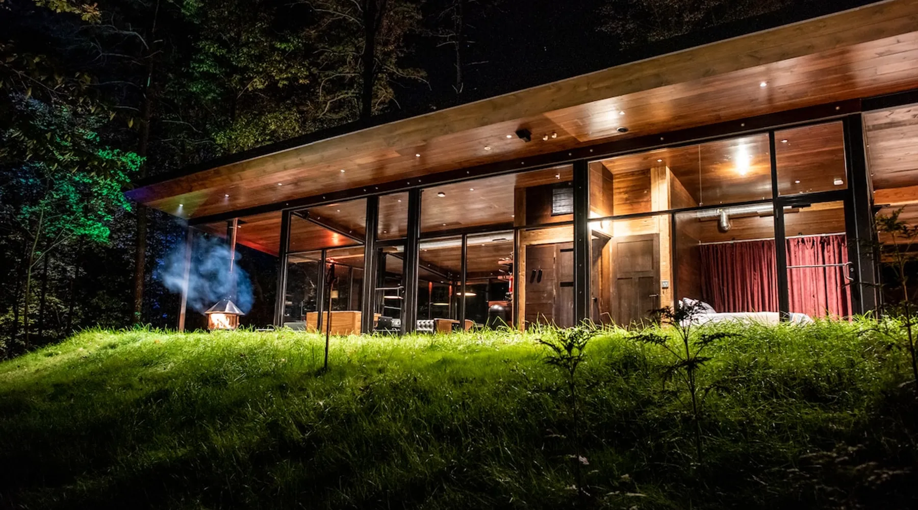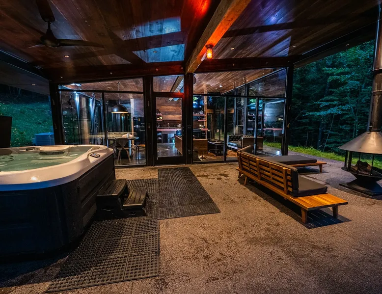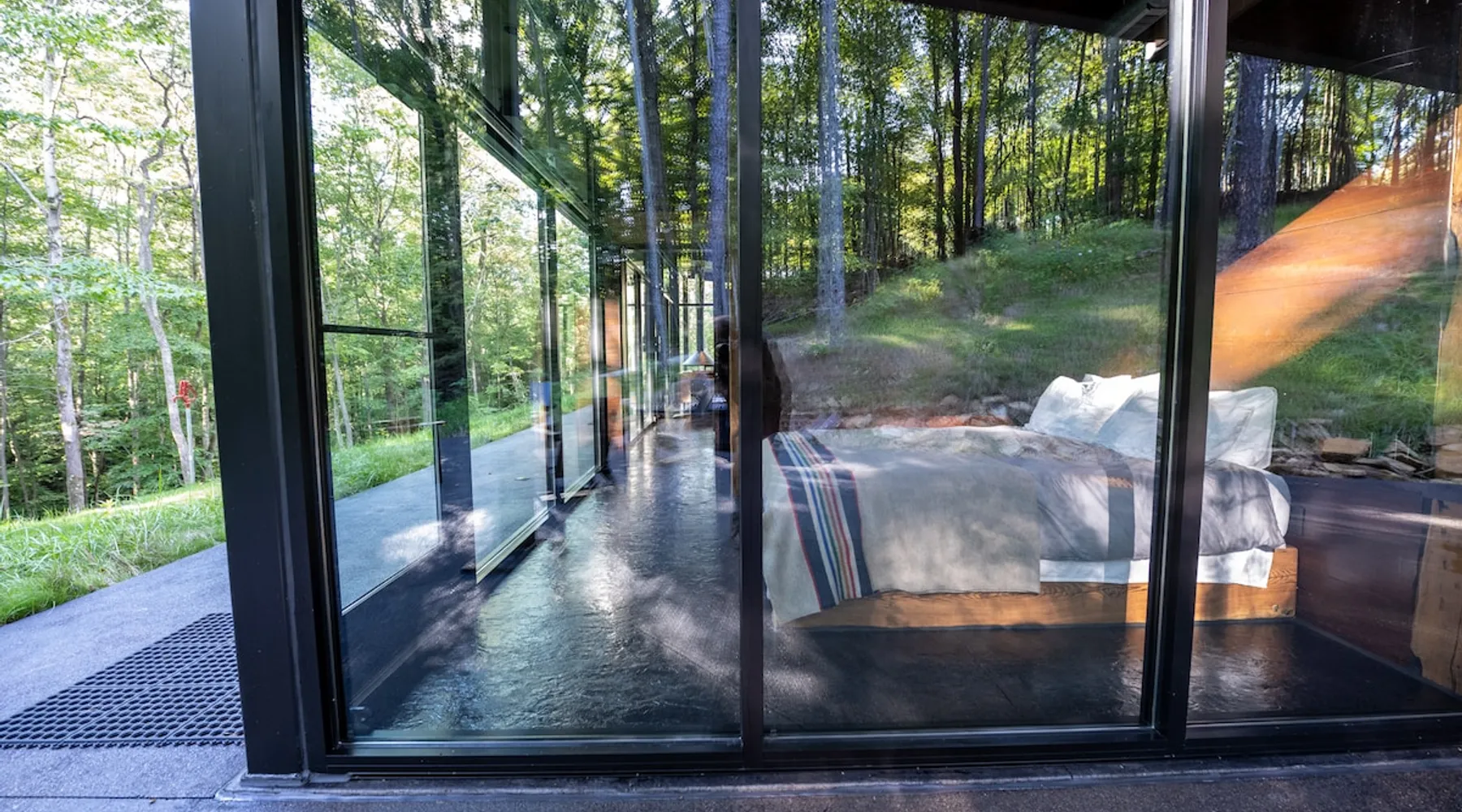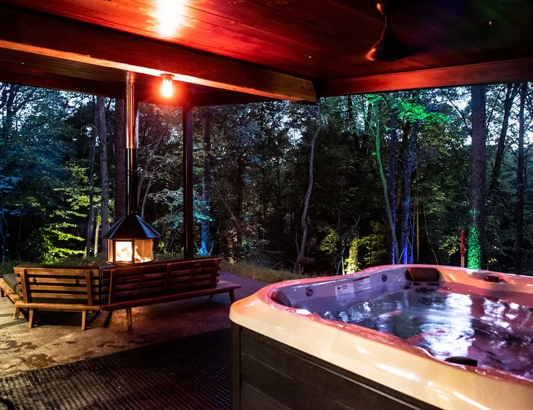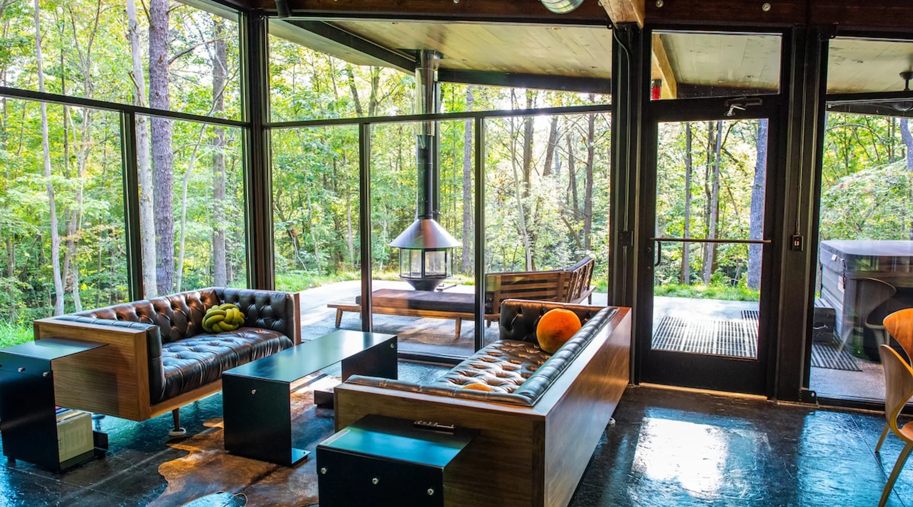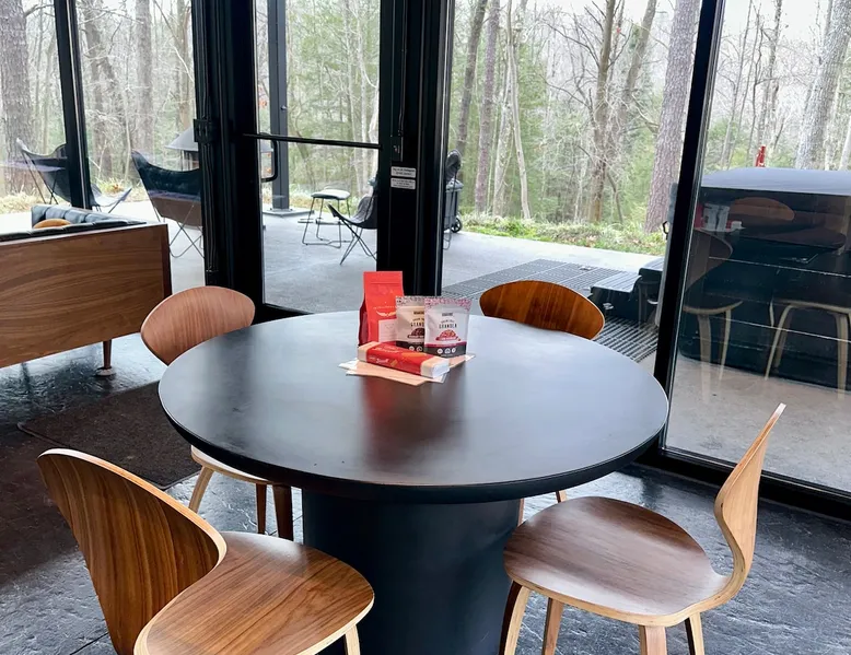 The Study is a minimalist-modern cabin featuring 360-degree glass walls that invite you to gaze out while cozy inside. The indoor space seamlessly extends to spacious patios, complete with a 6-person hot tub, Malm fireplace, grill and dining area. Set on a peaceful, 24-acre forested property, you’ll enjoy tranquility and privacy just 5 miles from the renowned hiking trails of Hocking Hills. Whether you’re unwinding or exploring nearby nature, The Study offers an unforgettable luxe retreat. The space Created with 360 degree floor to ceiling glass, the Study allows total immersion into nature’s surroundings while lounging in comfort. With a strong nod to Philip Johnson’s Glass House, The Study blends mid-century appeal with the beauty of the area - including a hand-built shower with rocks from Lost Cavern, radiant-heated stamped concrete floors resembling the sandstone terrain, Douglas fir beams and a seamless transition from inside to outside patios. Featuring a carousel fireplace, Sonos speakers, 6-person hot tub, Solo stove, gas grill, bespoke furniture, and purple hybrid mattresses, we want everything about your stay to be memorable. Guest access Guests have access to the house and patios.