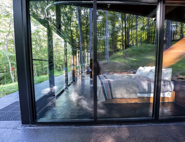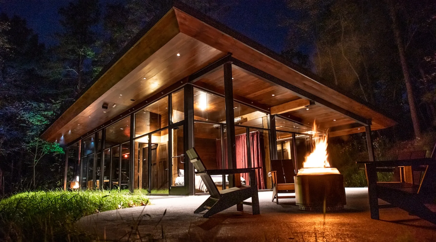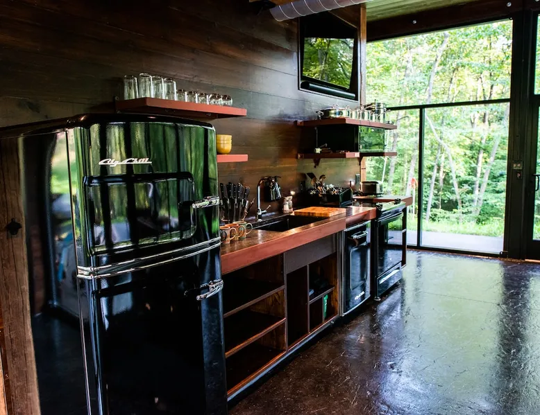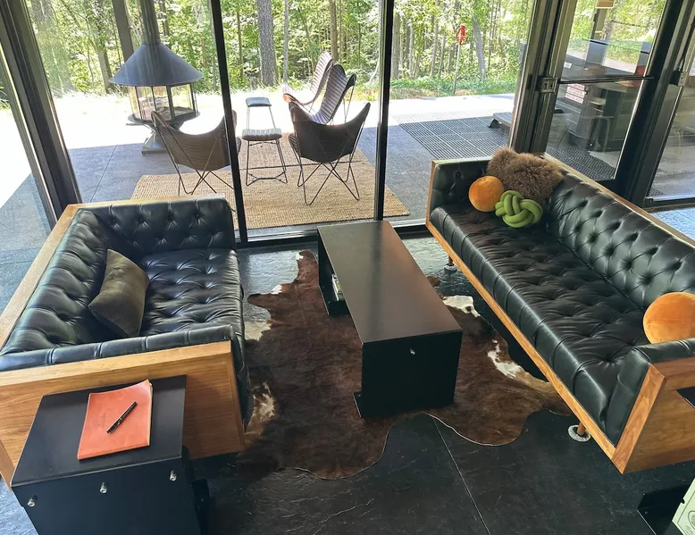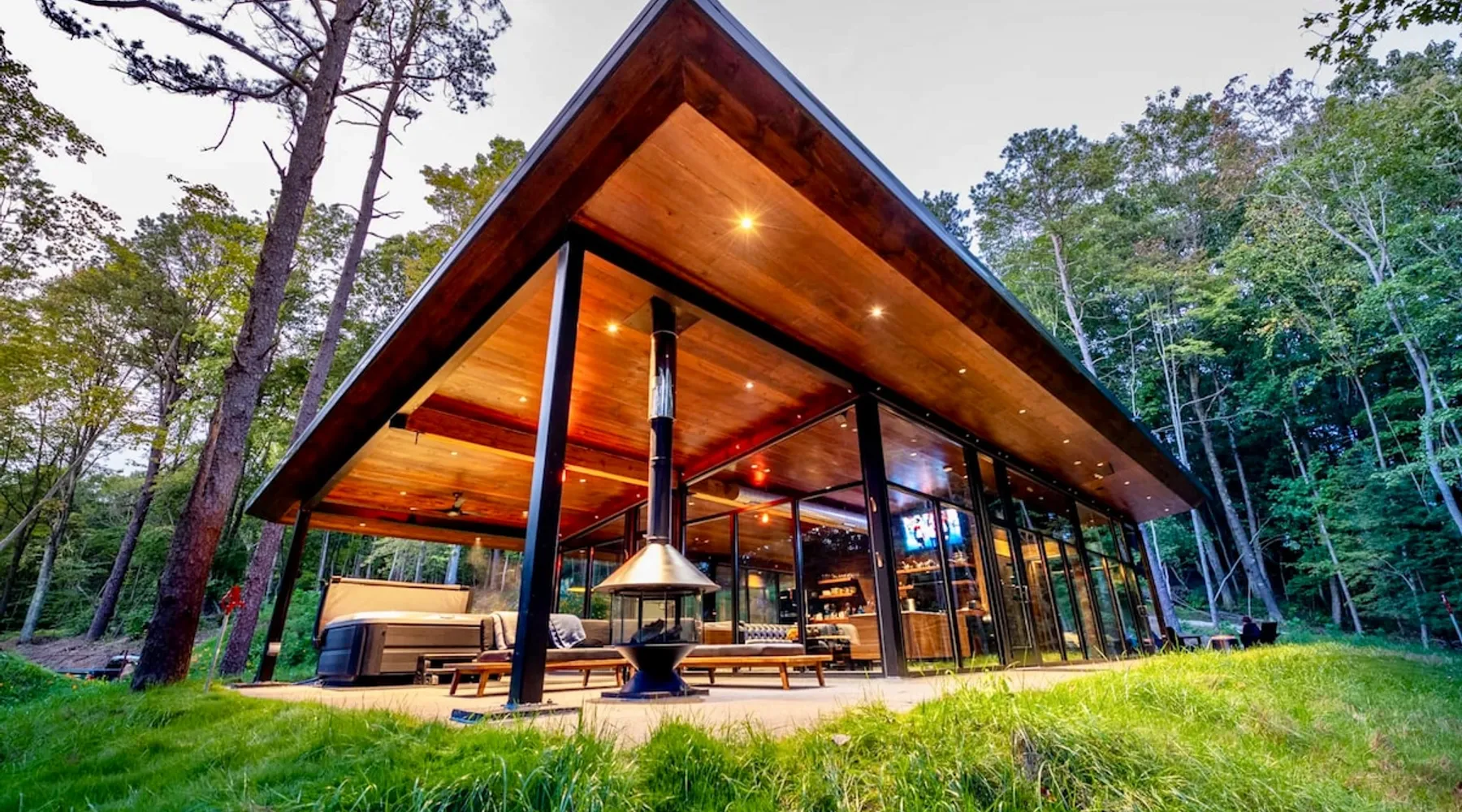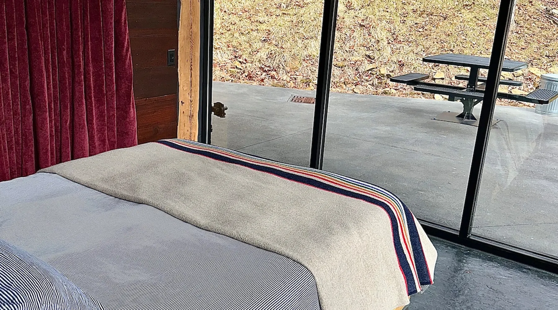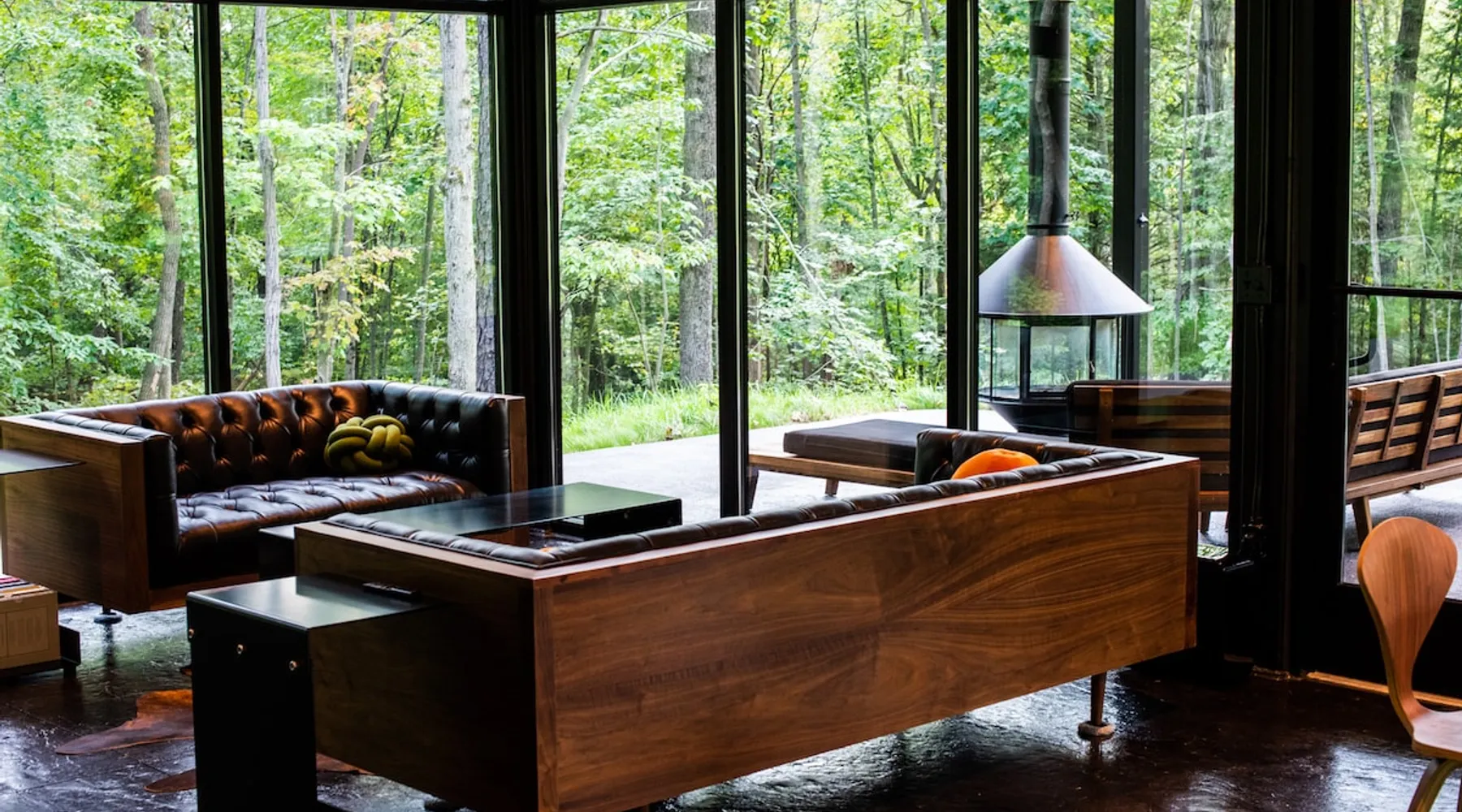The Study is a minimalist-modern cabin featuring 360-degree glass walls that invite you to gaze out while cozy inside. The indoor space seamlessly extends to spacious patios, complete with a 6-person hot tub, Malm fireplace, grill and dining area. Set on a peaceful, 24-acre forested property, you’ll enjoy tranquility and privacy just 5 miles from the renowned hiking trails of Hocking Hills. Whether you’re unwinding or exploring nearby nature, The Study offers an unforgettable luxe retreat. The space Created with 360 degree floor to ceiling glass, the Study allows total immersion into nature’s surroundings while lounging in comfort. With a strong nod to Philip Johnson’s Glass House, The Study blends mid-century appeal with the beauty of the area - including a hand-built shower with rocks from Lost Cavern, radiant-heated stamped concrete floors resembling the sandstone terrain, Douglas fir beams and a seamless transition from inside to outside patios. Featuring a carousel fireplace, Sonos speakers, 6-person hot tub, Solo stove, gas grill, bespoke furniture, and purple hybrid mattresses, we want everything about your stay to be memorable. Guest access Guests have access to the house and patios.